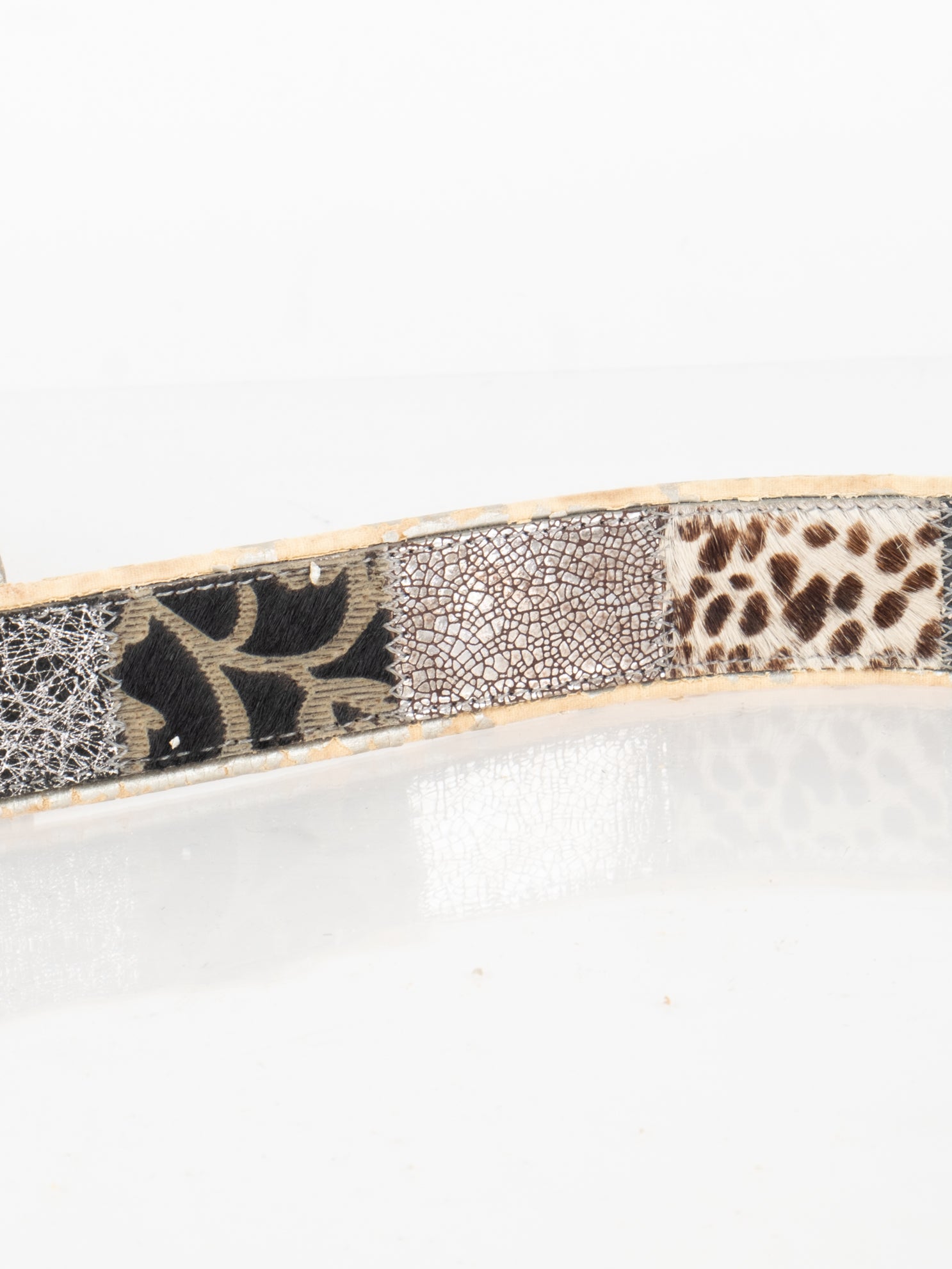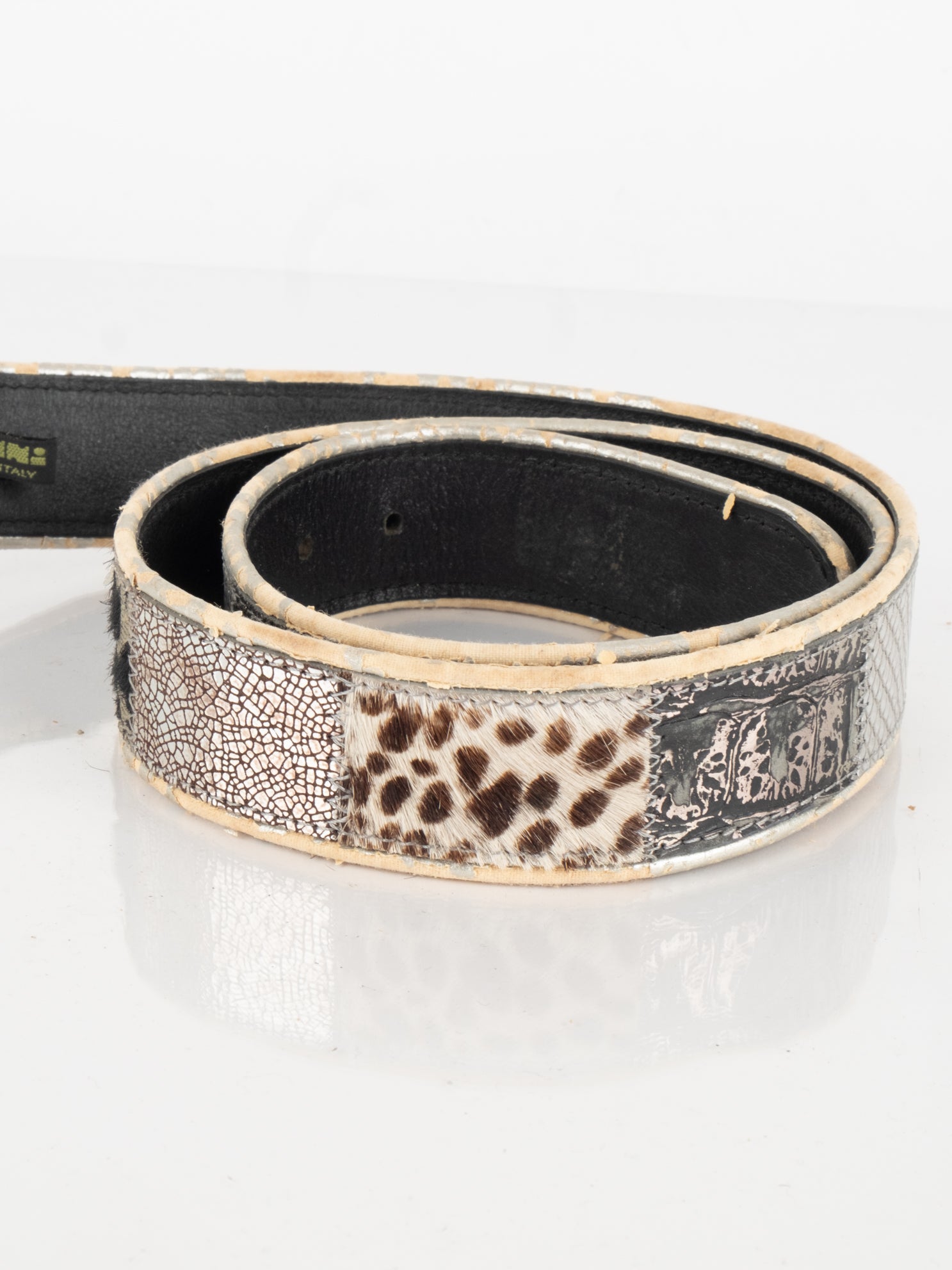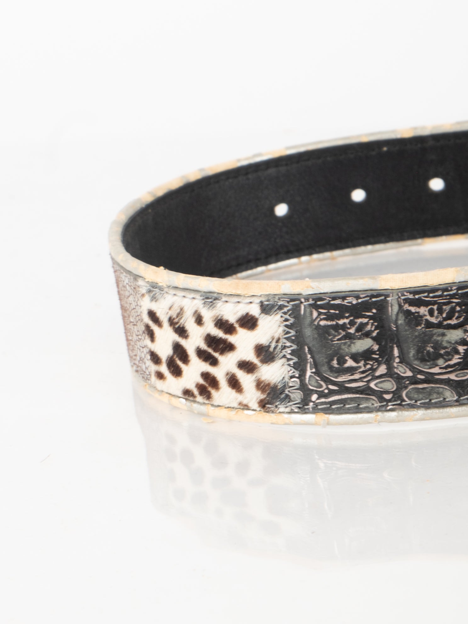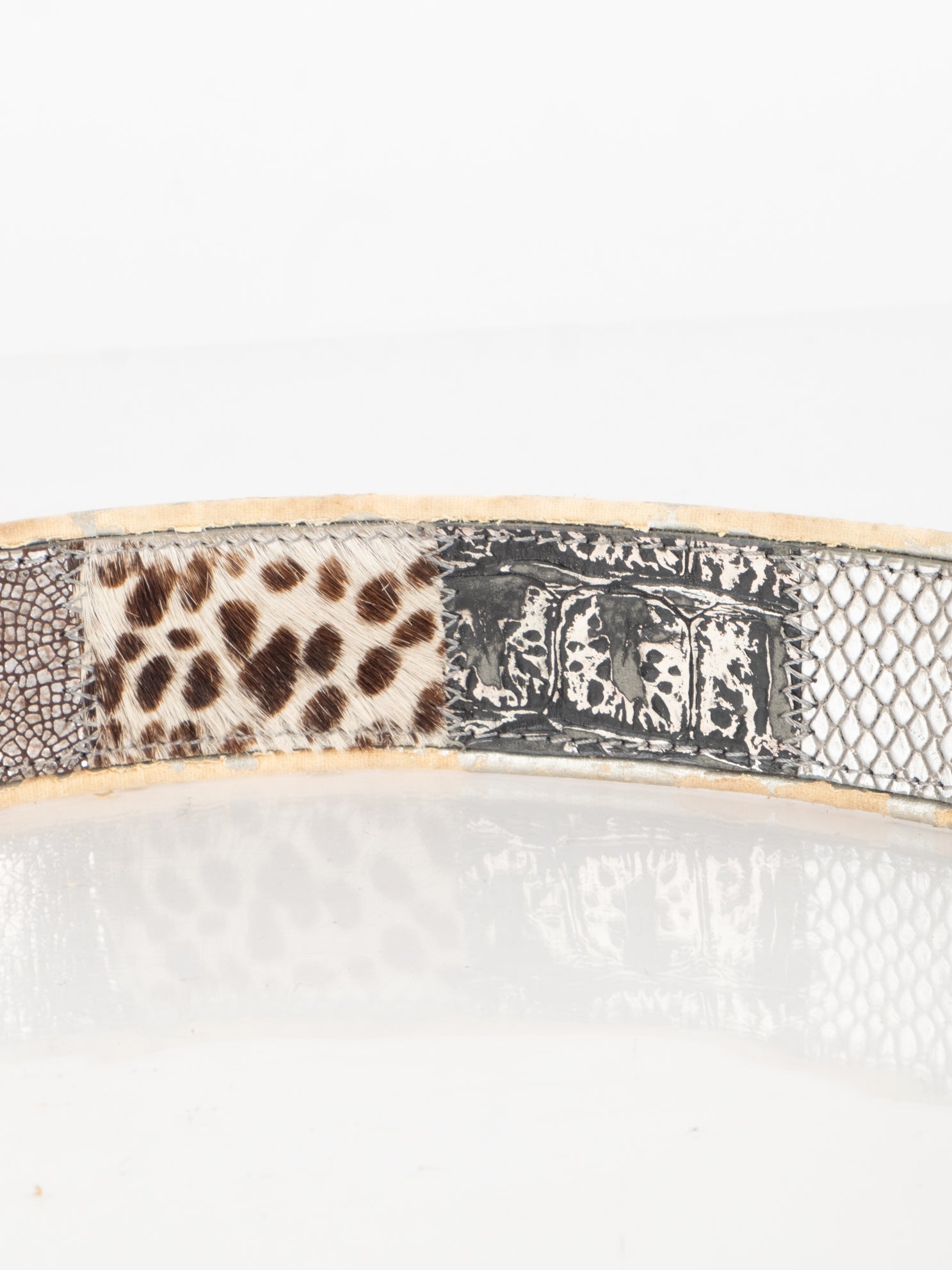 חגורה העשוי מעור בשילוב של פרווה ודיטיילים כסופים.