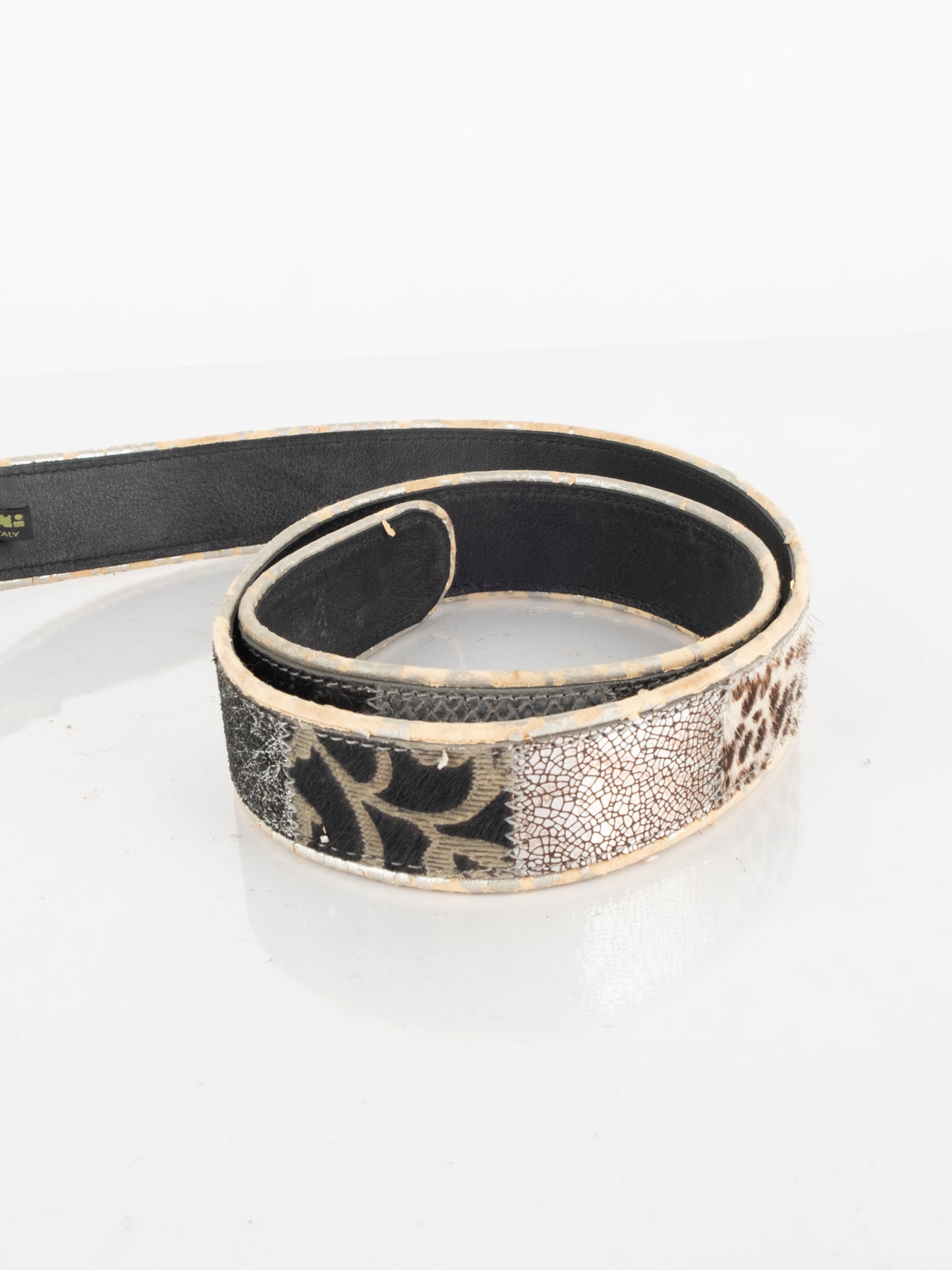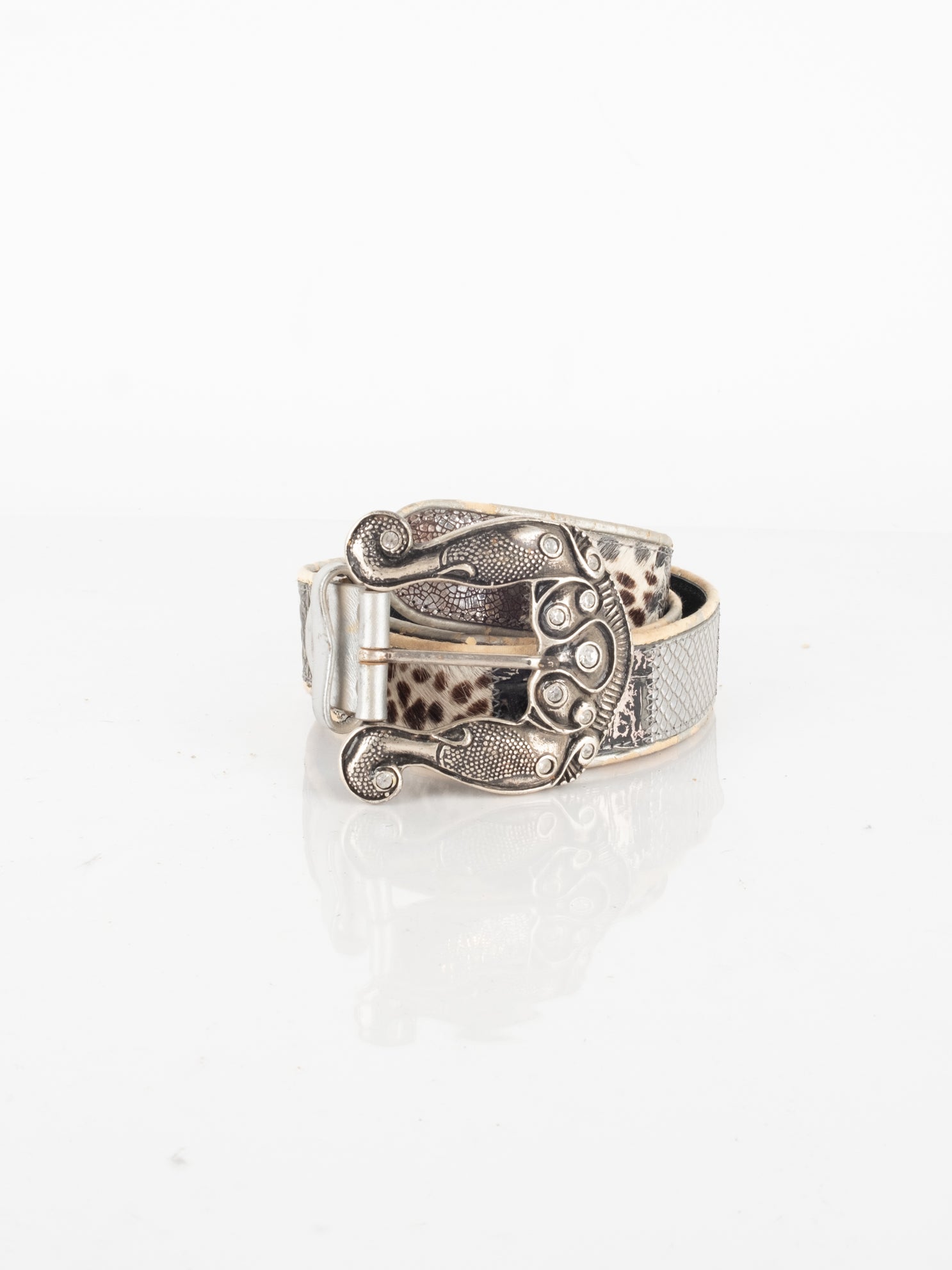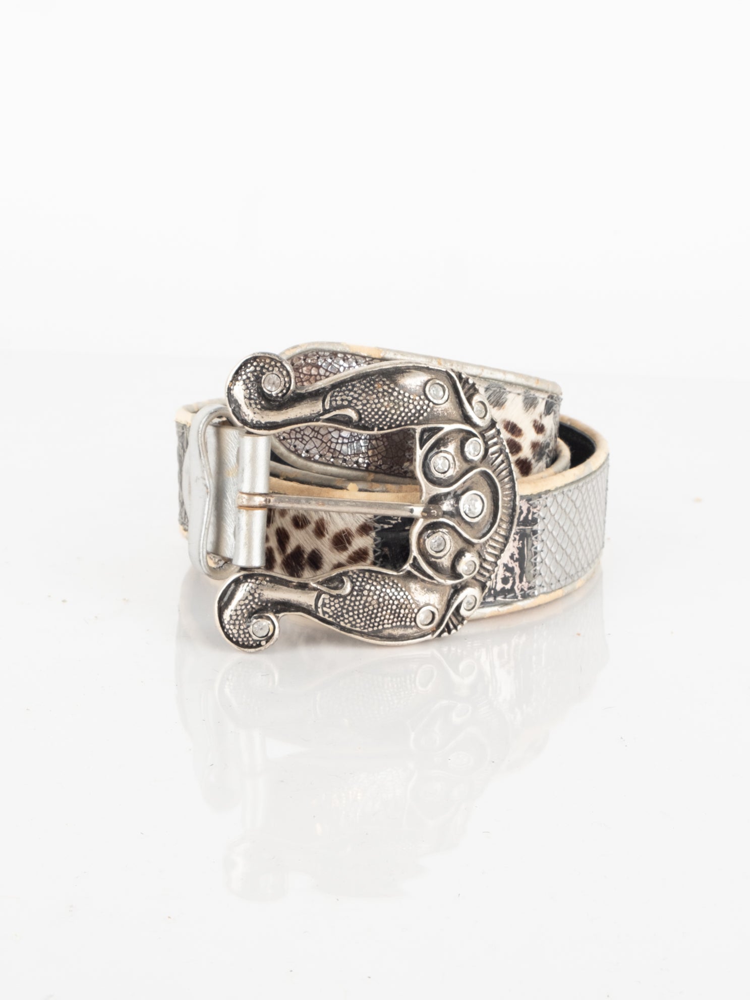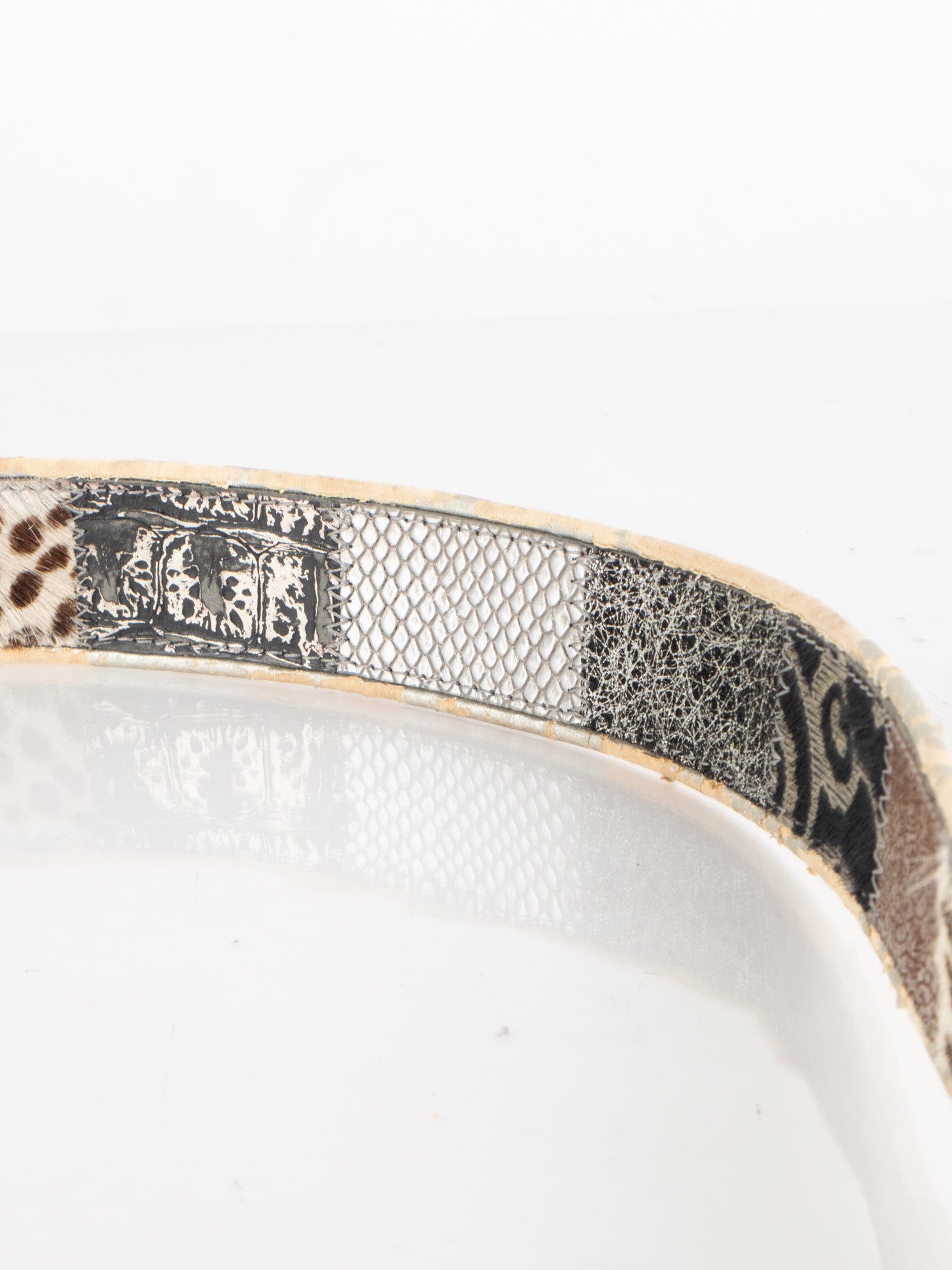 חגורה העשוי מעור בשילוב של פרווה ודיטיילים כסופים.