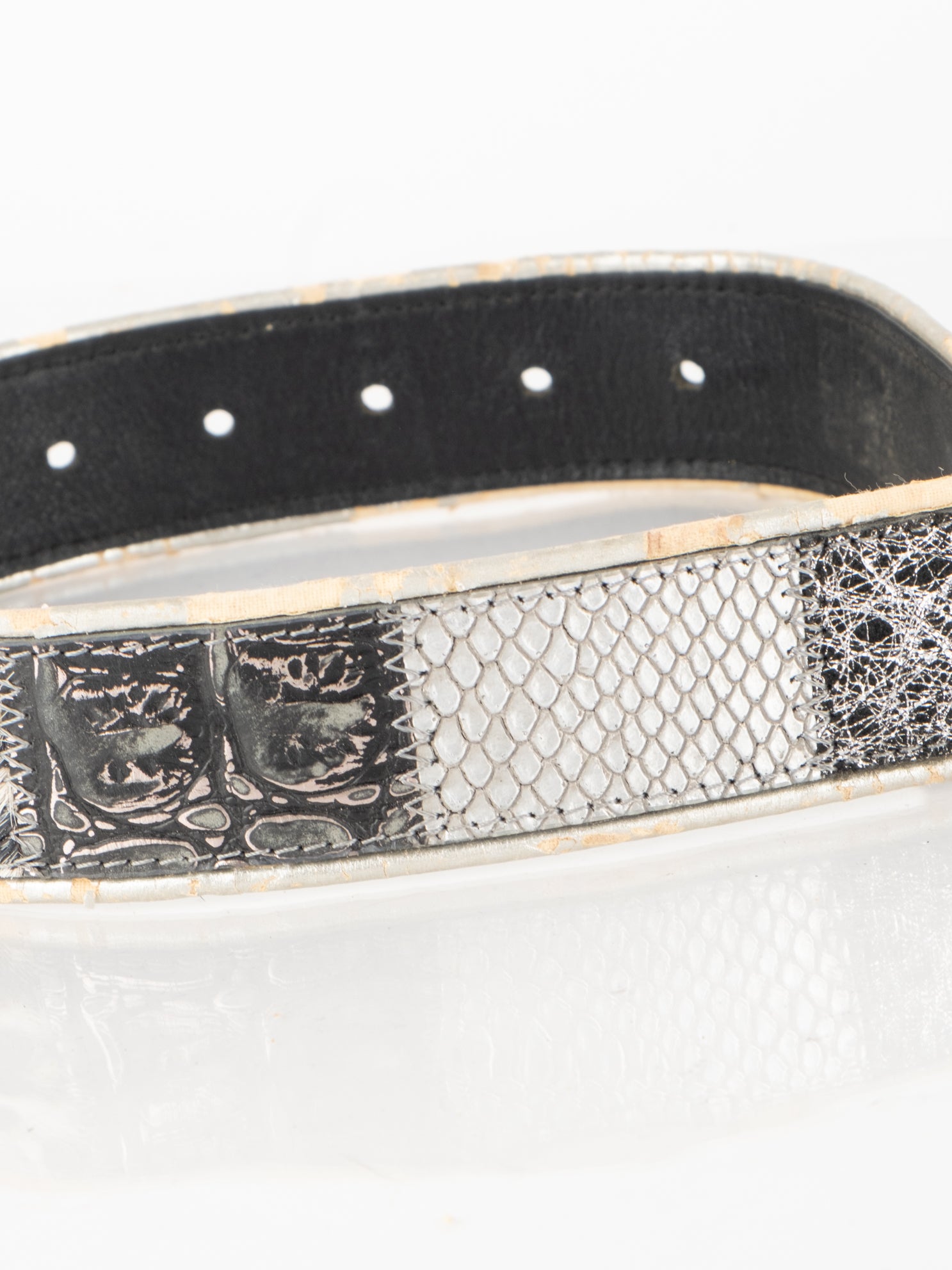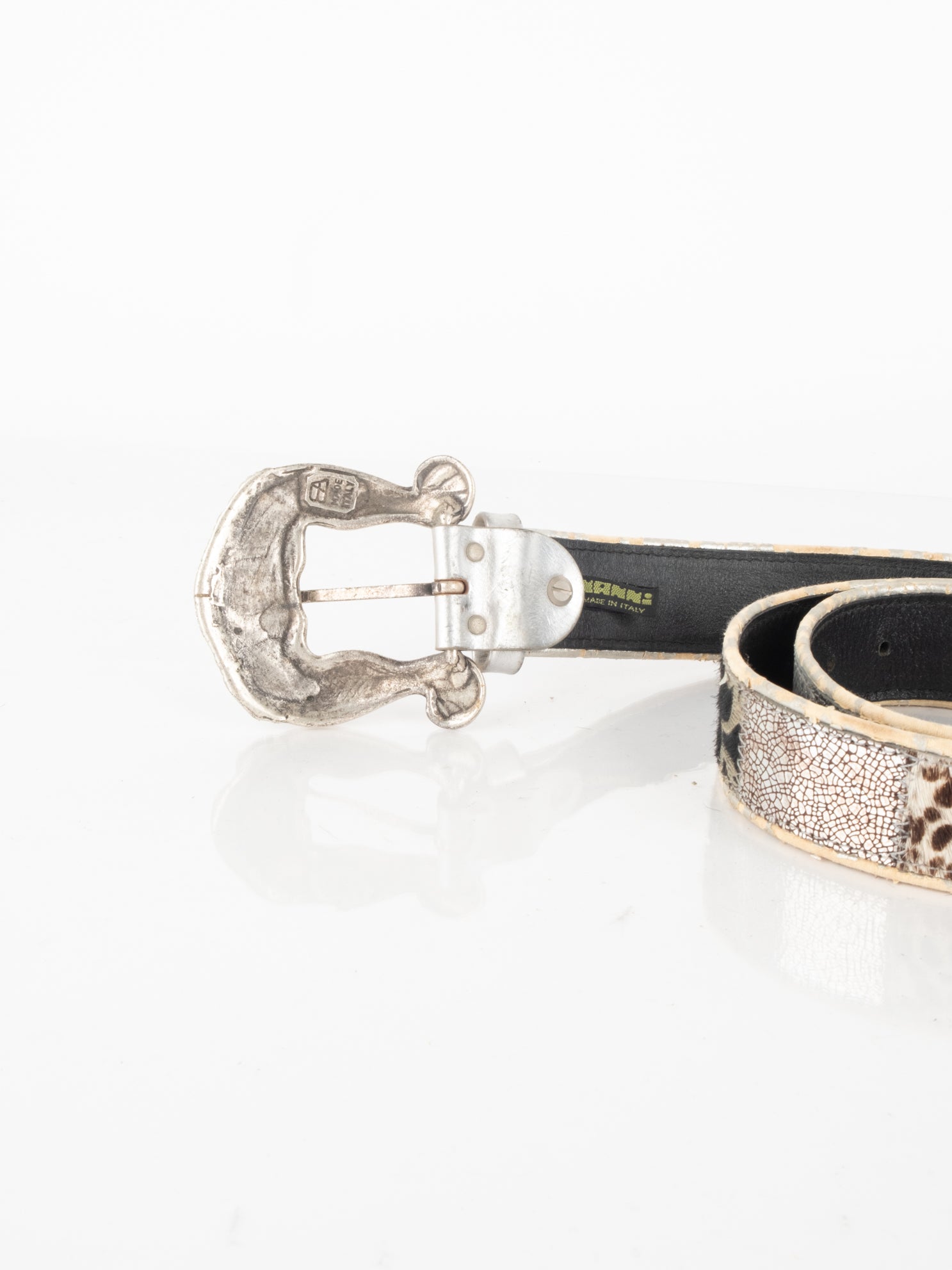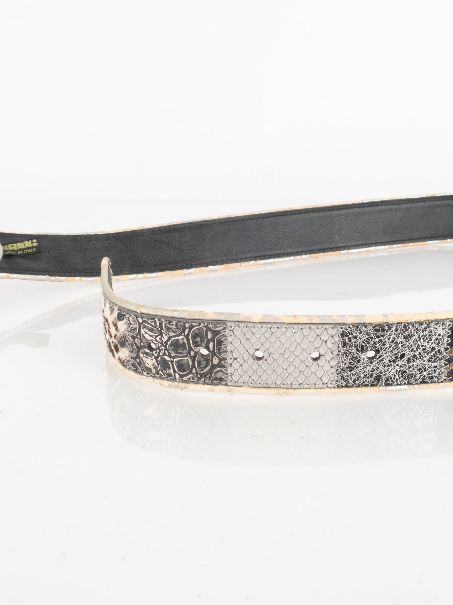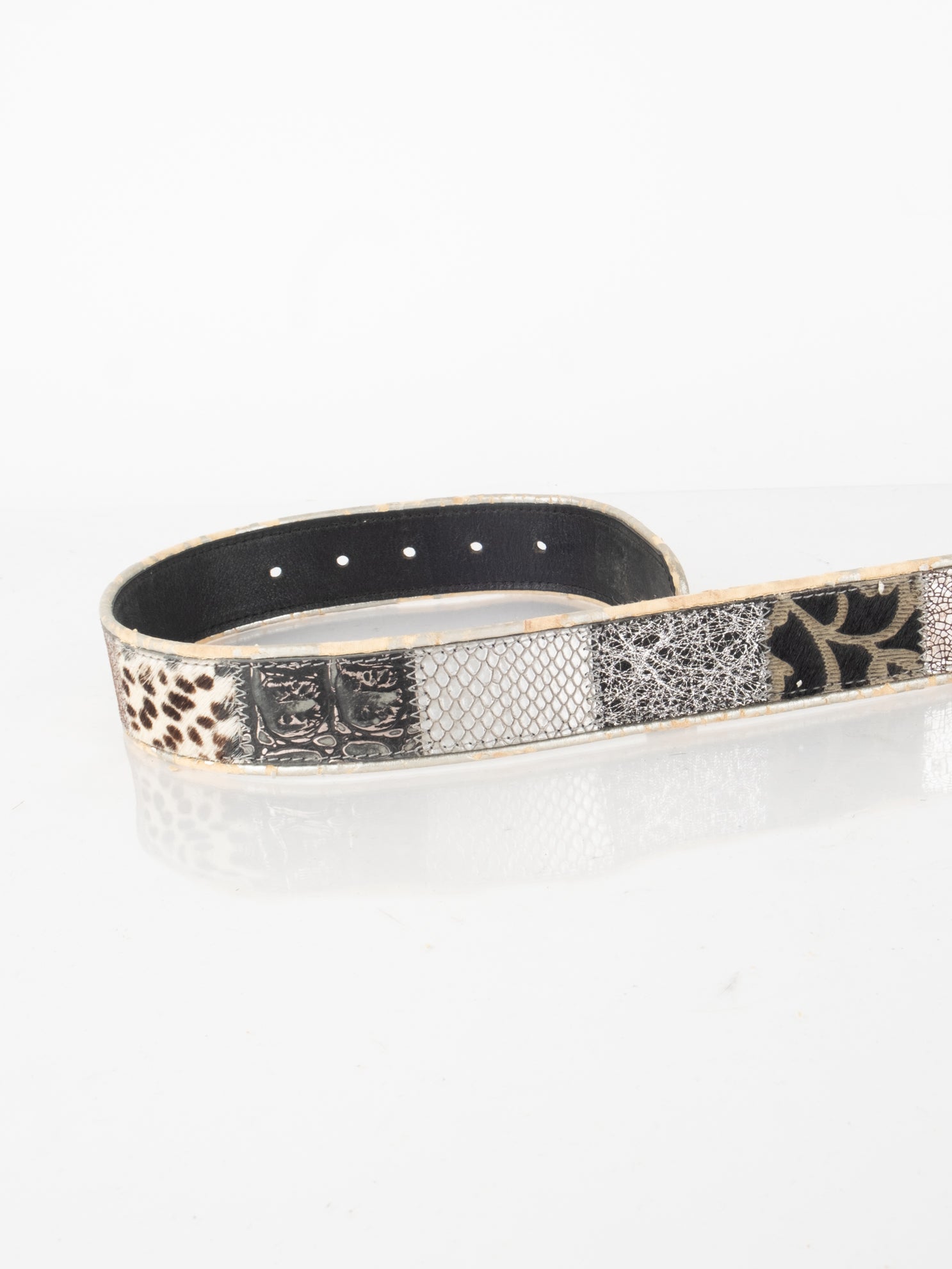 חגורה העשוי מעור בשילוב של פרווה ודיטיילים כסופים.