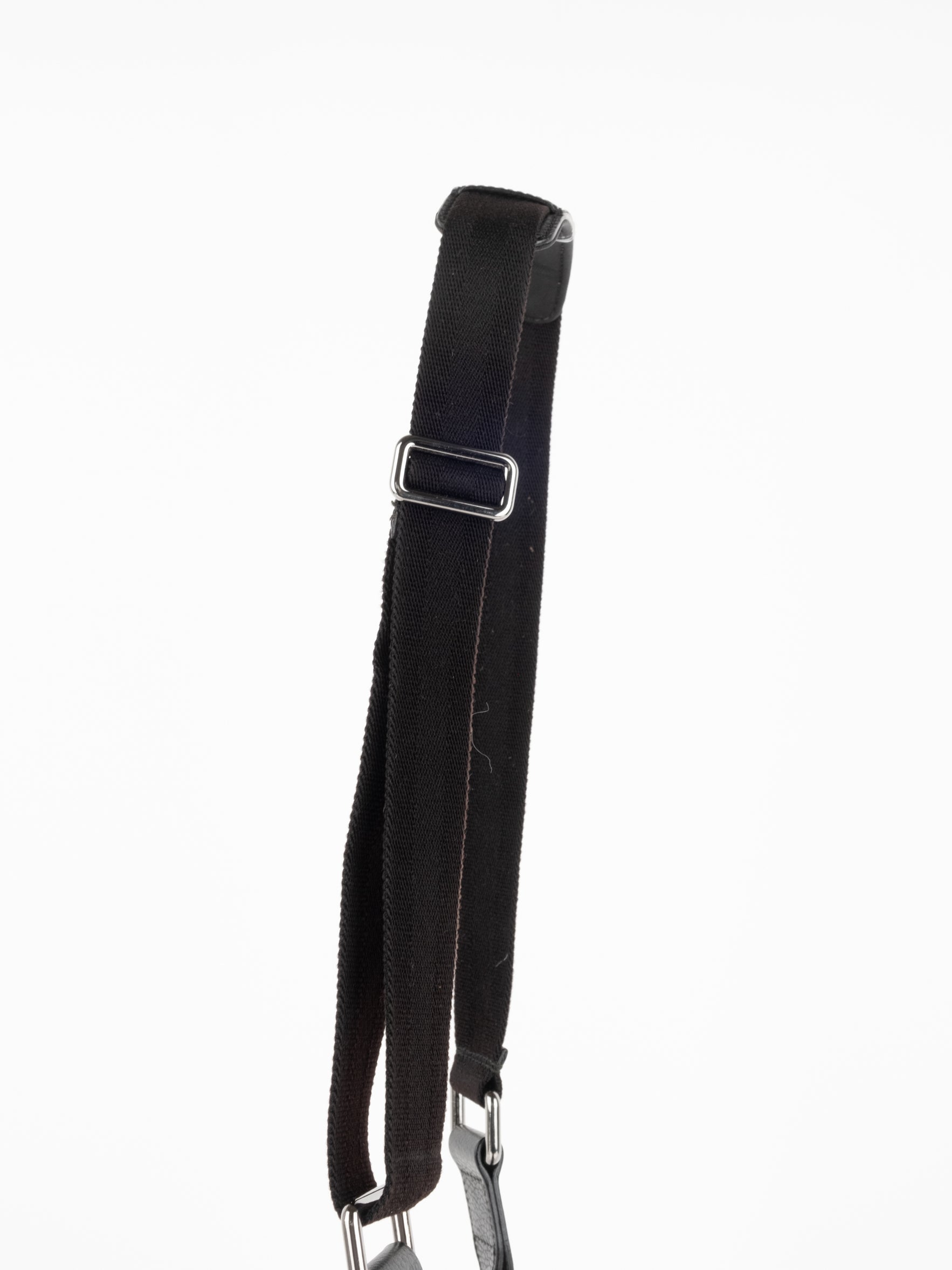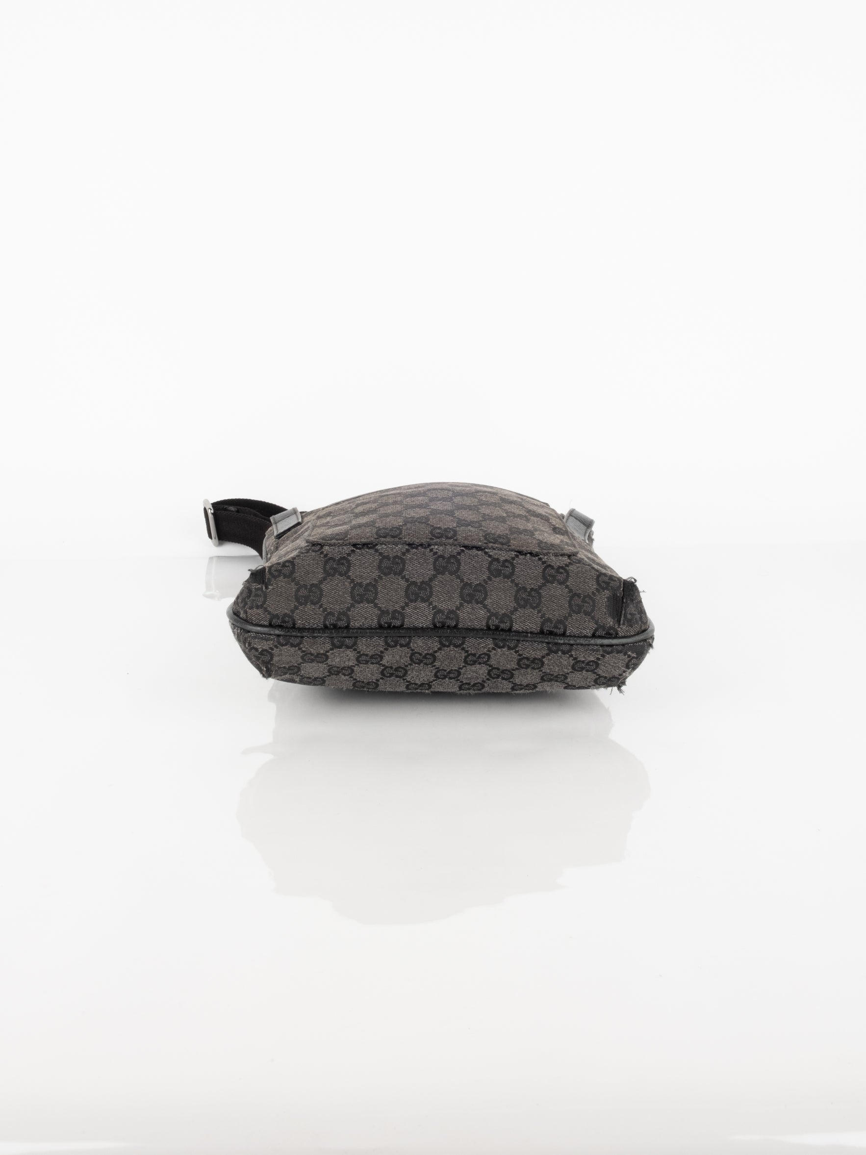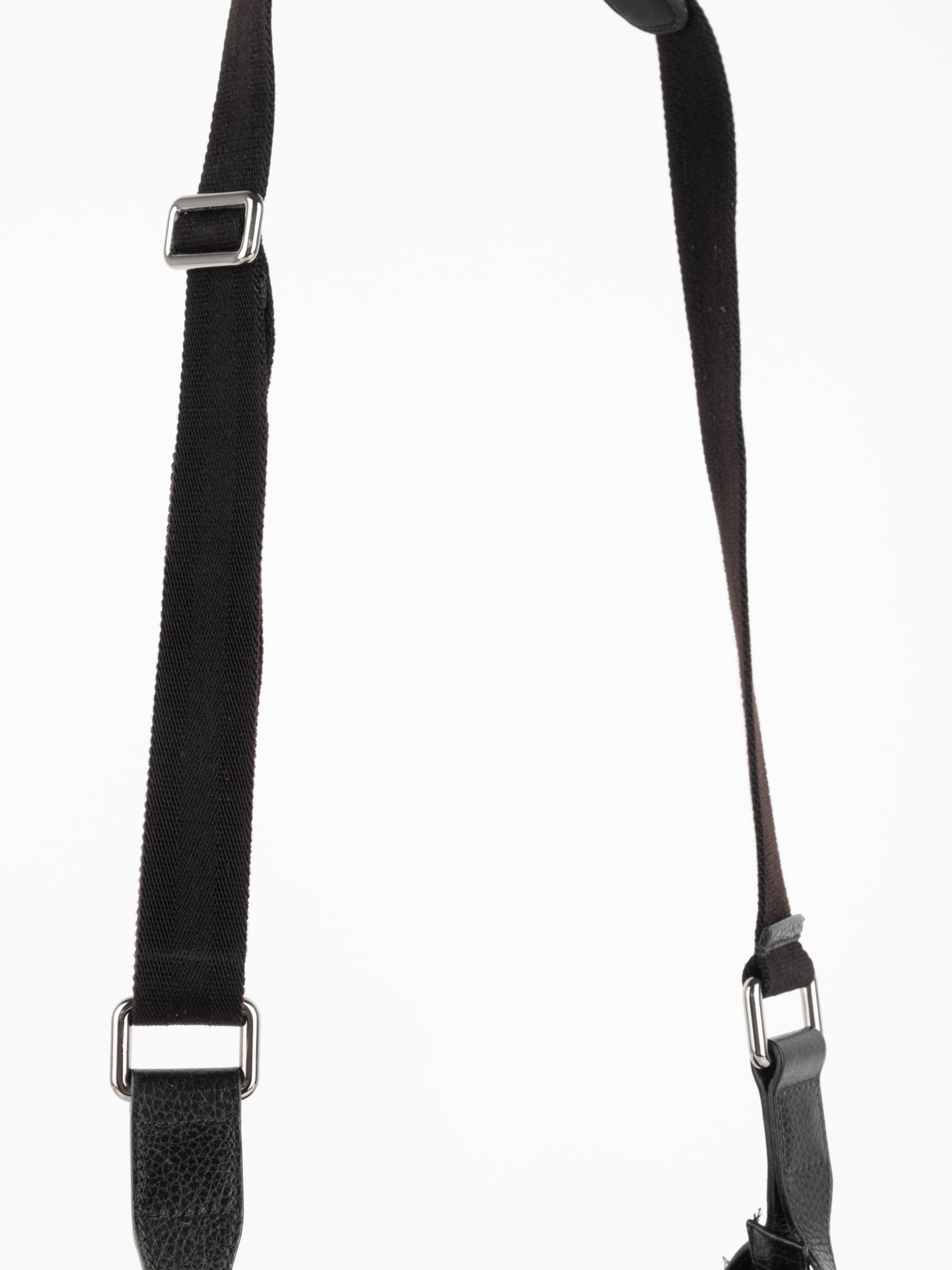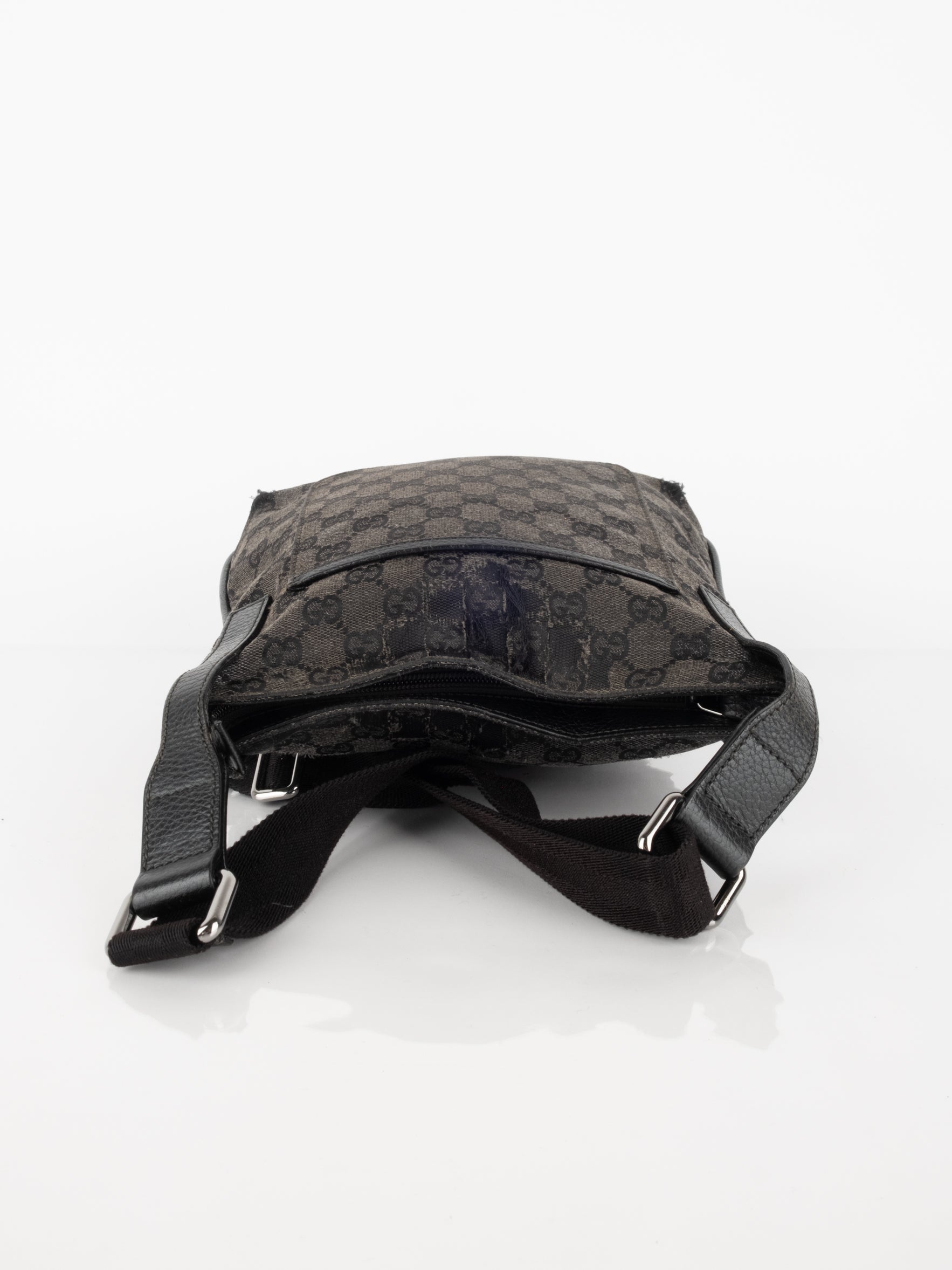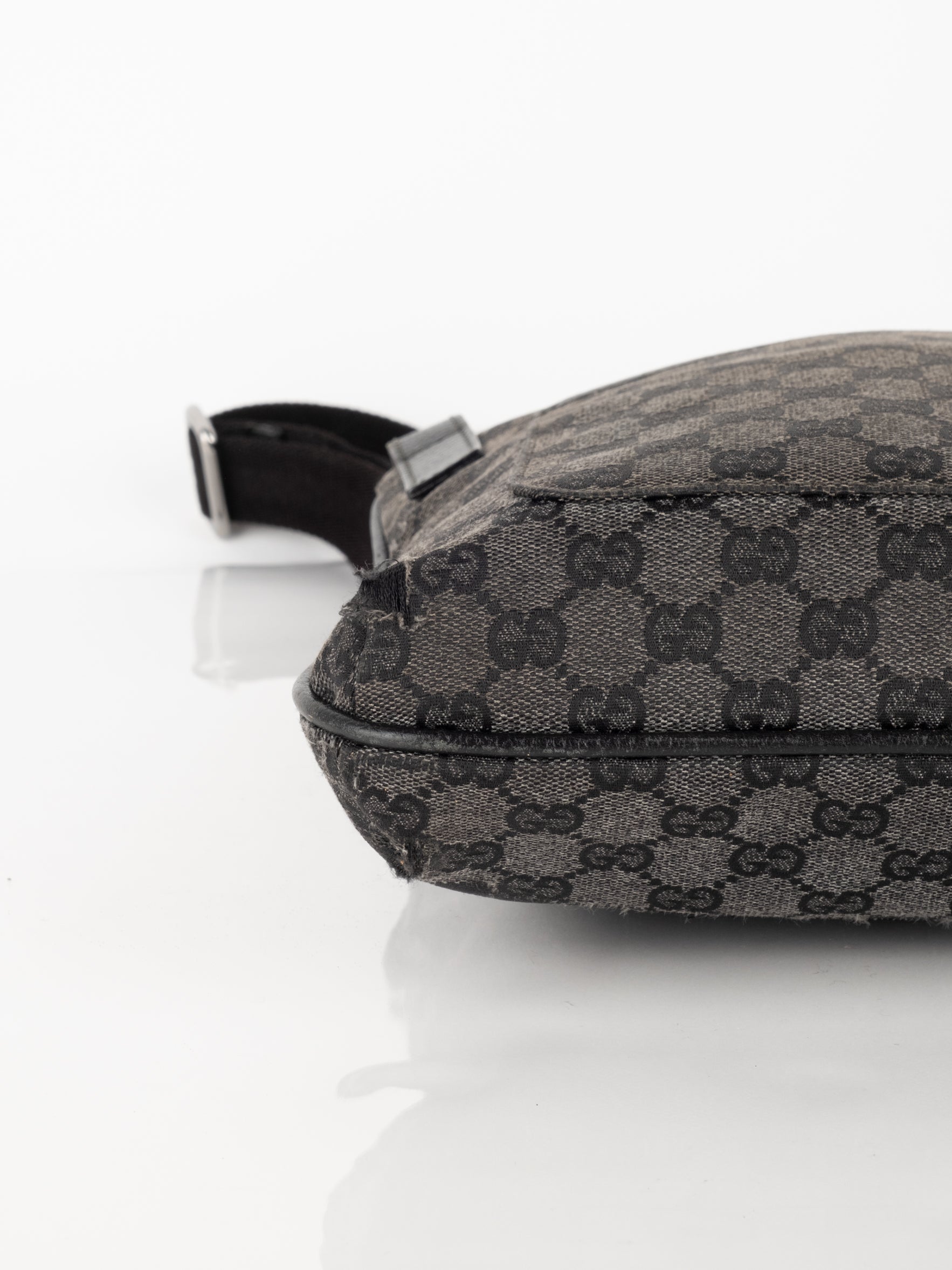 תיק כתף (מתאים לקרוסבודי) העשוי מבד קנבס בשילוש של עור בצבע שחור בהדפס המונוגרמי המוכר של המותג האיטלקי, בעל רצועה העשויה מבד שניתן לכוון ודיטיילים כסופים.