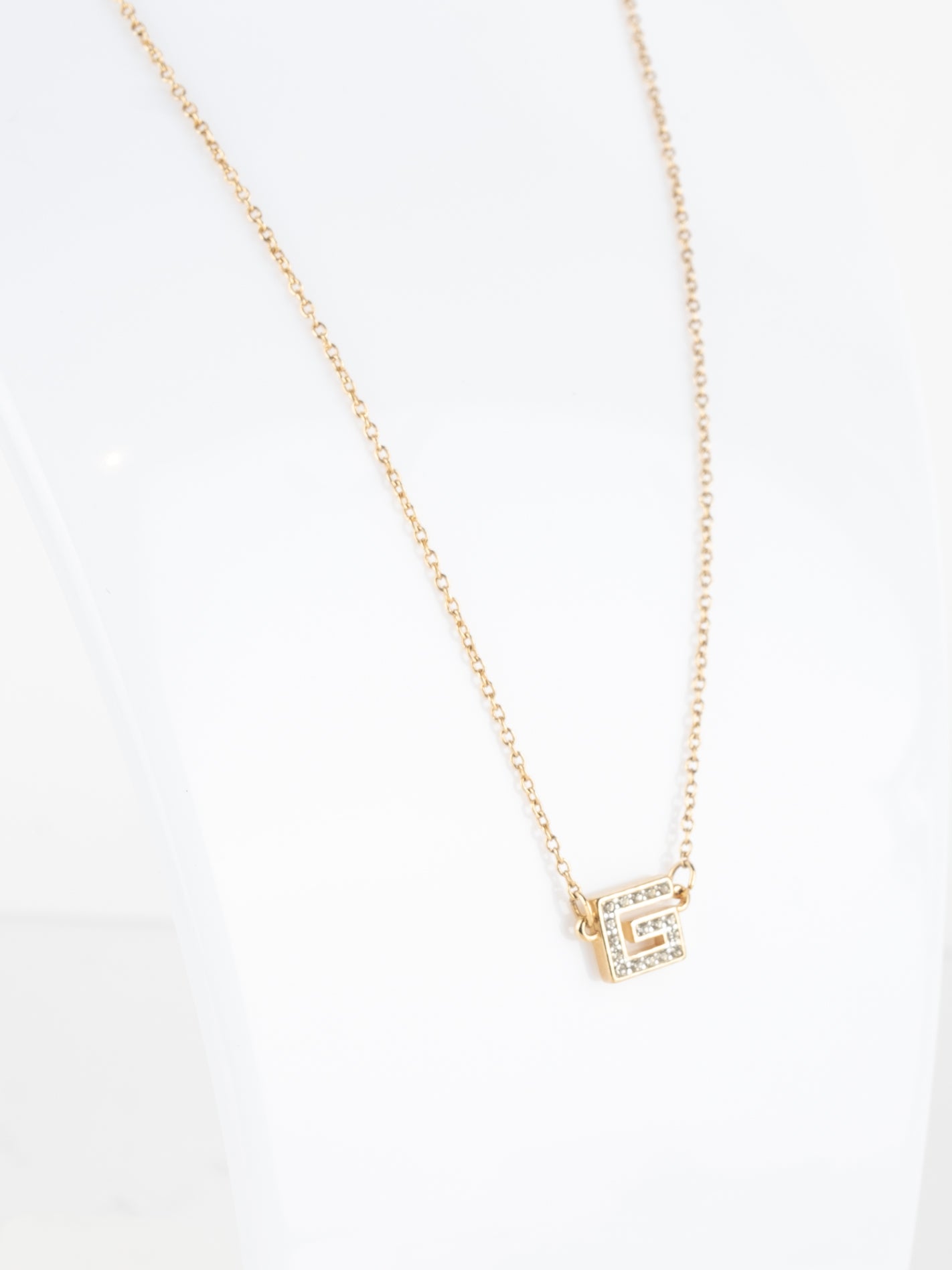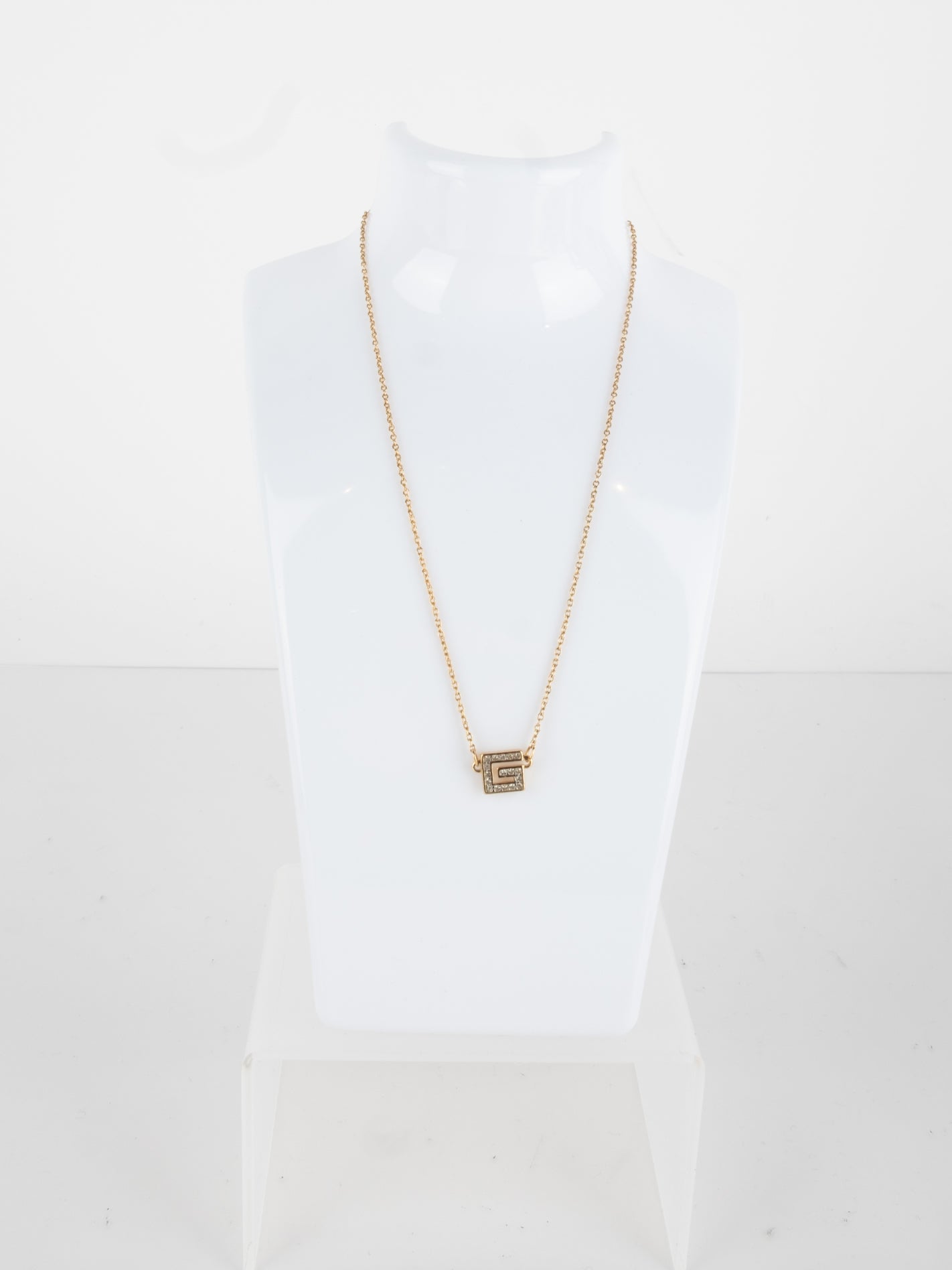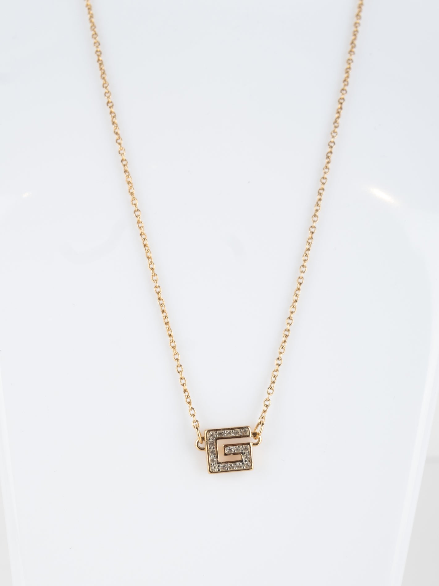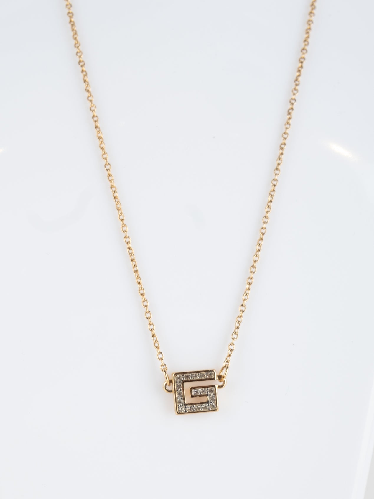 שרשרת עדינה בצבע זהב בעלת תליון בצורת אות G מצופה בזירקונים.