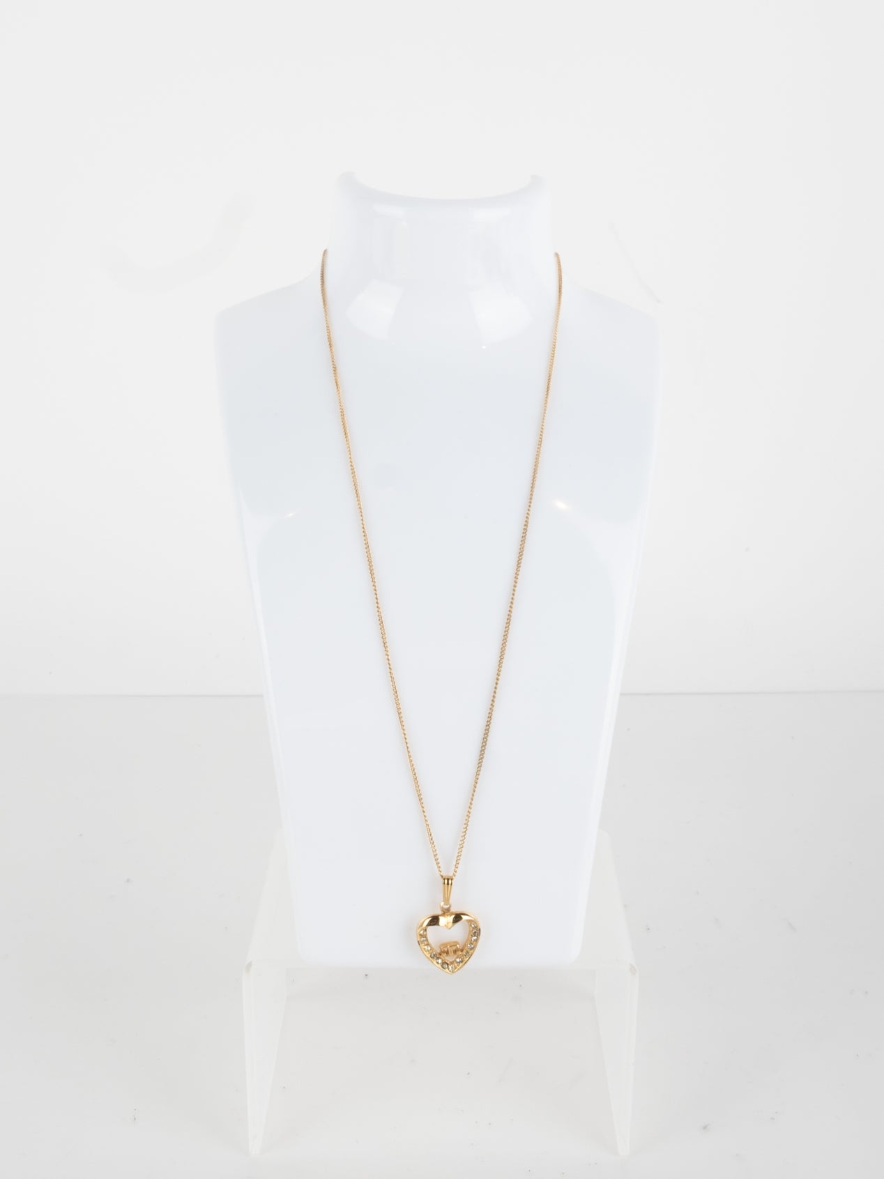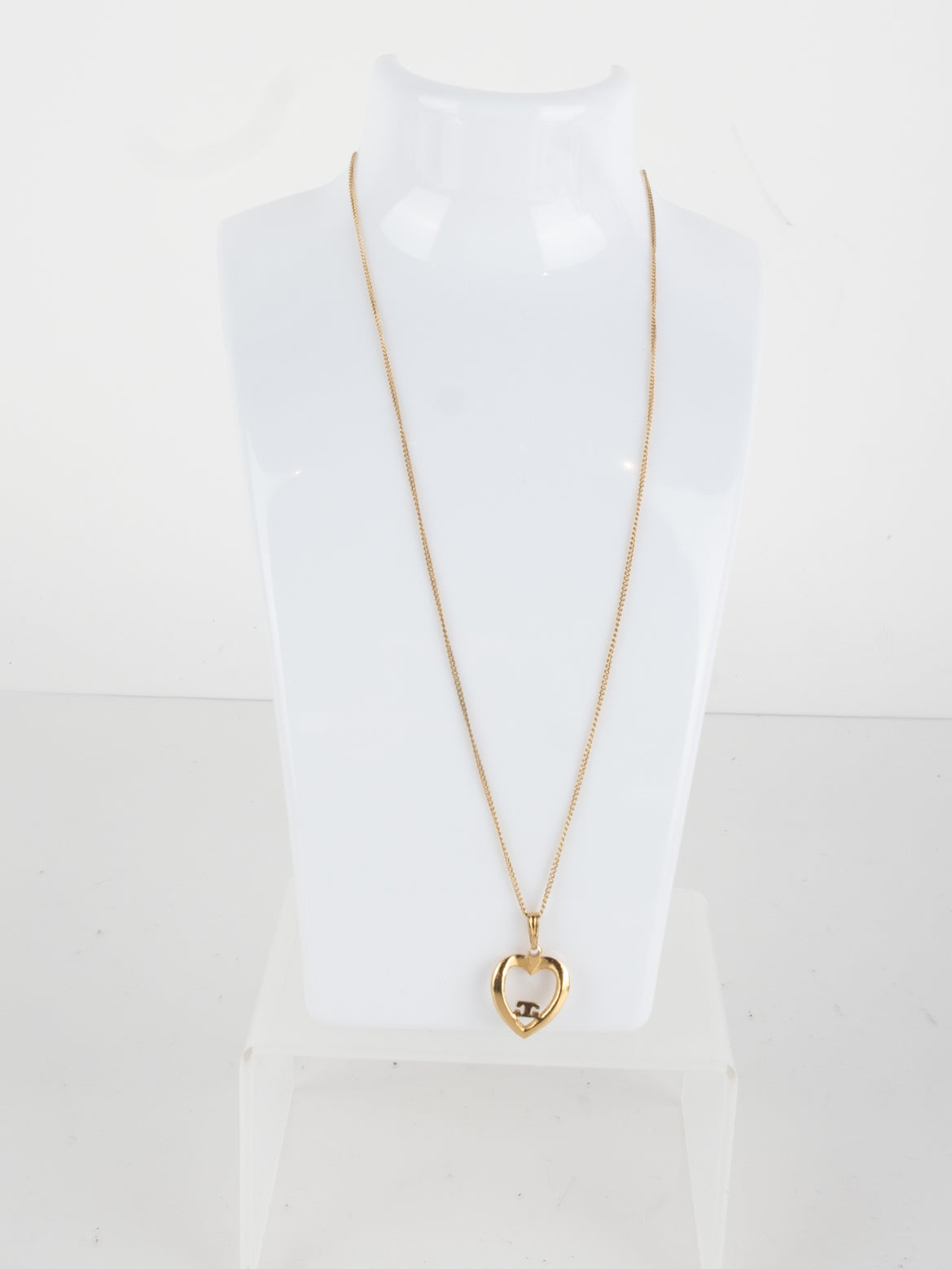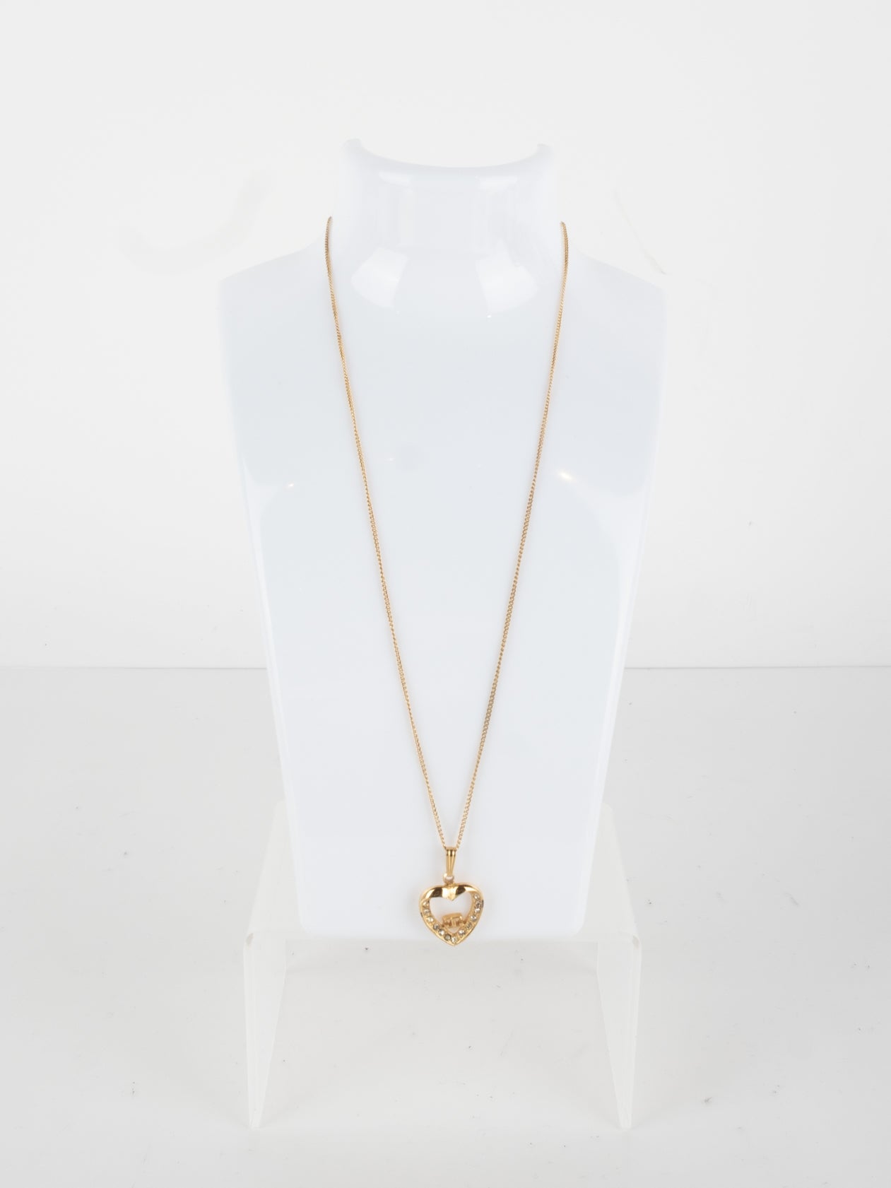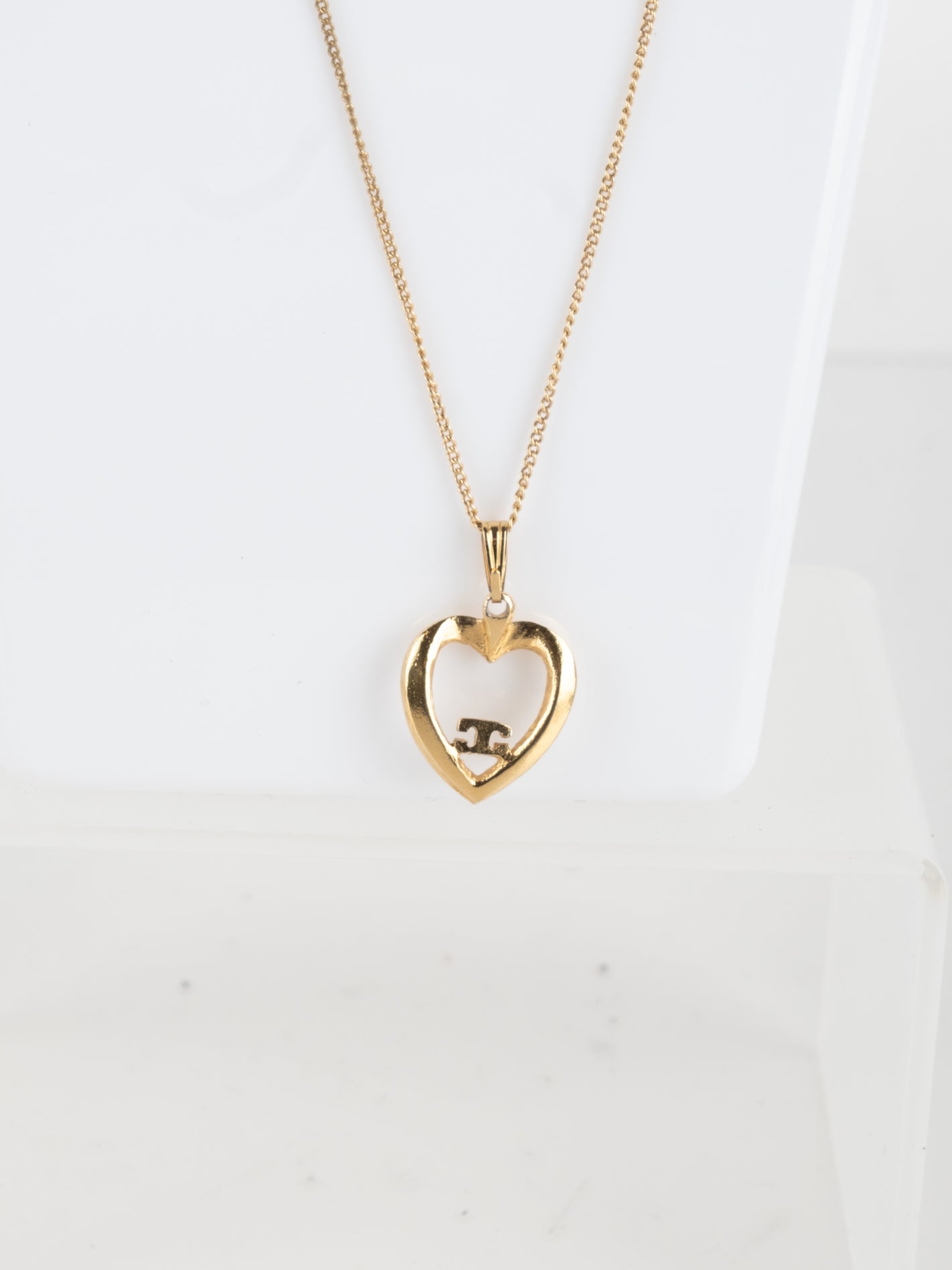 שרשרת עדינה במבע זהב בעלת תליון בצורת לב חלול עם זירקונים מסביב.