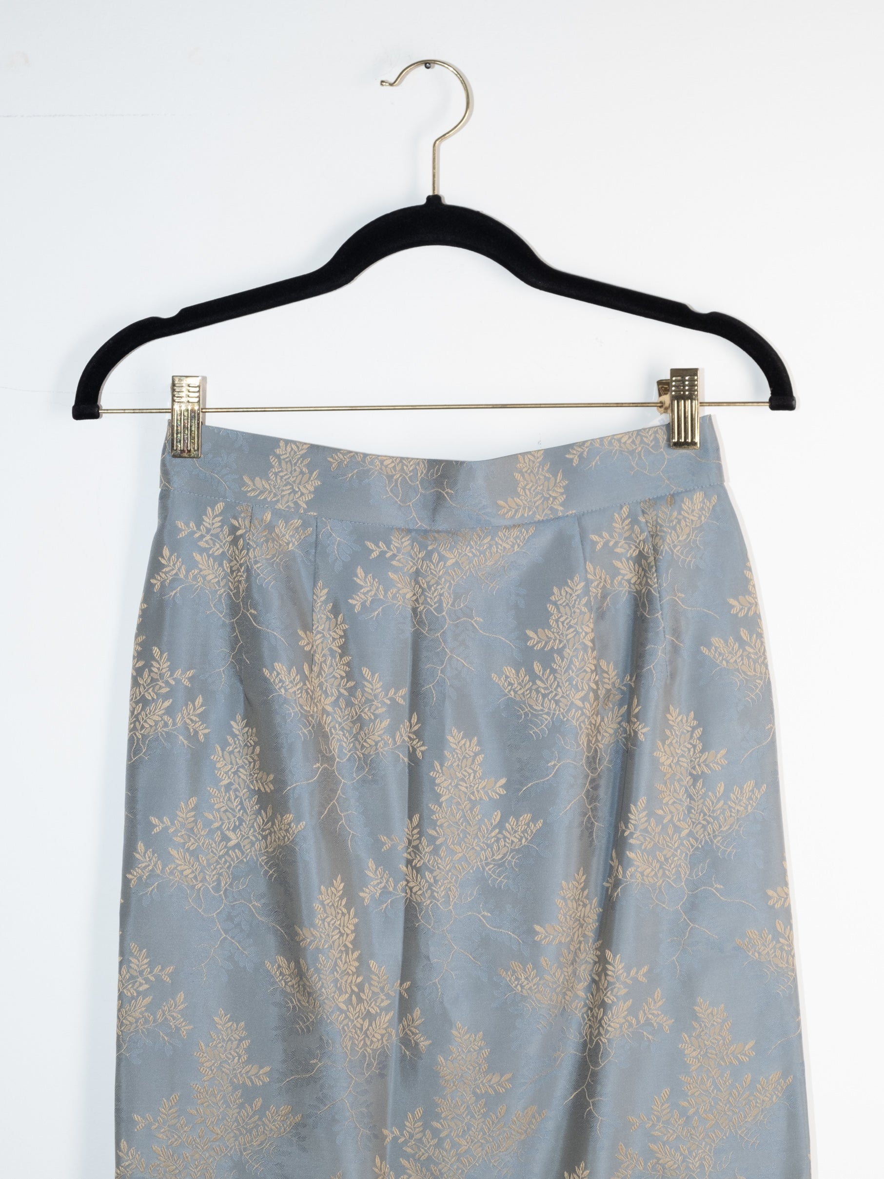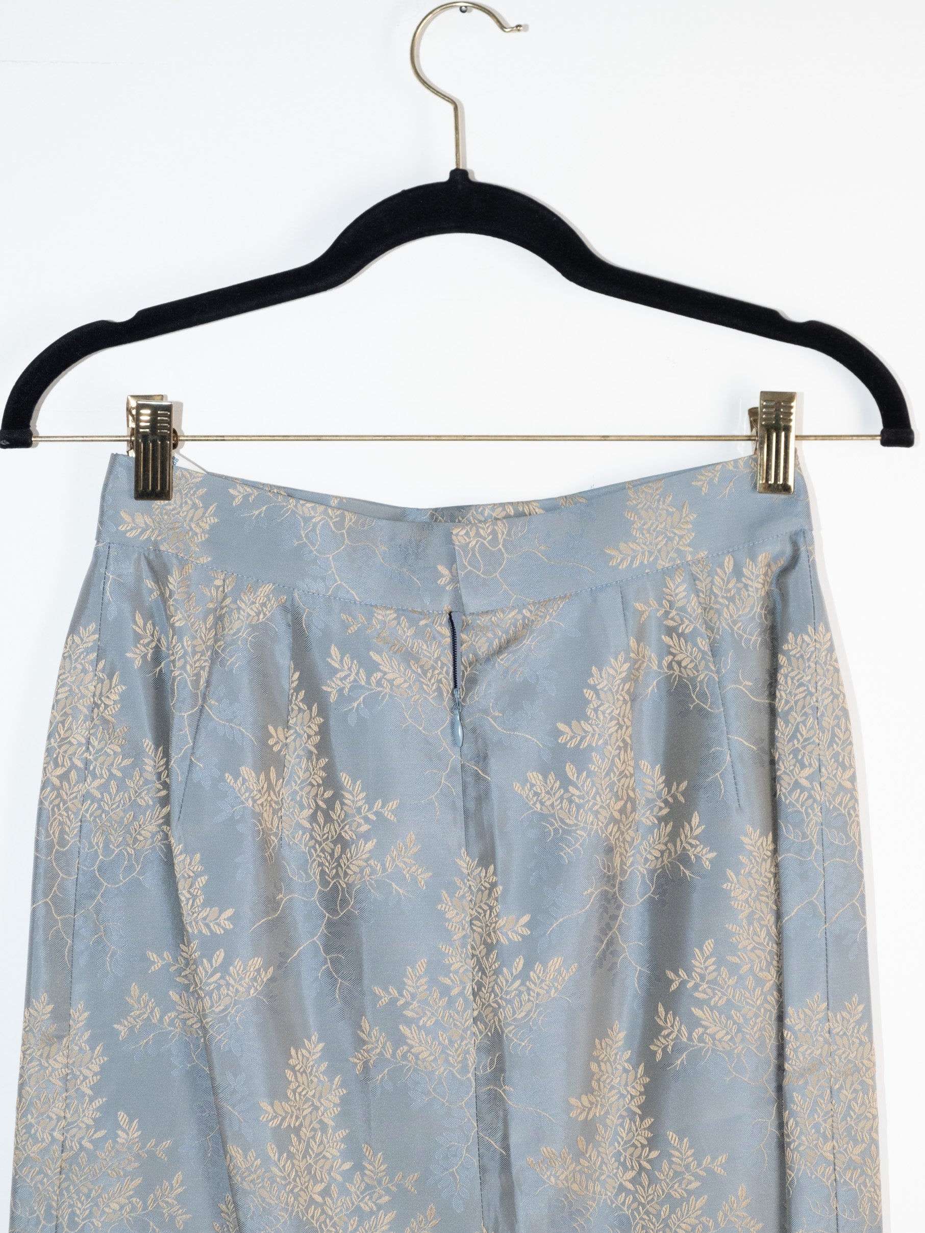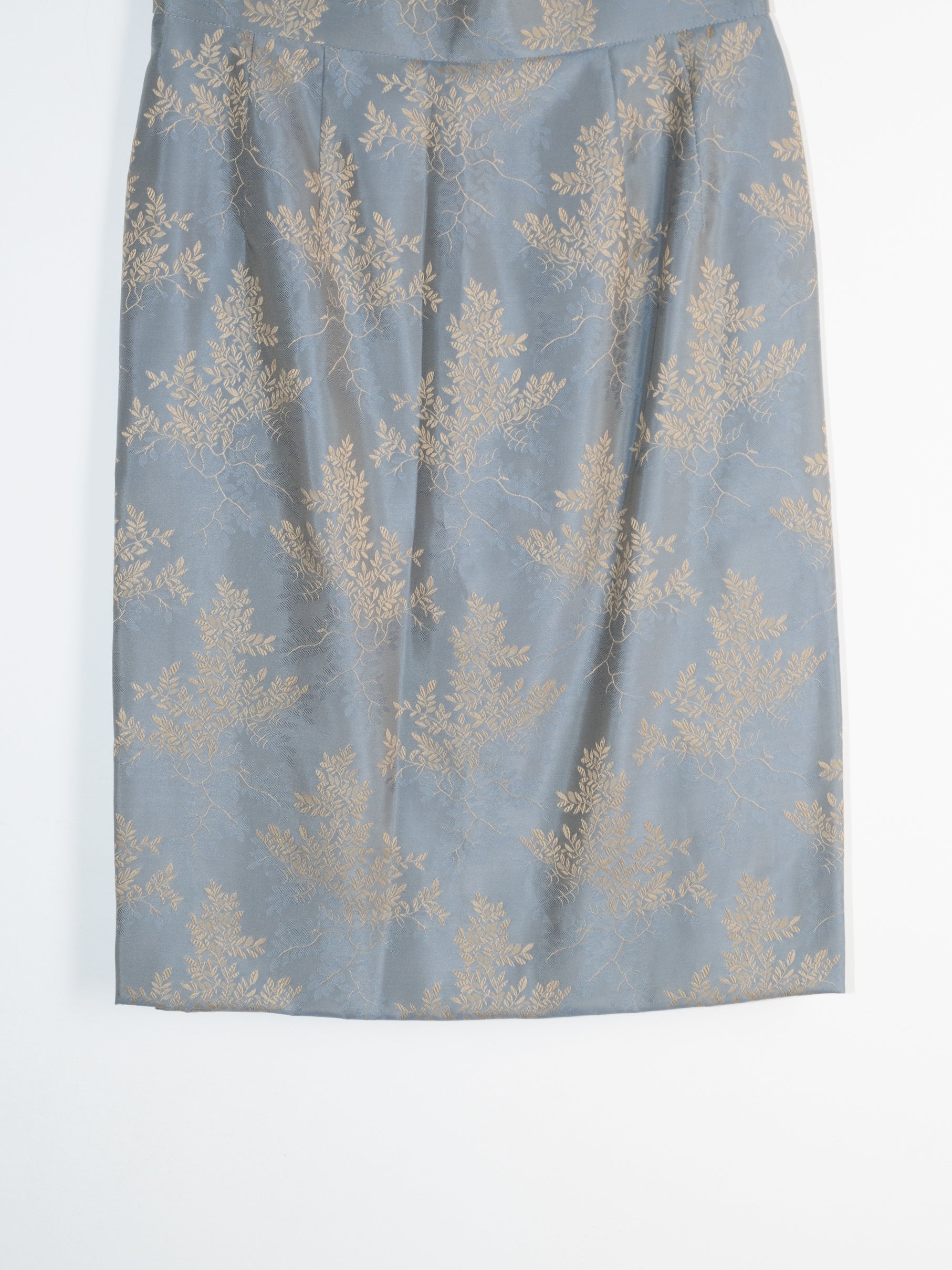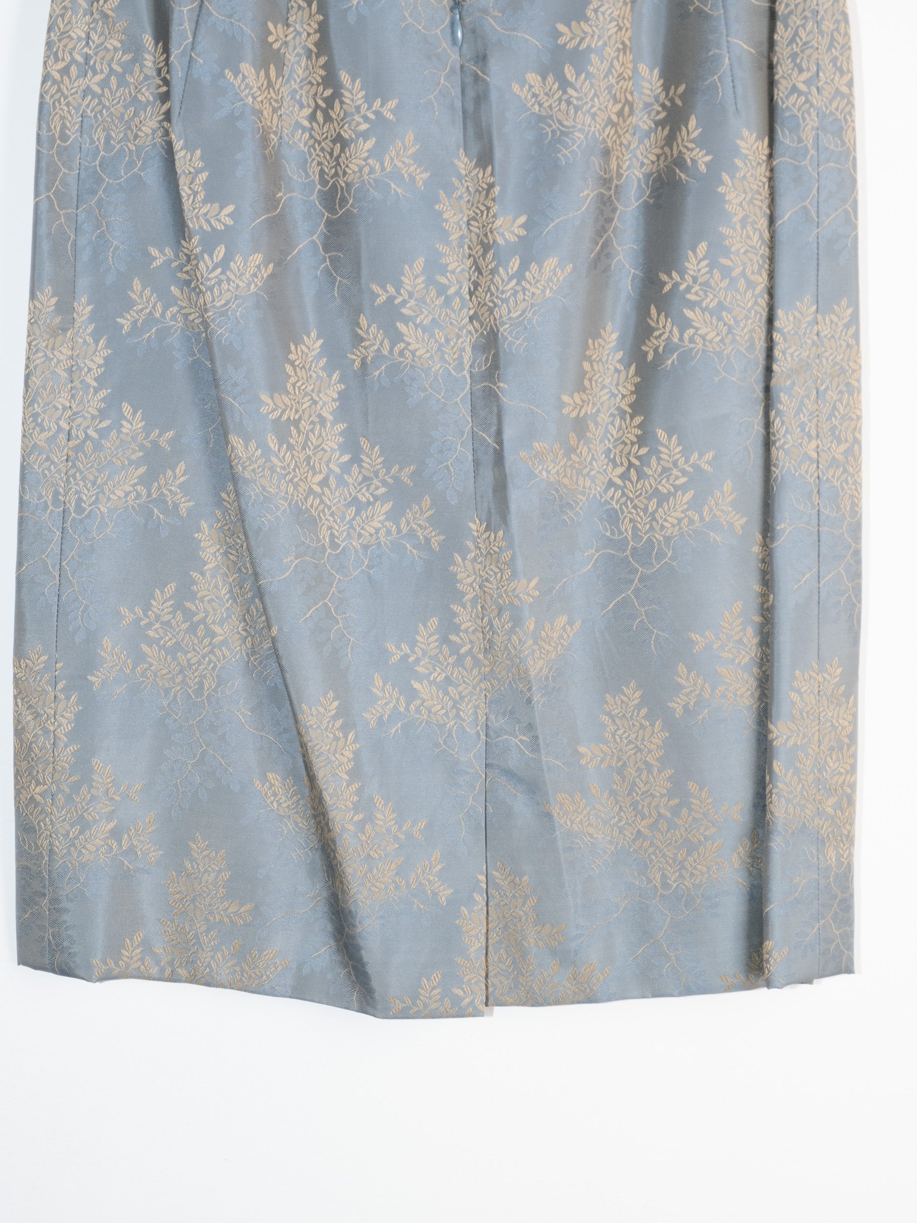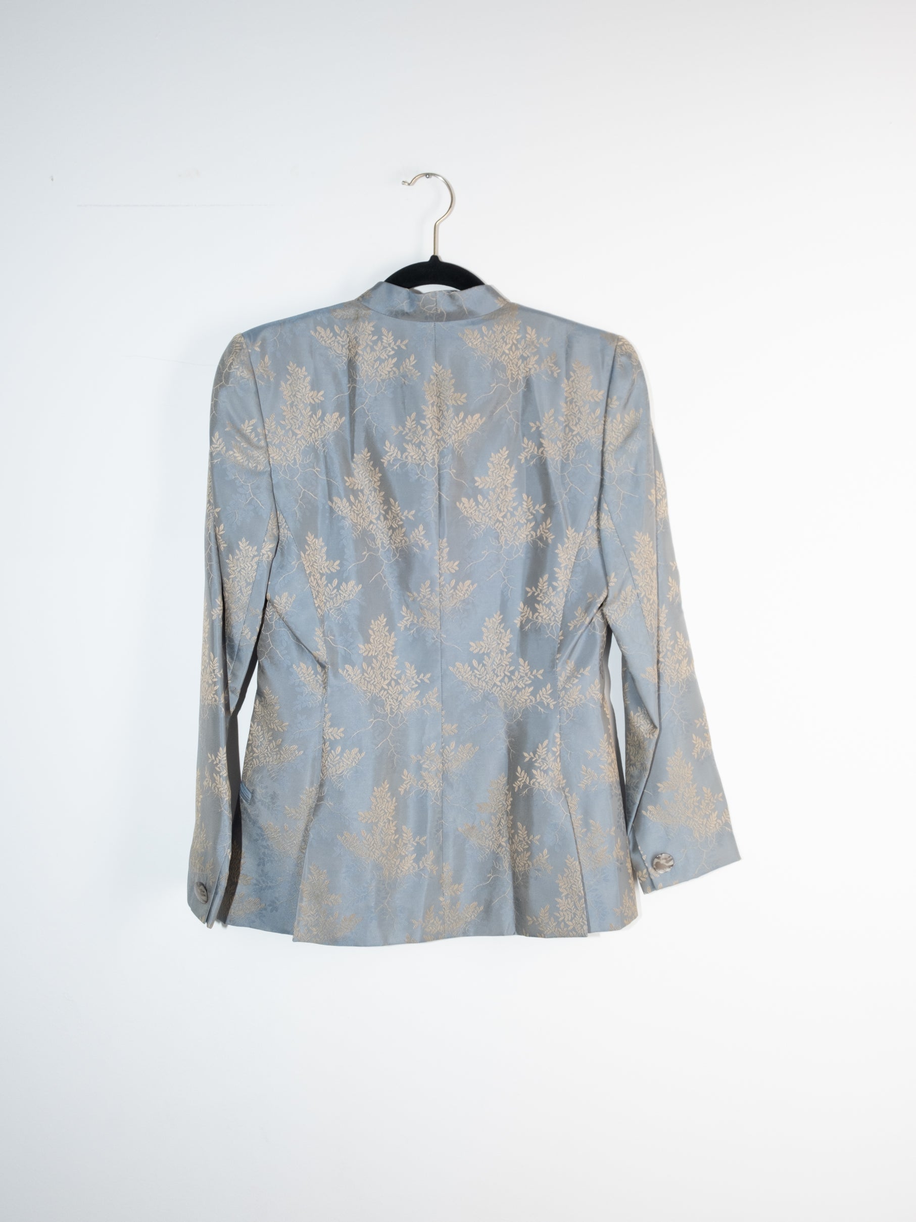 חליפה מדהים בל בלייזר מחויט וחצאית בצבע תכלת אפרפר עם ציורים מוזהבים של טבע בסגנון היפני. בלייזר נסגר באמצעות כפתור, בעל שני כיסים צדדיים ללא סגירה. בסיומת של כל שרוול ישנו כפתור אך משמש לצורך קישוט בלבד.