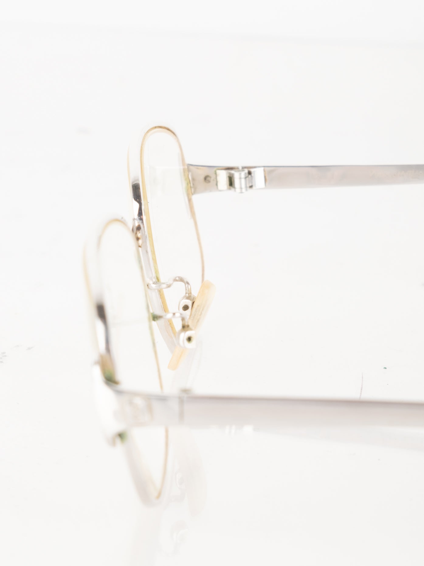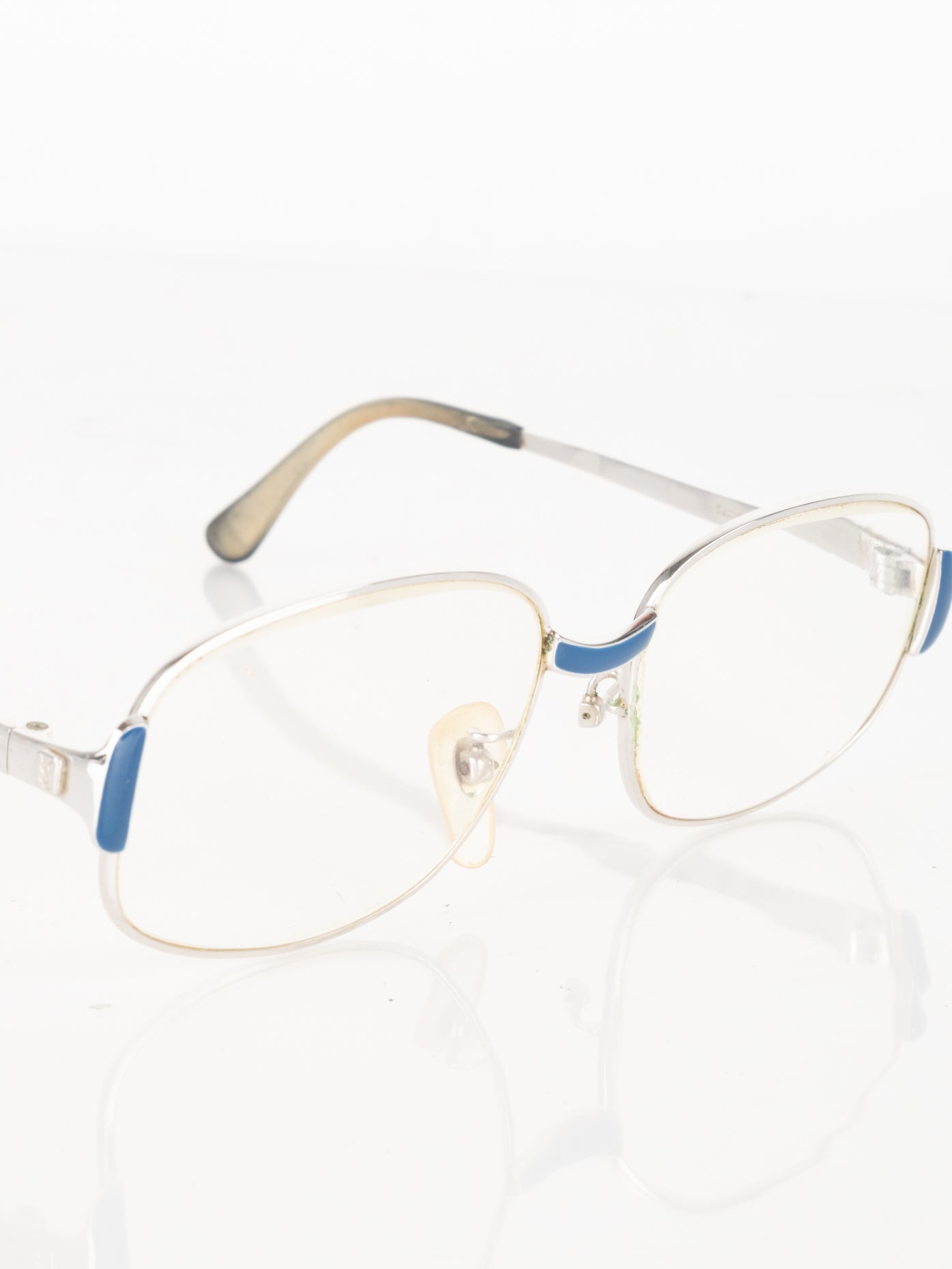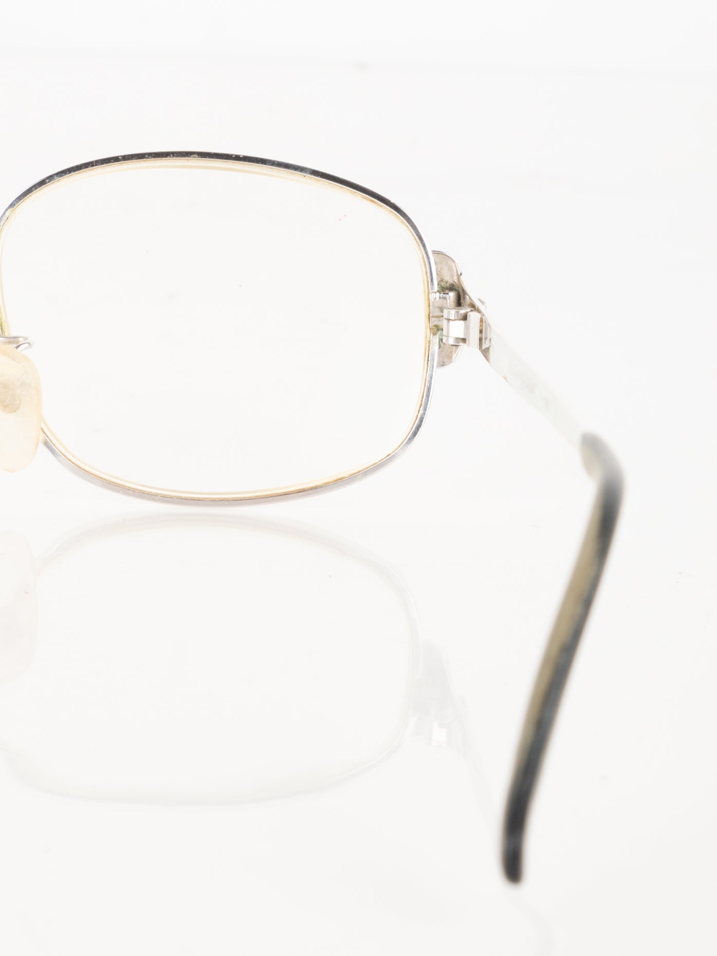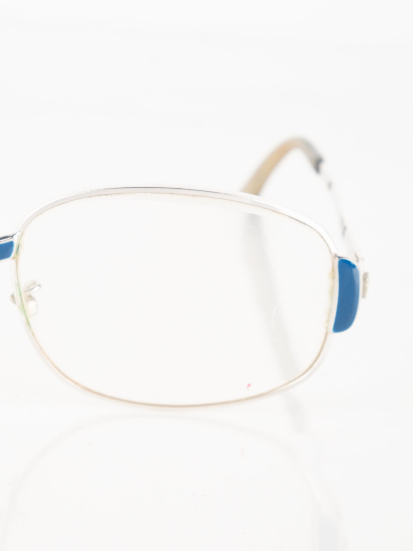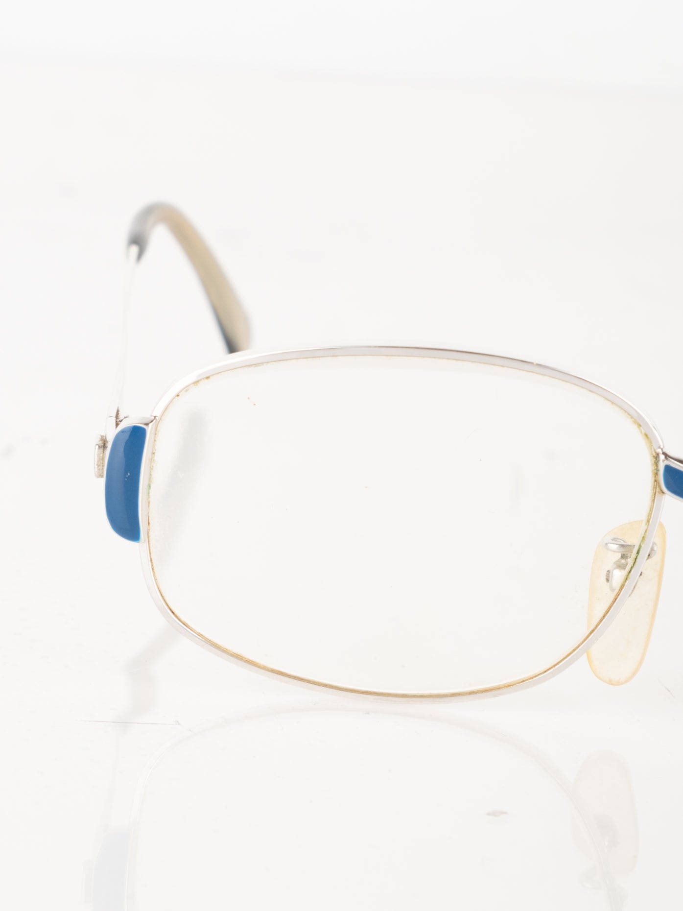 קיימות שריטות רבות על המסגרת והעדשה שלה משקפיים וישנם סימני חלודה. חלק הפלטיק השמאלי חסר.