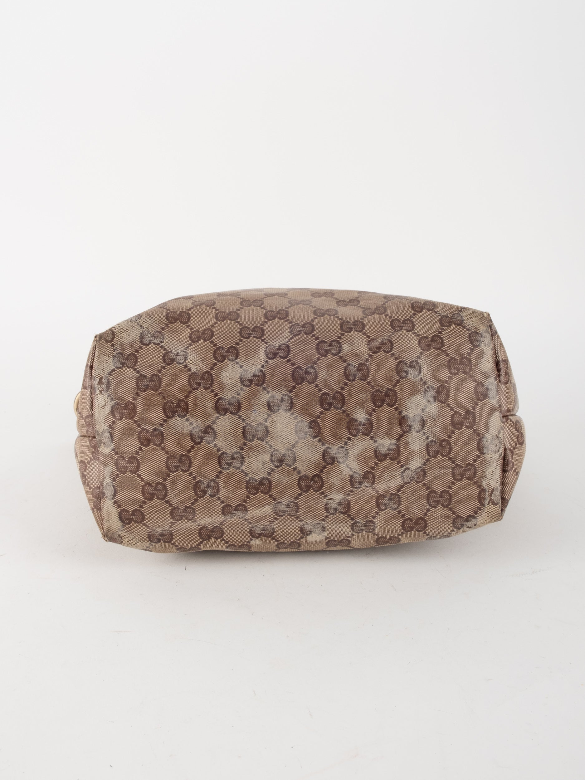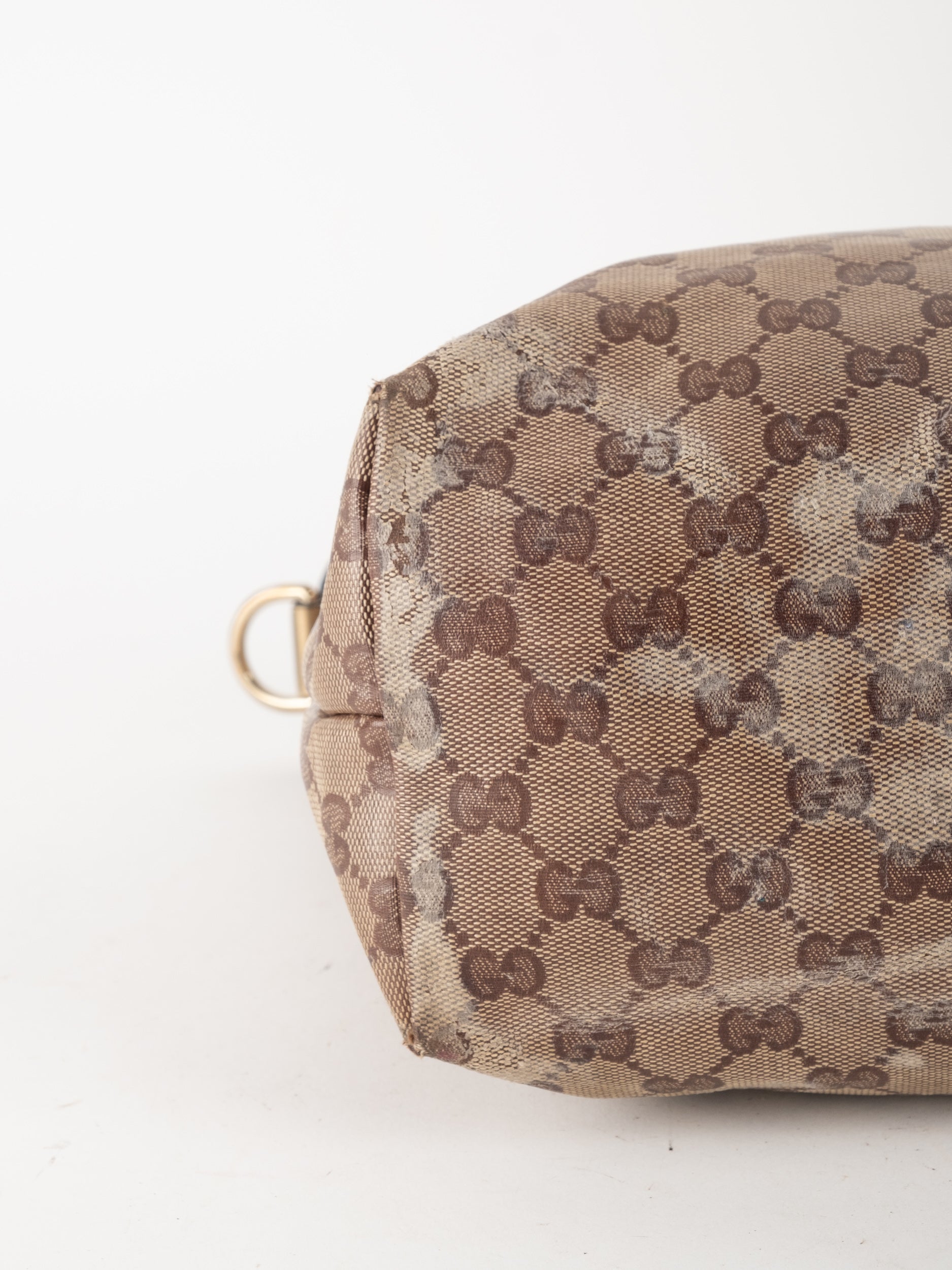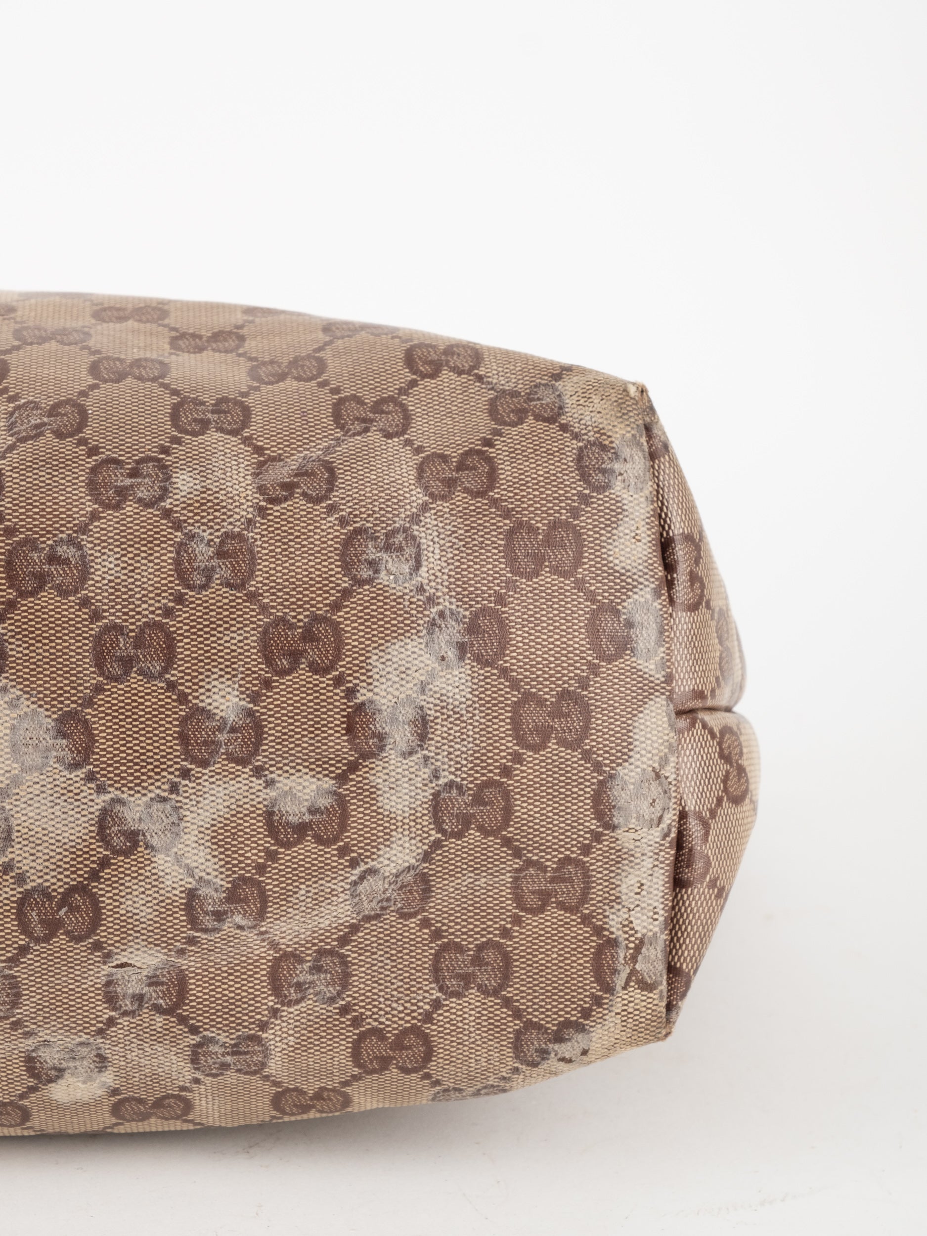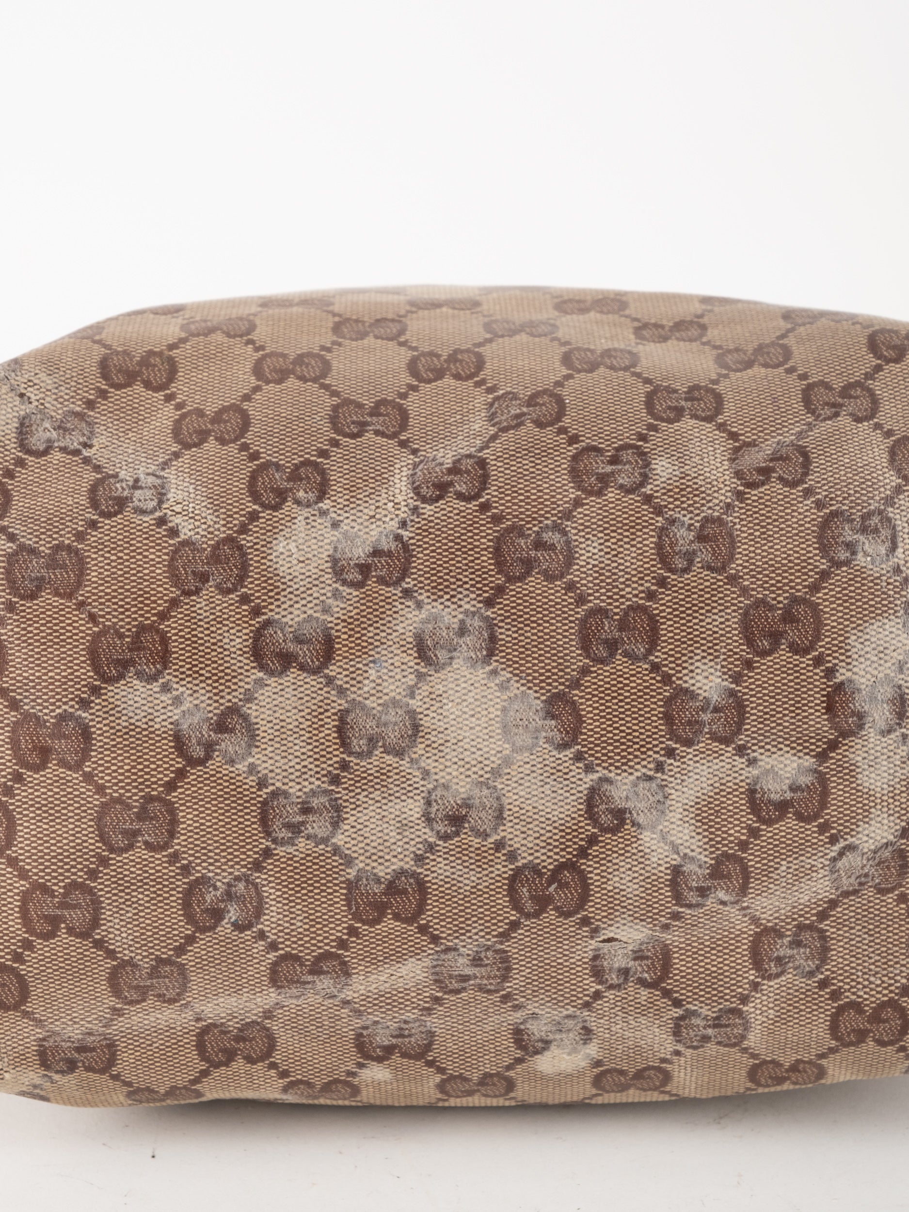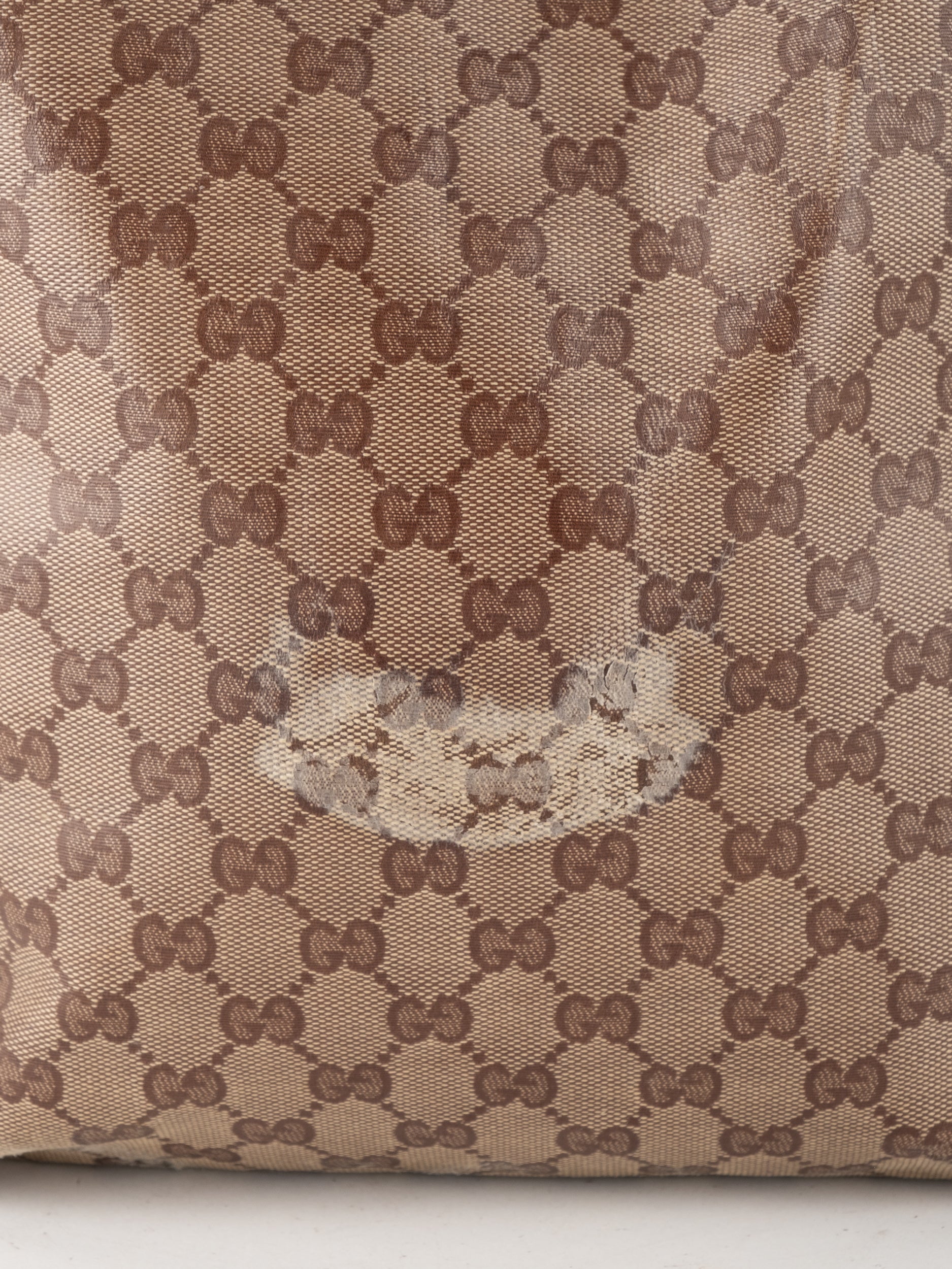 לתיק סימני שימוש רבים ומשמעותיים. קיימת שחיקה ניכרת, כתמים ובלאי בקנבס ובעור. הפריט במצב וינטג' מודגש. כלל סימני השימוש מופיעים בתמונות.