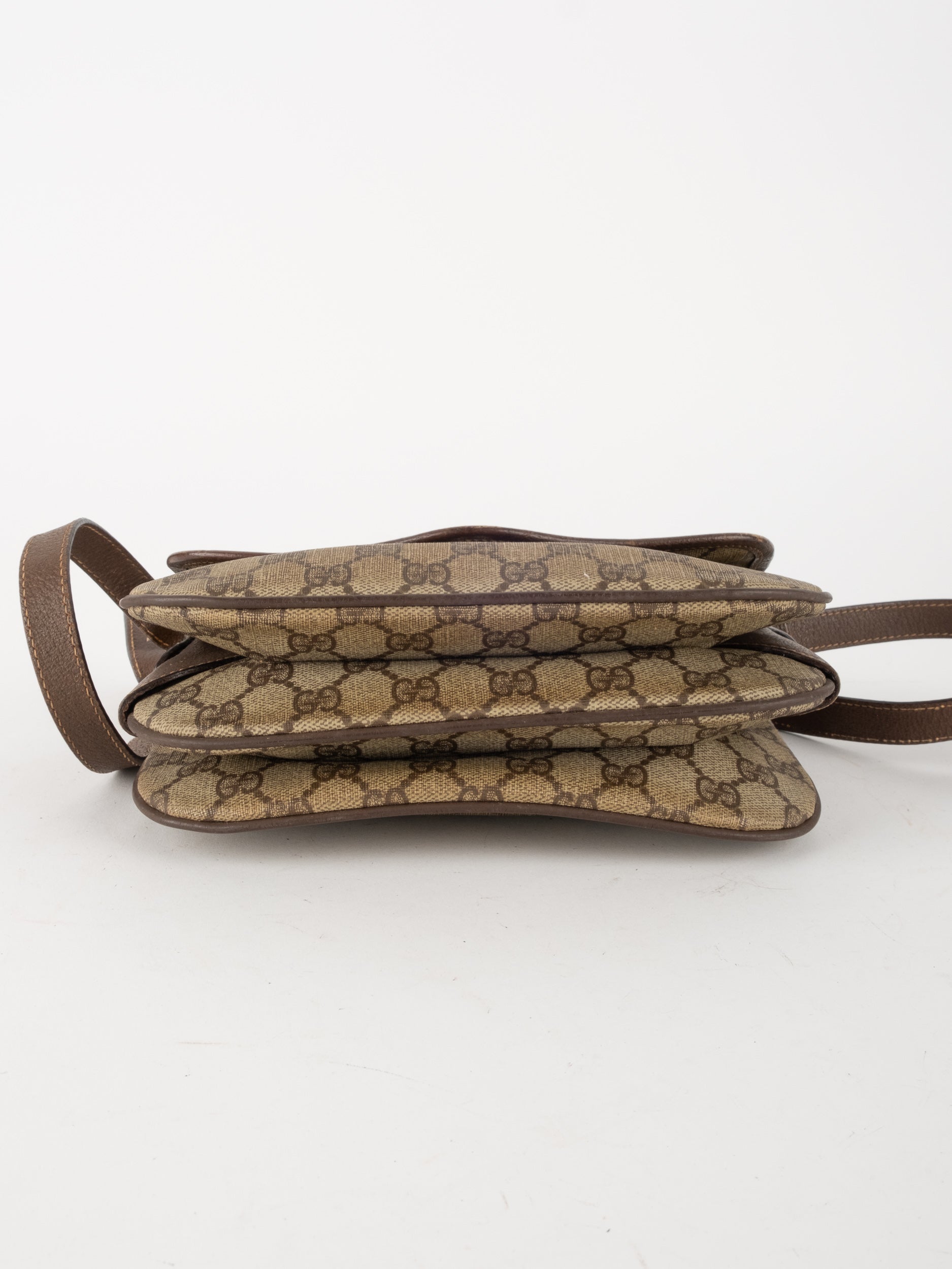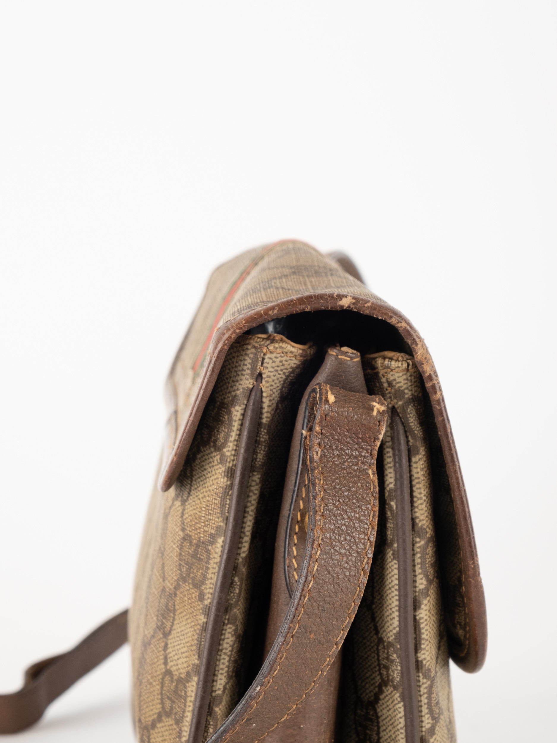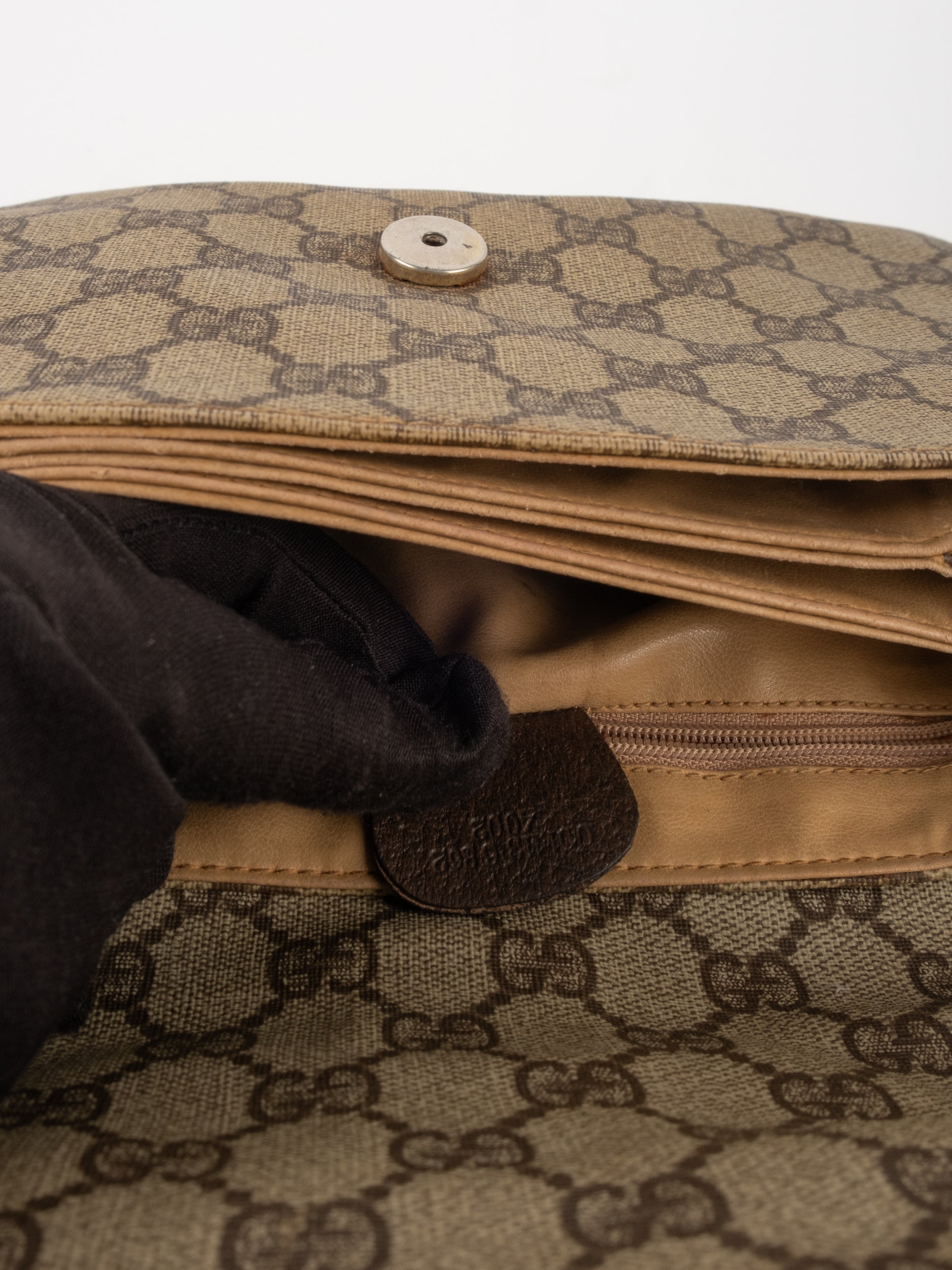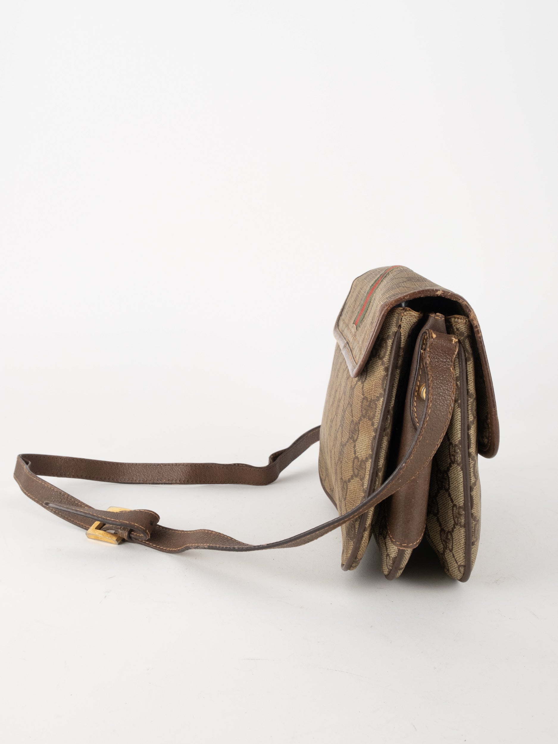 תיק צד של גוצ'י וינטג' יד שנייה בדוגמת GG Supreme בגווני בז' וחום, עם פס ירוק־אדום אייקוני במרכז ועיטורי עור חומים. דגם קלאסי שמחבר בין מורשת איטלקית מובהקת לאמירה אופנתית ברורה. הצללית הקומפקטית והסגירה הקדמית יוצרים מראה נשי, מדויק ולא מתאמץ. זהו תיק שמעניק תחושת סטייל בטוח ומעודן, כזה שמוסיף עניין לכל לוק יומיומי ומשדר הבנה אמיתית באופנה.