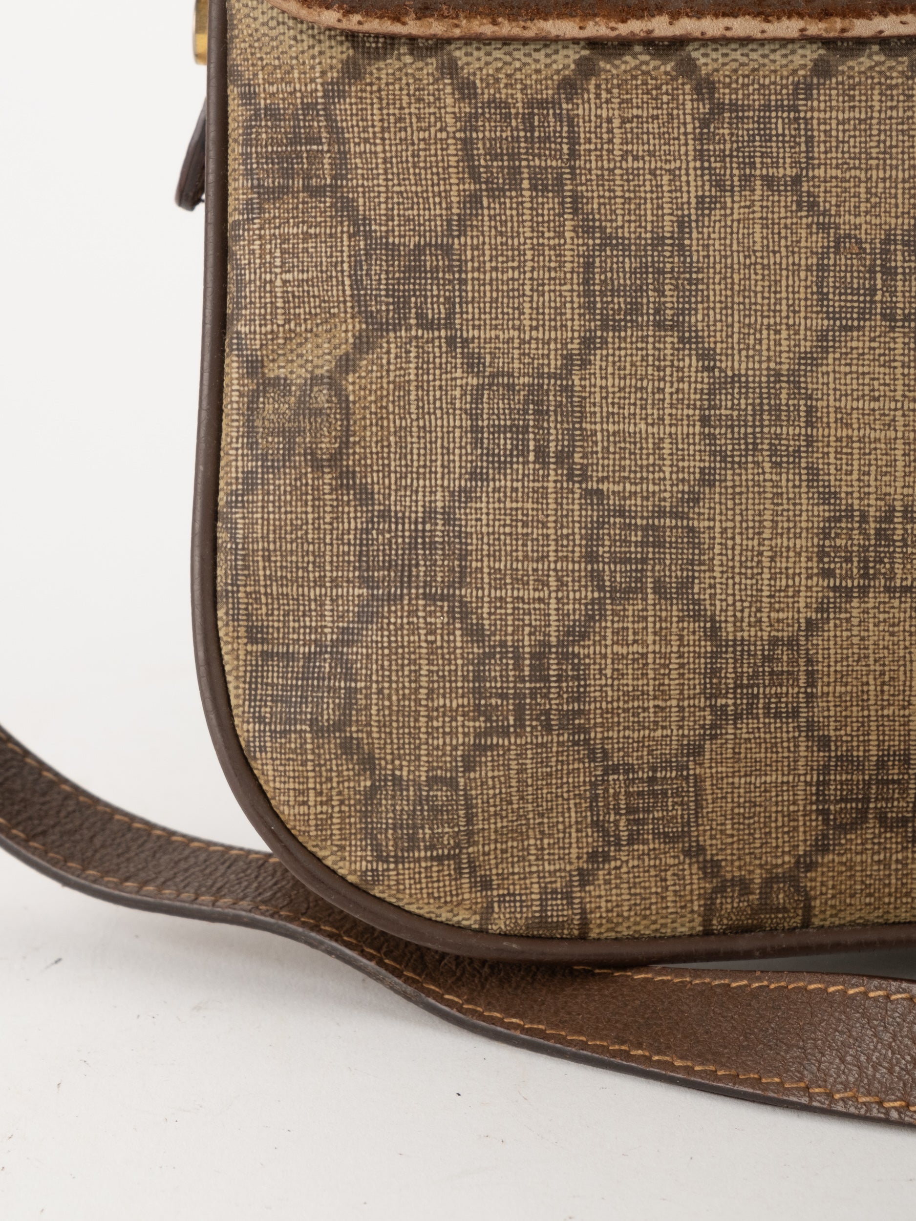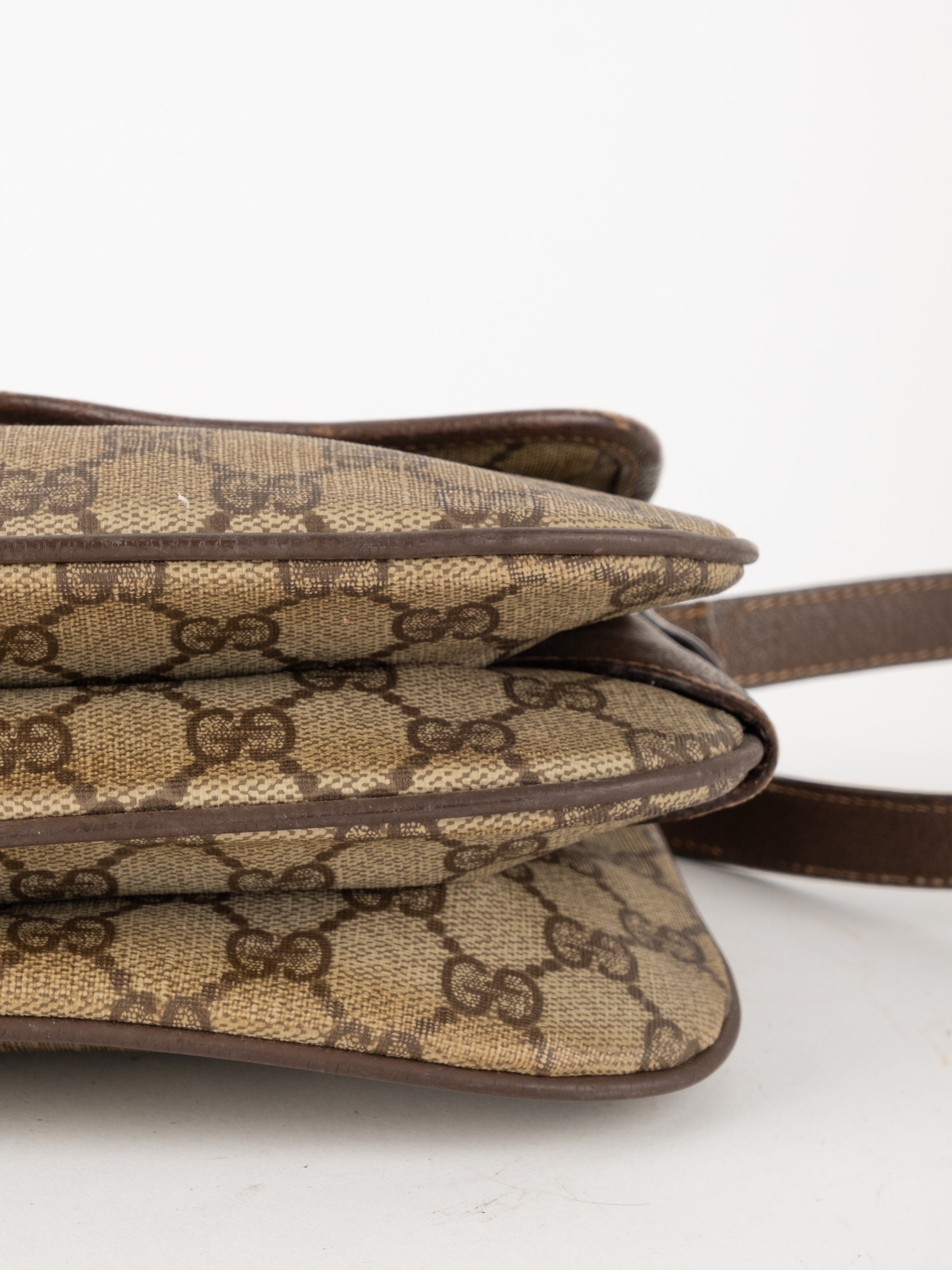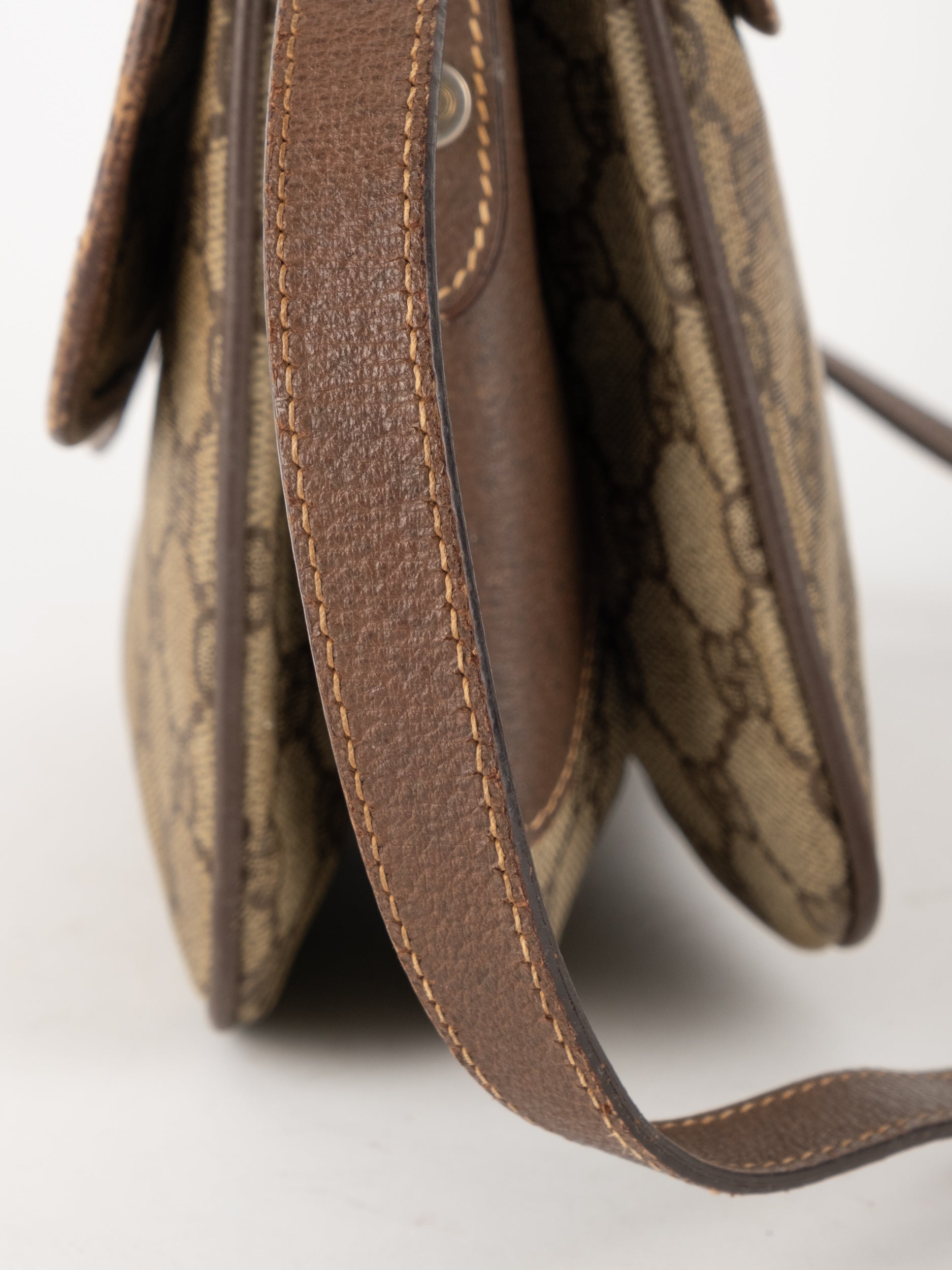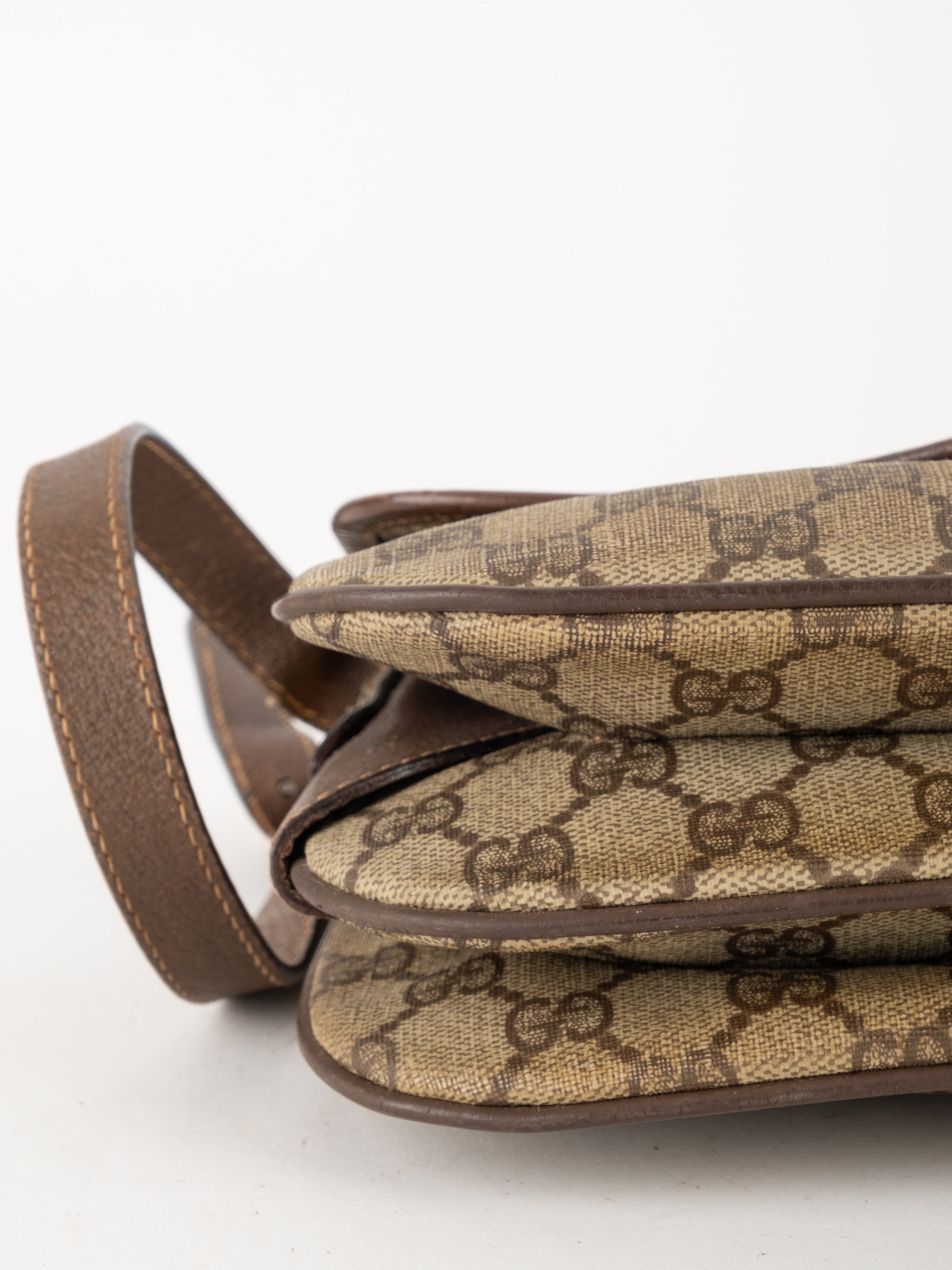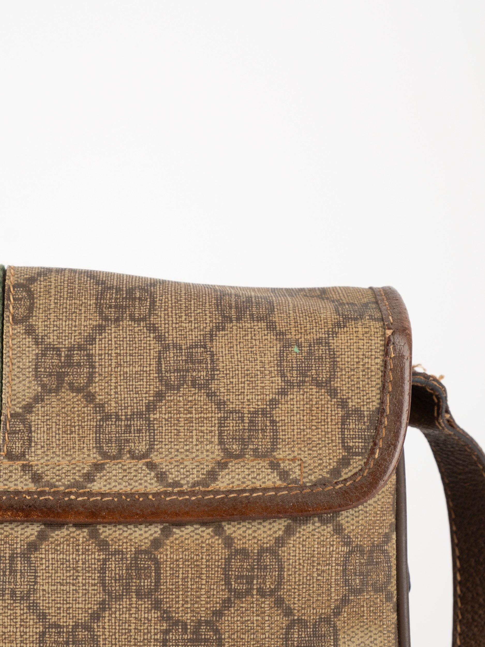 תיק צד של גוצ'י וינטג' יד שנייה בדוגמת GG Supreme בגווני בז' וחום, עם פס ירוק־אדום אייקוני במרכז ועיטורי עור חומים. דגם קלאסי שמחבר בין מורשת איטלקית מובהקת לאמירה אופנתית ברורה. הצללית הקומפקטית והסגירה הקדמית יוצרים מראה נשי, מדויק ולא מתאמץ. זהו תיק שמעניק תחושת סטייל בטוח ומעודן, כזה שמוסיף עניין לכל לוק יומיומי ומשדר הבנה אמיתית באופנה.