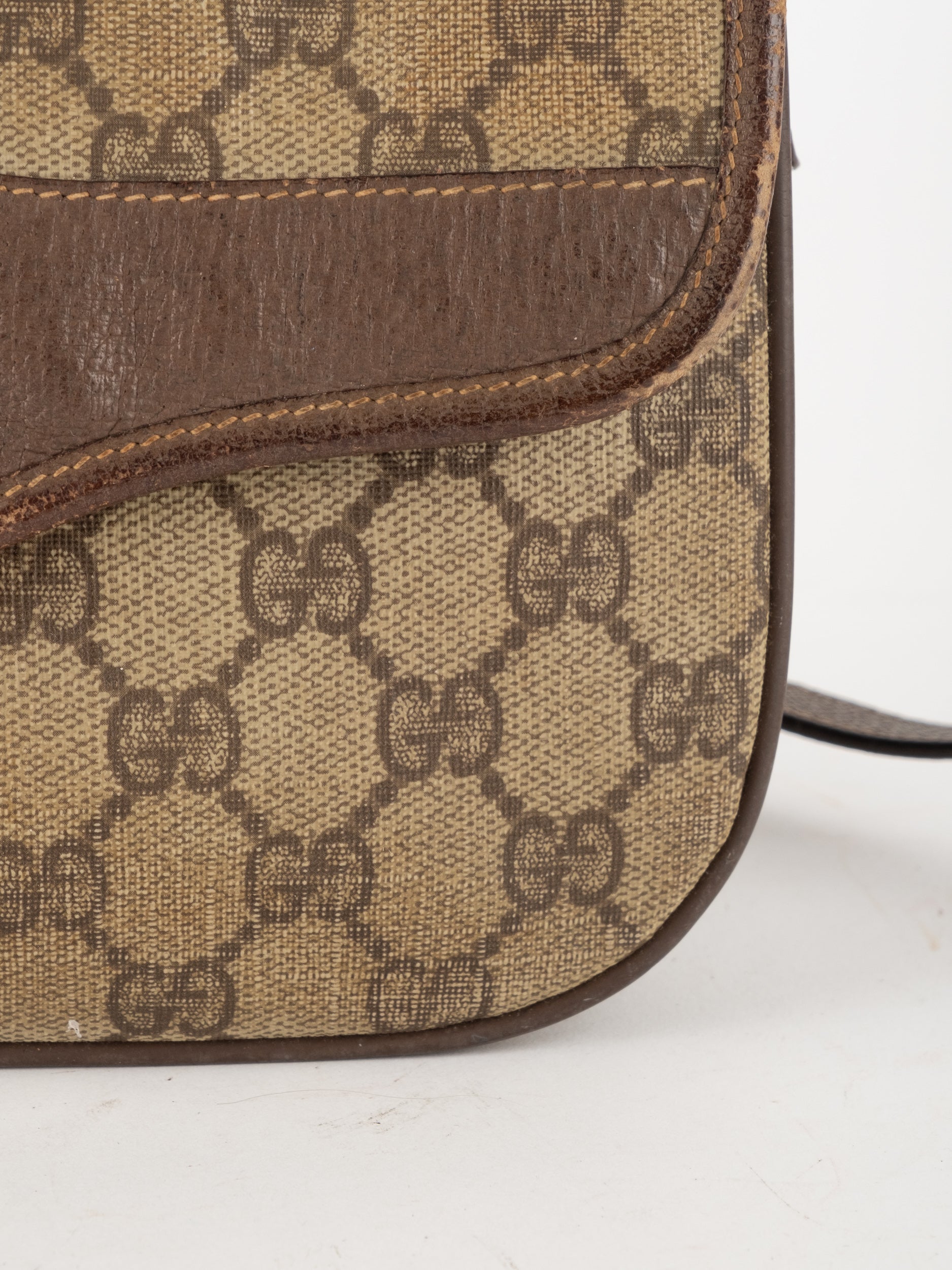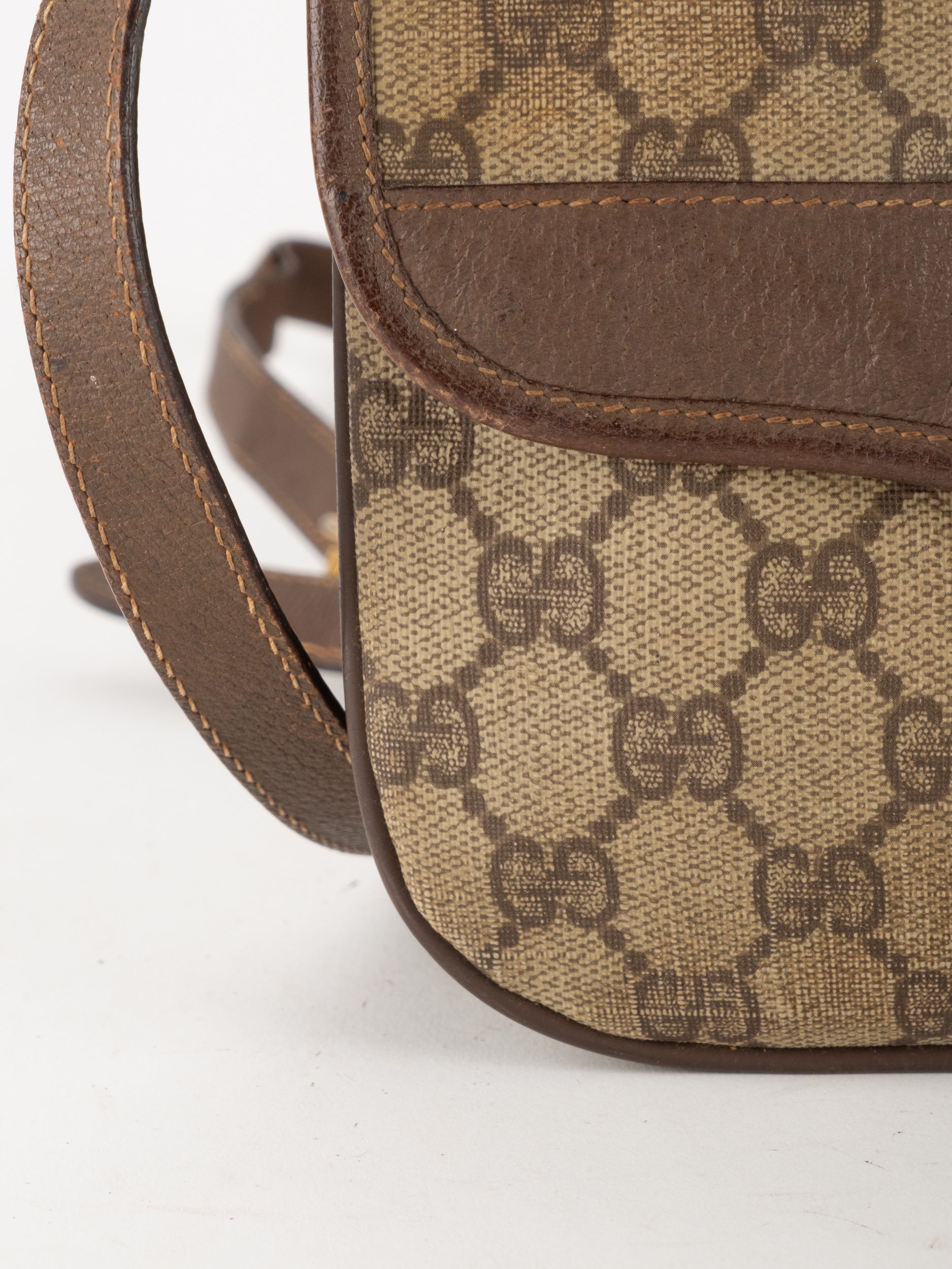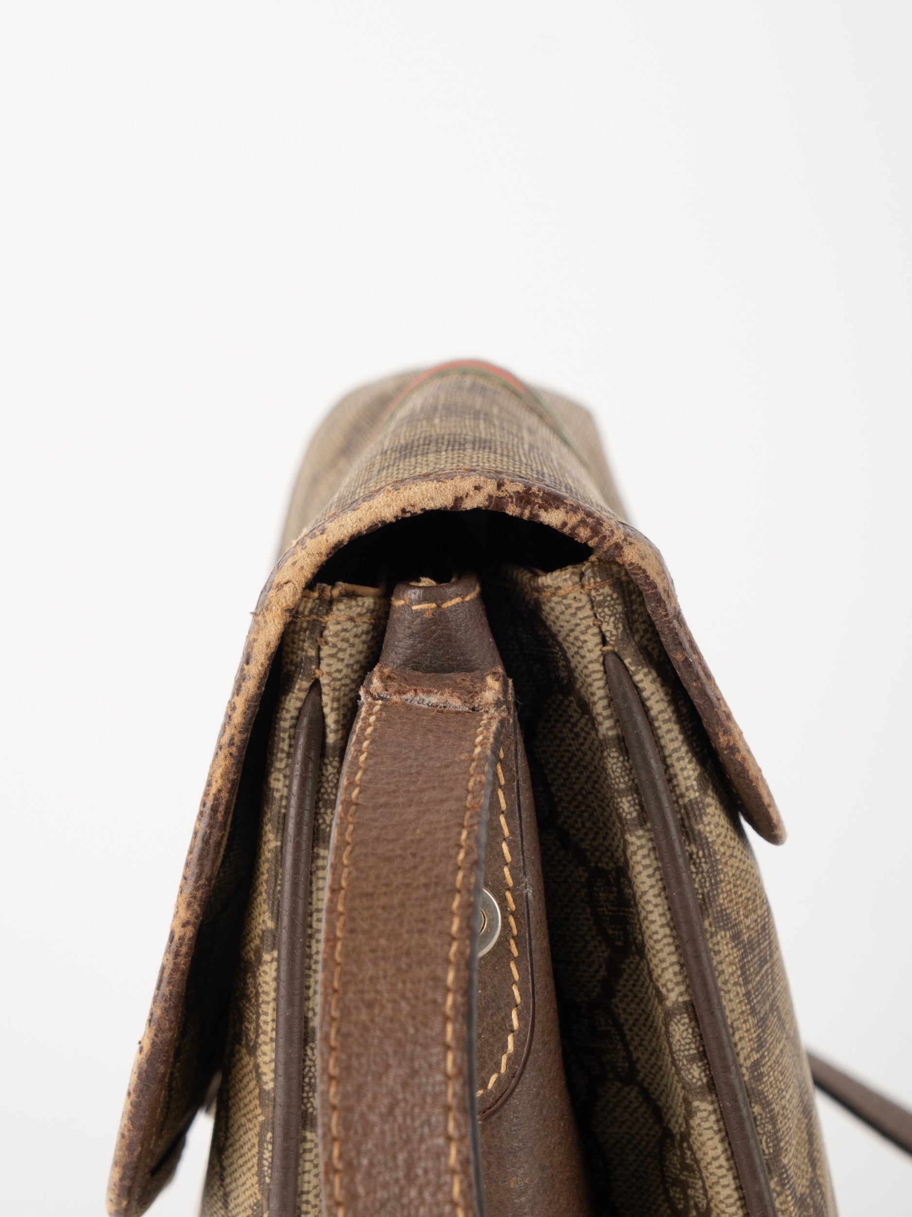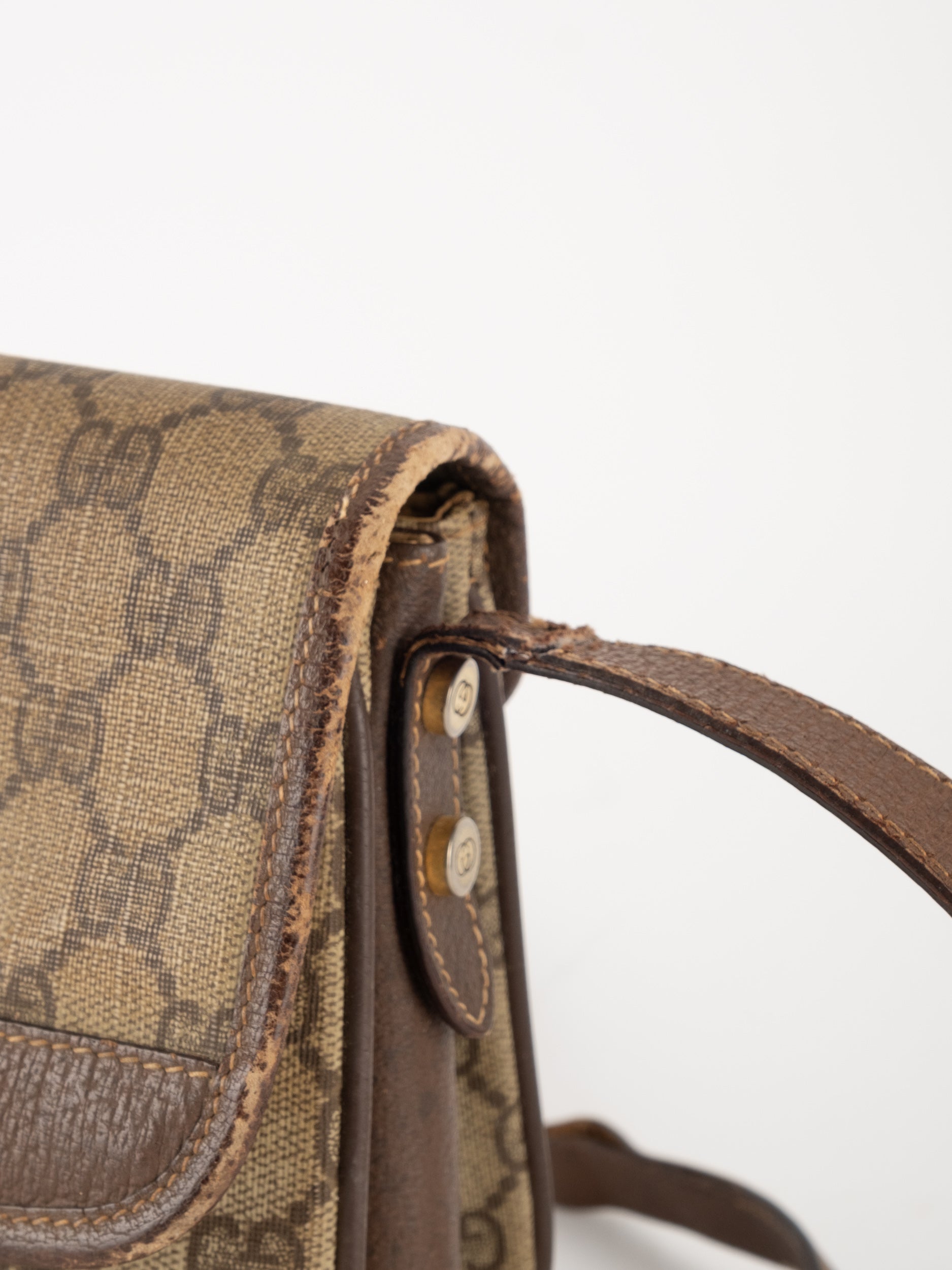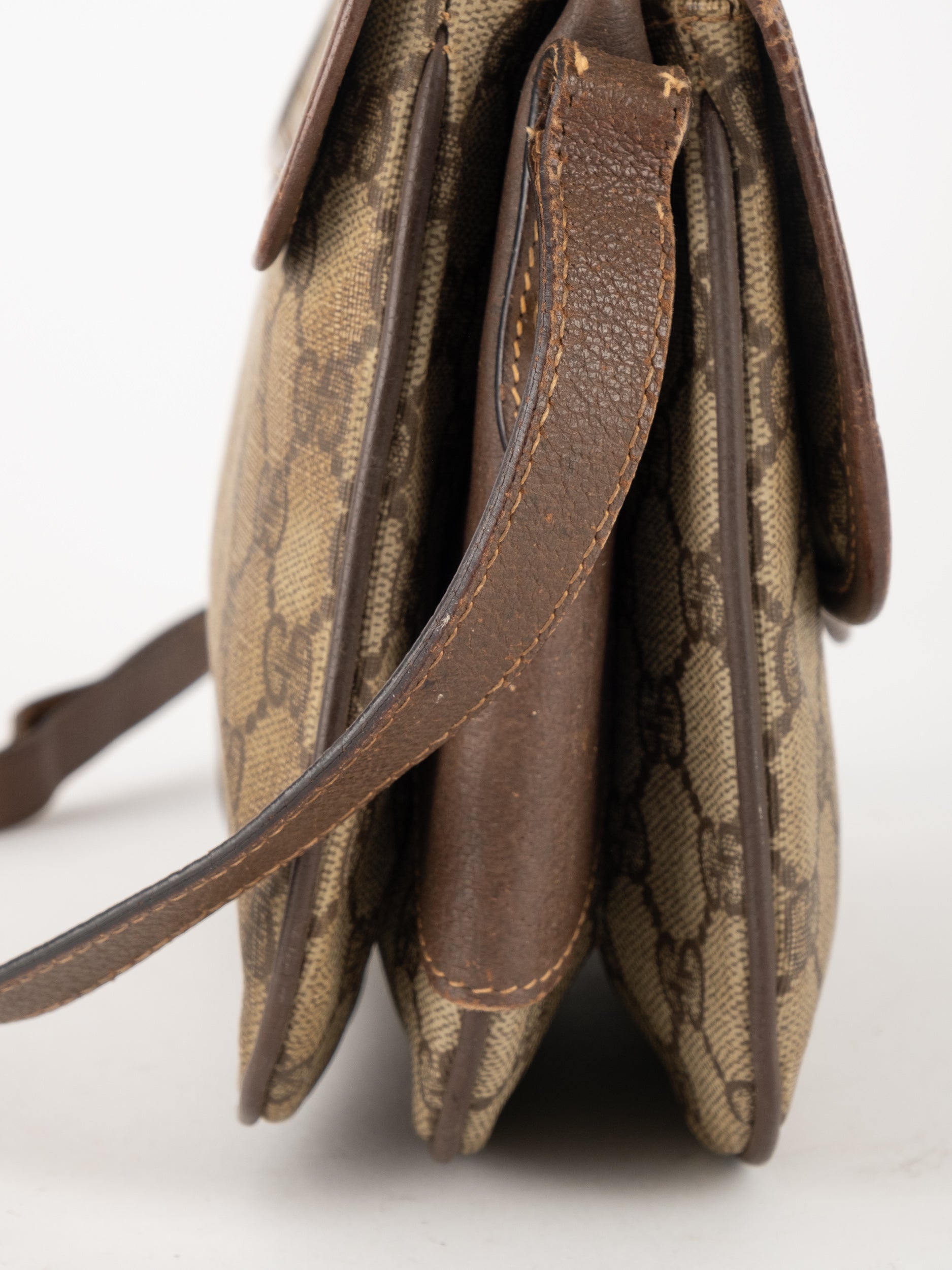 תיק צד של גוצ'י וינטג' יד שנייה בדוגמת GG Supreme בגווני בז' וחום, עם פס ירוק־אדום אייקוני במרכז ועיטורי עור חומים. דגם קלאסי שמחבר בין מורשת איטלקית מובהקת לאמירה אופנתית ברורה. הצללית הקומפקטית והסגירה הקדמית יוצרים מראה נשי, מדויק ולא מתאמץ. זהו תיק שמעניק תחושת סטייל בטוח ומעודן, כזה שמוסיף עניין לכל לוק יומיומי ומשדר הבנה אמיתית באופנה.