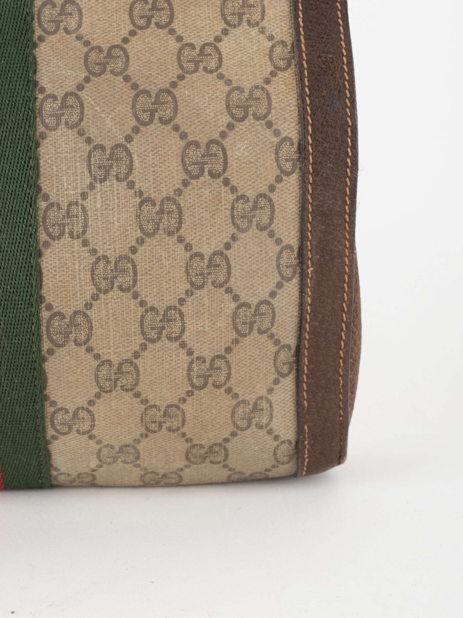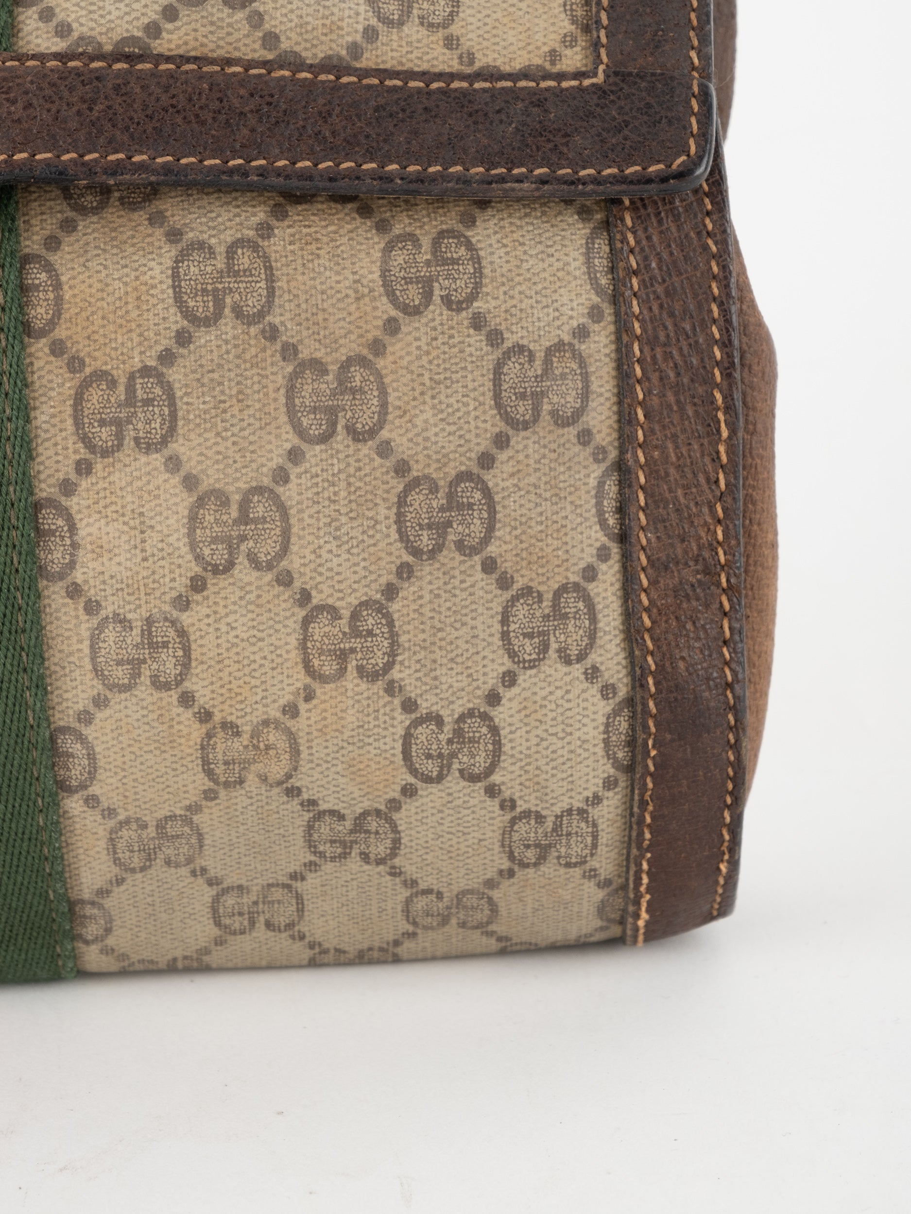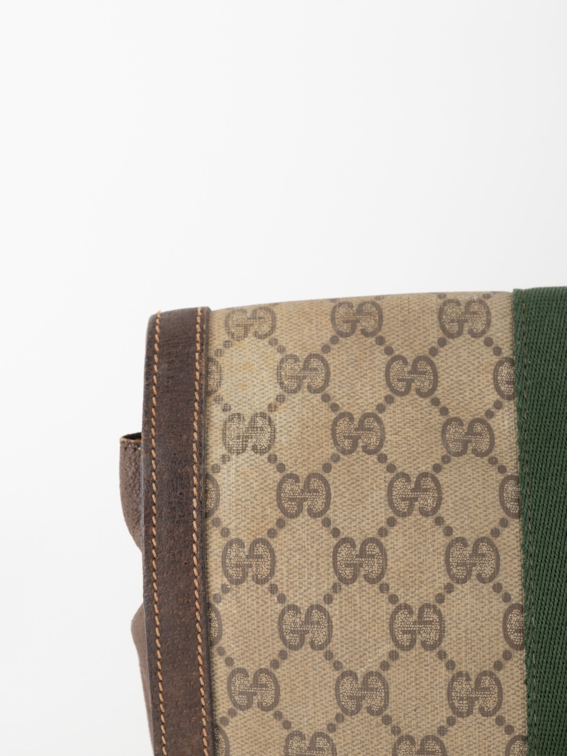 View Similar Productsגוצי GUCCI וינטג' יד שנייה עם דוגמת GG קלאסית בגווני בז’ וחום, בשילוב פס ה-Web האייקוני בירוק ואדום במרכז. עיצוב שמביא איתו את כל ה-DNA של גוצי הקלאסית – מורשת איטלקית, נוכחות ברורה וסטייל על־זמני.