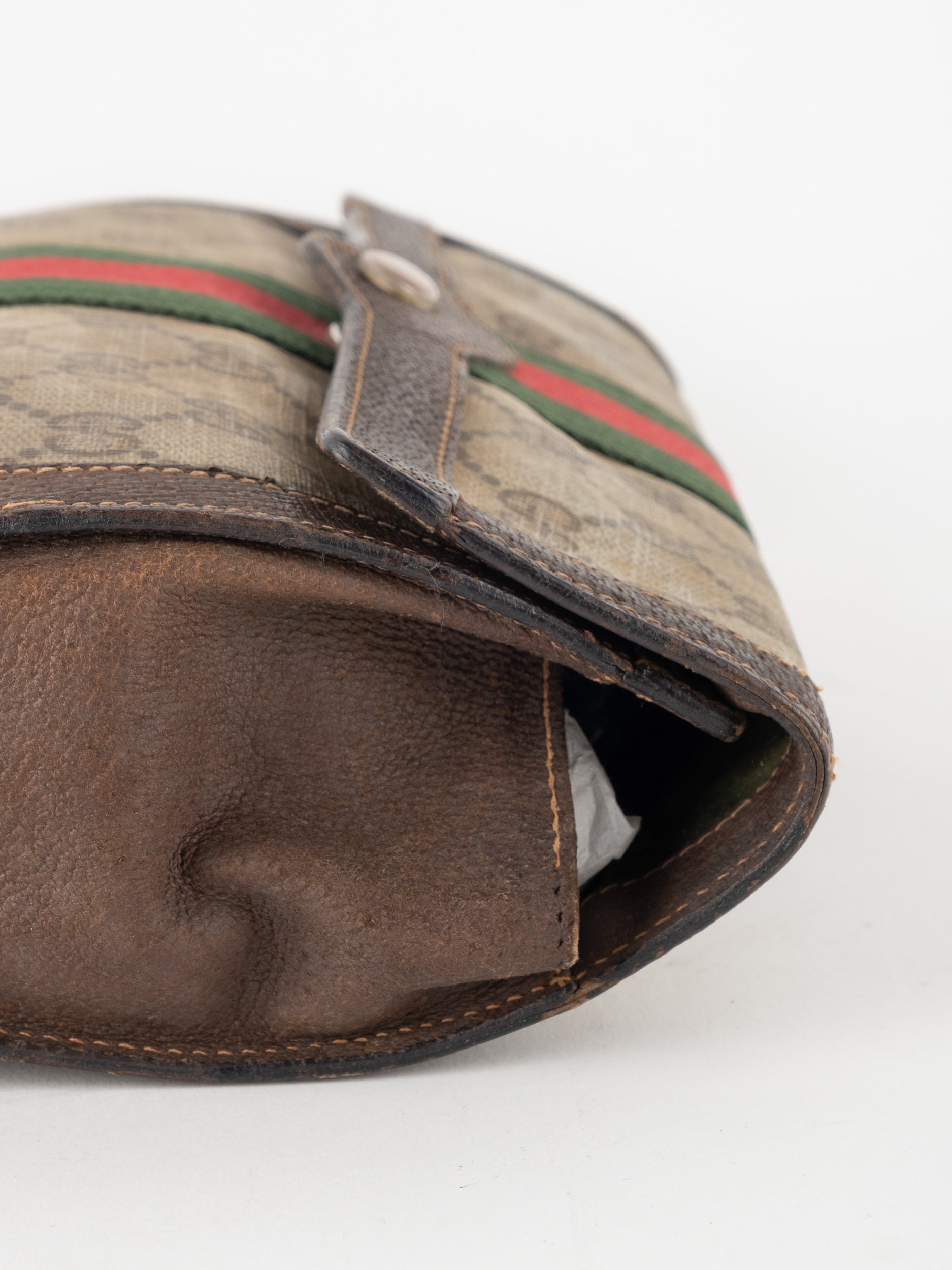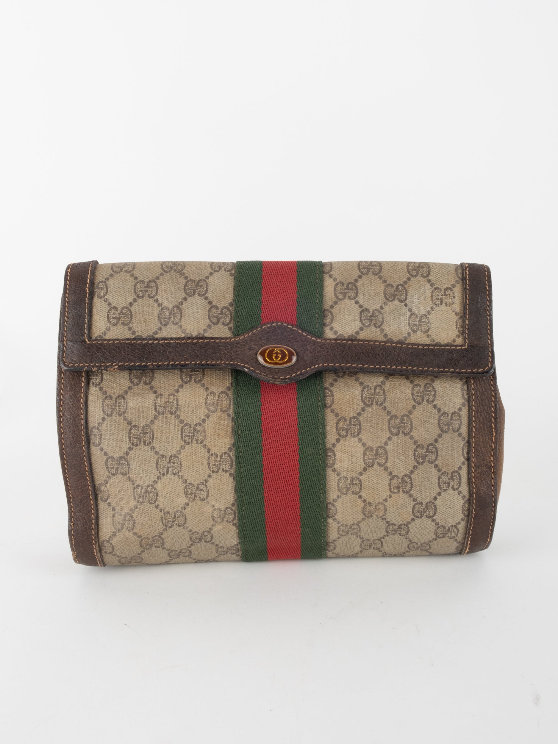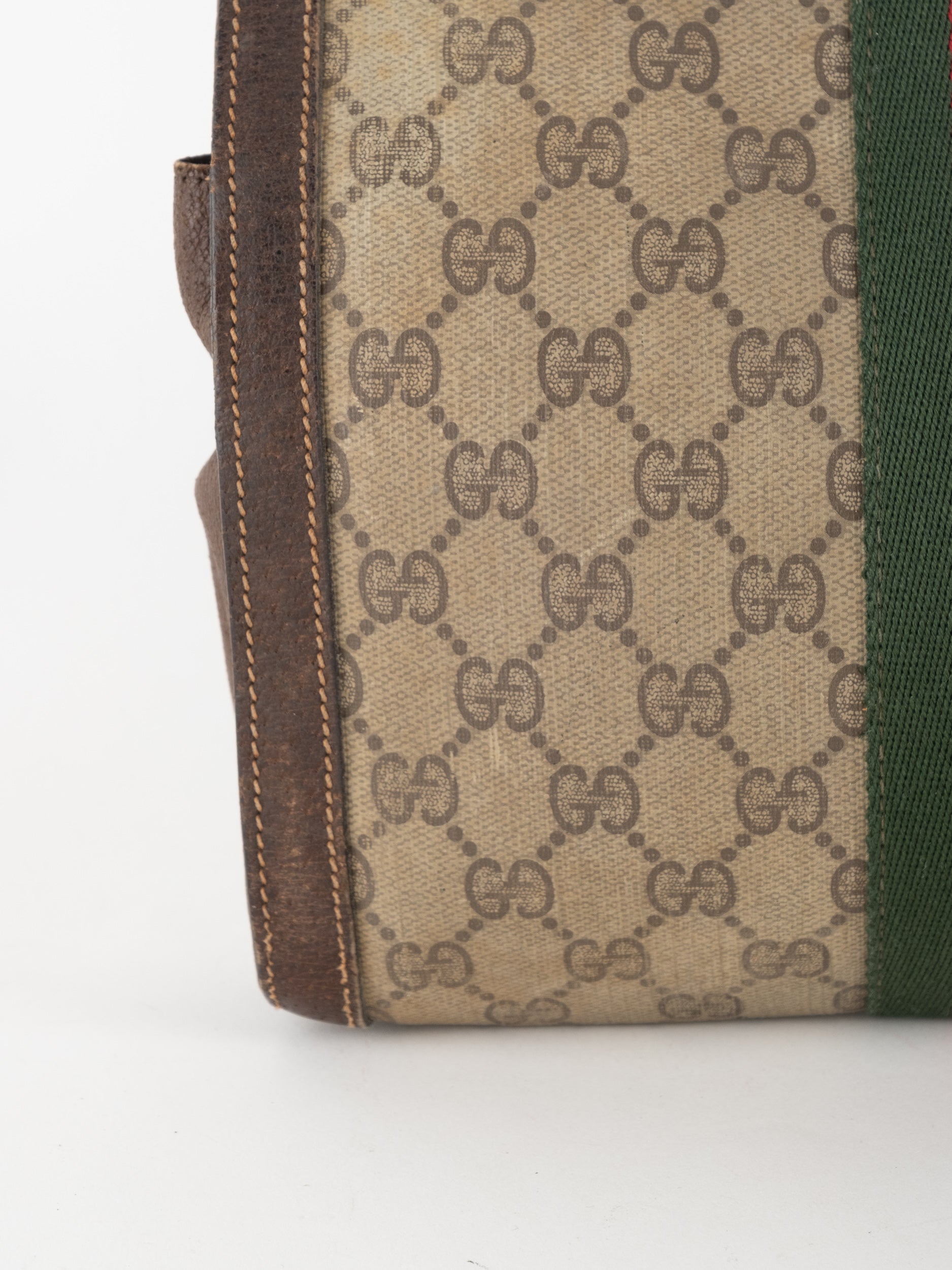 View Similar Productsגוצי GUCCI וינטג' יד שנייה עם דוגמת GG קלאסית בגווני בז’ וחום, בשילוב פס ה-Web האייקוני בירוק ואדום במרכז. עיצוב שמביא איתו את כל ה-DNA של גוצי הקלאסית – מורשת איטלקית, נוכחות ברורה וסטייל על־זמני.