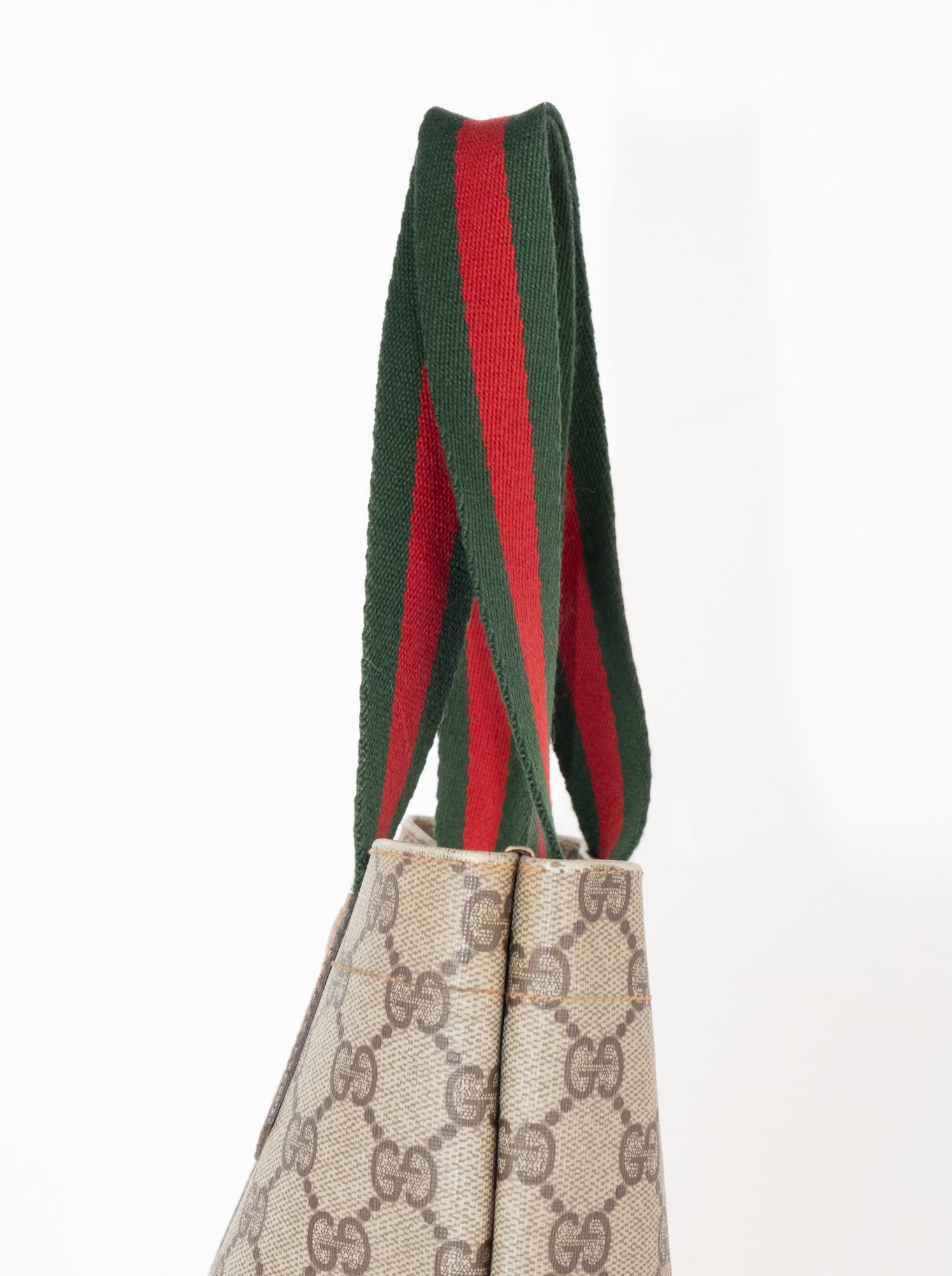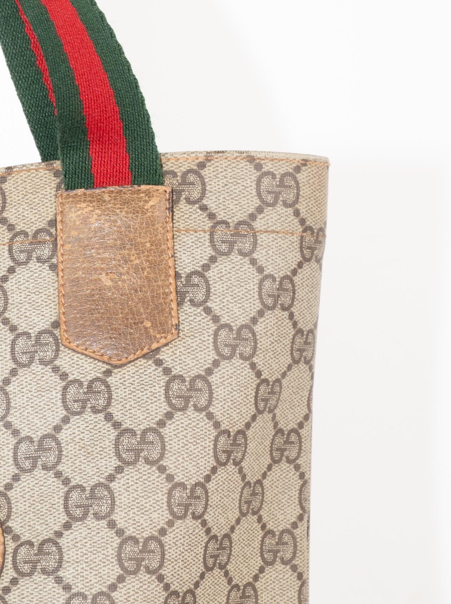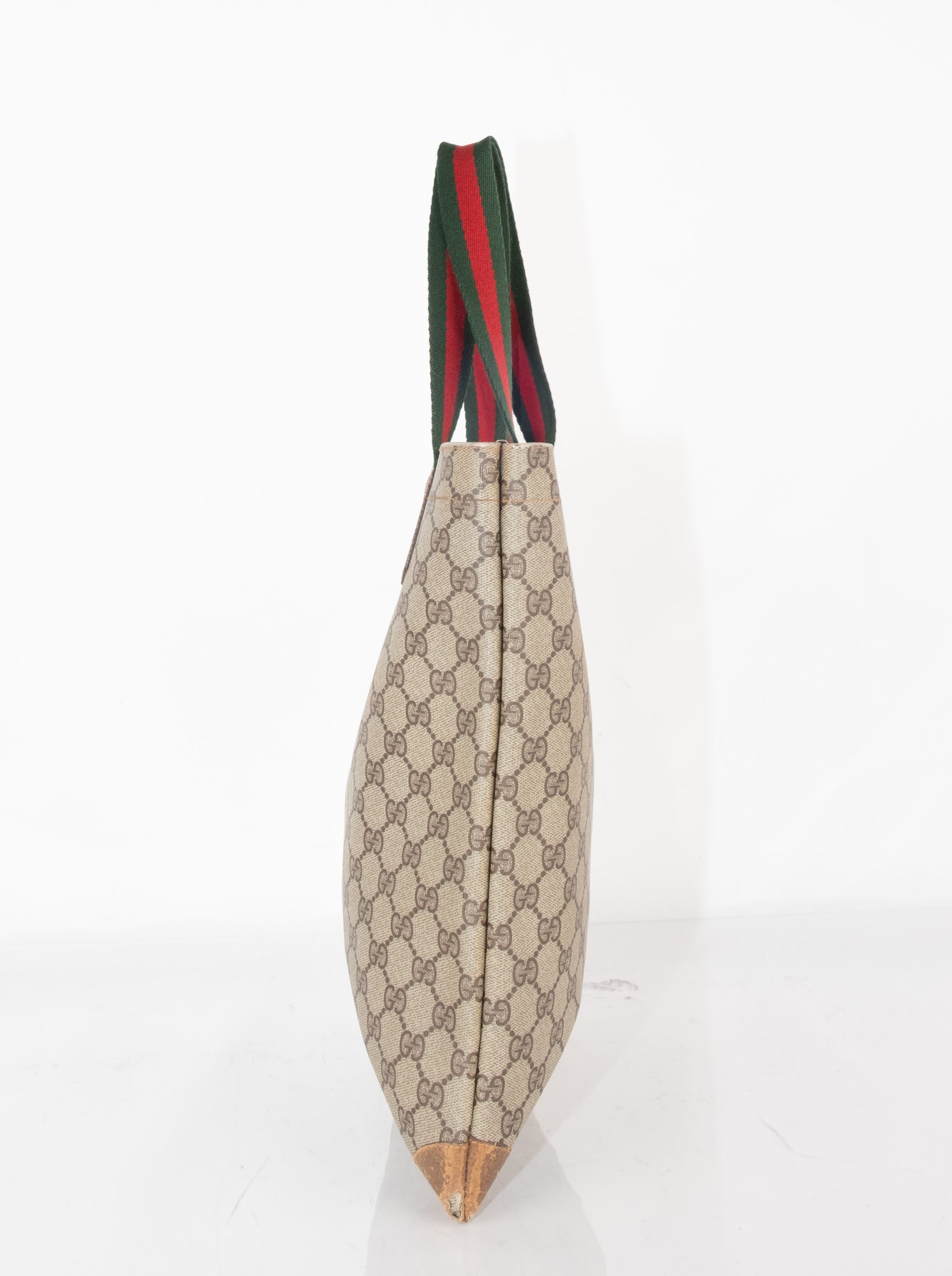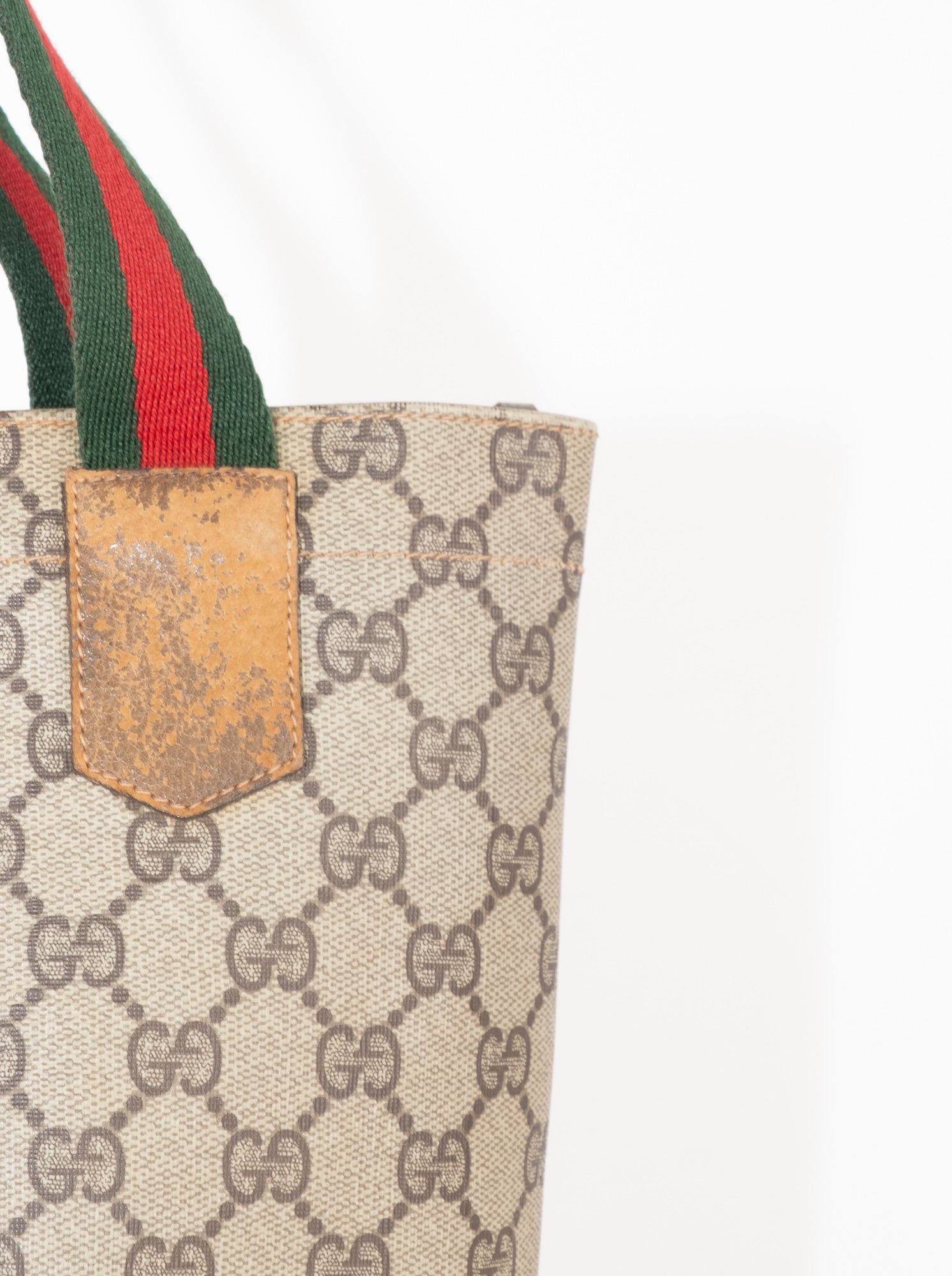 Gucci Vintage Tote Bag – Beige GG Canvas with Web Straps