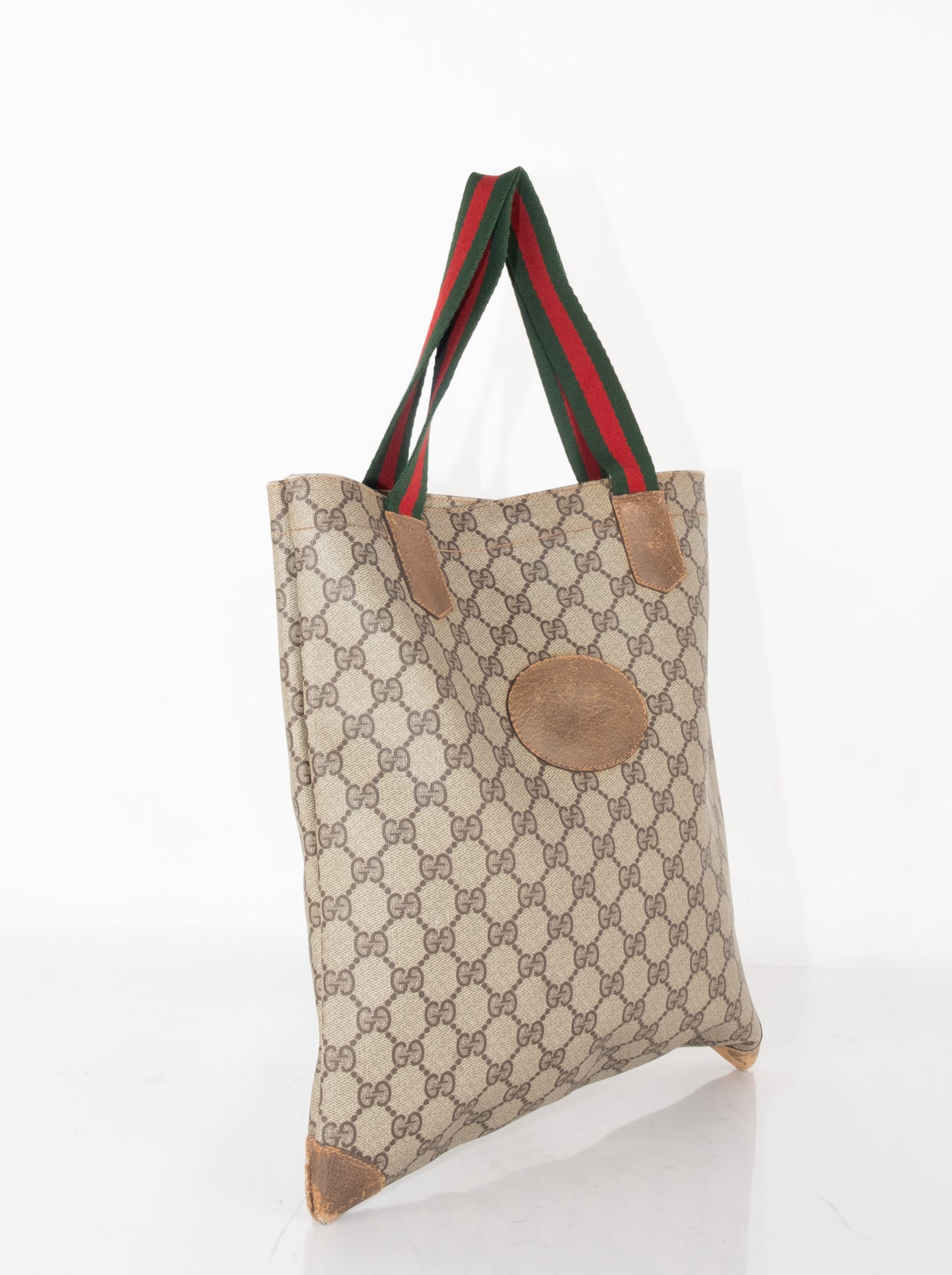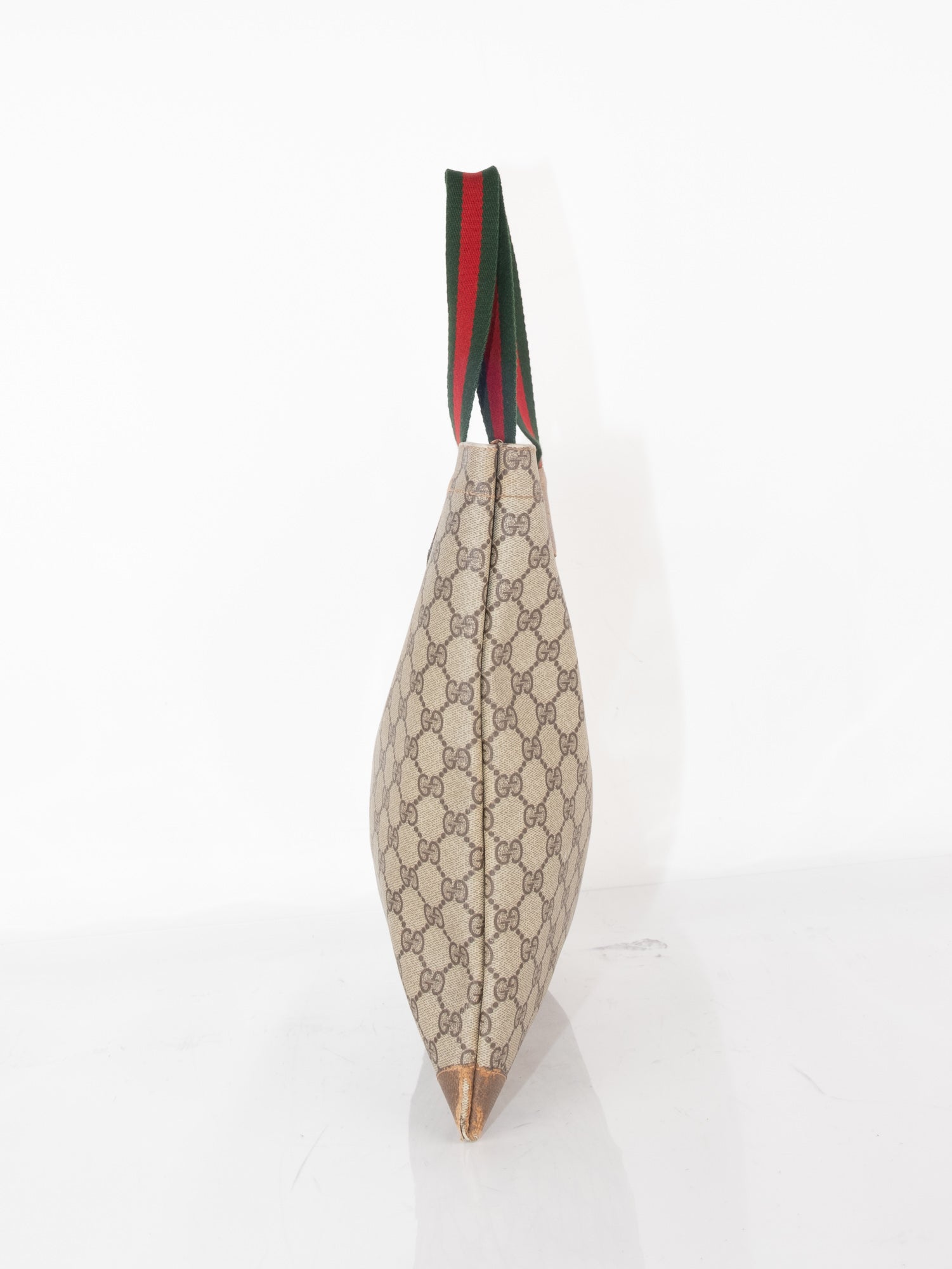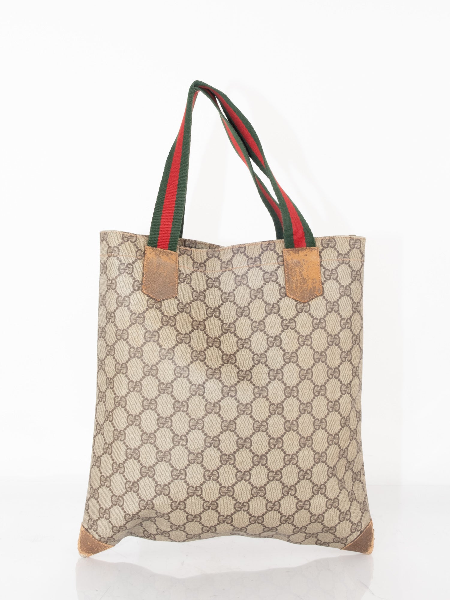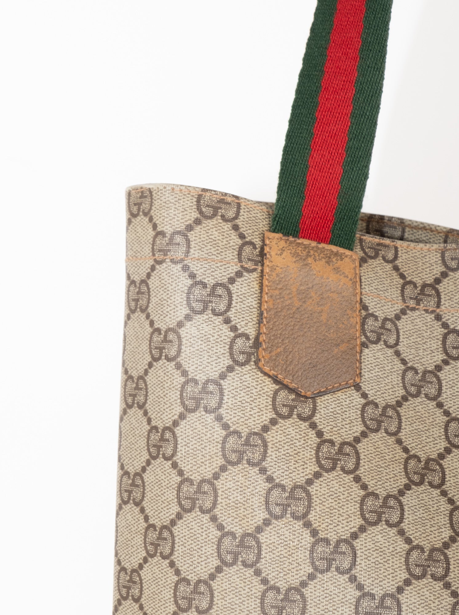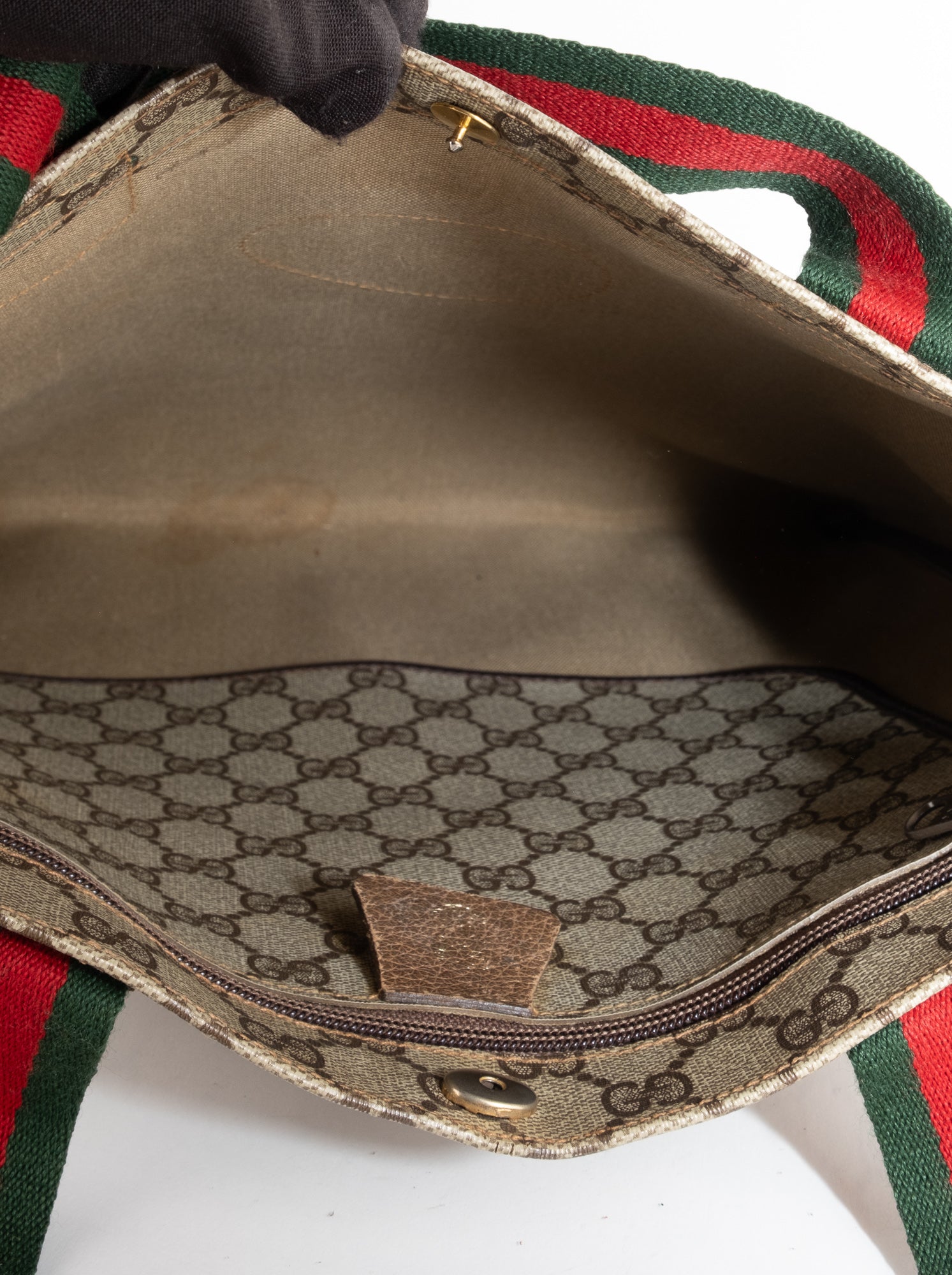 Gucci Vintage Tote Bag – Beige GG Canvas with Web Straps