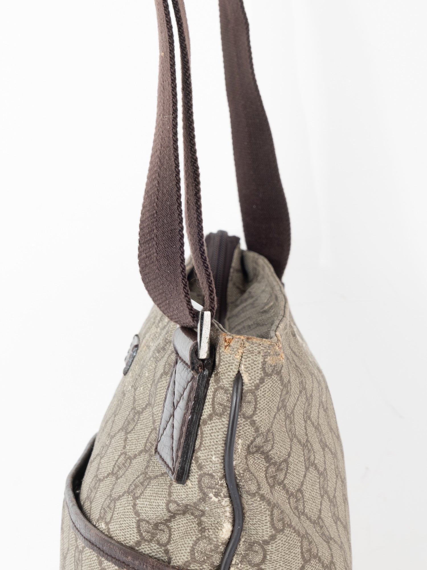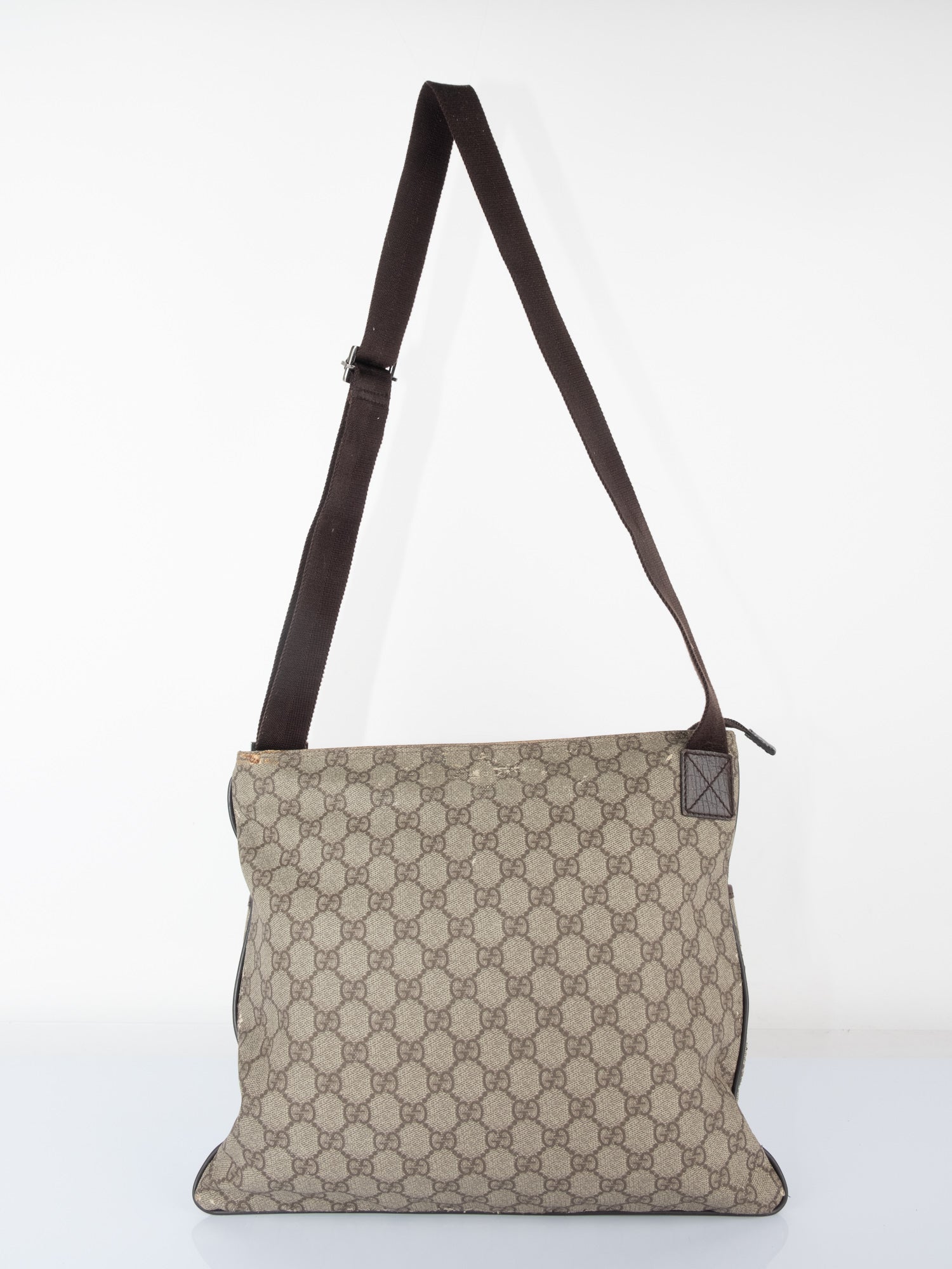 View Similar Productsתיק צד וינטג׳ של גוצ׳י (Gucci) בעיצוב יוניסקס עם מראה קלאסי ואלגנטי. עשוי קנבס איכותי עם הדפס GG איקוני ורצועת בד חומה ארוכה לנשיאה על הכתף או באלכסון.