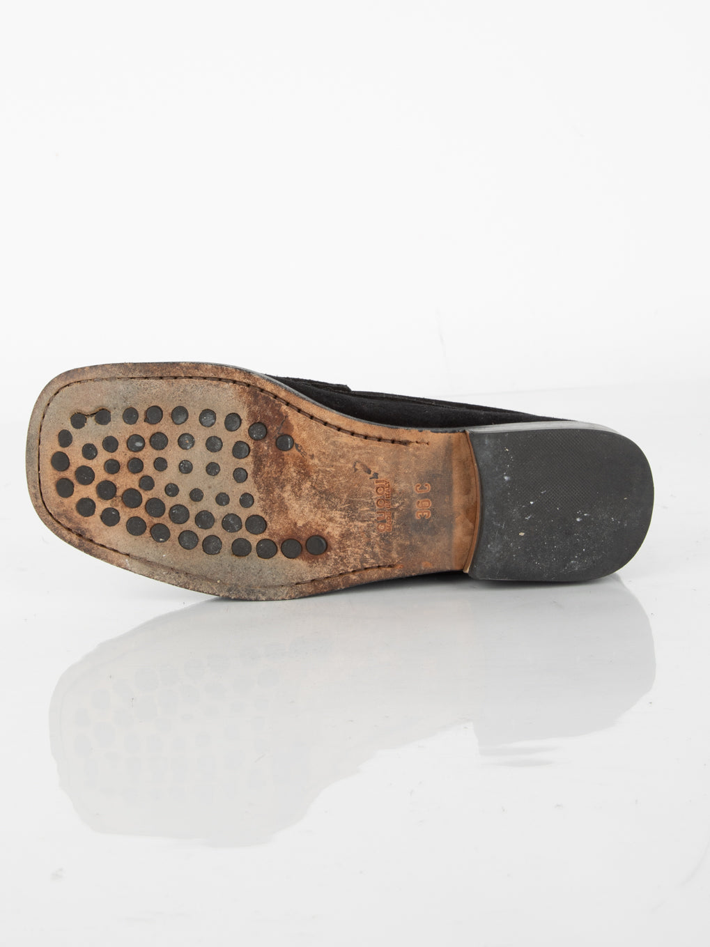 סימני שימוש: קיימים שפשופים על הזמש והמסגרת מעור כפי שניתן לראות בתמונות, דיטיילים מוזהבים שרוטים, משופשפים ודהויים. הסוליה משופשפת מאוד.