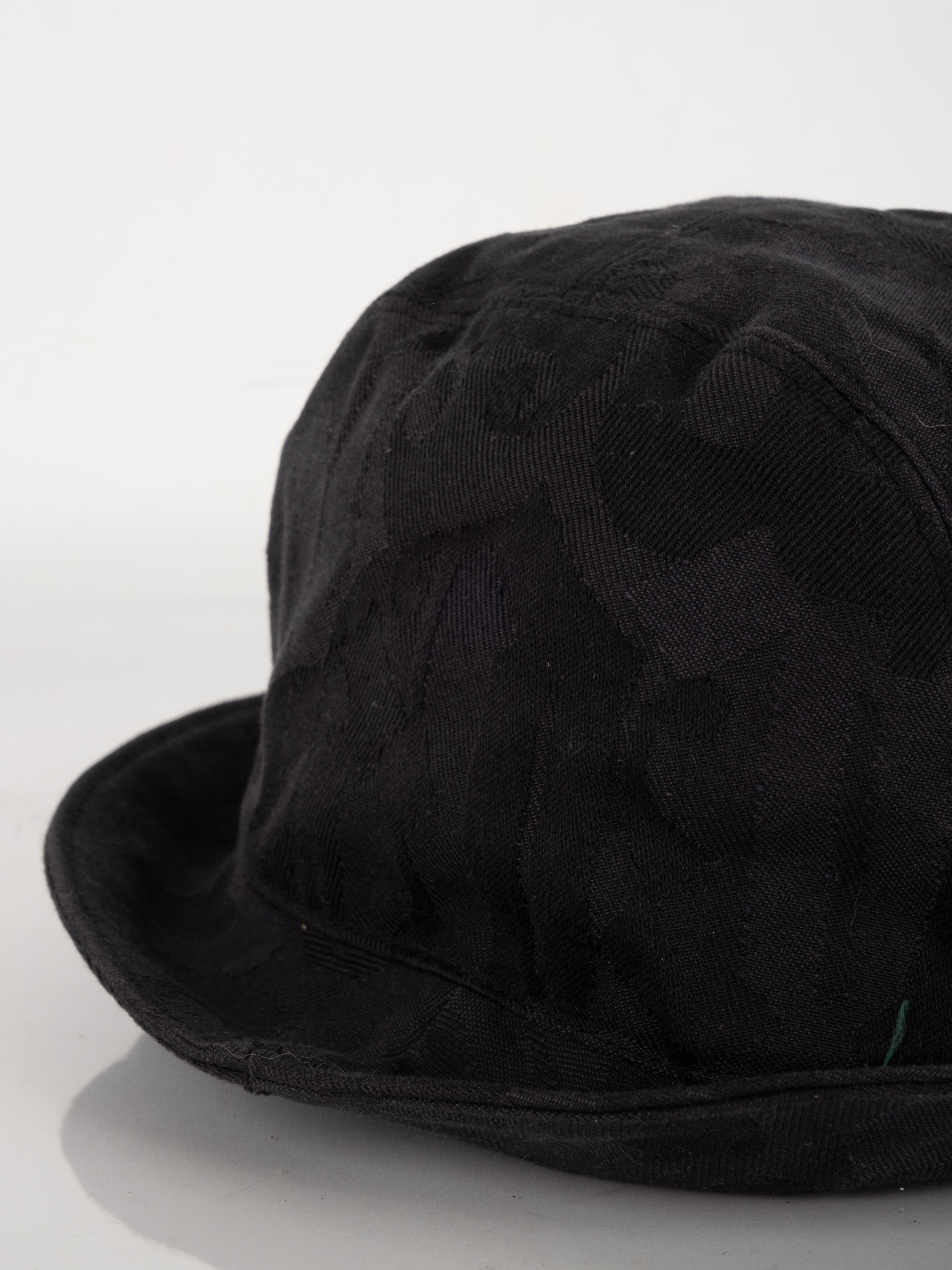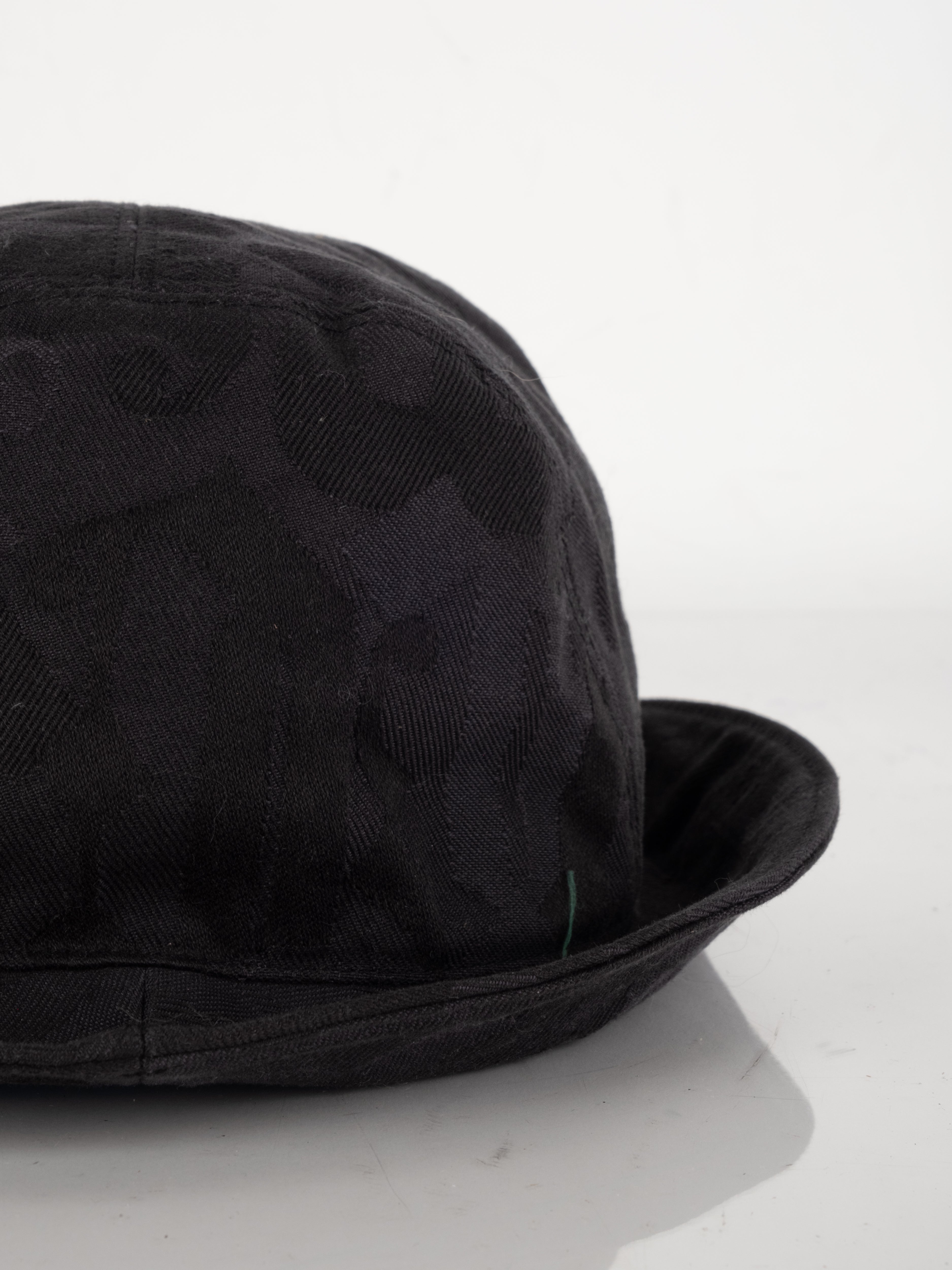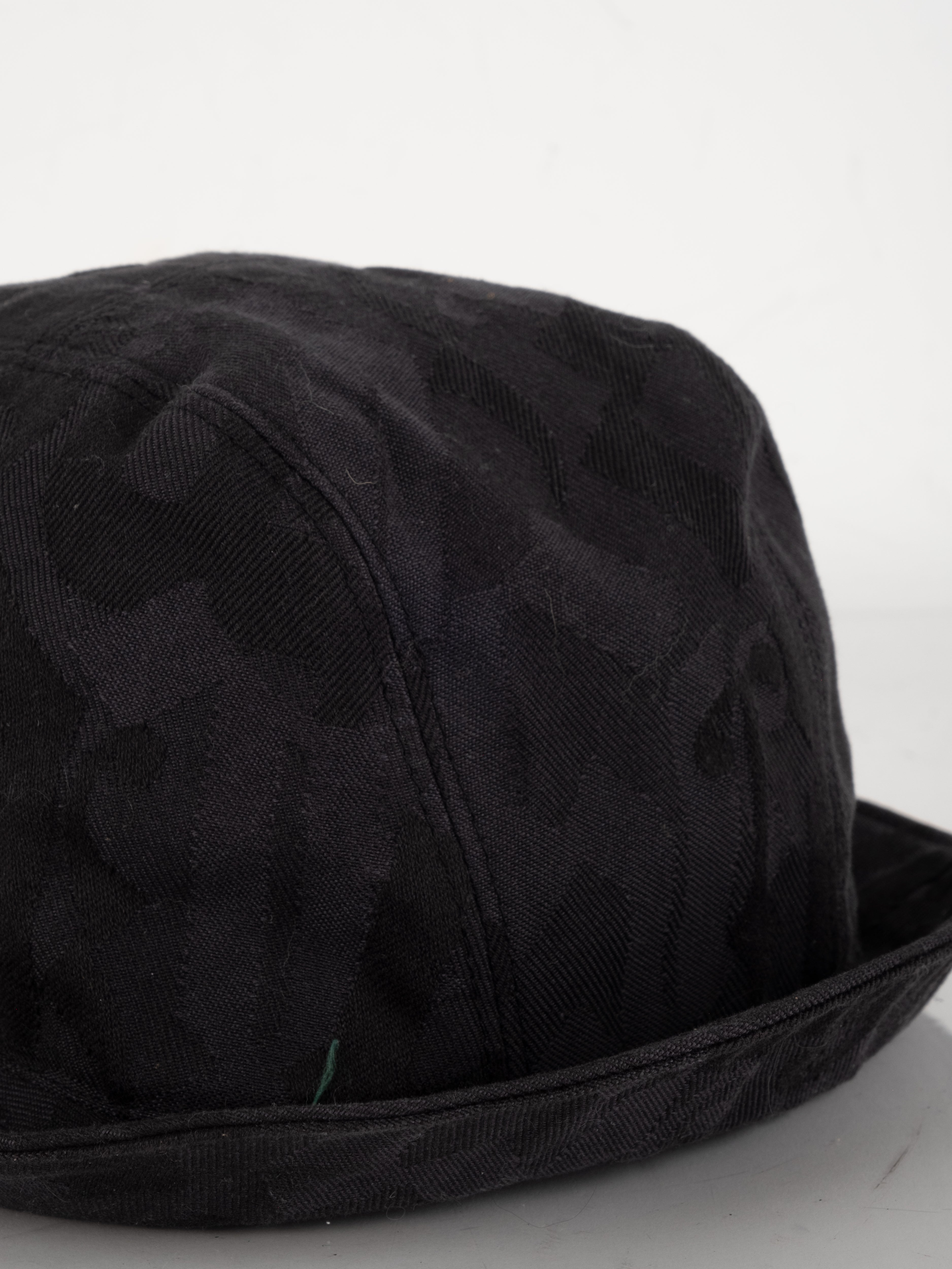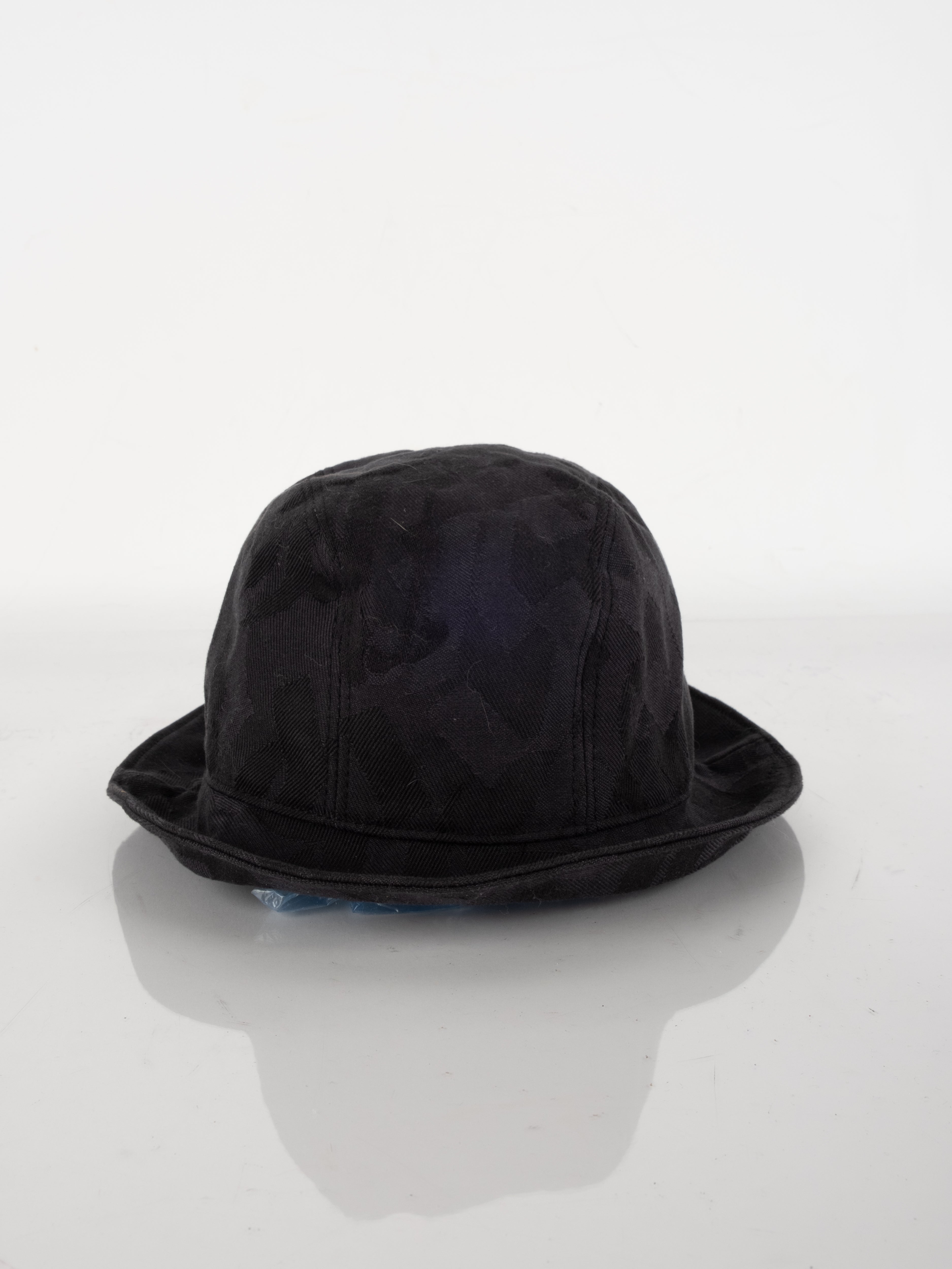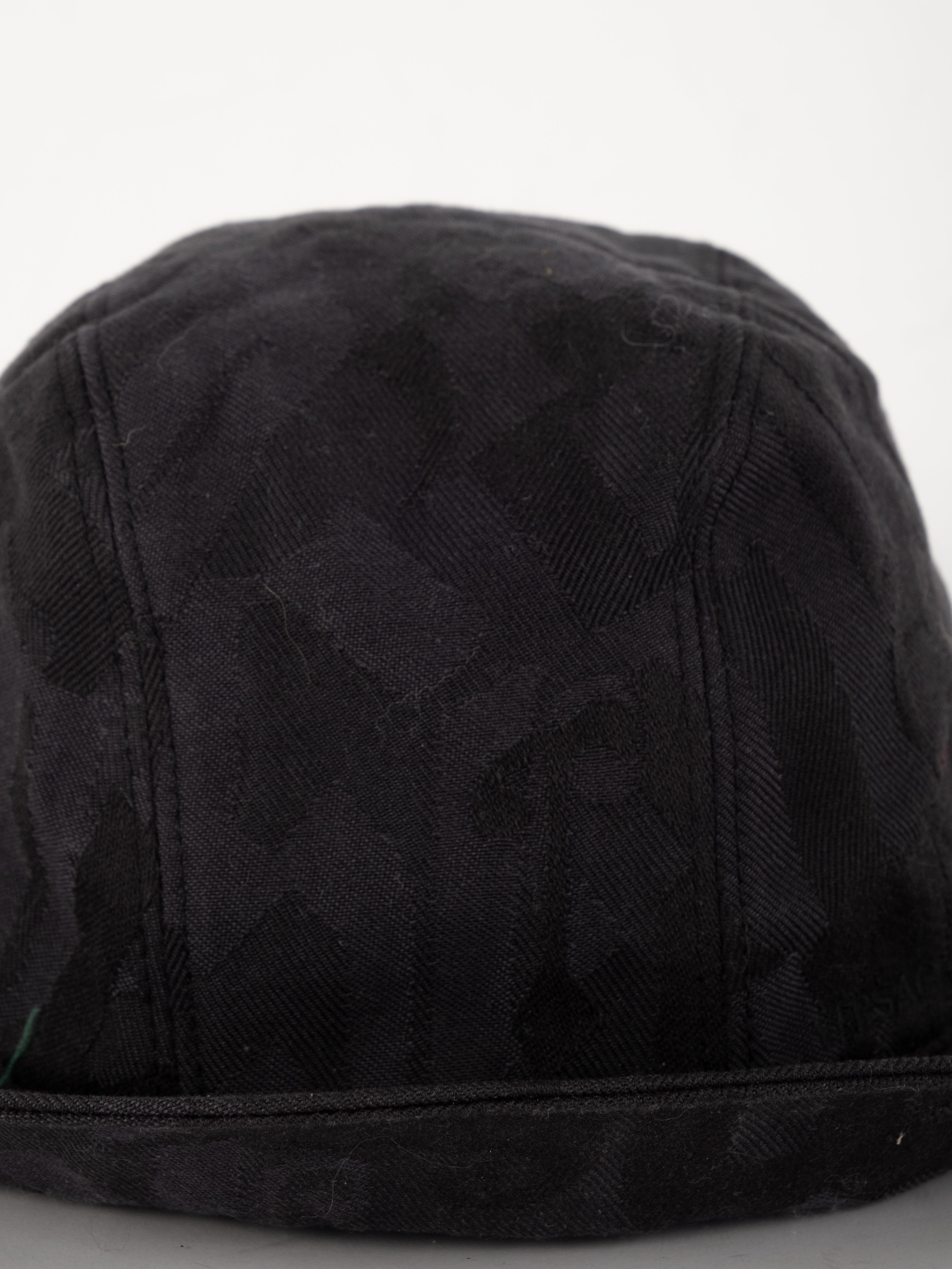 הכובע עשוי בד טקסטורלי שחור עם דוגמת מונוגרם אינטגרלית. גזרה רכה ועגולה, שפה תחתונה מעוגלת, ומראה אחיד ונקי המשדר יוקרה איטלקית במינימליזם אופייני לבית ורסאצ’ה.