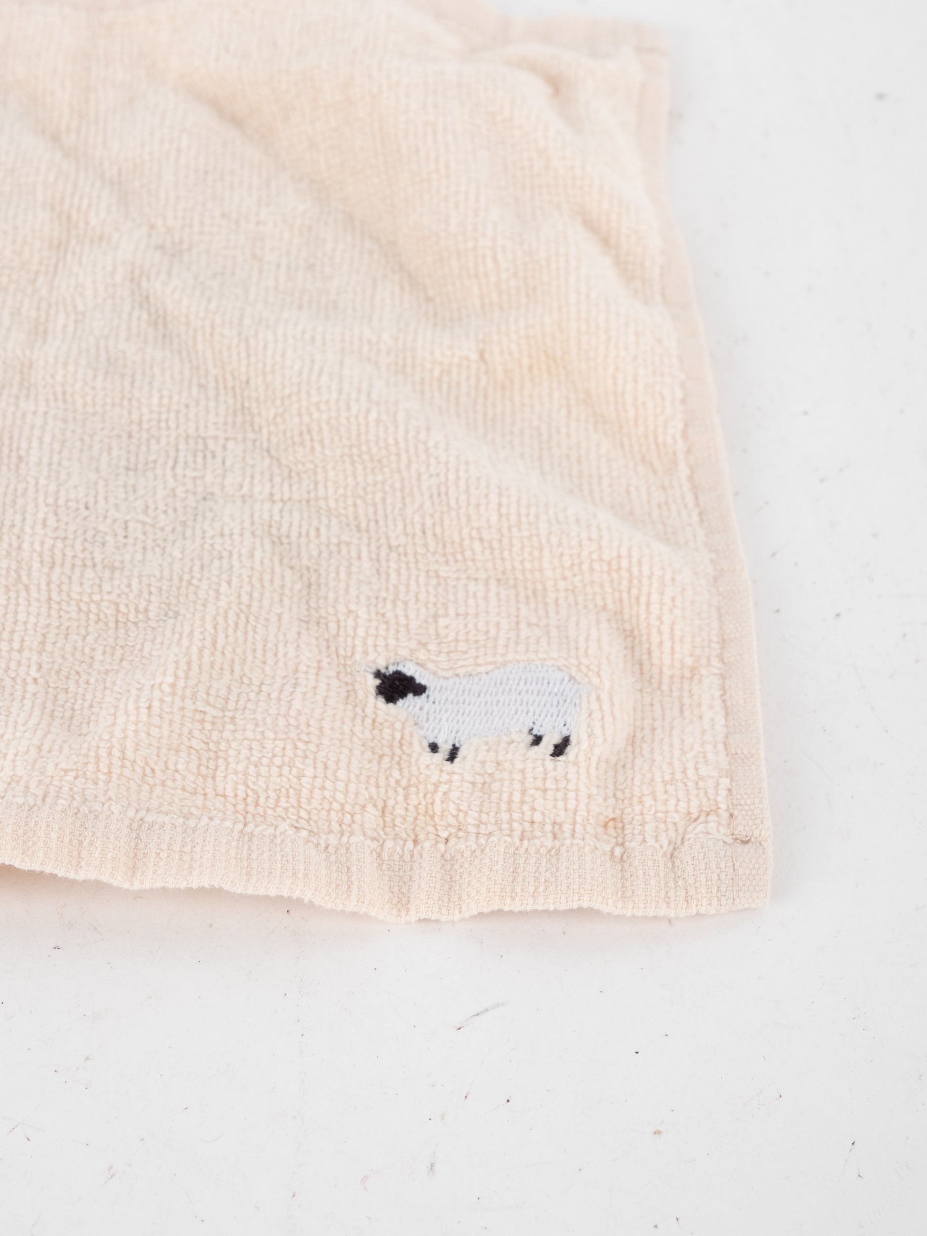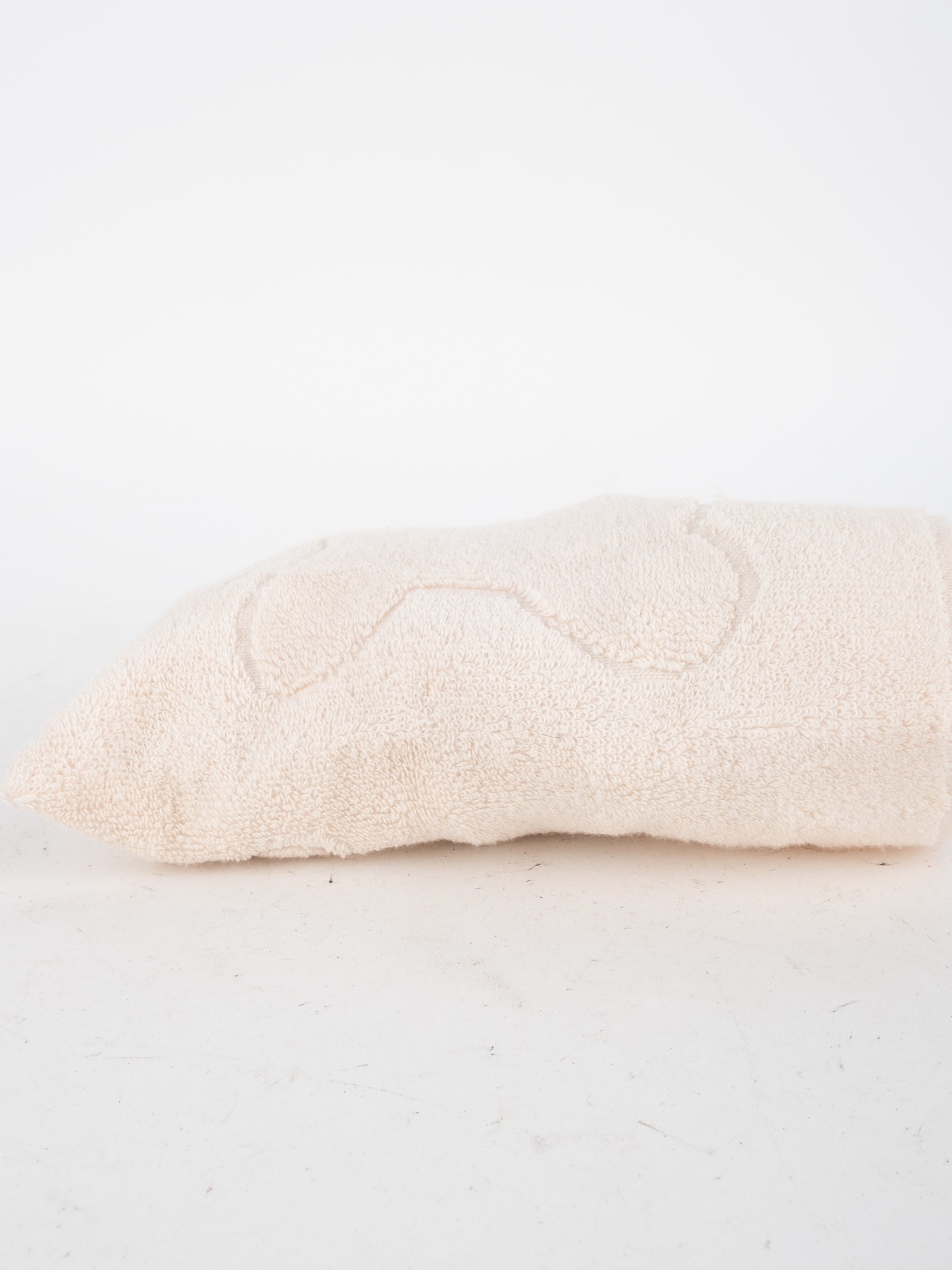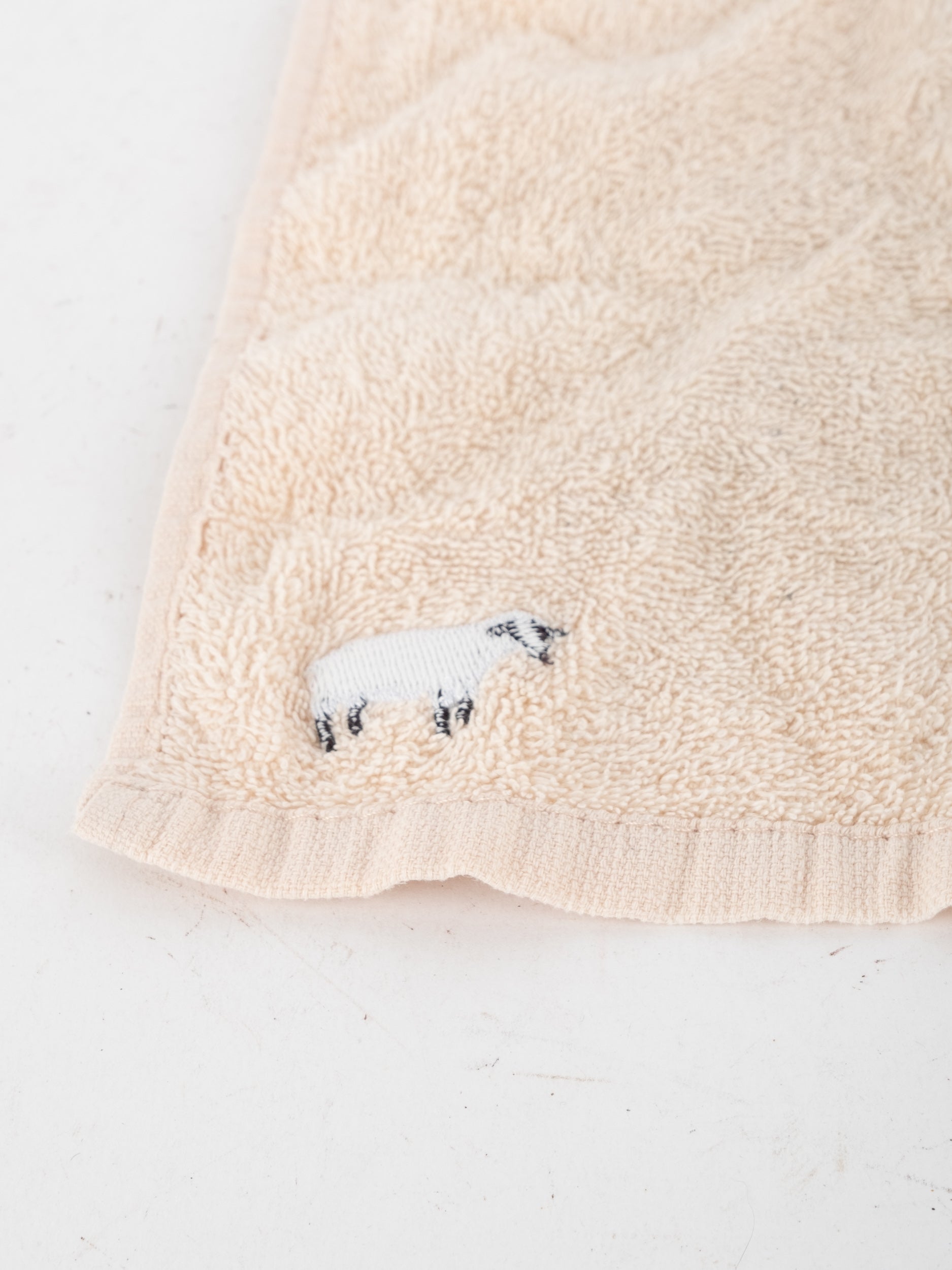 מגבת קטנה בצבע בז׳ עם הדפס של סוסים המיועדת לידיים.