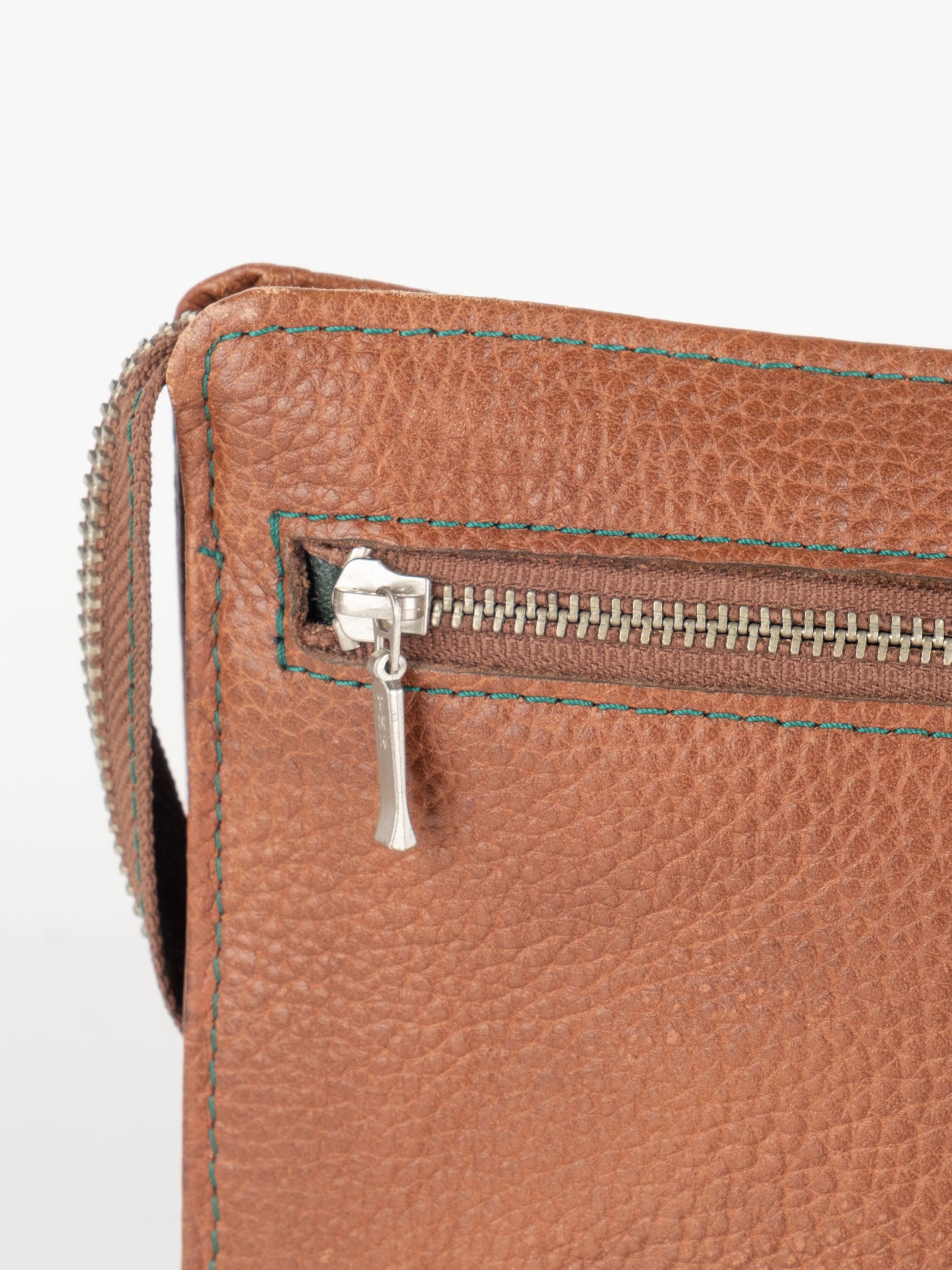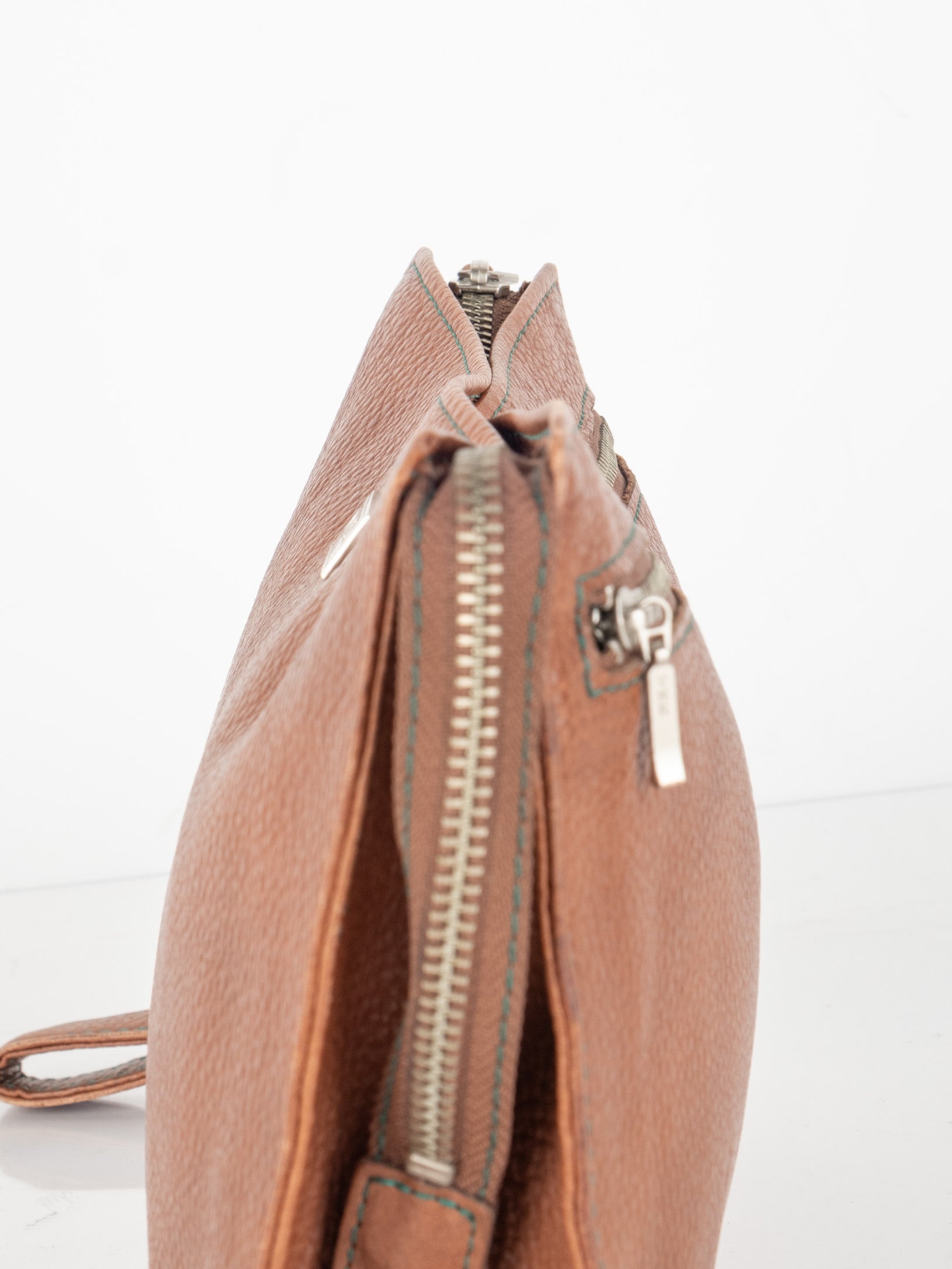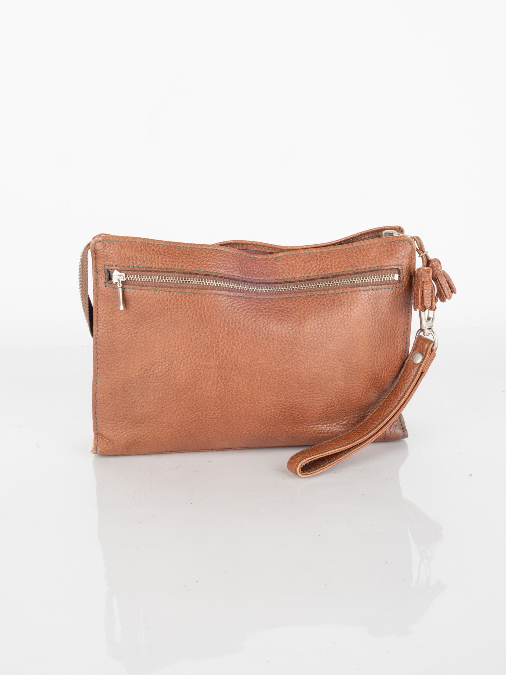 קלאץ׳ העשוי מעור בצבע חום בעל ידית אחיזה שניתן להוציא במידת הצורך, בעל תא מרכזי אחד גדול הנסגר באמצעות רוכסן כאשר בתוכו ישנם תאים נוספים ללא סגירה.