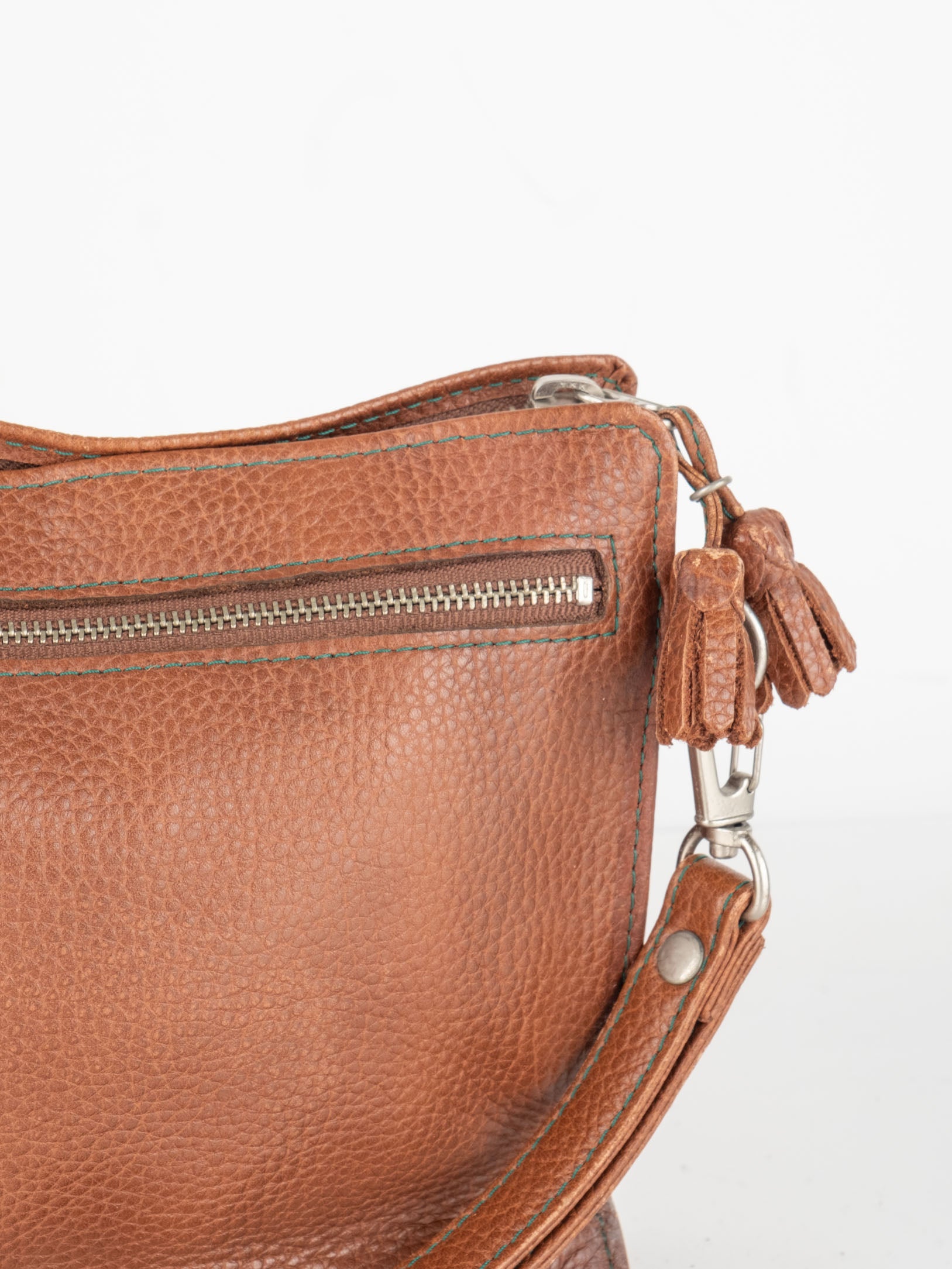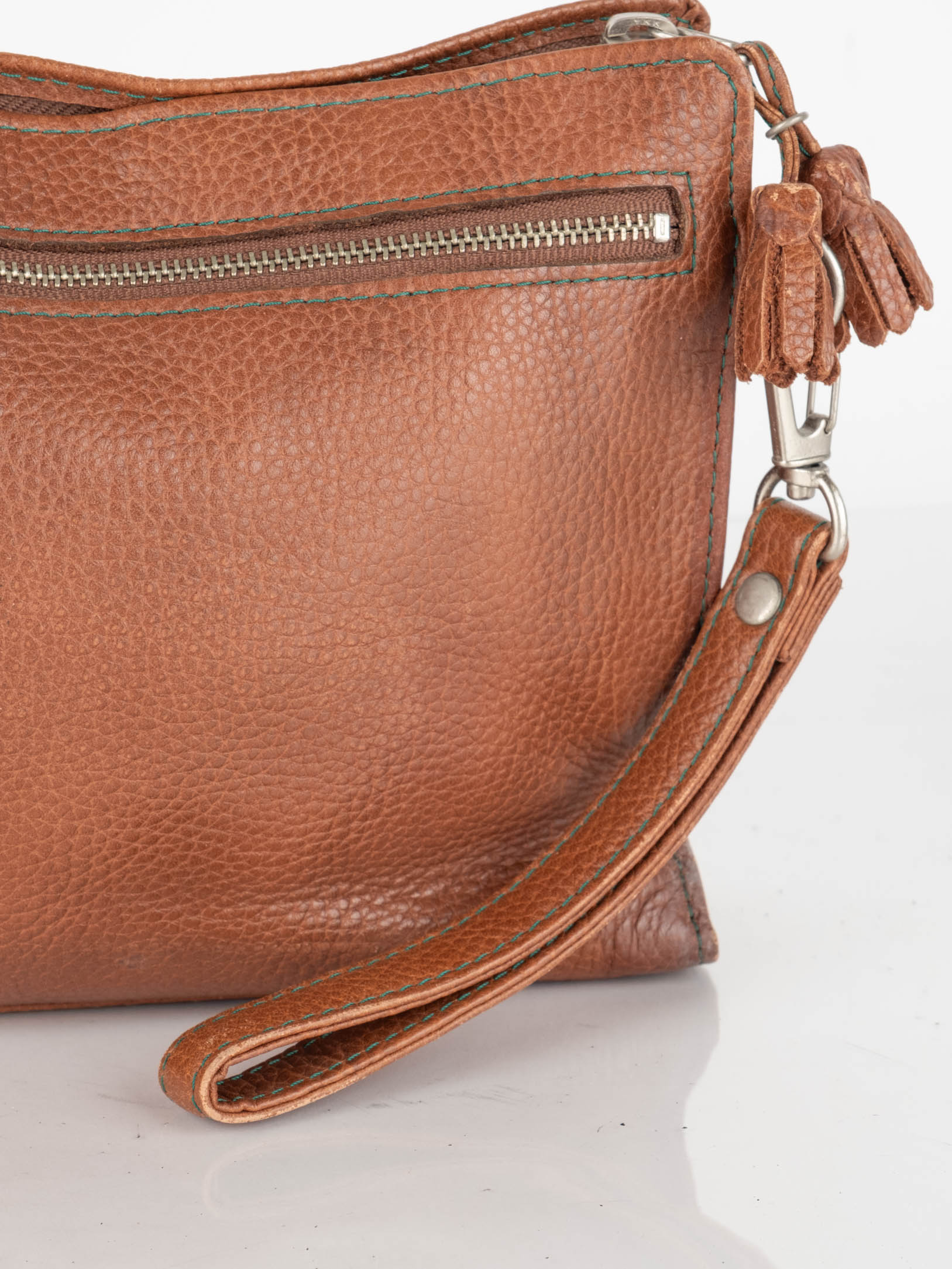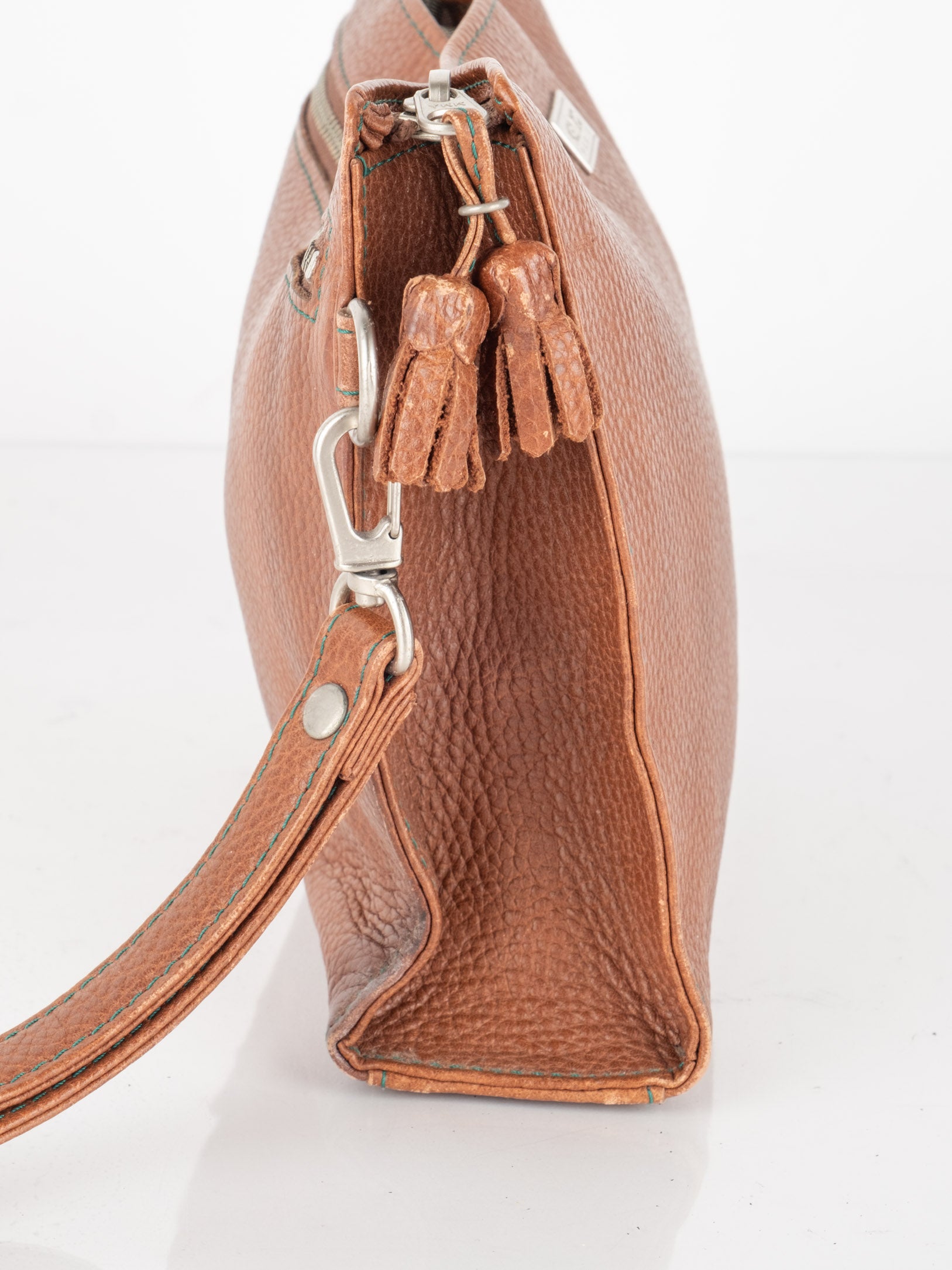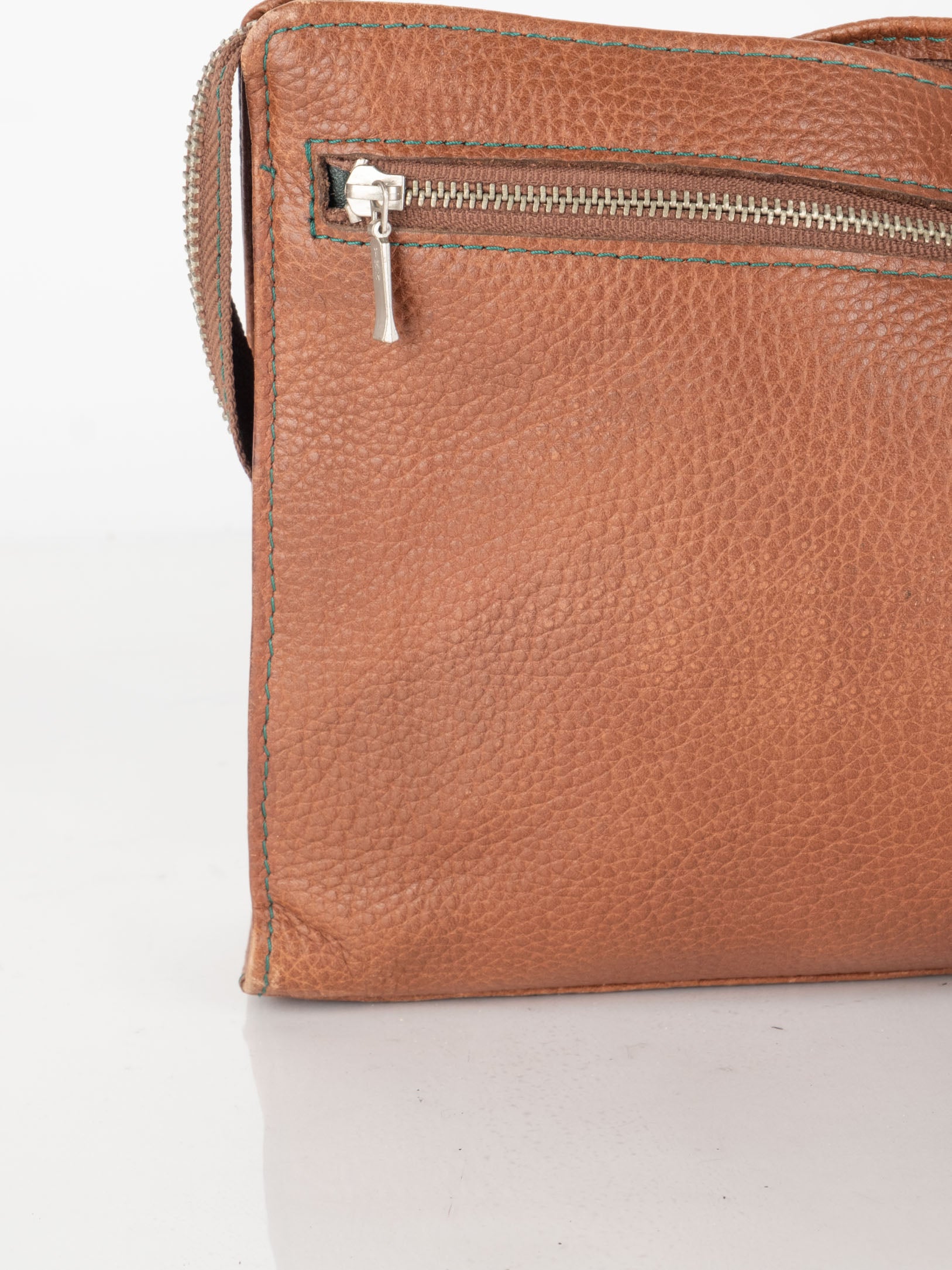 קלאץ׳ העשוי מעור בצבע חום בעל ידית אחיזה שניתן להוציא במידת הצורך, בעל תא מרכזי אחד גדול הנסגר באמצעות רוכסן כאשר בתוכו ישנם תאים נוספים ללא סגירה.