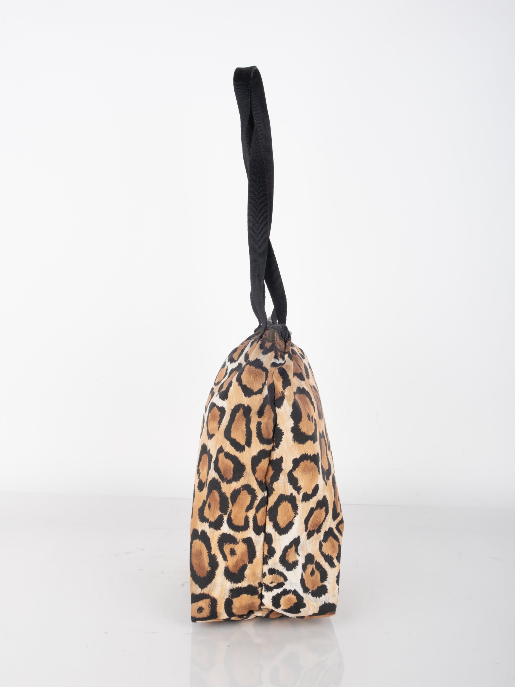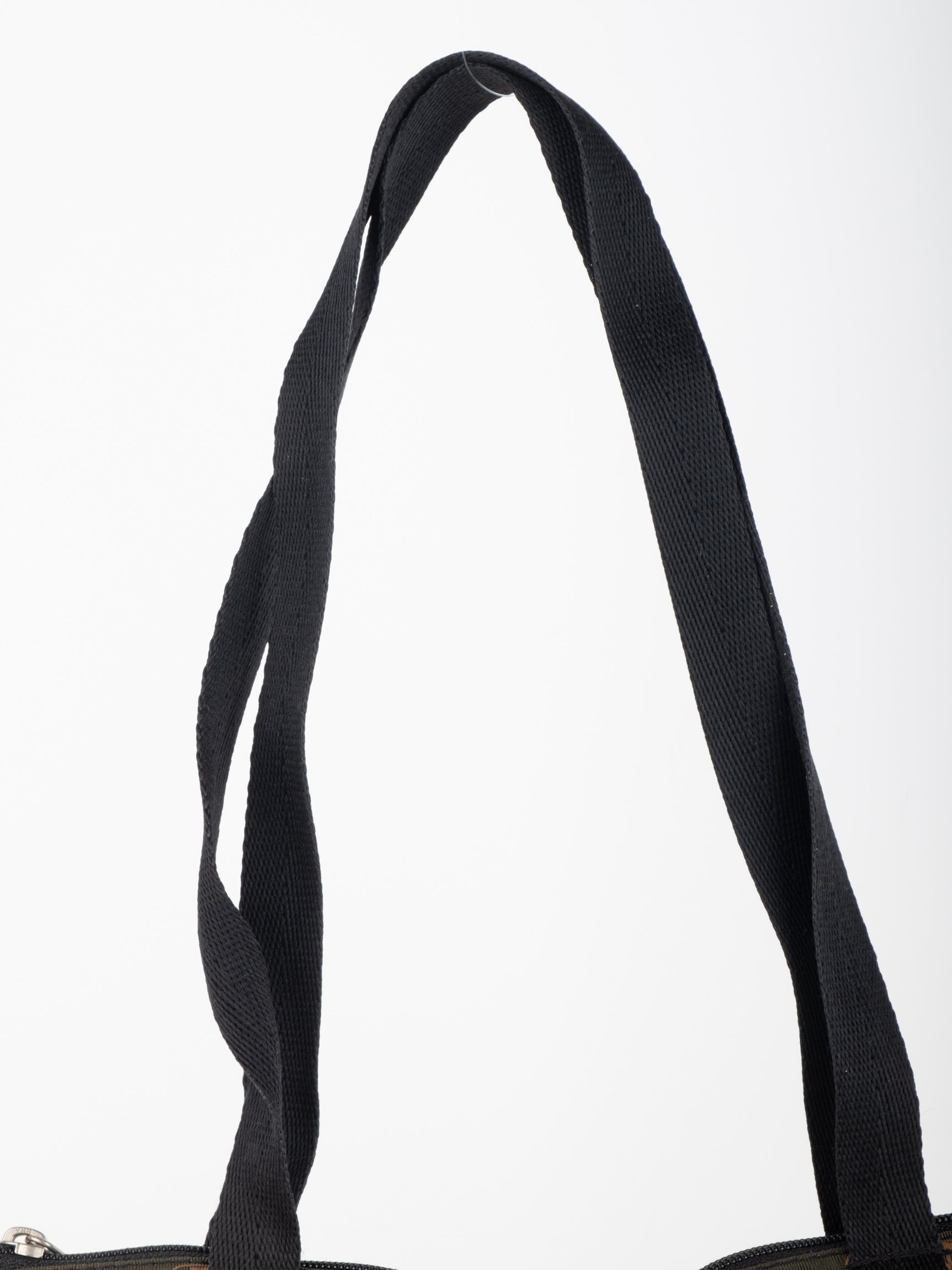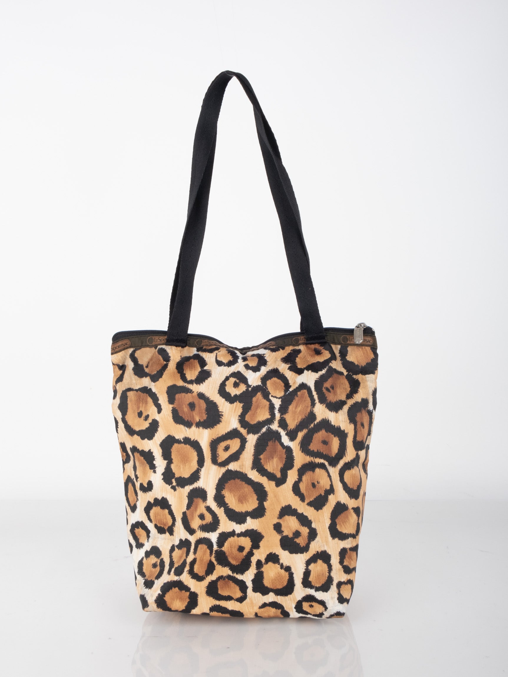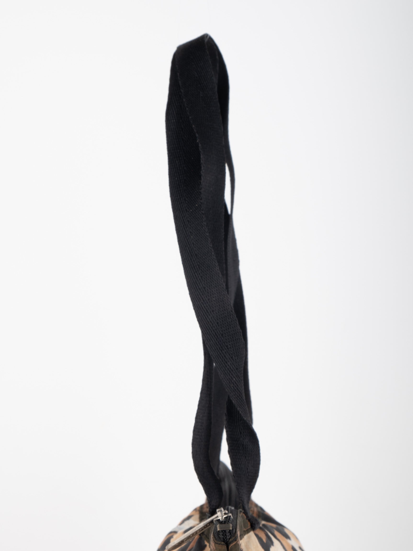 תיק כתף העשוי מניילון בהדפס מנומר בעל שני ידיות בד שלא ניתן לכוון. תיק זה נסגר באמצעות רוכסן כאשר בתוכו תא מרכזי אחד גדול ותא נוסף עם סגירה זהה, בנוסף ישנו נרתיק קטן עם הדפס זהה הנסגר באמצעות רוכסן שהוא מחובר לתיק באמצעות אזיקון בצבע חום מפלסטיק.