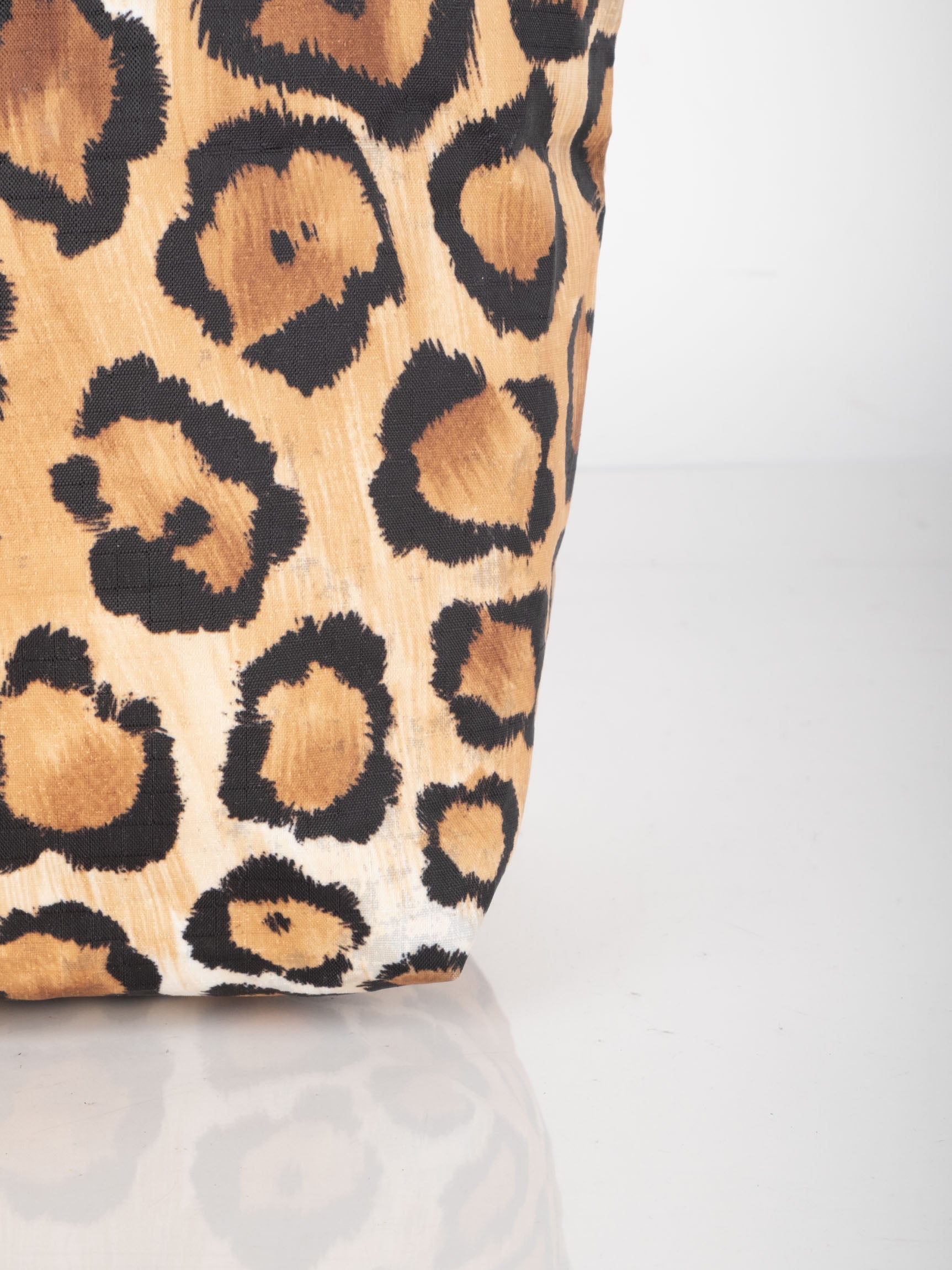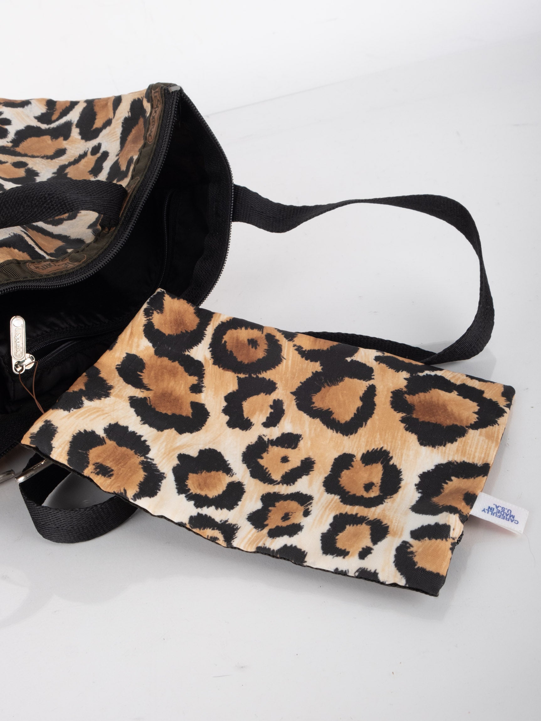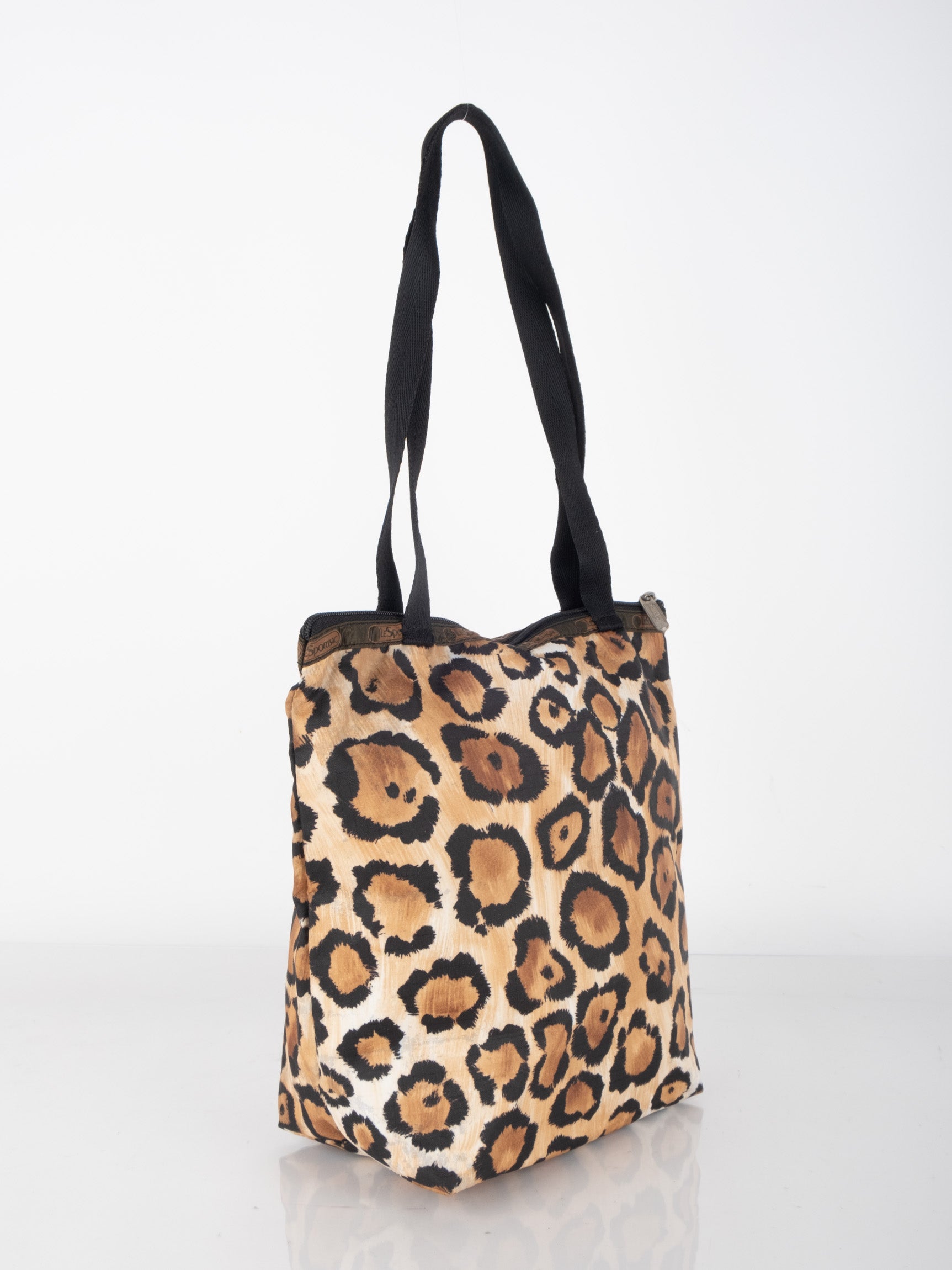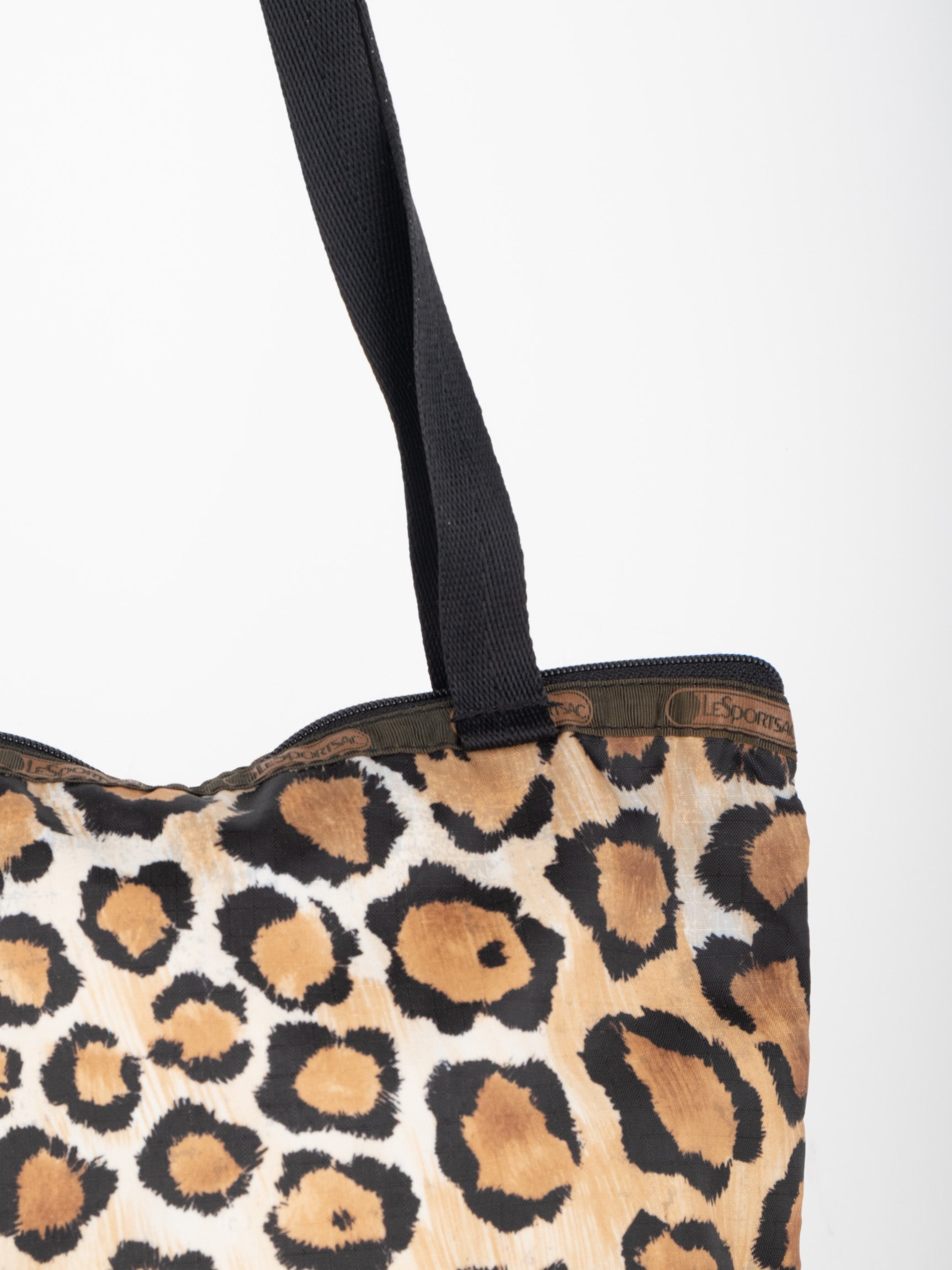 תיק כתף העשוי מניילון בהדפס מנומר בעל שני ידיות בד שלא ניתן לכוון. תיק זה נסגר באמצעות רוכסן כאשר בתוכו תא מרכזי אחד גדול ותא נוסף עם סגירה זהה, בנוסף ישנו נרתיק קטן עם הדפס זהה הנסגר באמצעות רוכסן שהוא מחובר לתיק באמצעות אזיקון בצבע חום מפלסטיק.