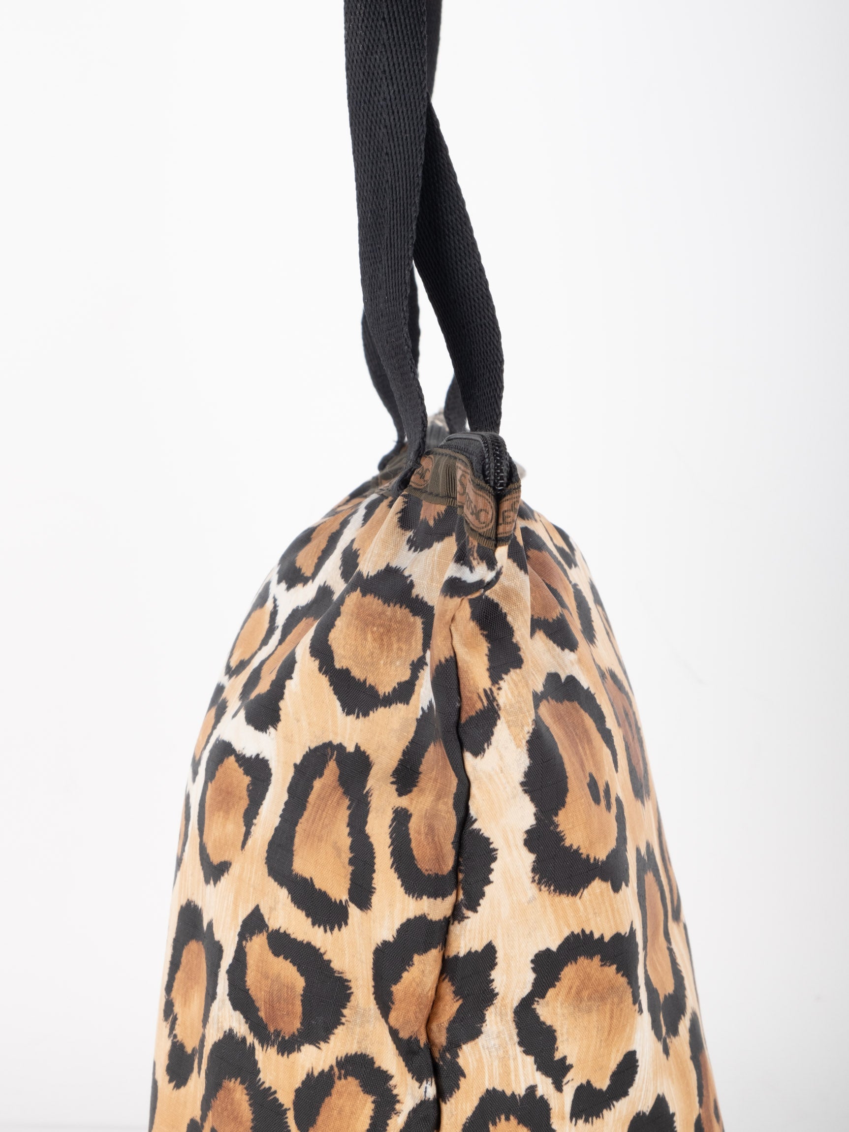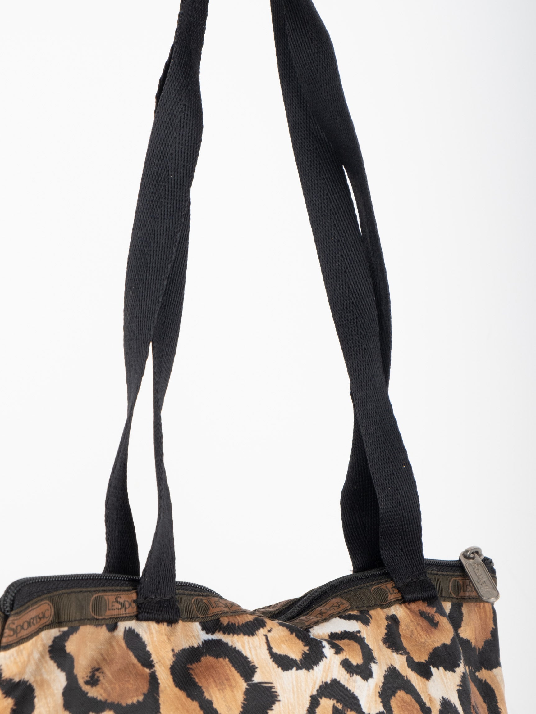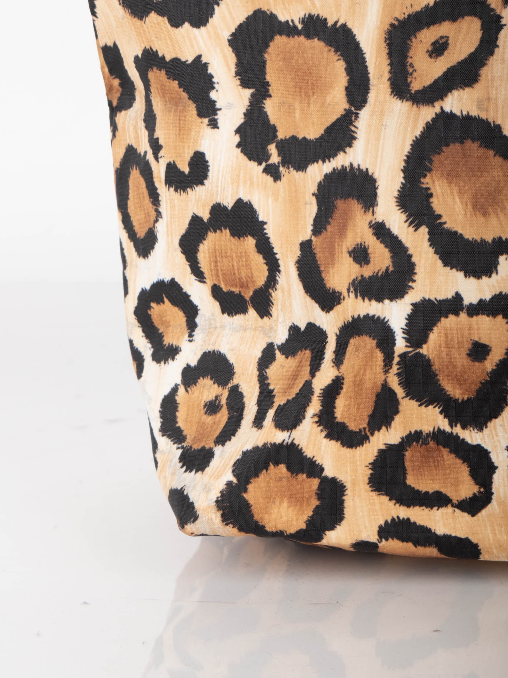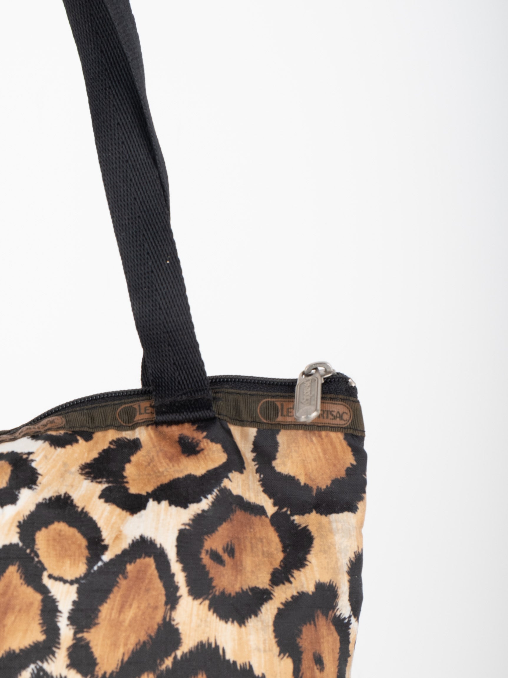 תיק כתף העשוי מניילון בהדפס מנומר בעל שני ידיות בד שלא ניתן לכוון. תיק זה נסגר באמצעות רוכסן כאשר בתוכו תא מרכזי אחד גדול ותא נוסף עם סגירה זהה, בנוסף ישנו נרתיק קטן עם הדפס זהה הנסגר באמצעות רוכסן שהוא מחובר לתיק באמצעות אזיקון בצבע חום מפלסטיק.