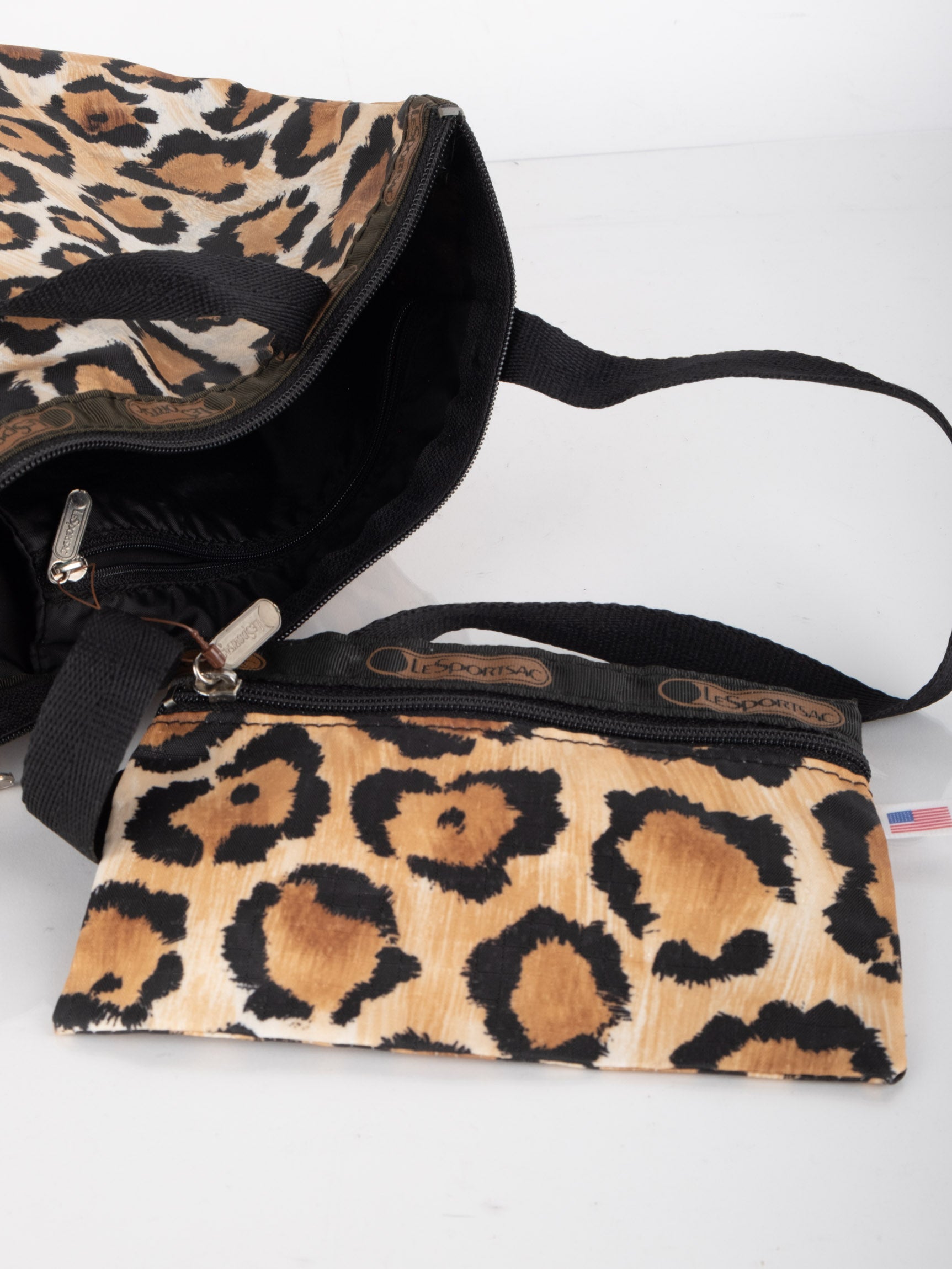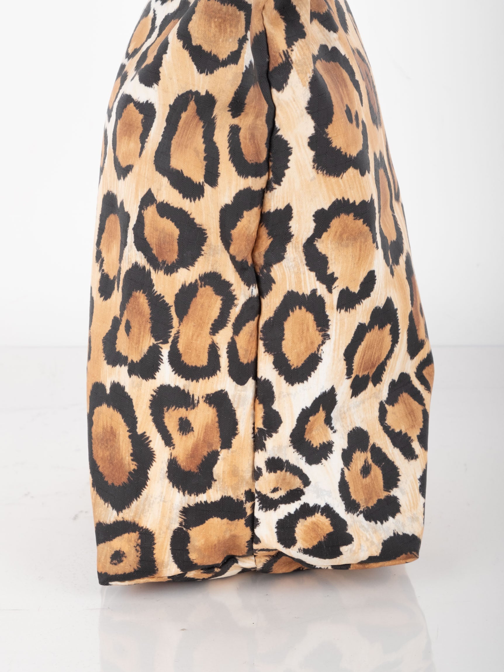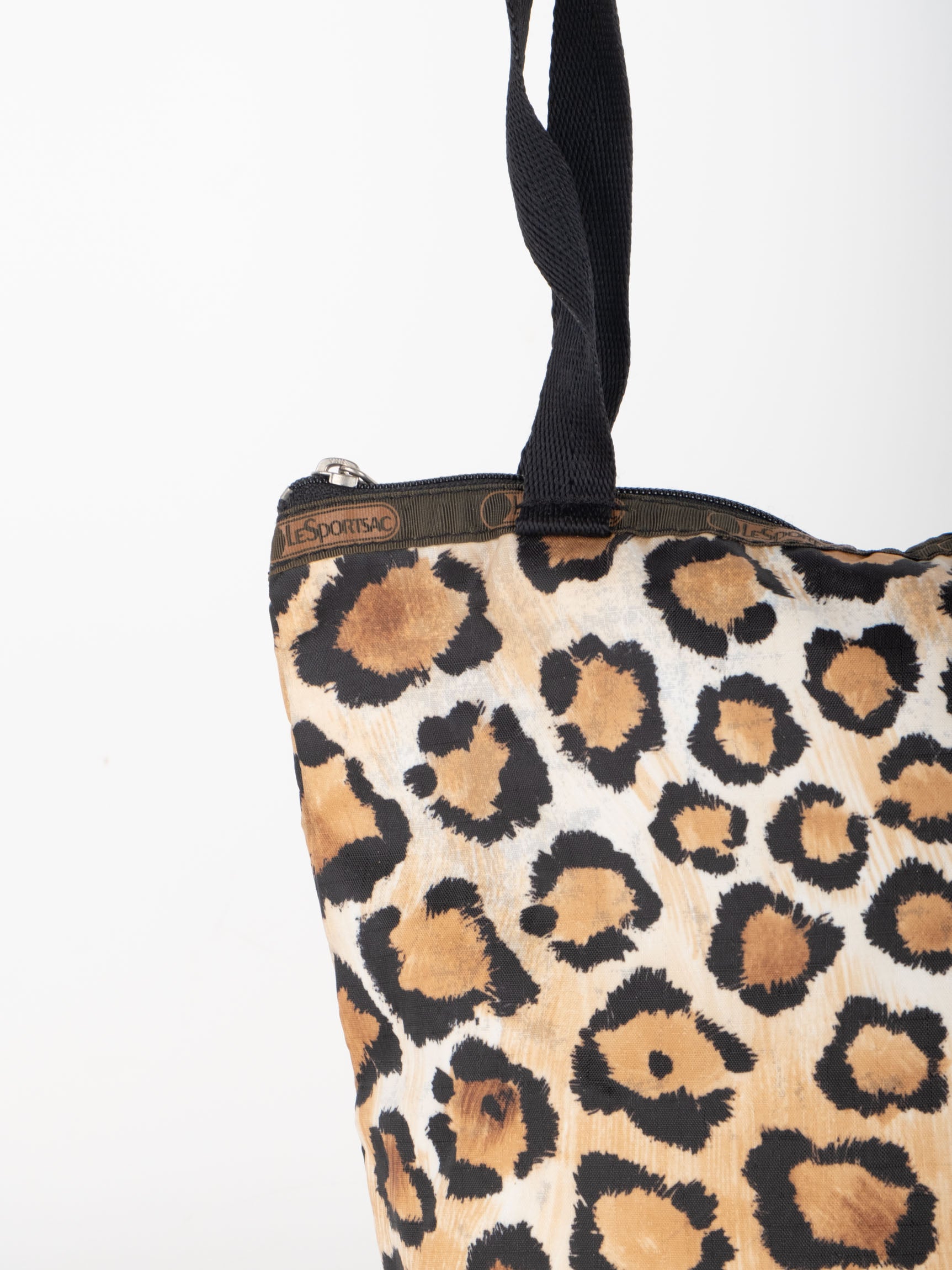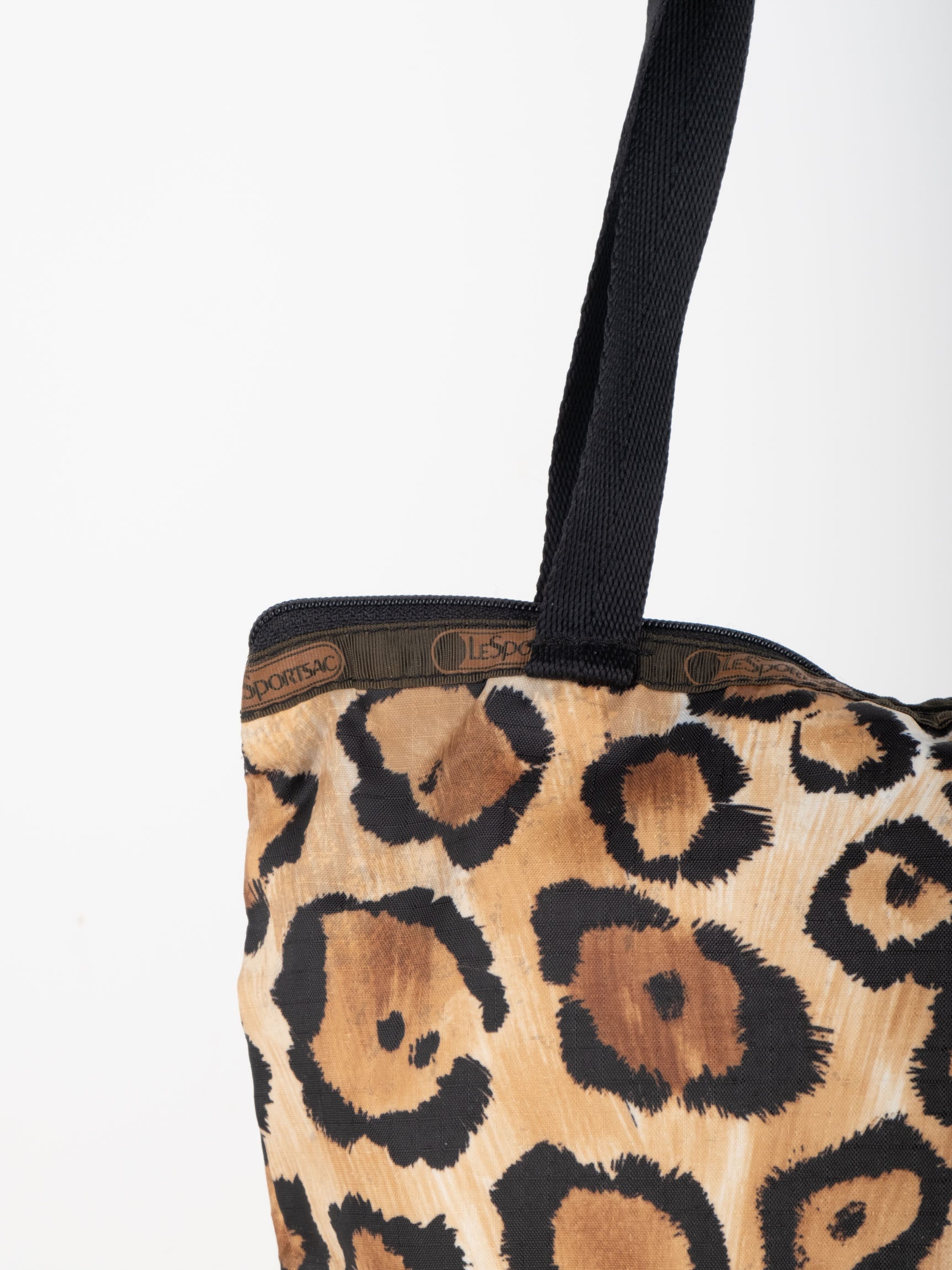 תיק כתף העשוי מניילון בהדפס מנומר בעל שני ידיות בד שלא ניתן לכוון. תיק זה נסגר באמצעות רוכסן כאשר בתוכו תא מרכזי אחד גדול ותא נוסף עם סגירה זהה, בנוסף ישנו נרתיק קטן עם הדפס זהה הנסגר באמצעות רוכסן שהוא מחובר לתיק באמצעות אזיקון בצבע חום מפלסטיק.