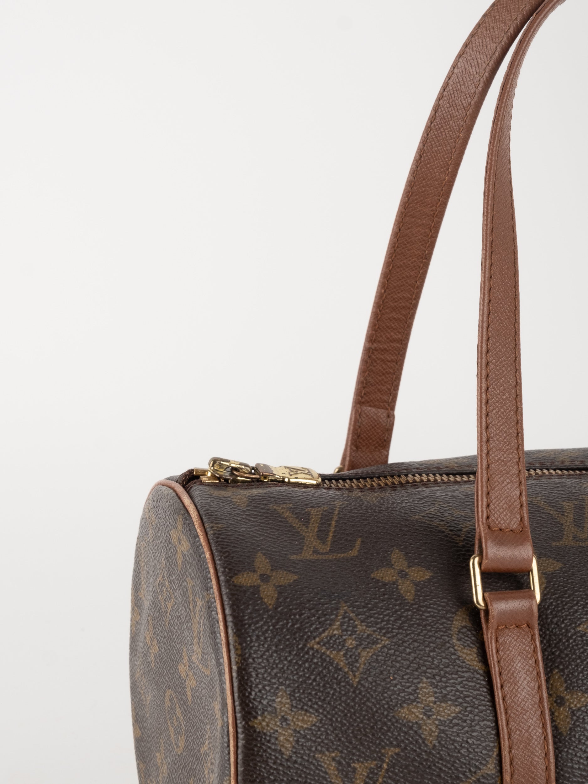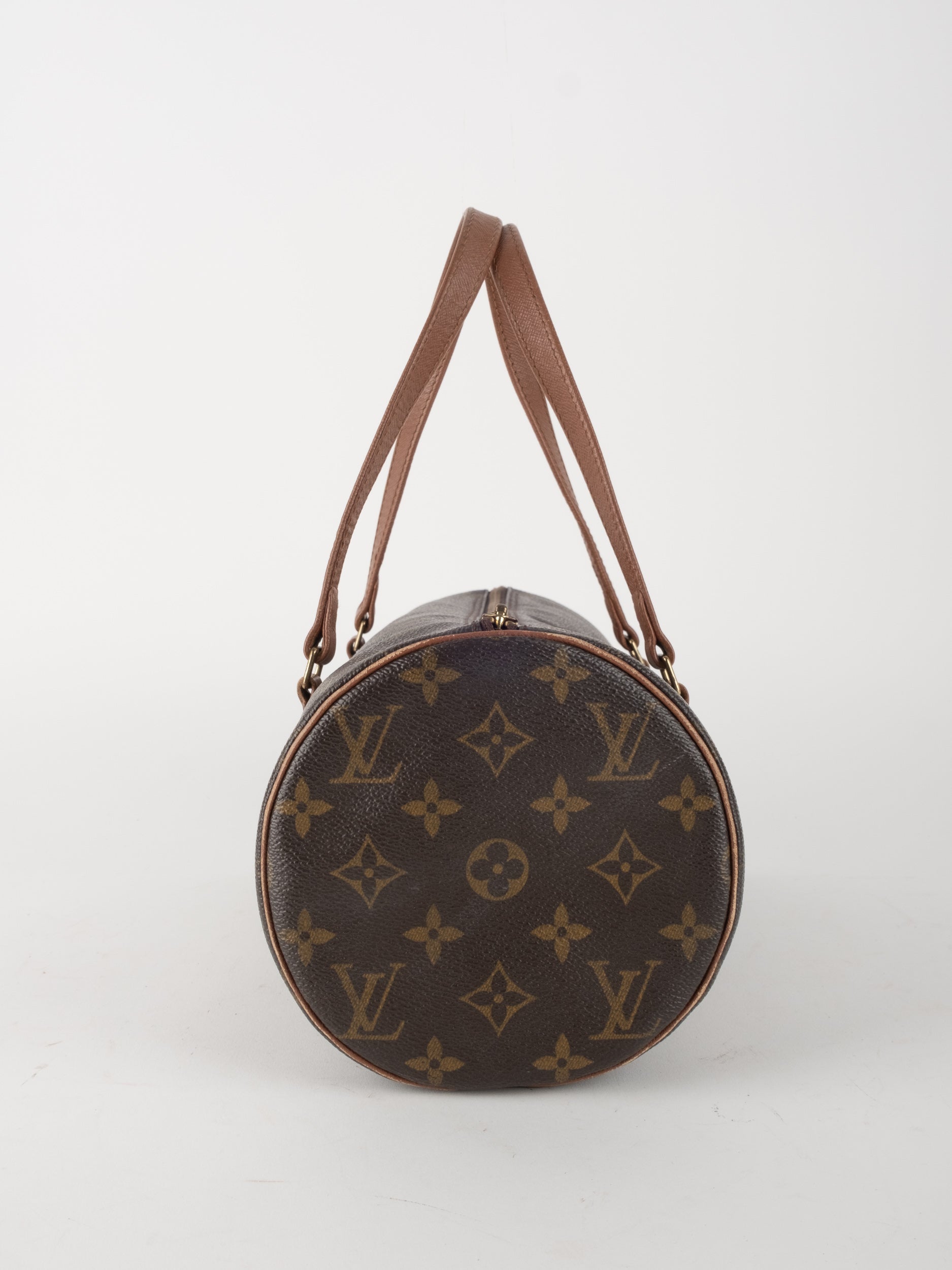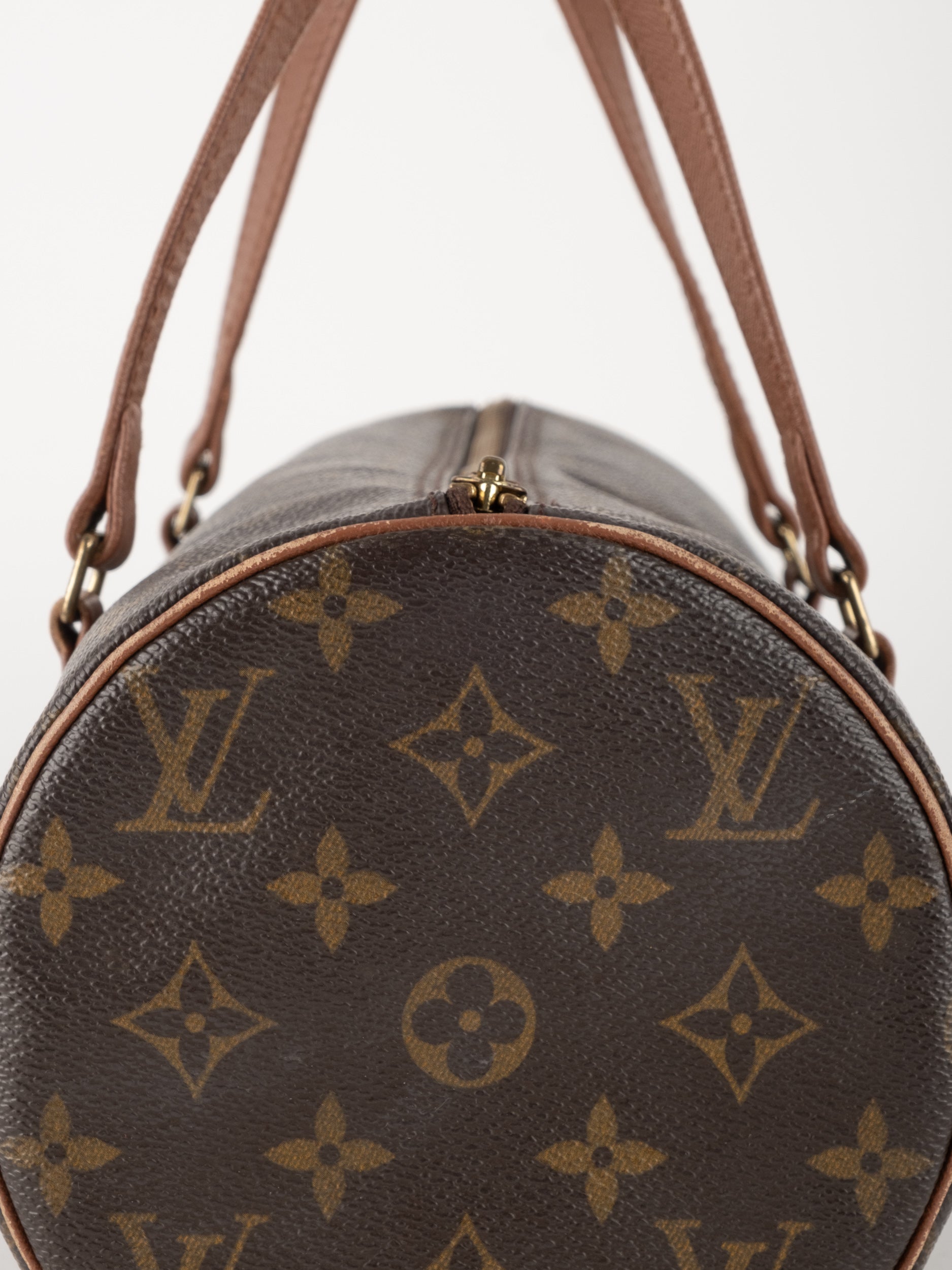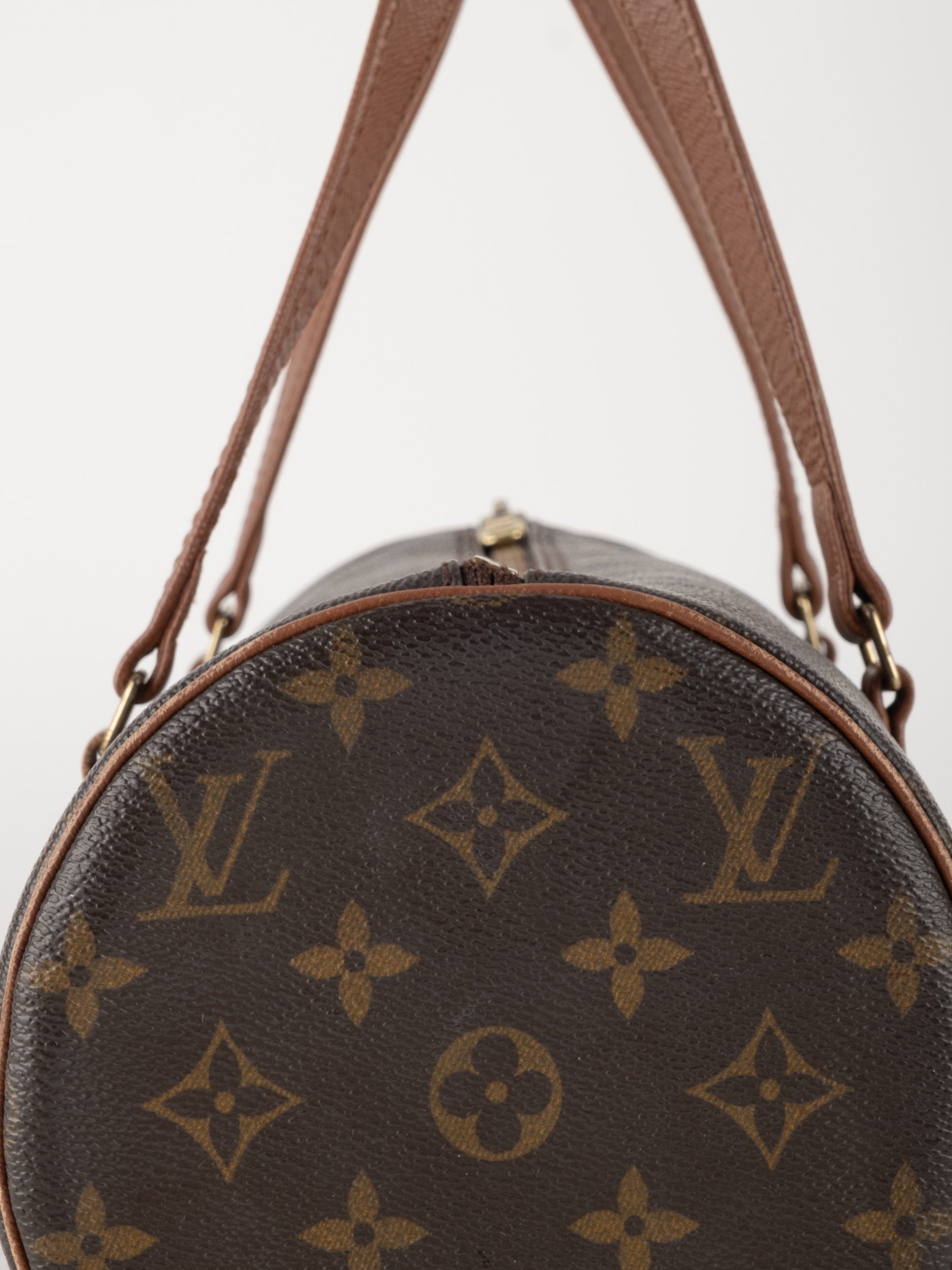 לואי ויטון LOUIS VUITTON וינטג' יד שנייה דגם Papillon 30 בדוגמת Monogram הקלאסית בגווני חום וזהב. תיק גלילי אייקוני עם נוכחות אלגנטית ועל־זמנית שמזוהה מיד עם בית האופנה הפריזאי.