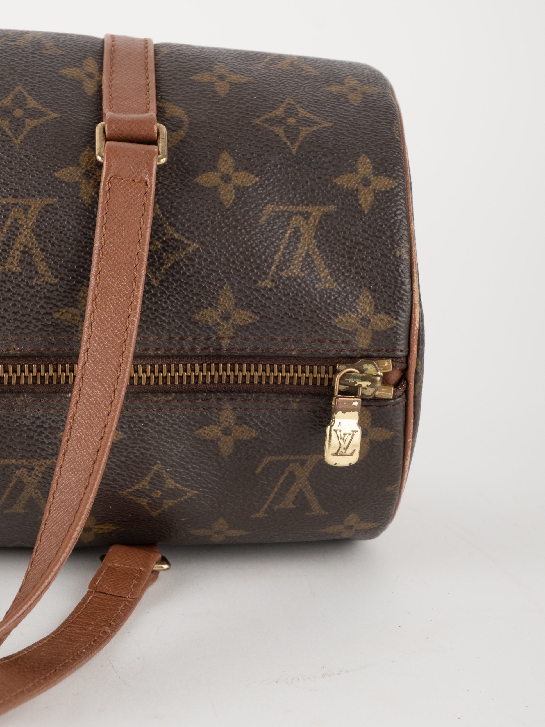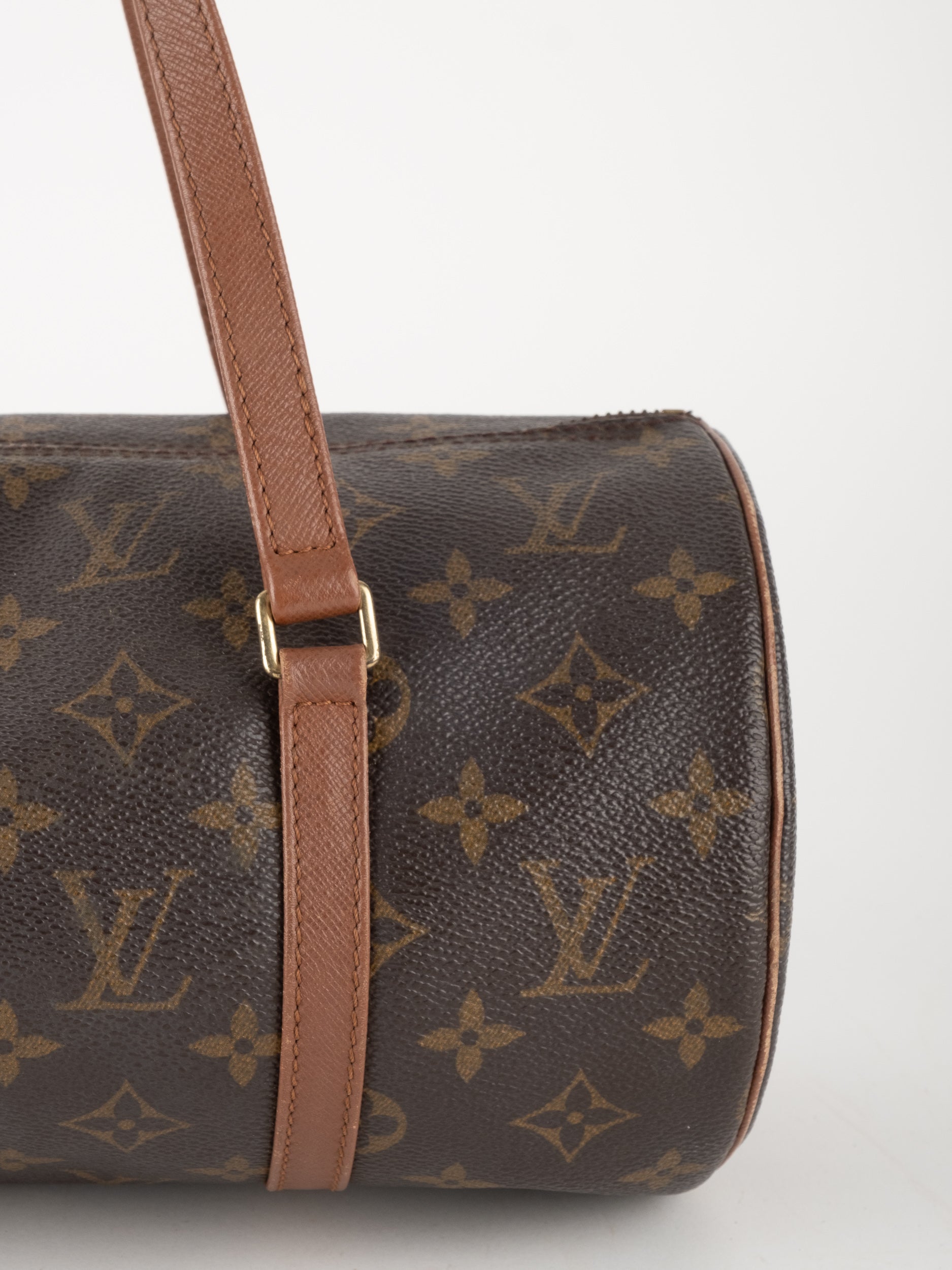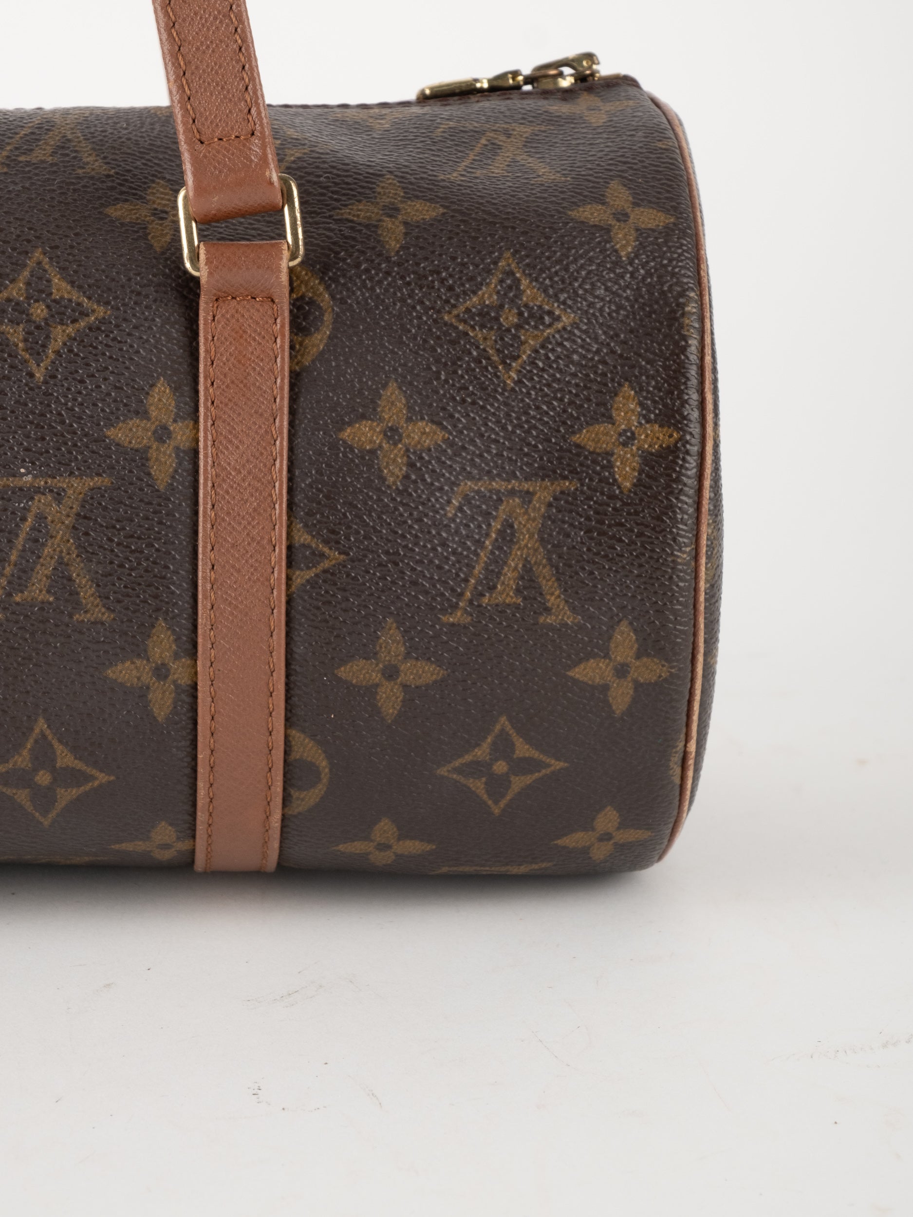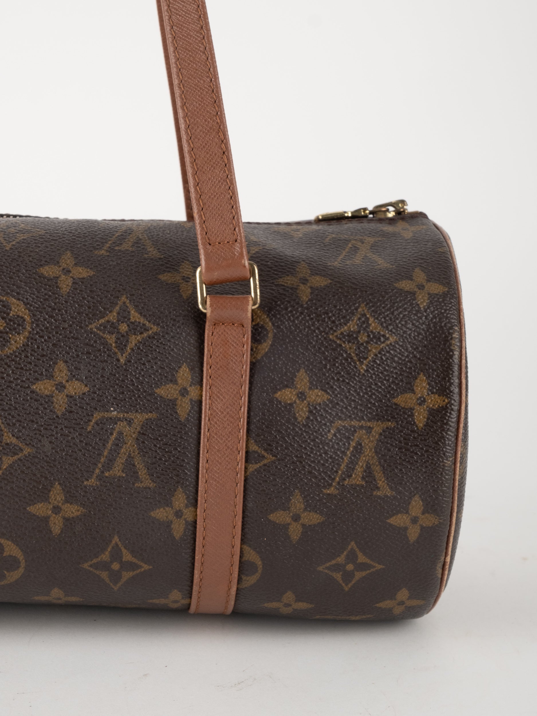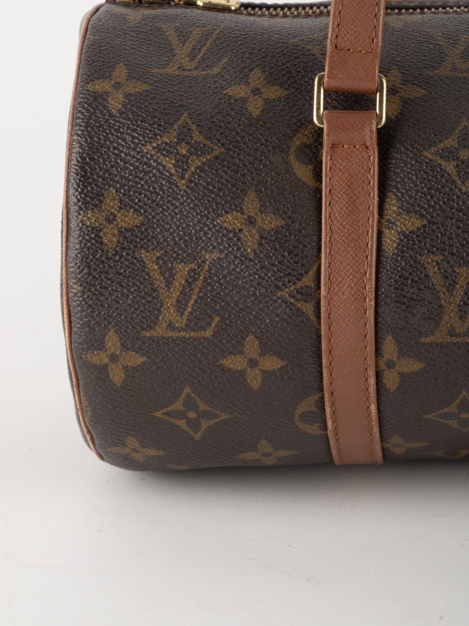 לואי ויטון LOUIS VUITTON וינטג' יד שנייה דגם Papillon 30 בדוגמת Monogram הקלאסית בגווני חום וזהב. תיק גלילי אייקוני עם נוכחות אלגנטית ועל־זמנית שמזוהה מיד עם בית האופנה הפריזאי.