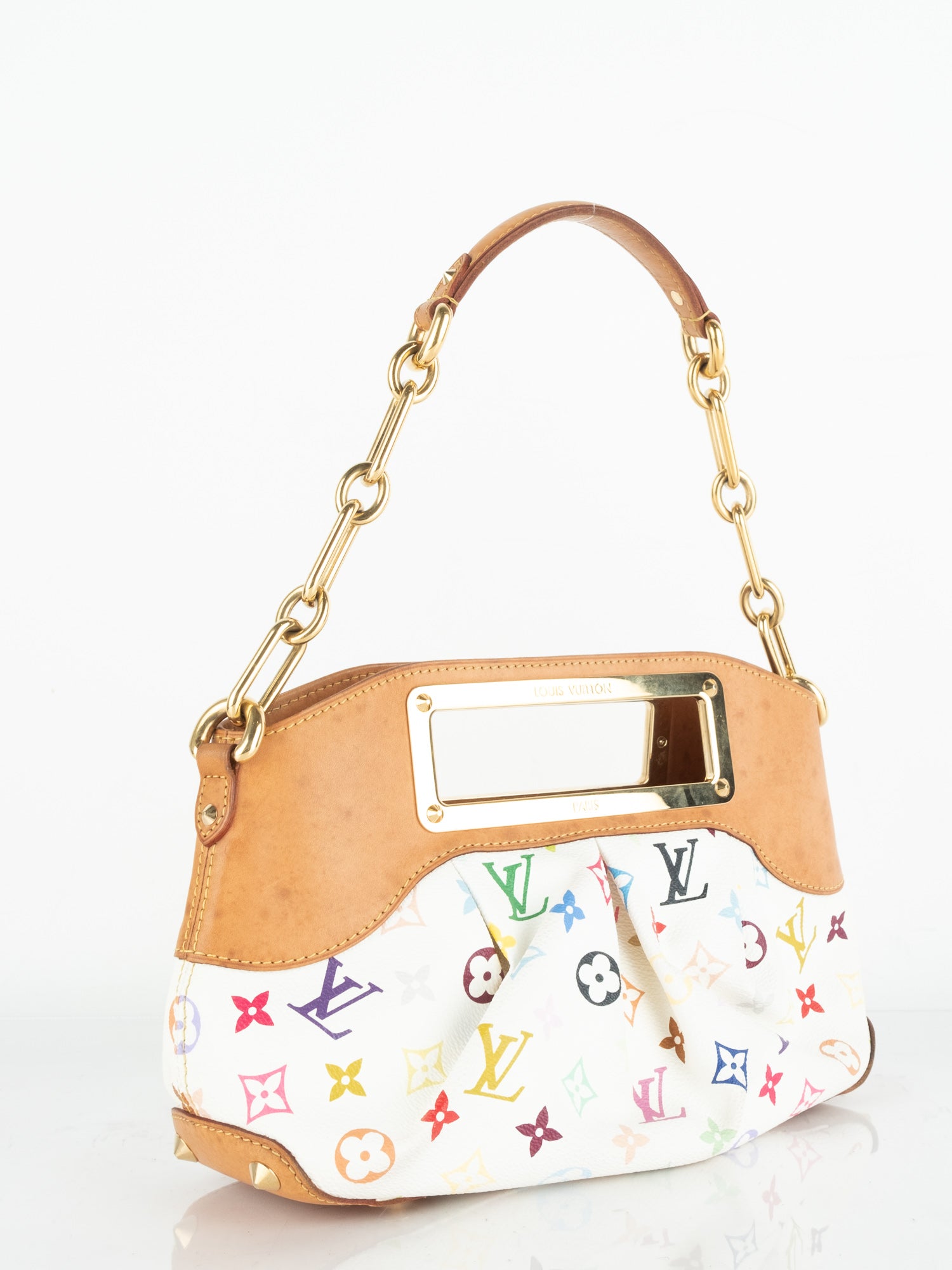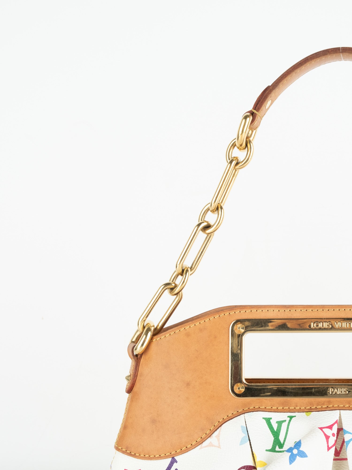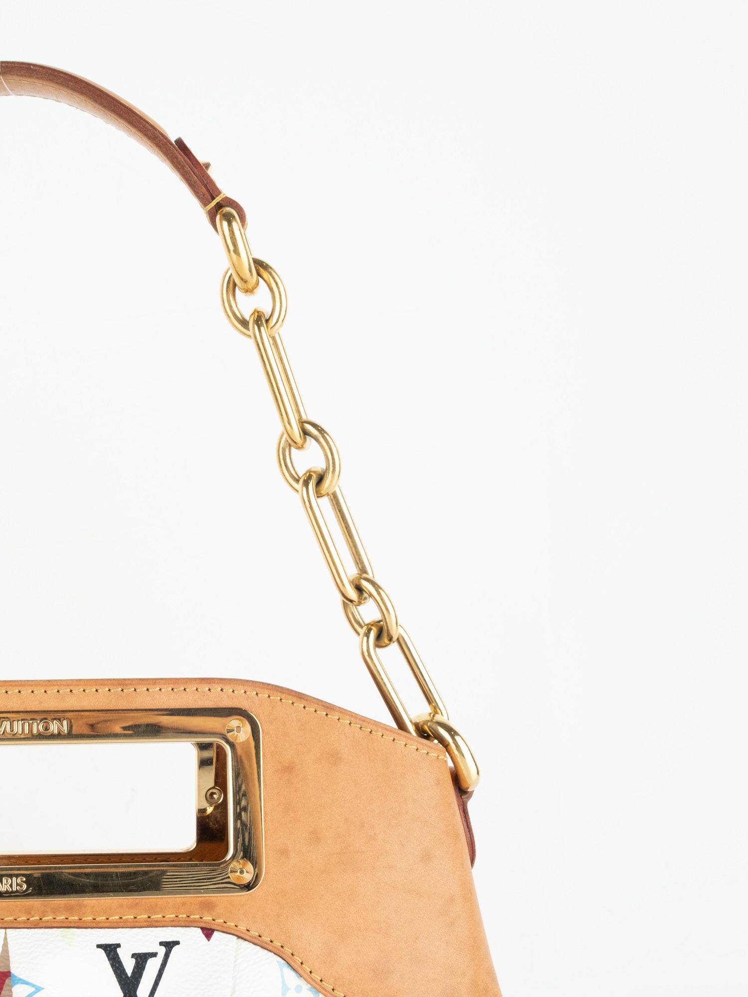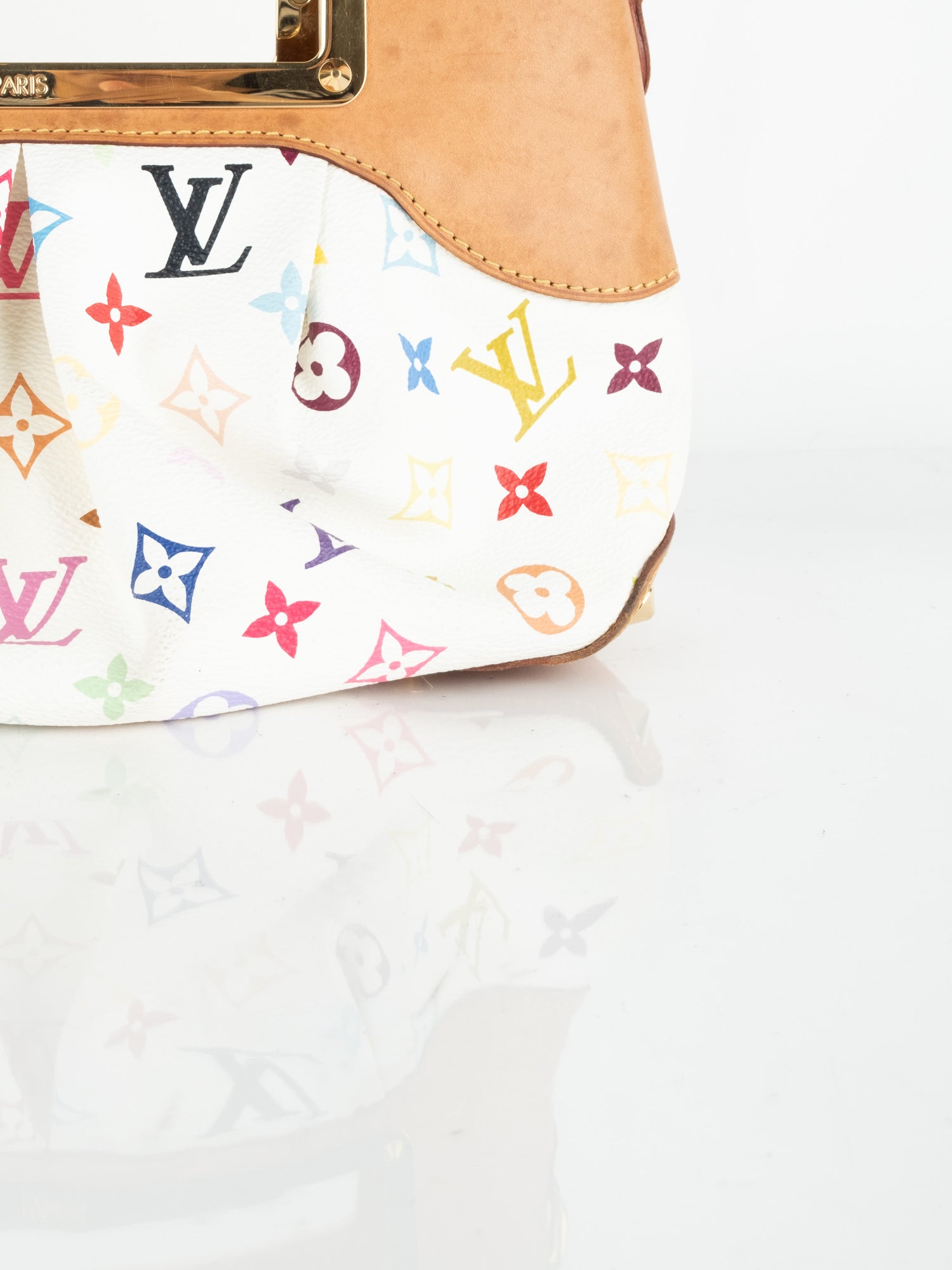 Takashi Murakami White Multicolore Monogram Coated Canvas & Vachetta Leather Judy