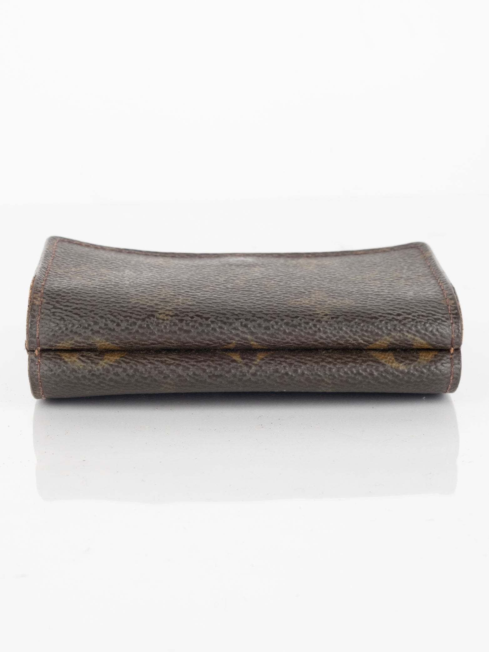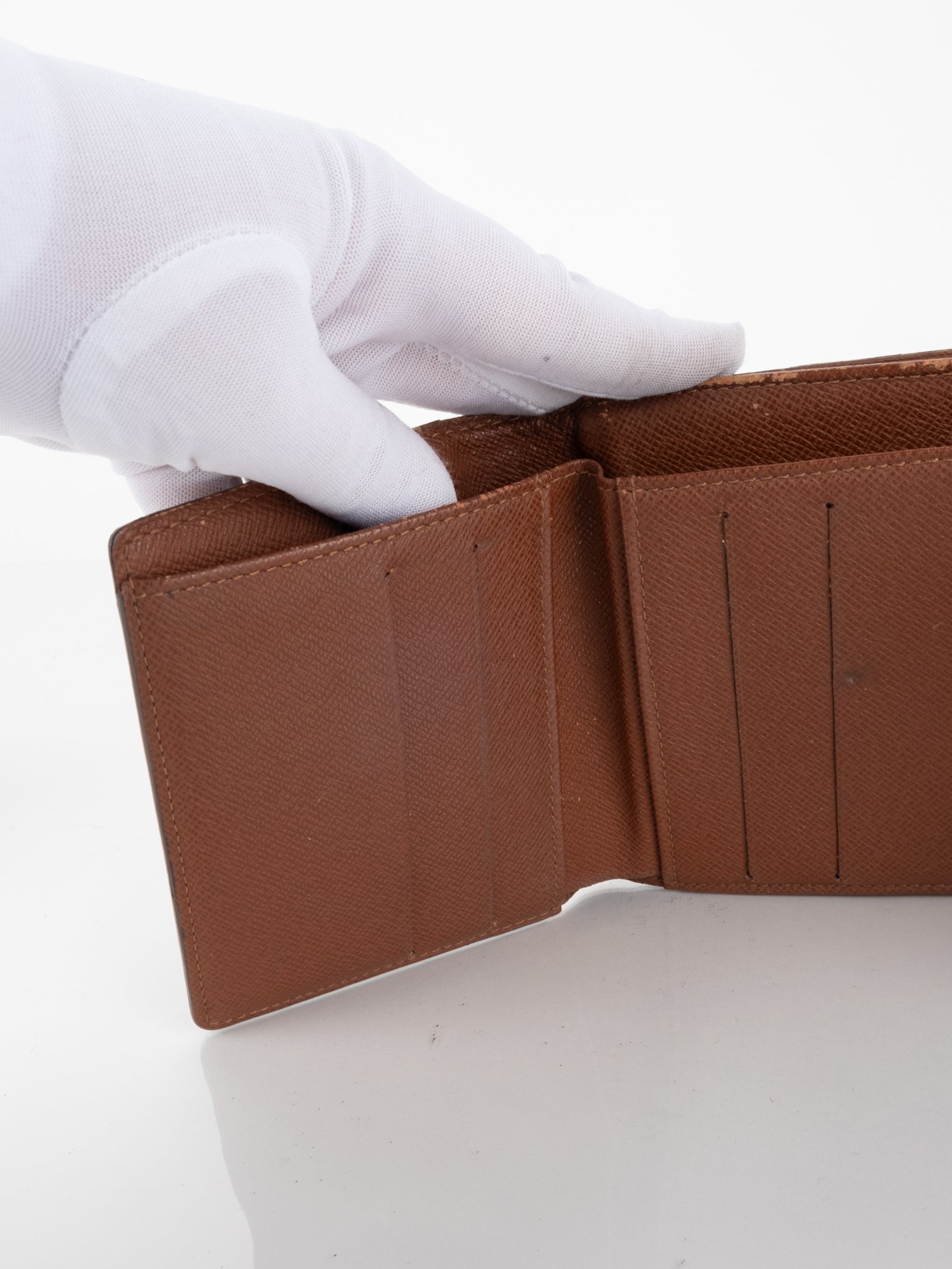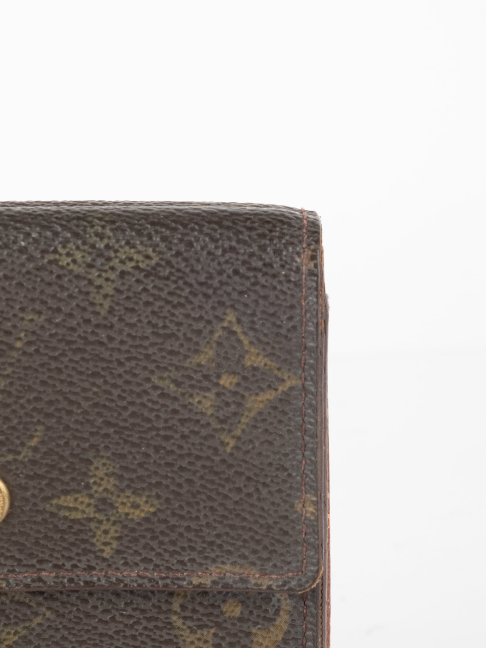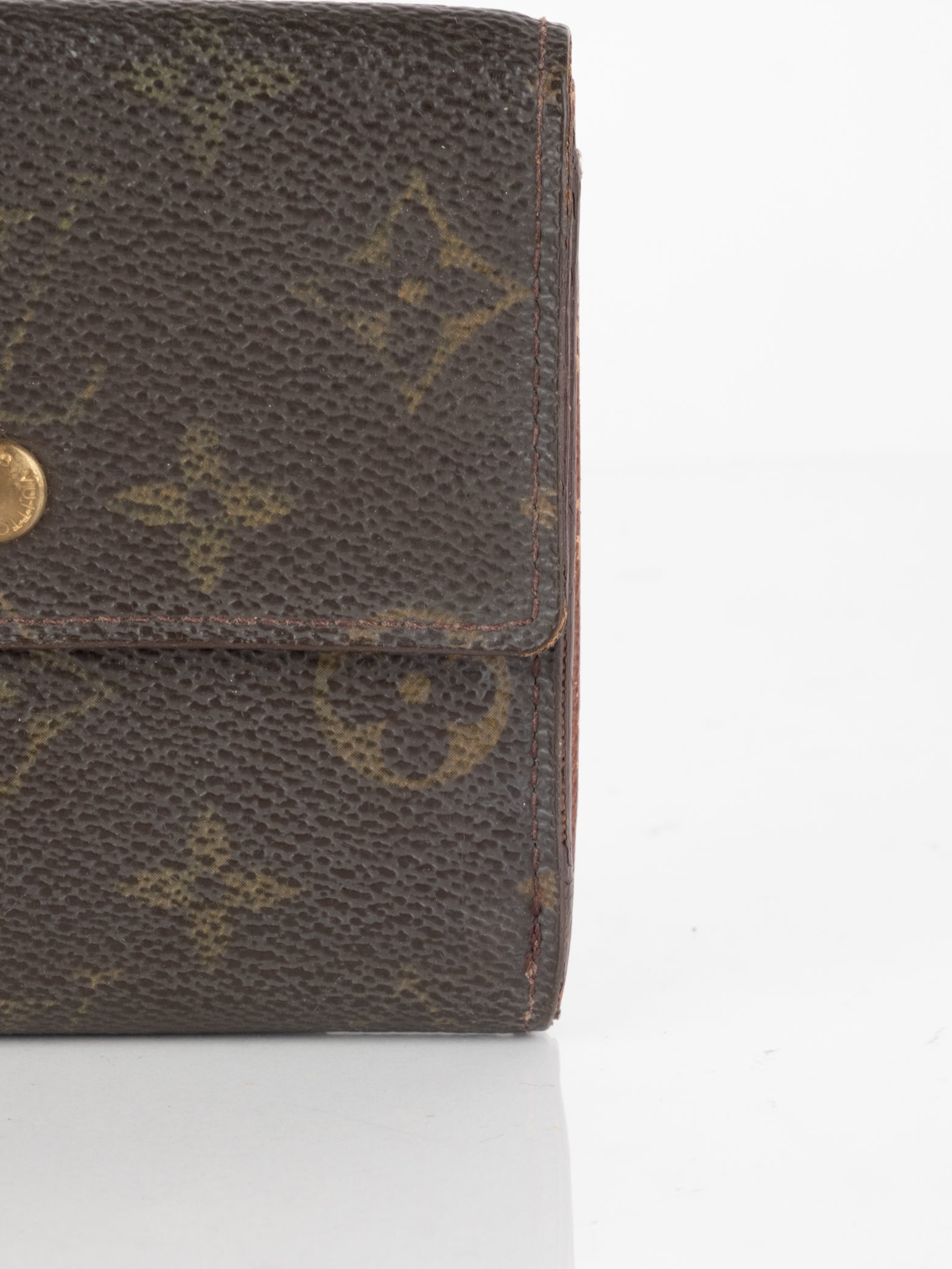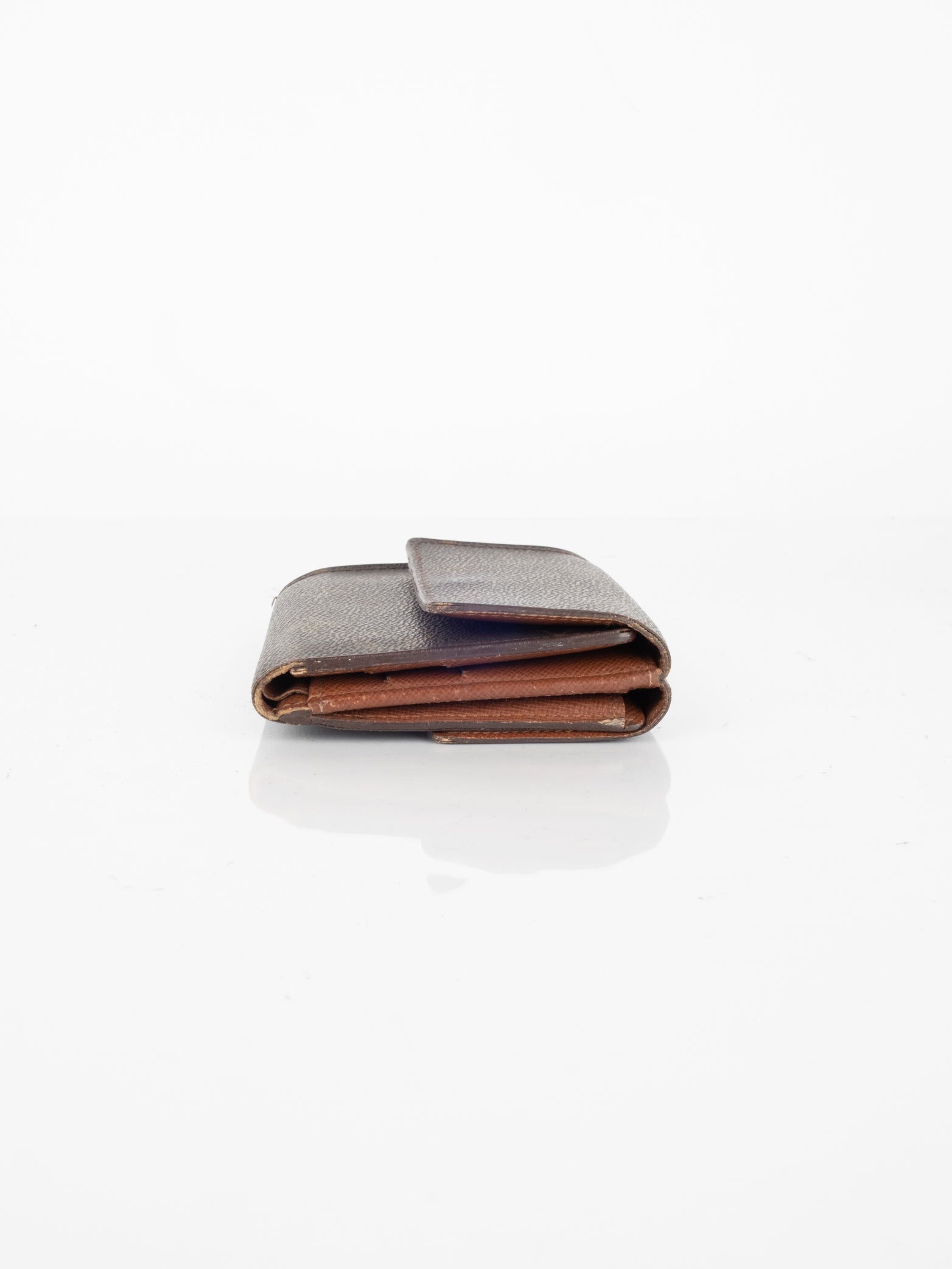 ארנק העשוי מקנבס בהדפס המונוגרמי המוכר של המותג בצרפתי הנסגר באמצעות כפתורי תיק-תק מוזהבים. ארנק זה מיועד למטבעות, כרטיסים ושטרות.