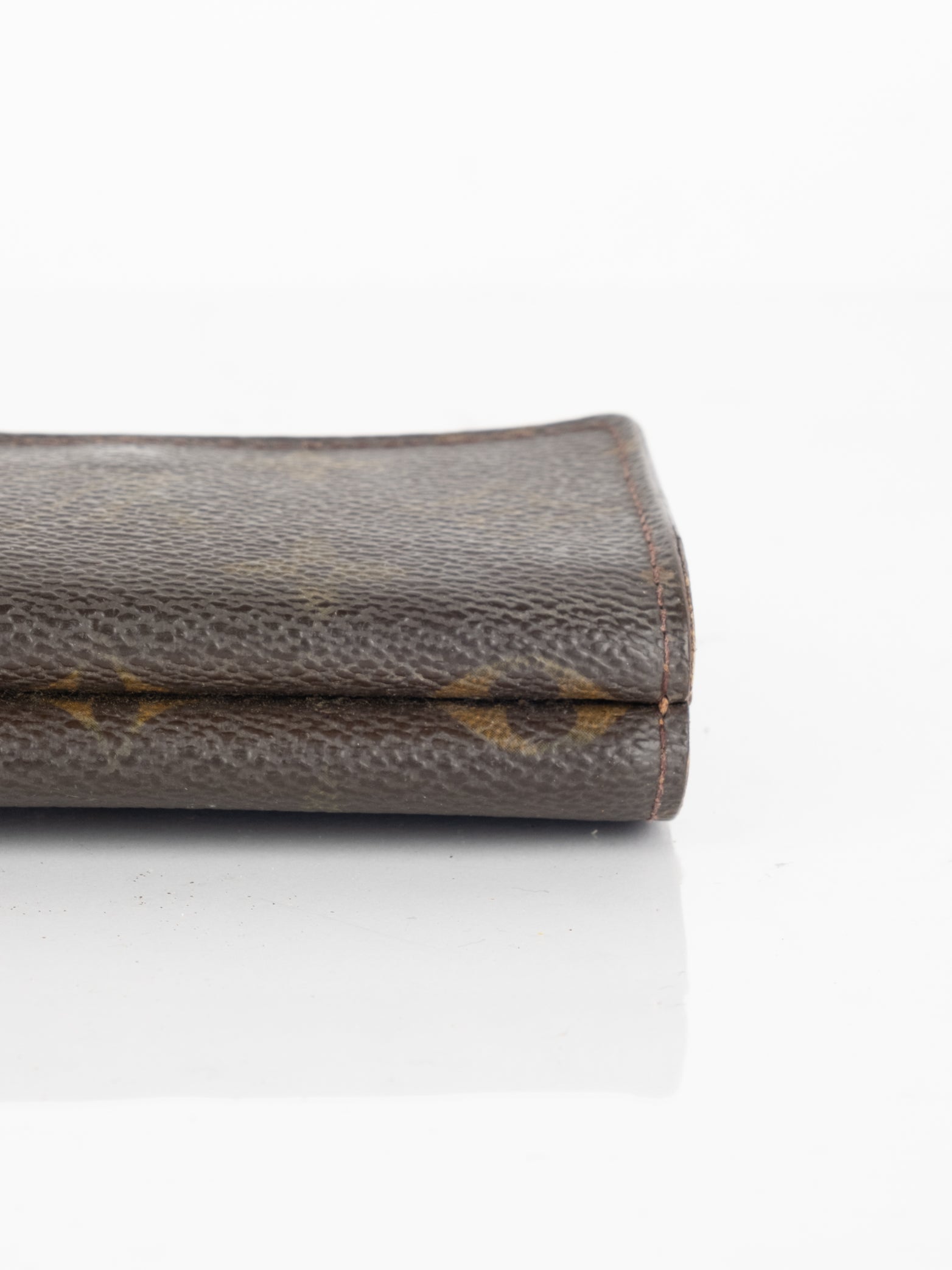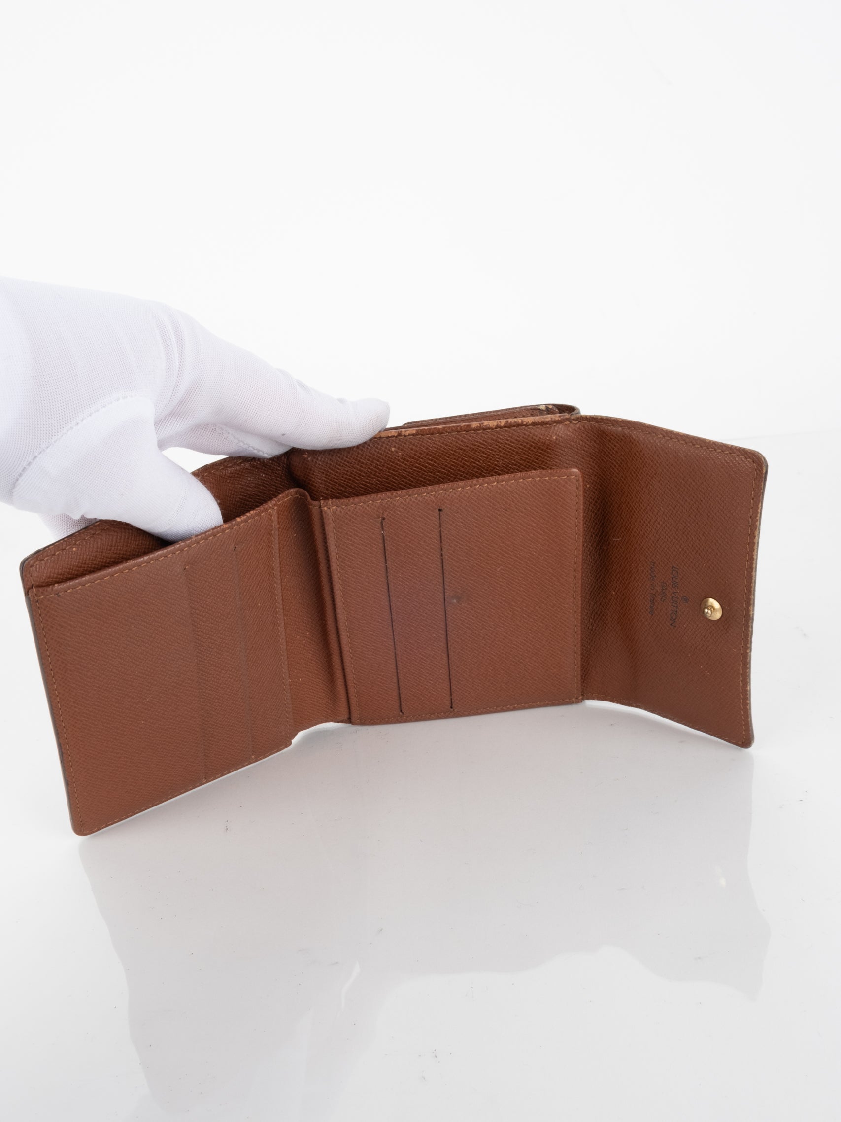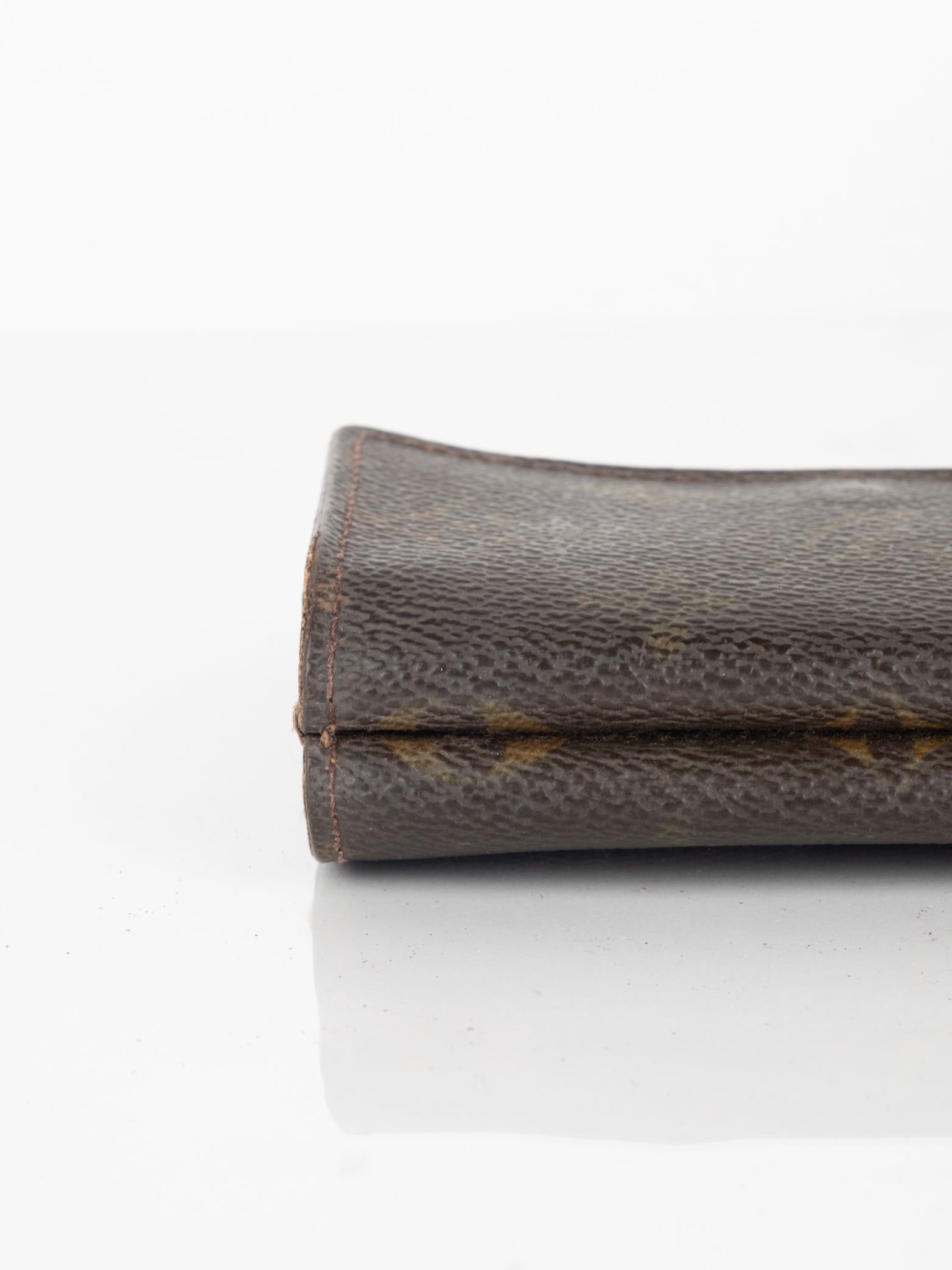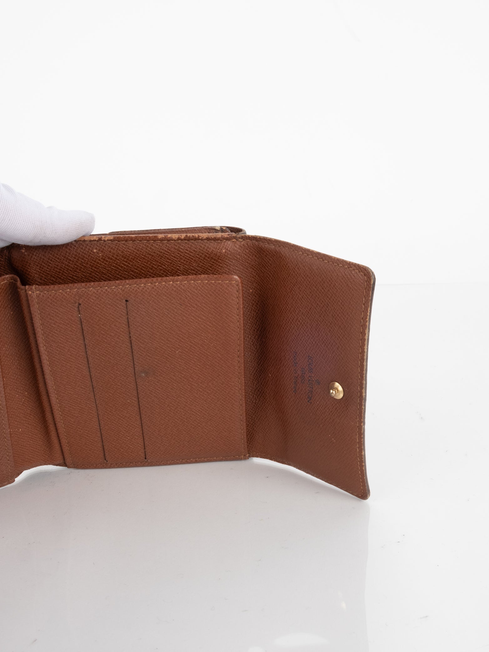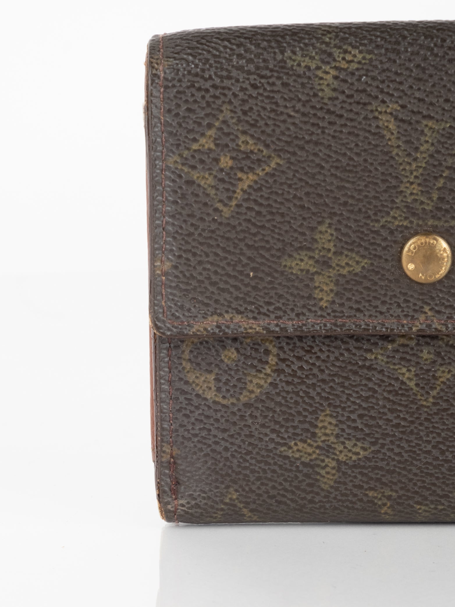 ארנק העשוי מקנבס בהדפס המונוגרמי המוכר של המותג בצרפתי הנסגר באמצעות כפתורי תיק-תק מוזהבים. ארנק זה מיועד למטבעות, כרטיסים ושטרות.