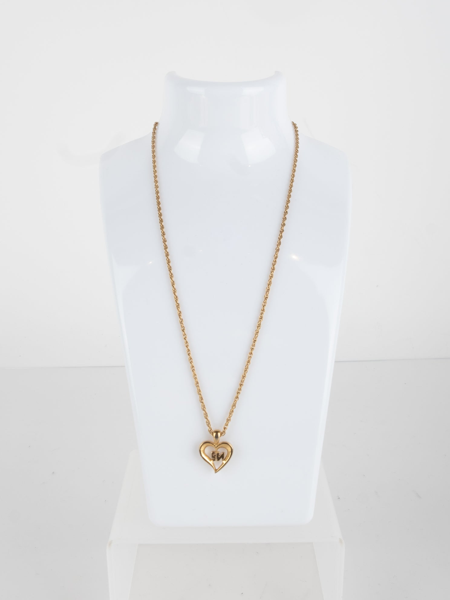 שרשרת עדינה בצבע זהב בעלת תליון בצורת לב עם ראשי תיבות של המותג מצופים בזירקונים.