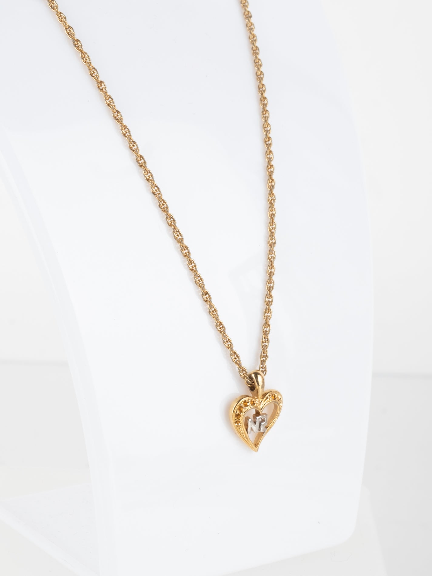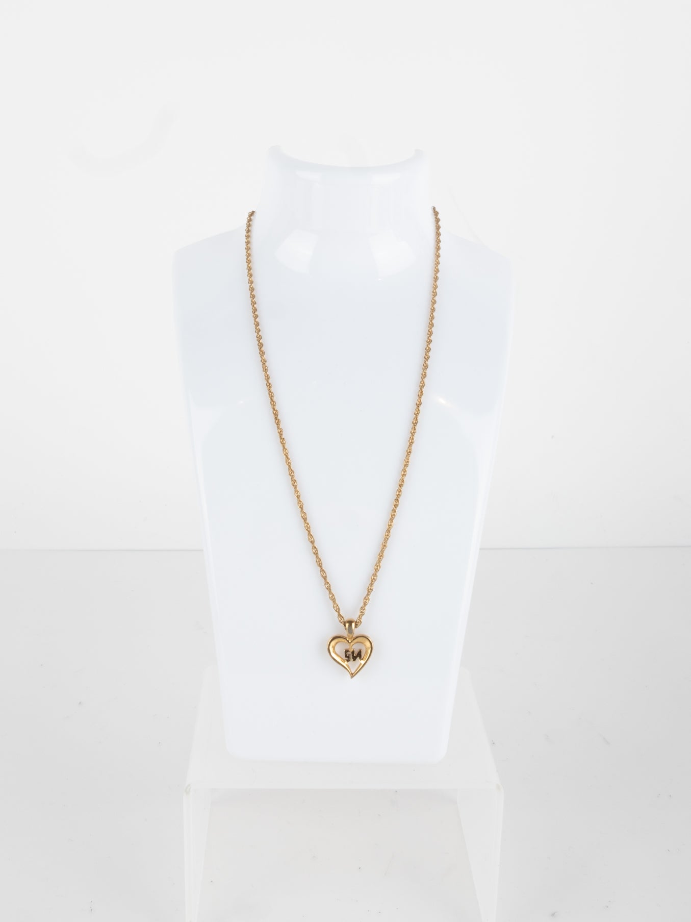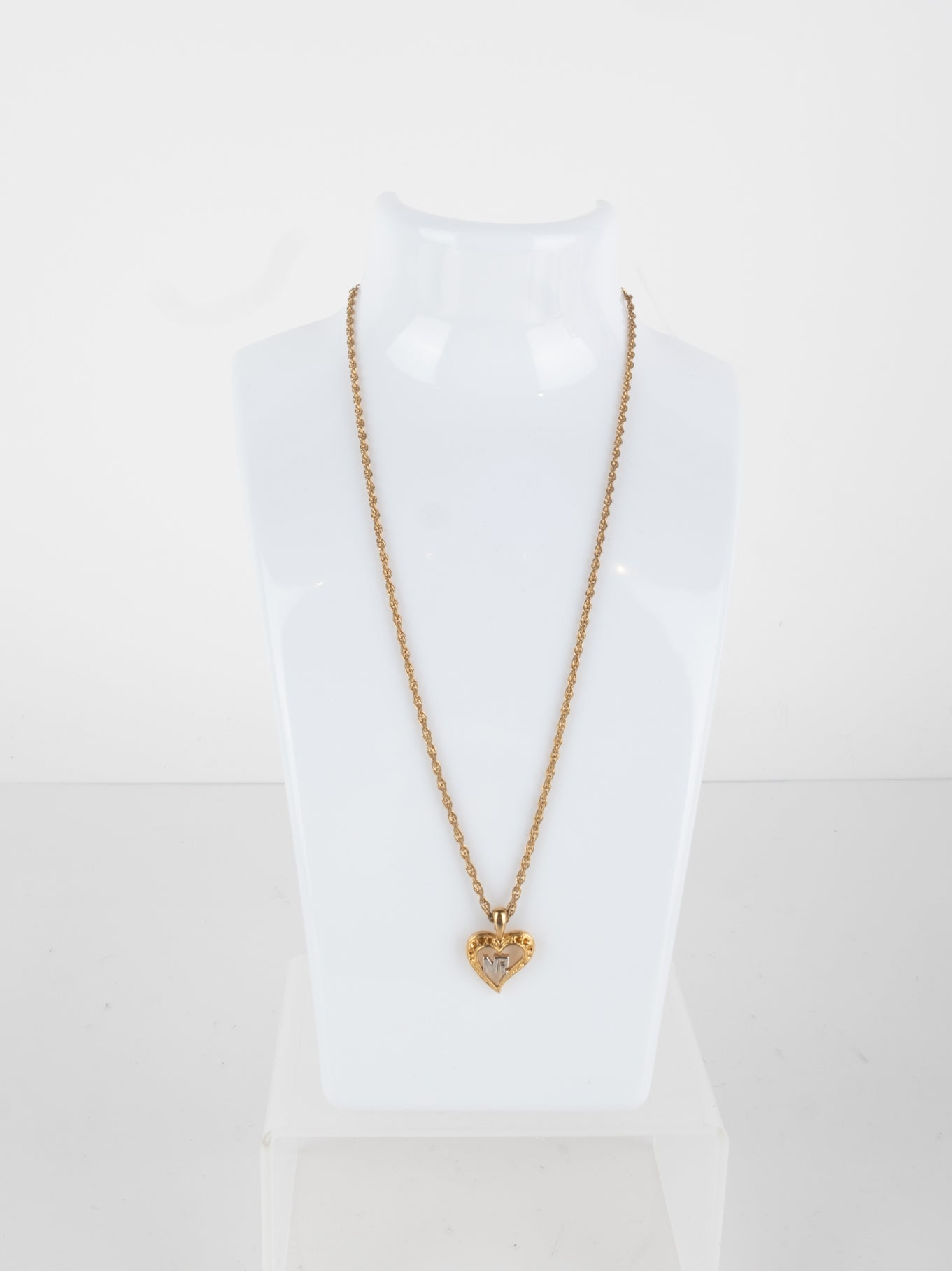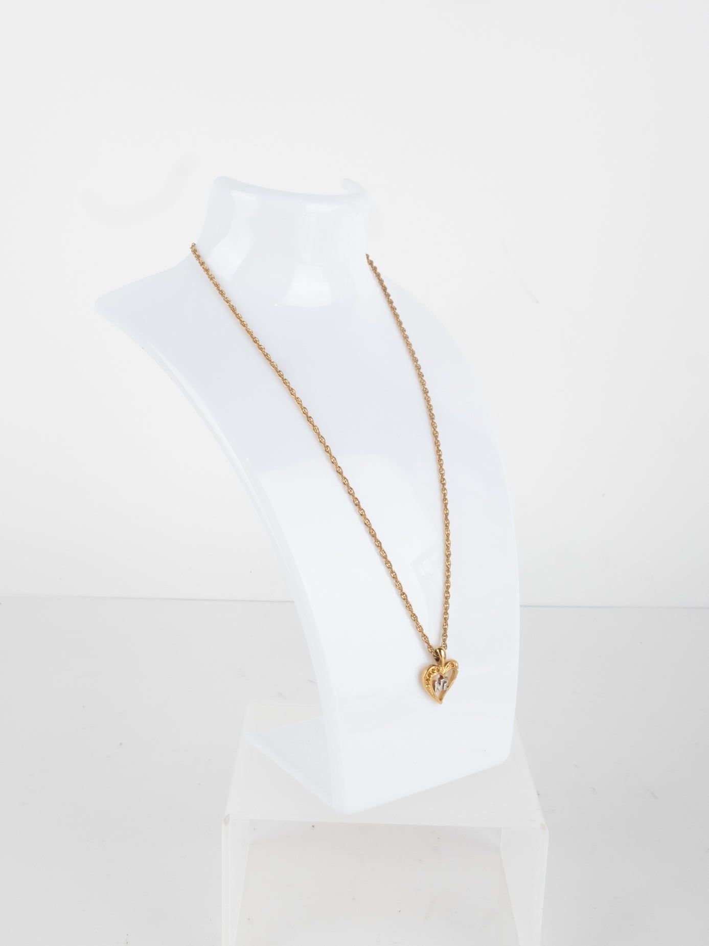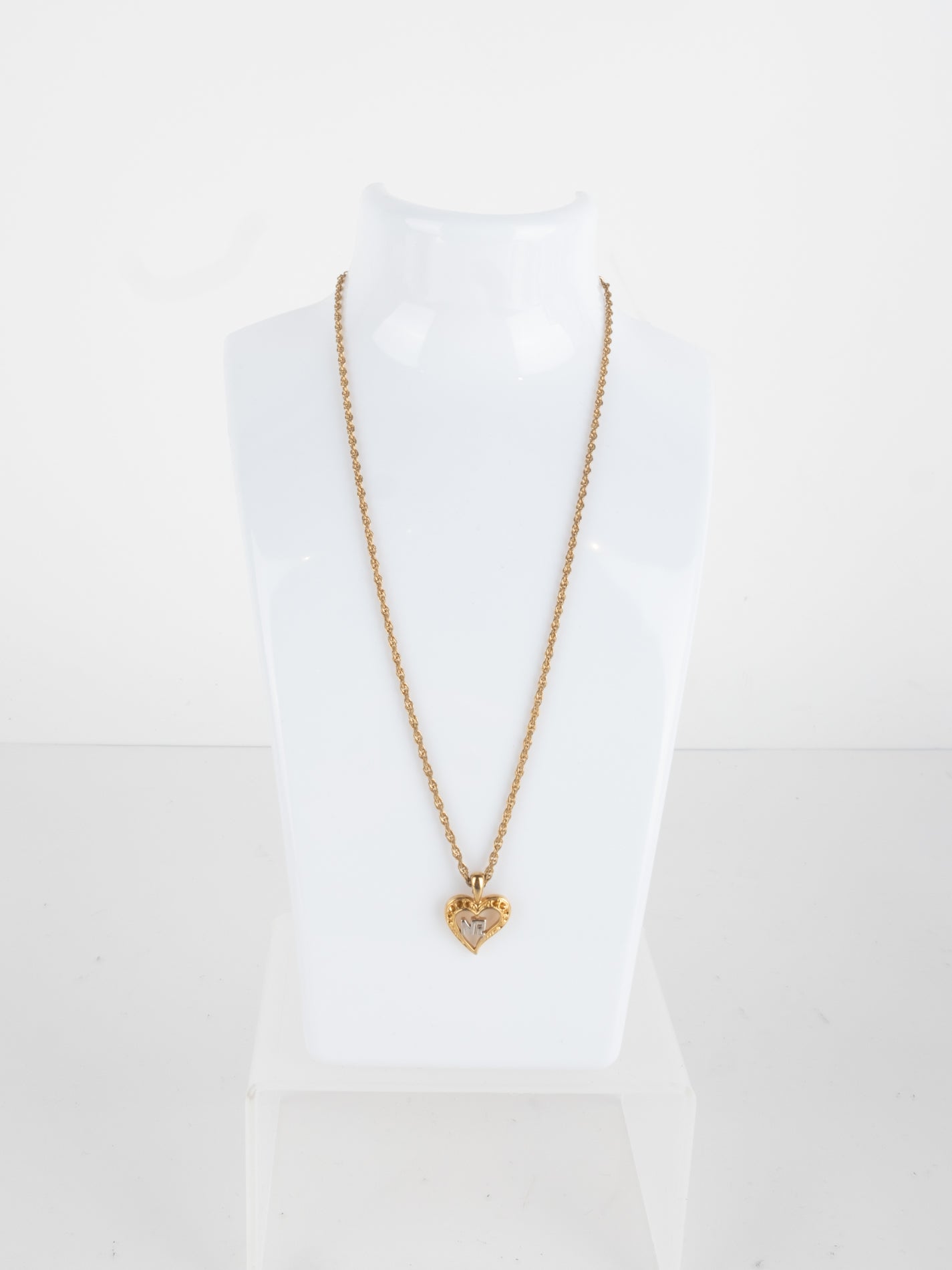 שרשרת עדינה בצבע זהב בעלת תליון בצורת לב עם זירקונים כתומים.