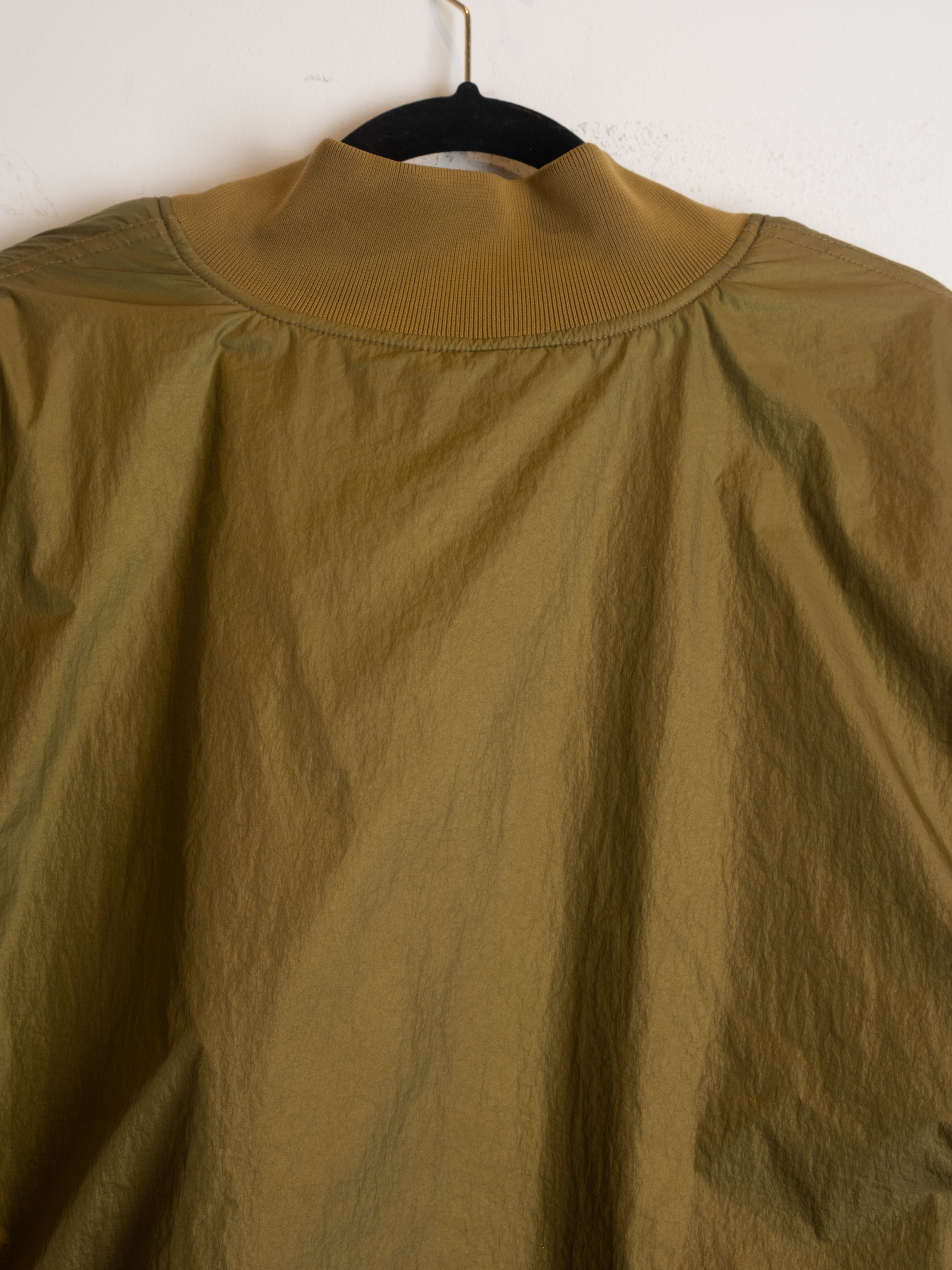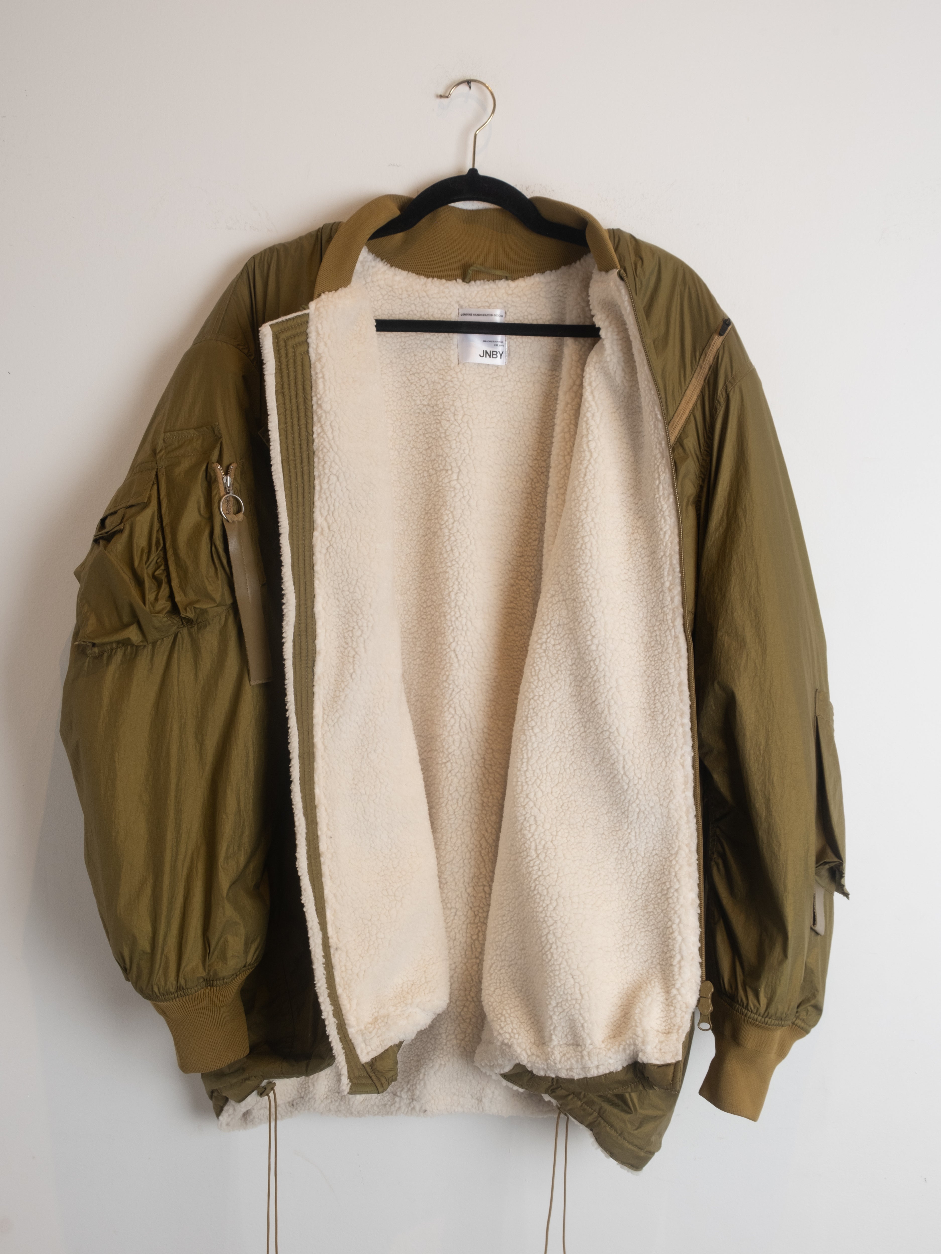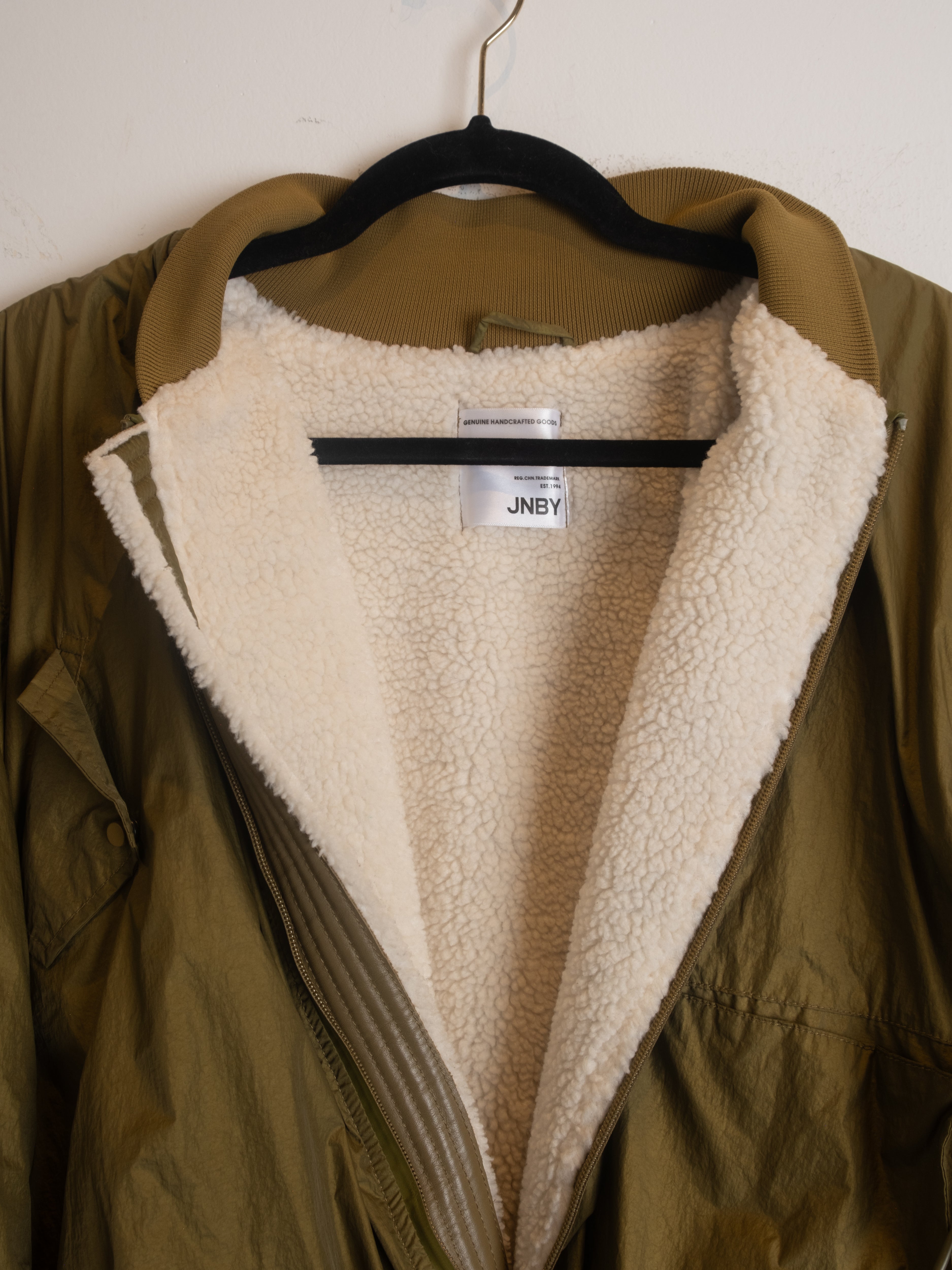 מעיל בומבר אוברסייז של JNBY וינטג' יד שנייה בגוון חאקי עמוק, בעל עיצוב ארכיטקטוני ייחודי המשלב נפח, טקסטורות ומשחקי שכבות. בד קל־משקל אך דרמטי, גזרה מעוצבת עם פרטים ייחודיים ומראה אורבני־אומנותי שמאפיין את בית המותג JNBY. פריט יוקרתי ומלא נוכחות שמעניק תחושת סטייל בלתי מתאמץ.