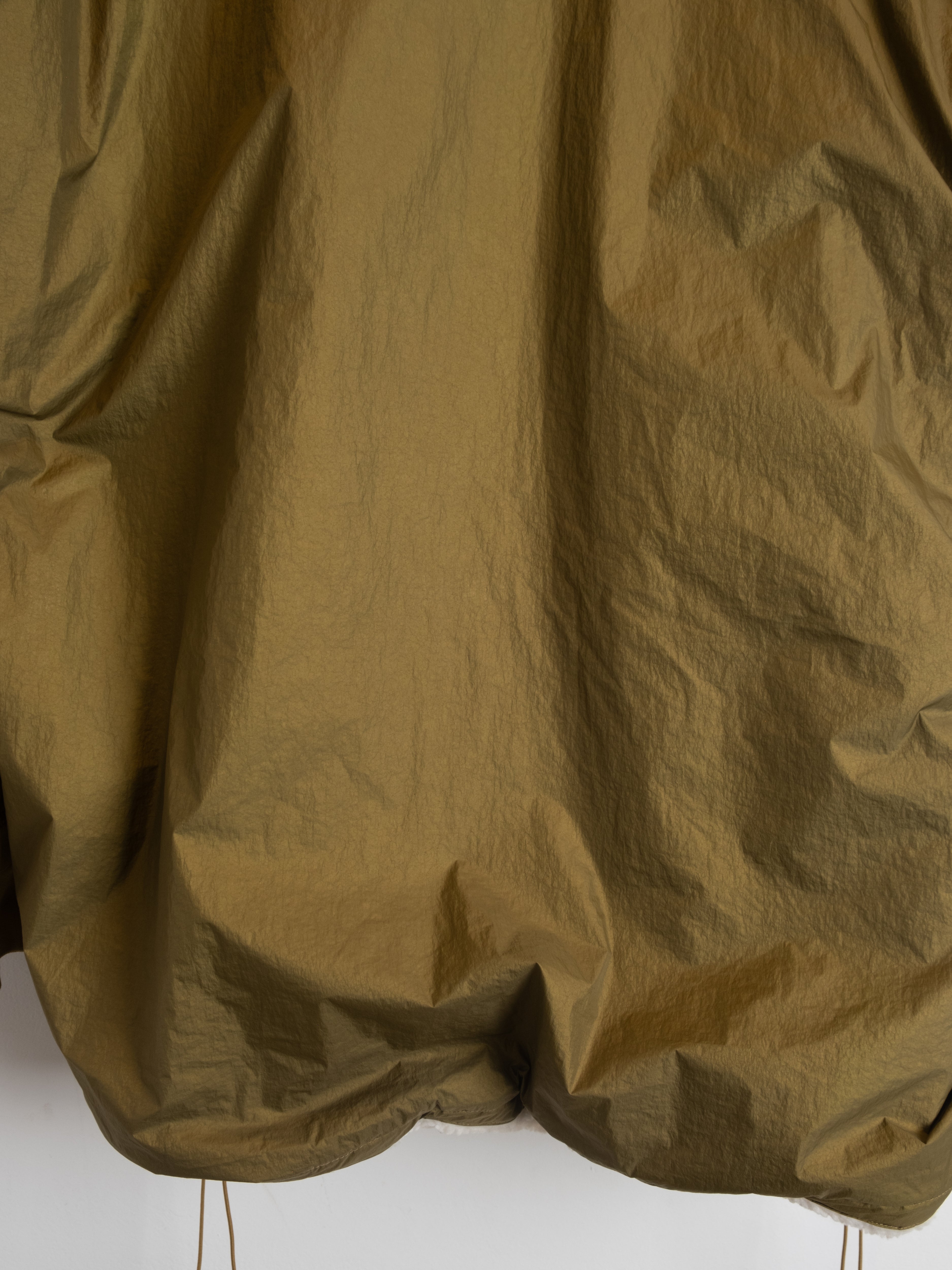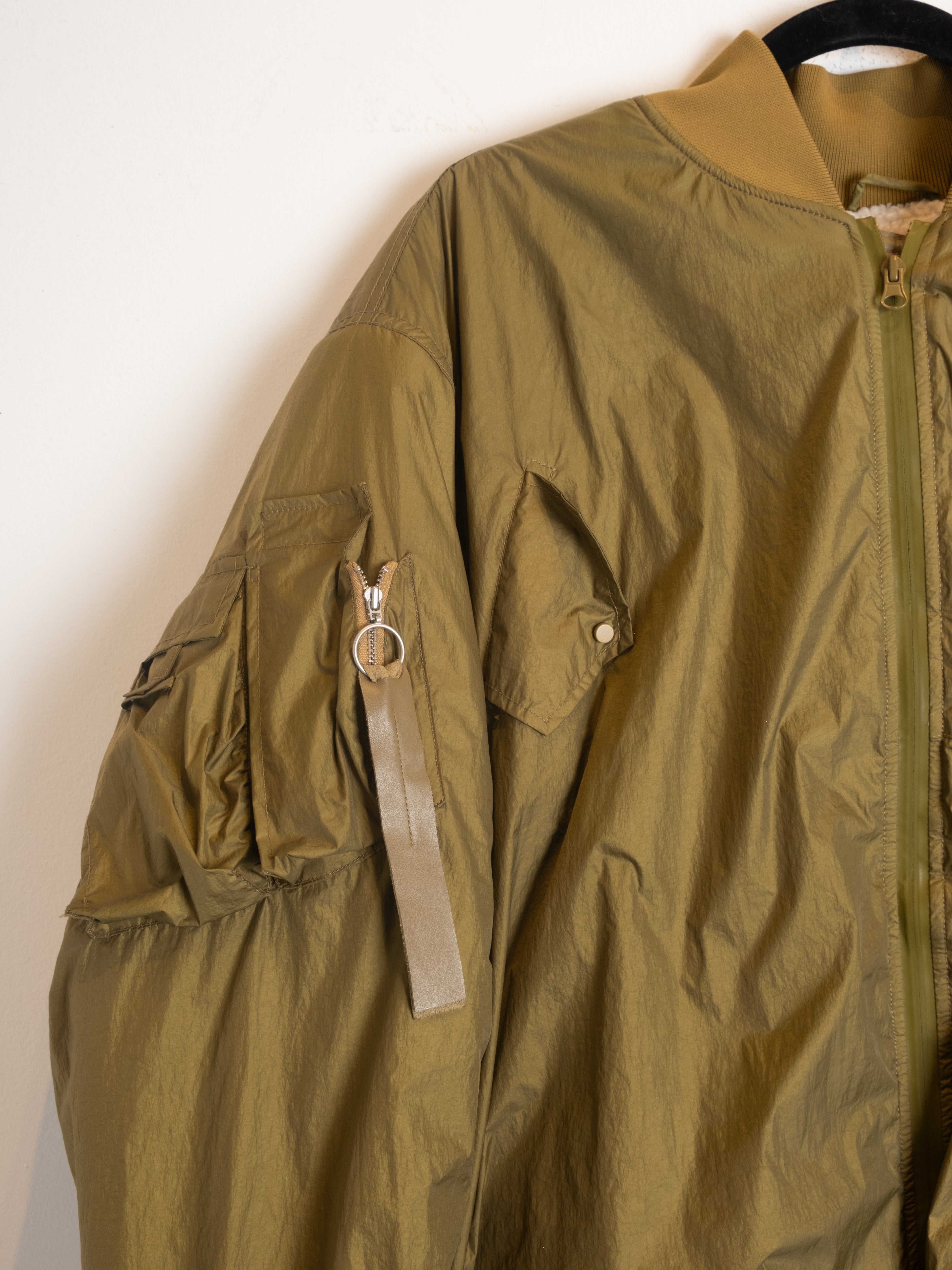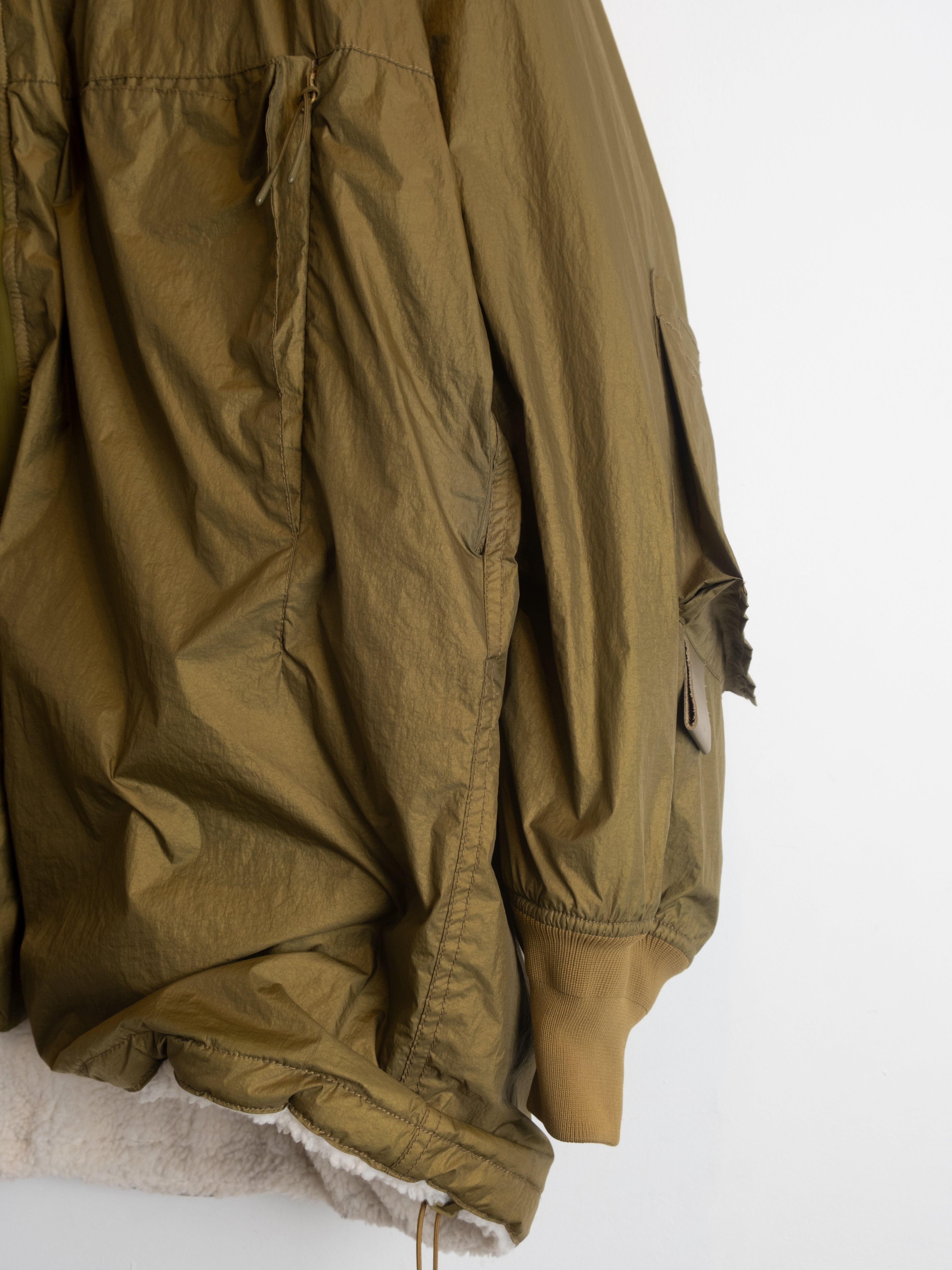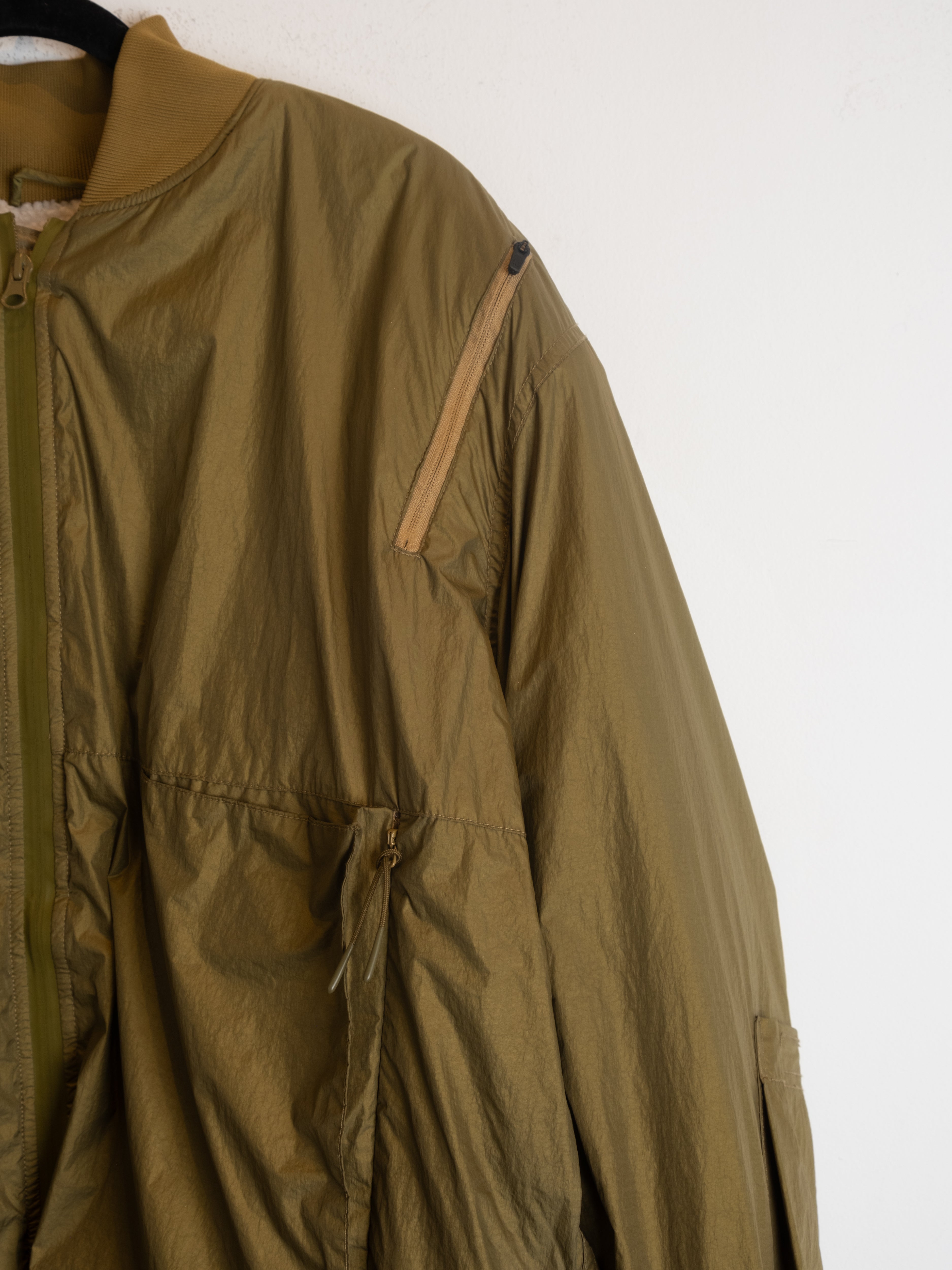 מעיל בומבר אוברסייז של JNBY וינטג' יד שנייה בגוון חאקי עמוק, בעל עיצוב ארכיטקטוני ייחודי המשלב נפח, טקסטורות ומשחקי שכבות. בד קל־משקל אך דרמטי, גזרה מעוצבת עם פרטים ייחודיים ומראה אורבני־אומנותי שמאפיין את בית המותג JNBY. פריט יוקרתי ומלא נוכחות שמעניק תחושת סטייל בלתי מתאמץ.