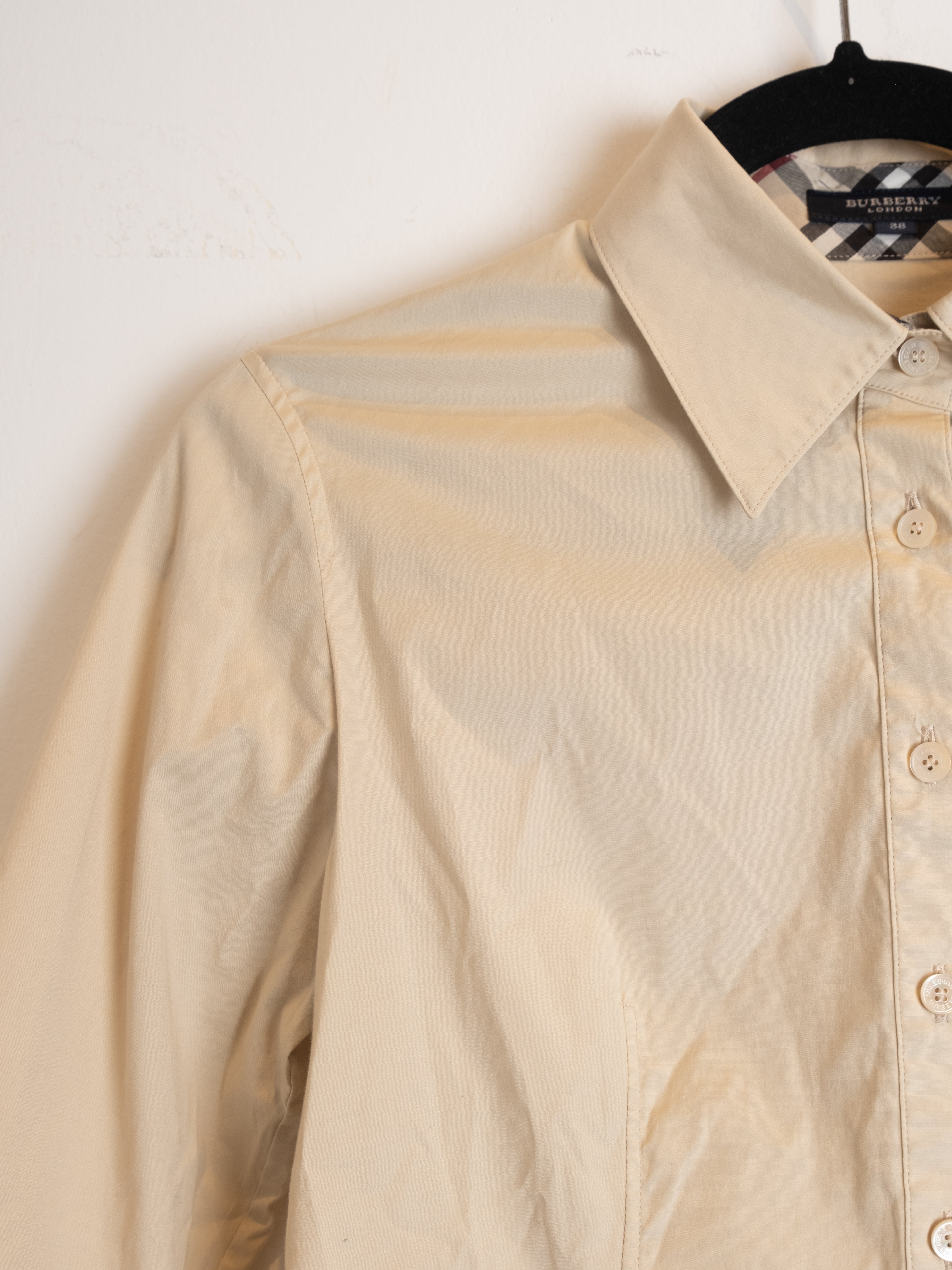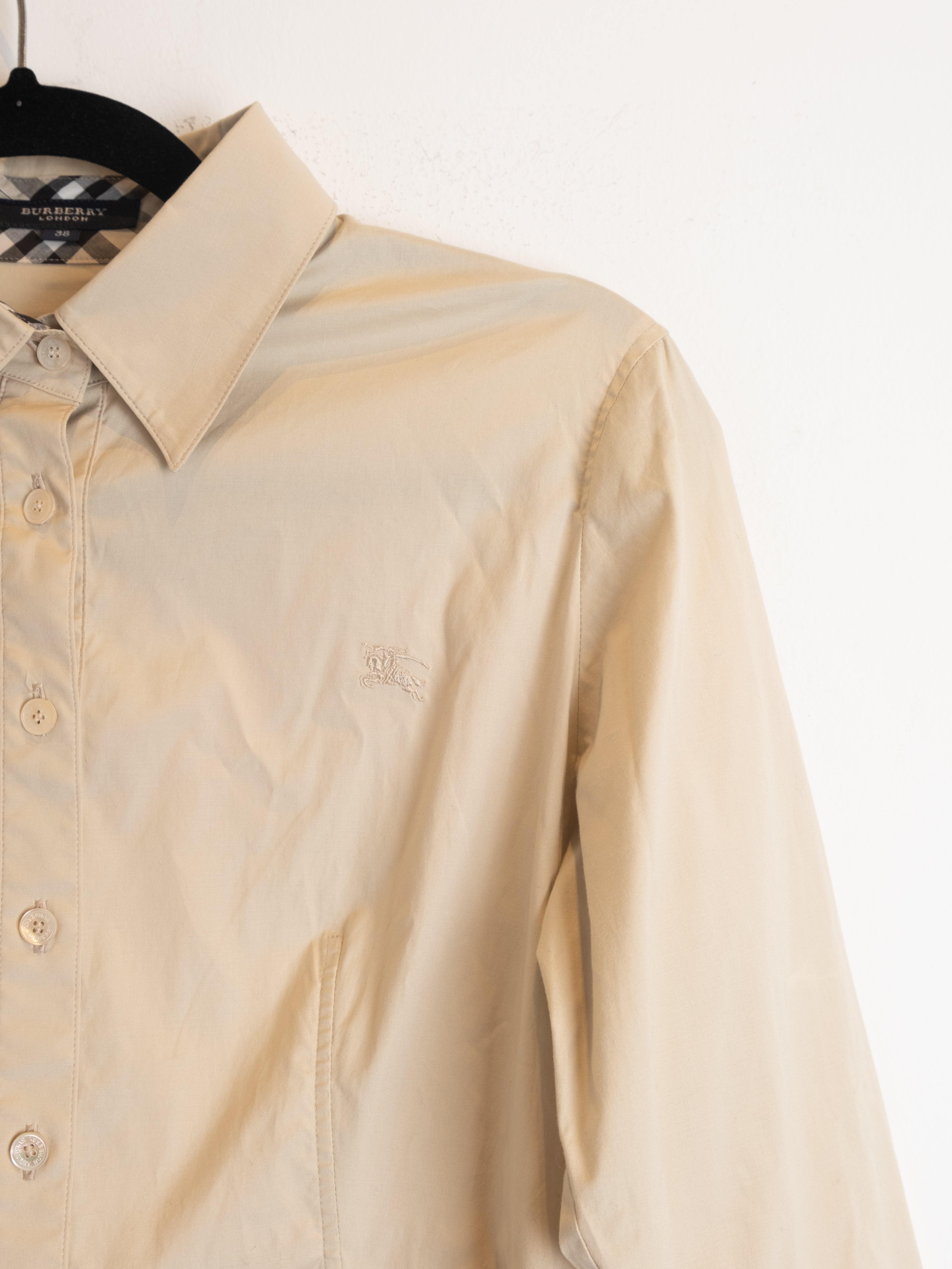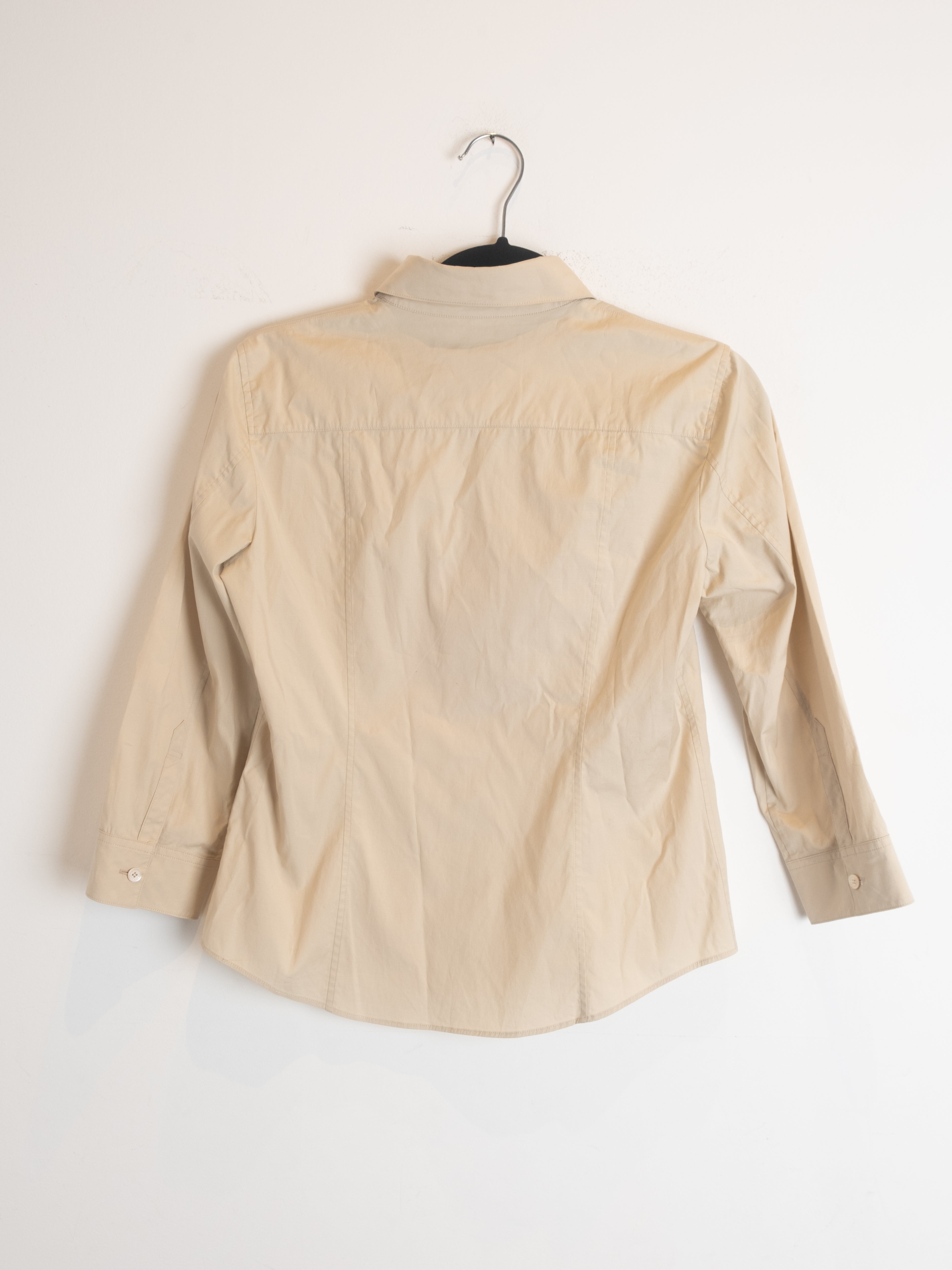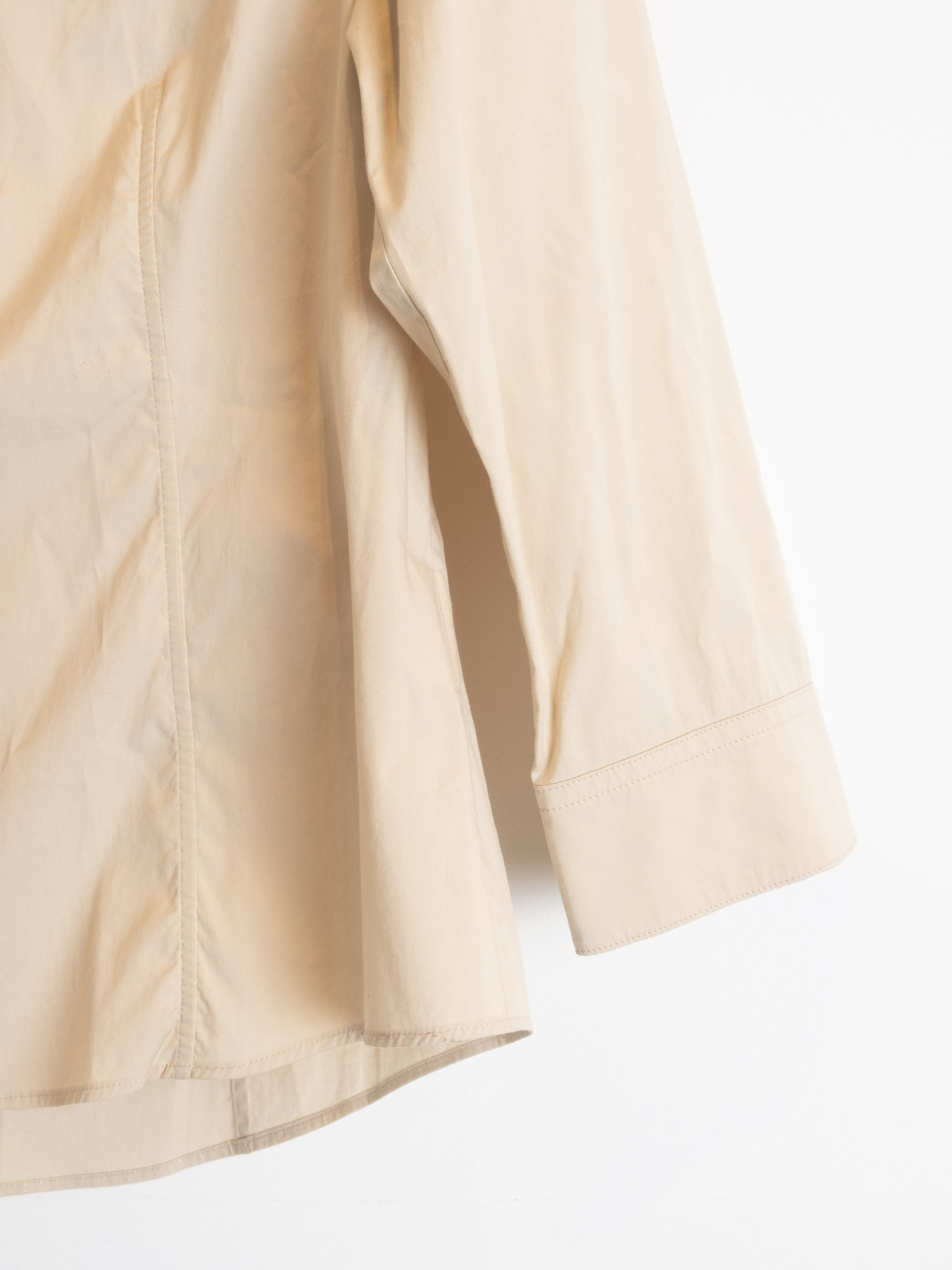 המעיל עשוי בד אריג קל בגוון חאקי.