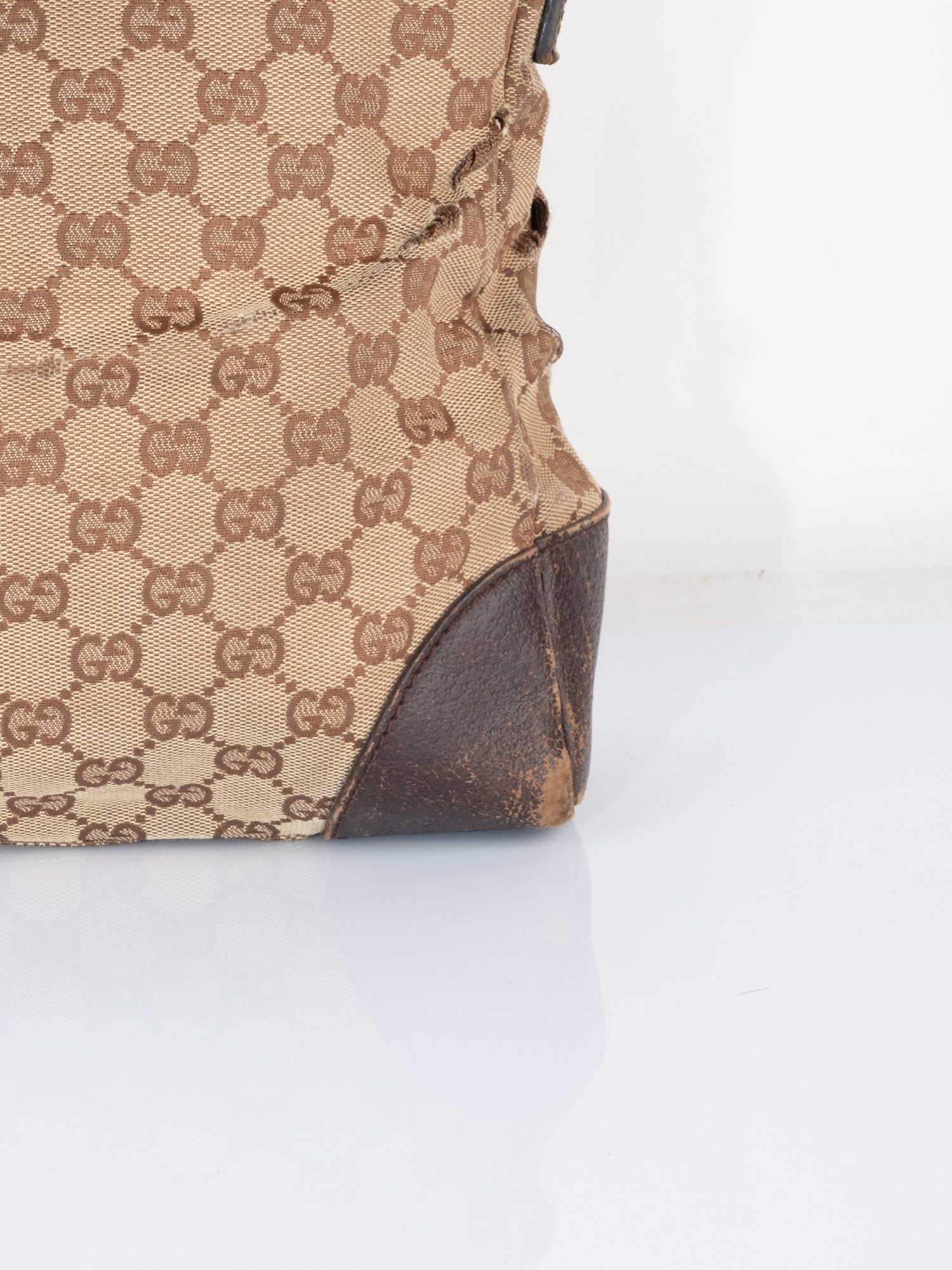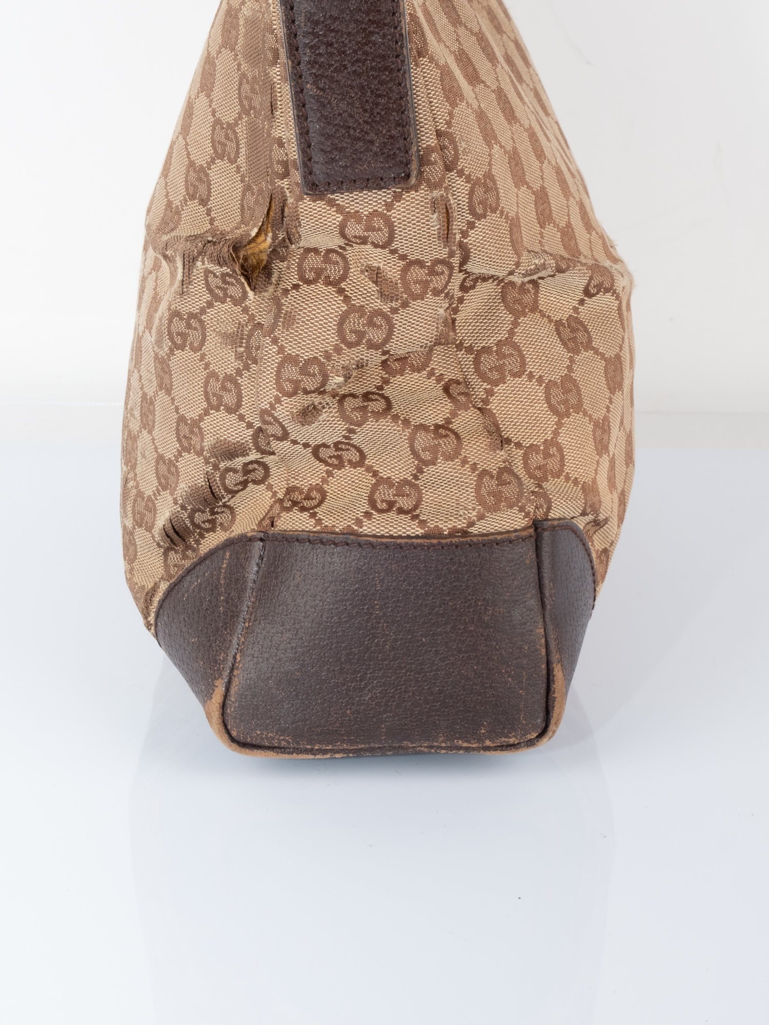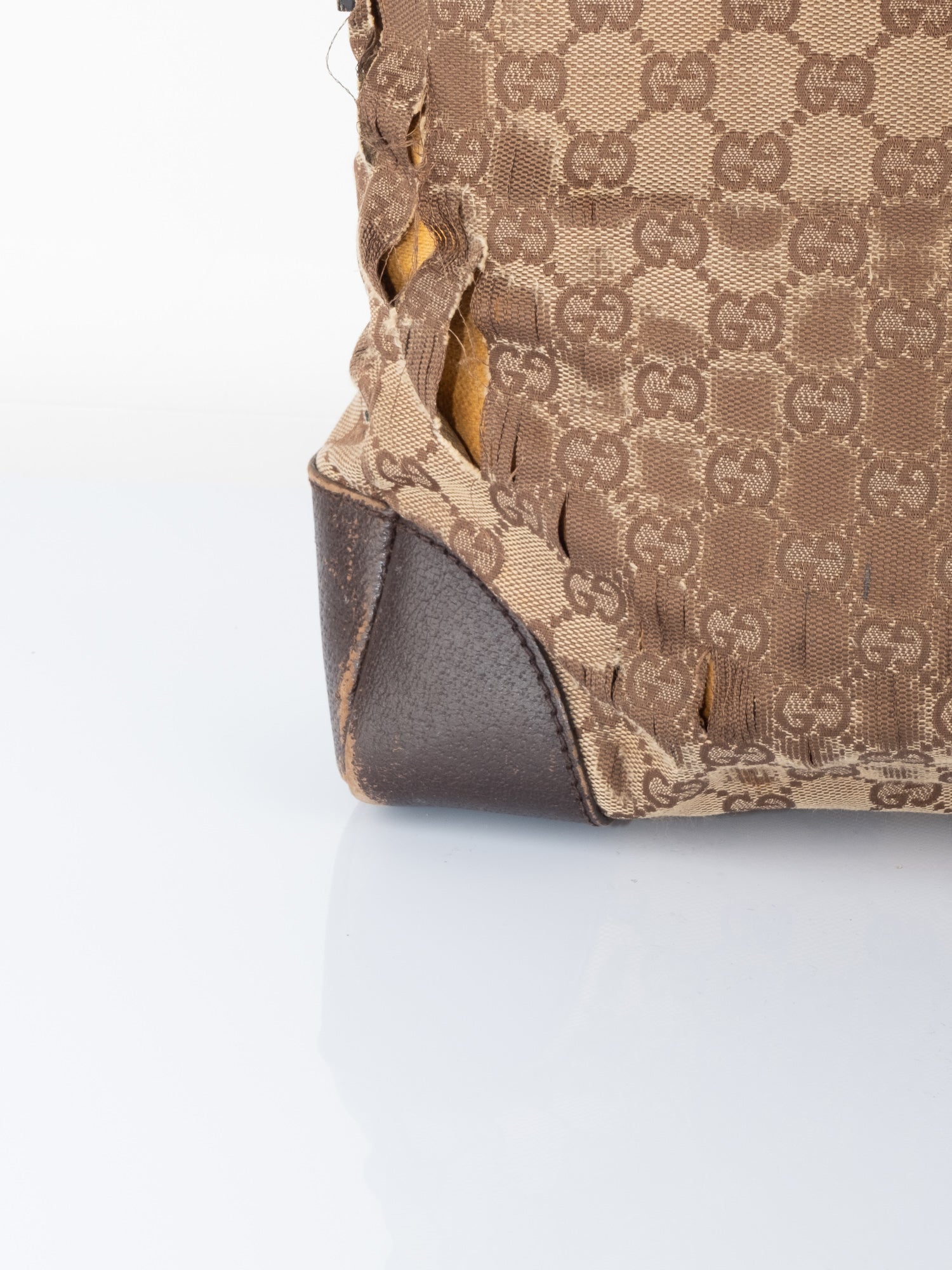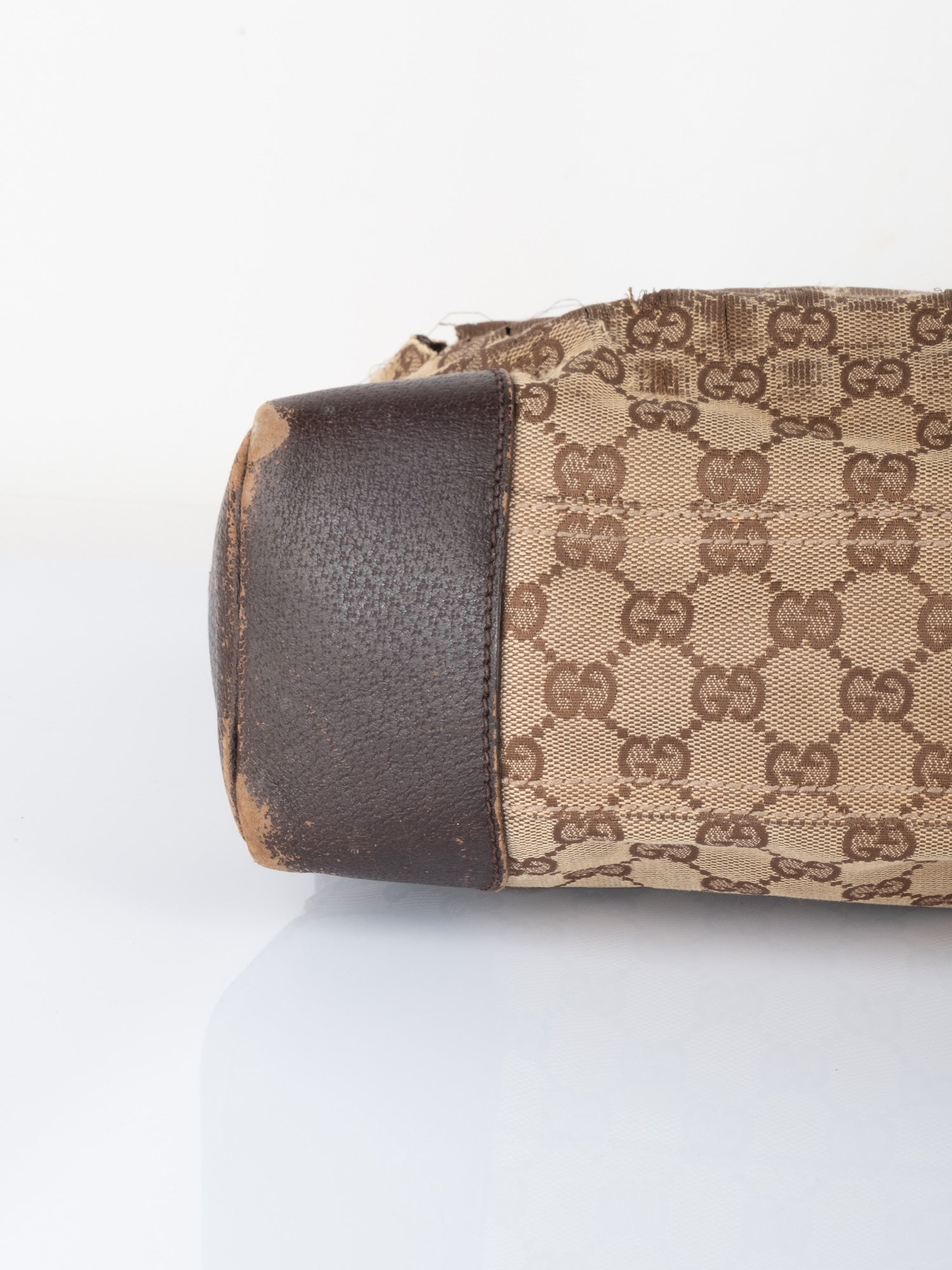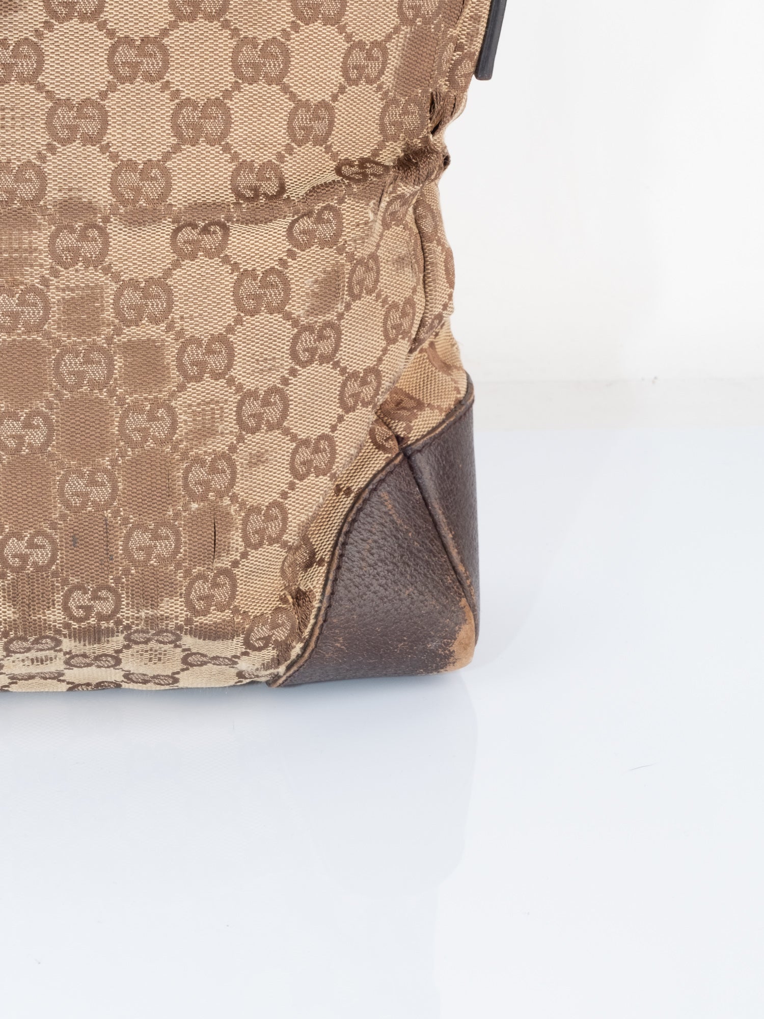 View Similar Productsתיק צד וינטג׳ יד שנייה של גוצ׳י (Gucci) בעיצוב קלאסי מהשנים האייקוניות של המותג. עשוי קנבס מונוגרם בגווני בז׳ וחום עם רצועת כתף מעור כהה. עיצוב פשוט ופרקטי שמשלב בין נוחות יומיומית לאסתטיקה איטלקית על־זמנית.