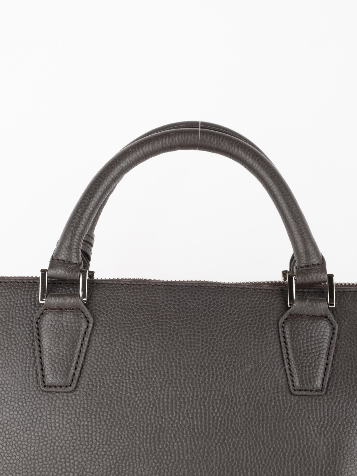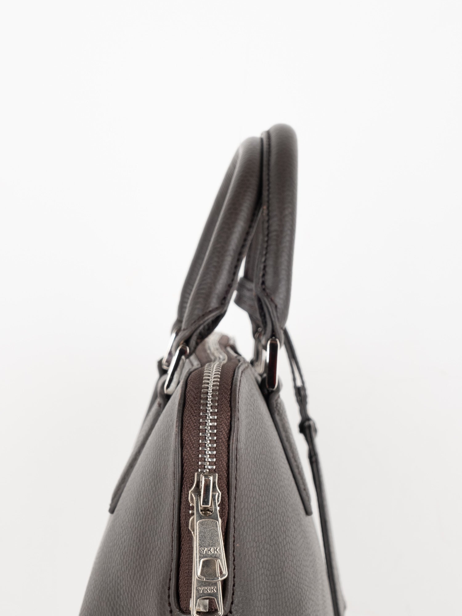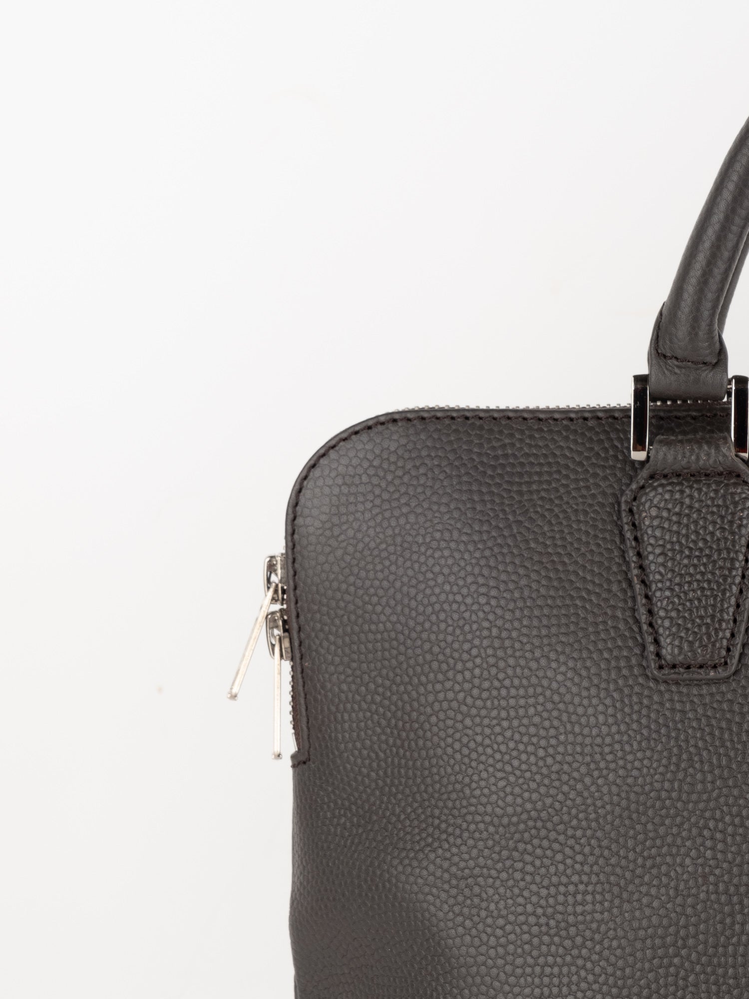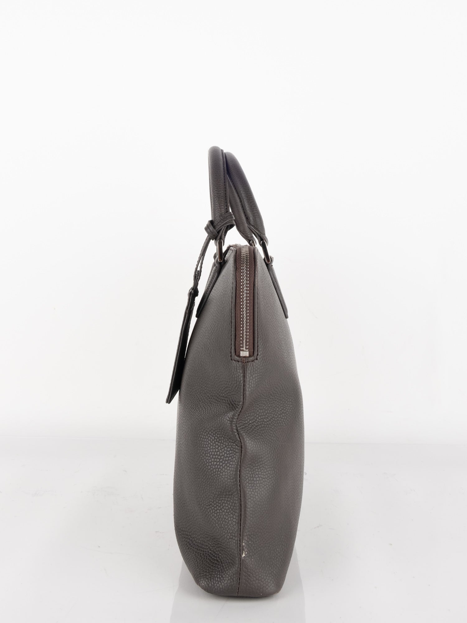 התיק עשוי עור טבעי בגוון אפור כהה עם טקסטורה עדינה. כולל ידיות כפולות לנשיאה נוחה, סגירת רוכסן עליונה ותא מרכזי מרופד עם כיסי אחסון פנימיים. העיצוב מדויק ופונקציונלי, עם תחושת איכות שמורגשת בכל פרט.