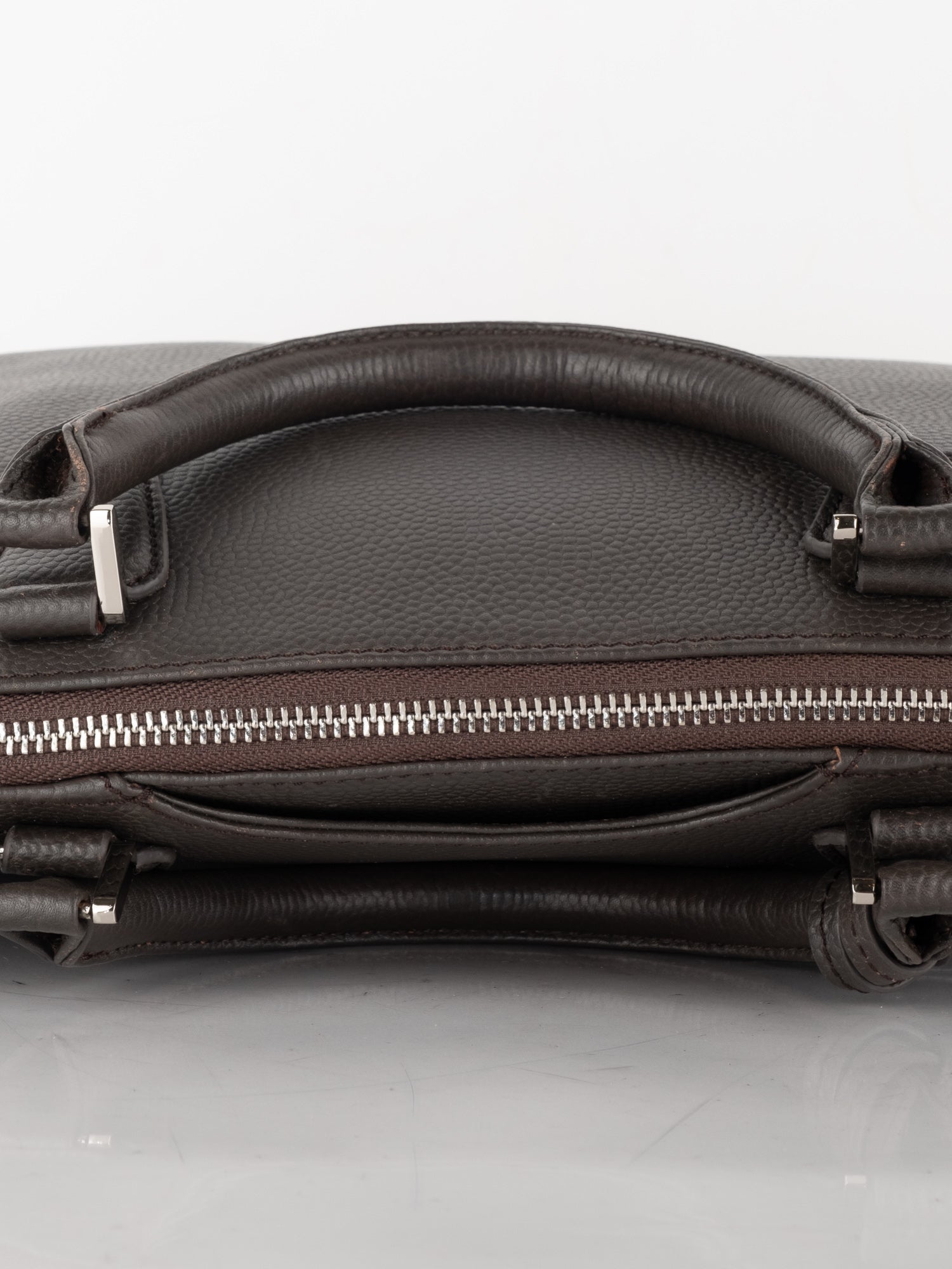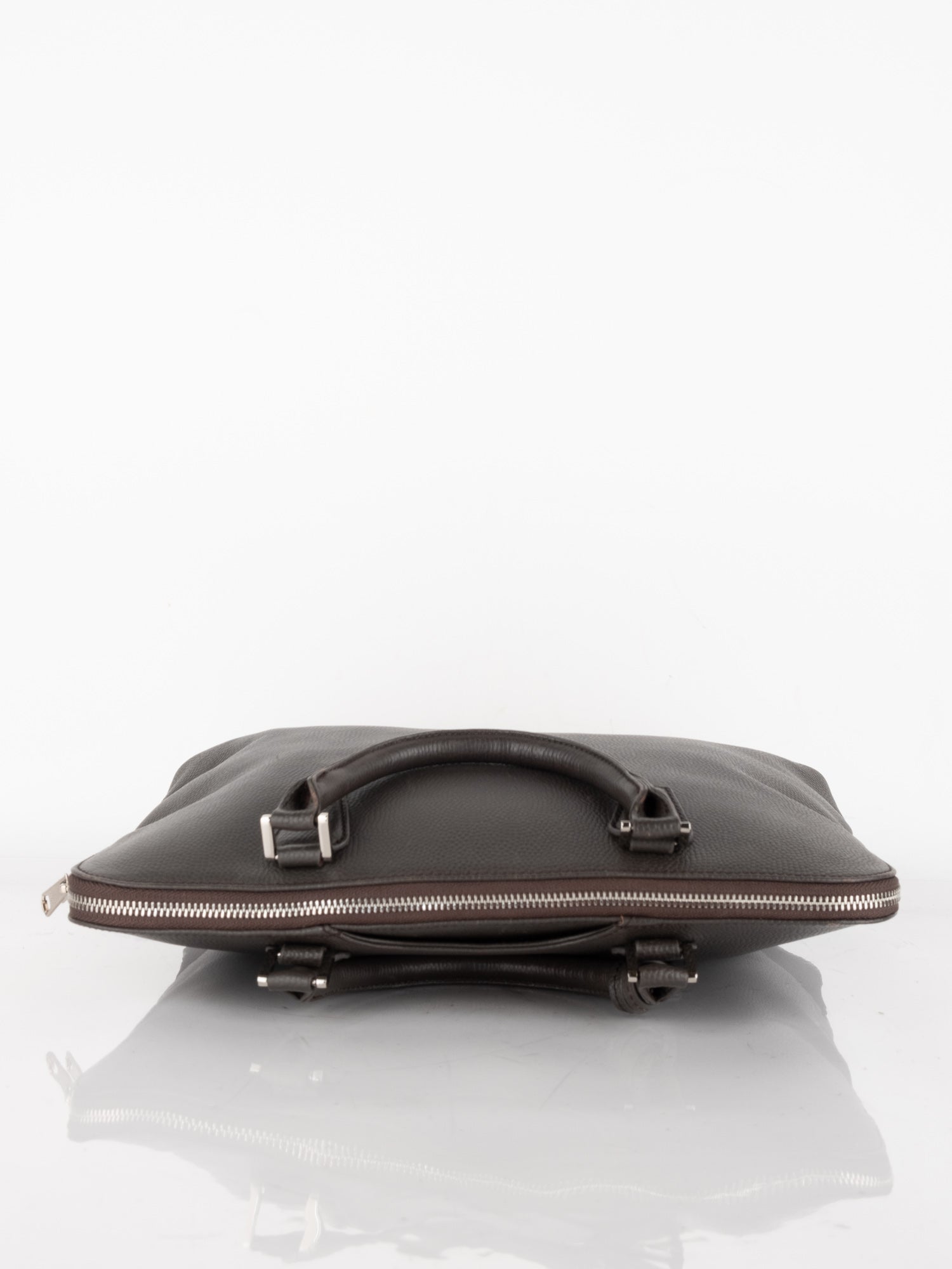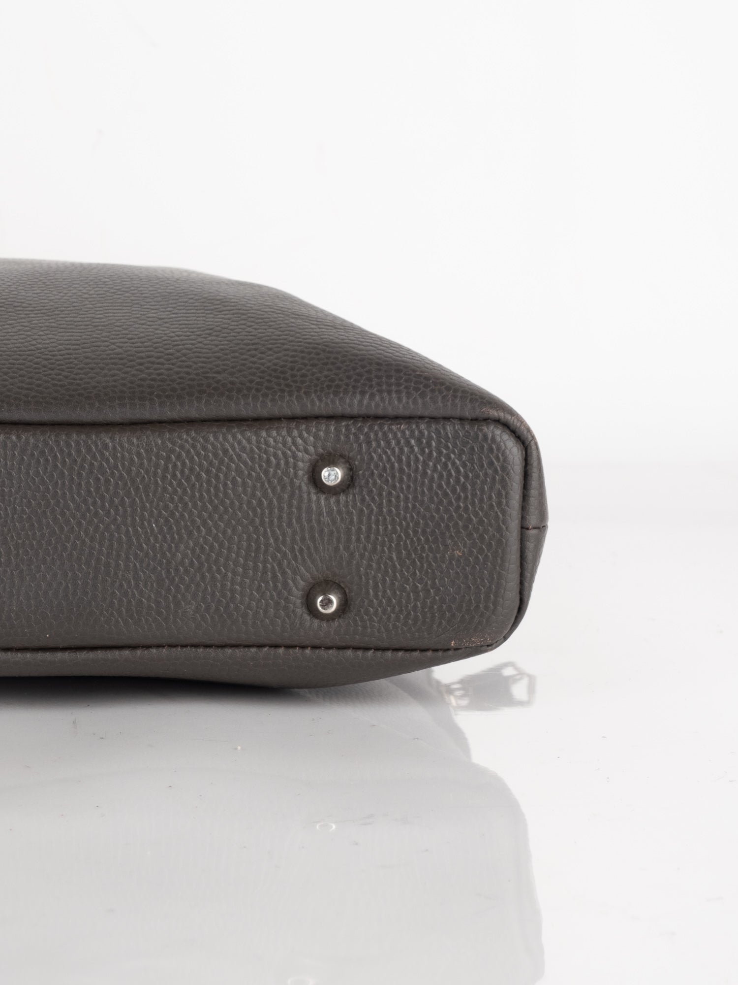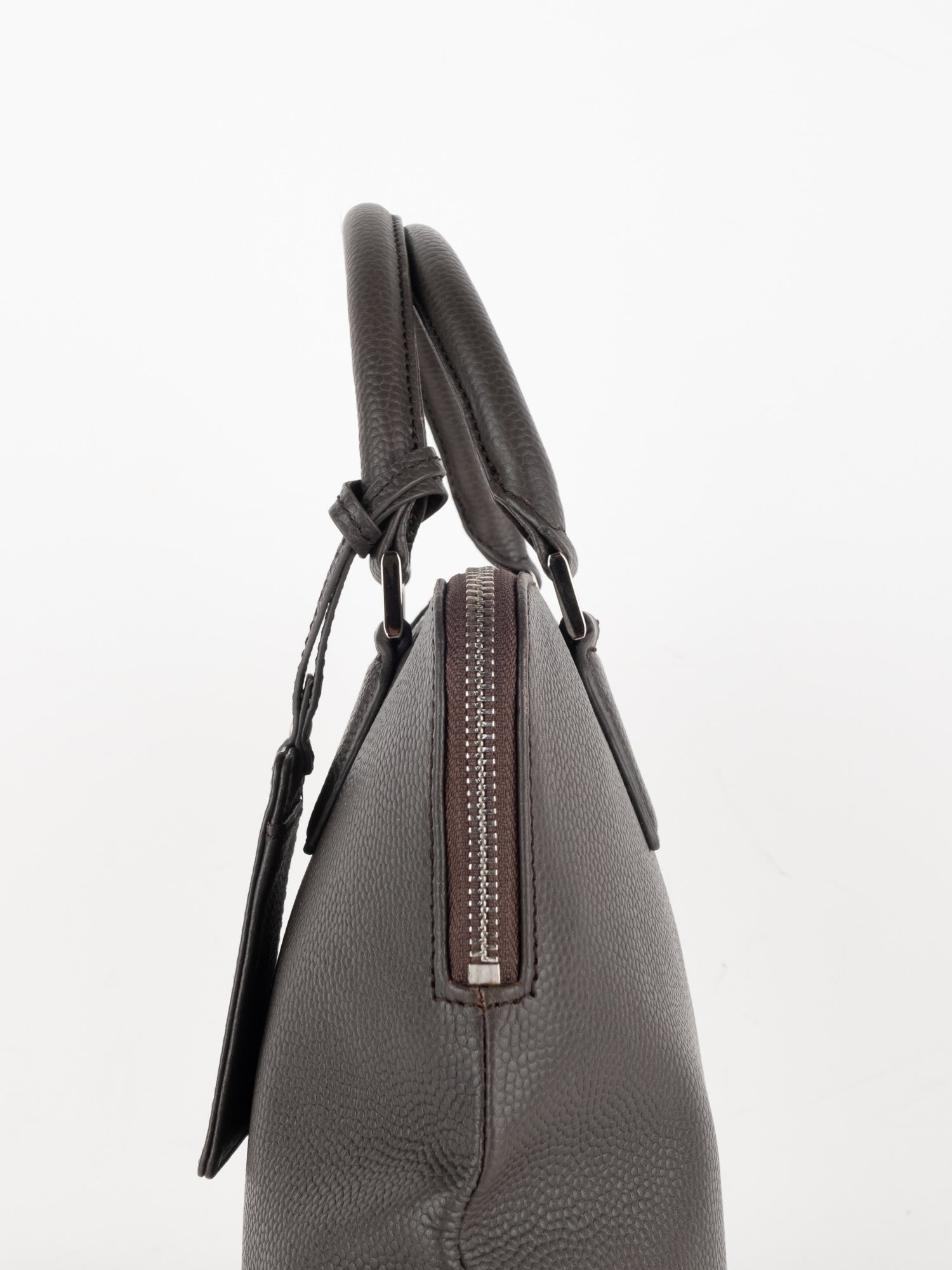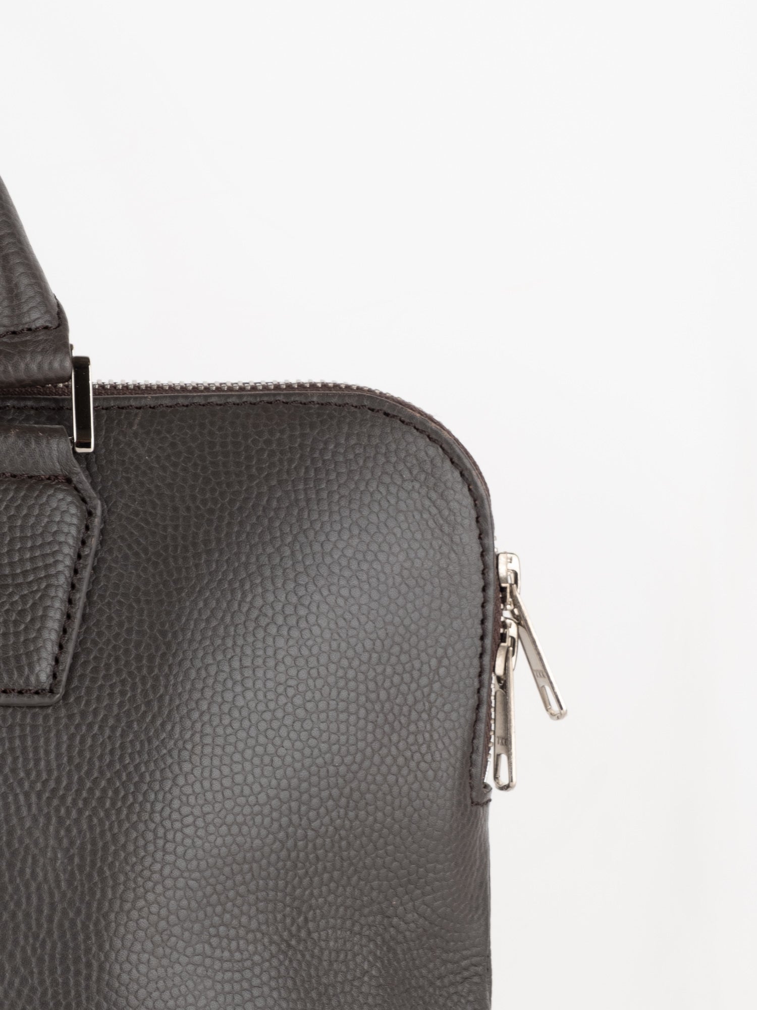 התיק עשוי עור טבעי בגוון אפור כהה עם טקסטורה עדינה. כולל ידיות כפולות לנשיאה נוחה, סגירת רוכסן עליונה ותא מרכזי מרופד עם כיסי אחסון פנימיים. העיצוב מדויק ופונקציונלי, עם תחושת איכות שמורגשת בכל פרט.