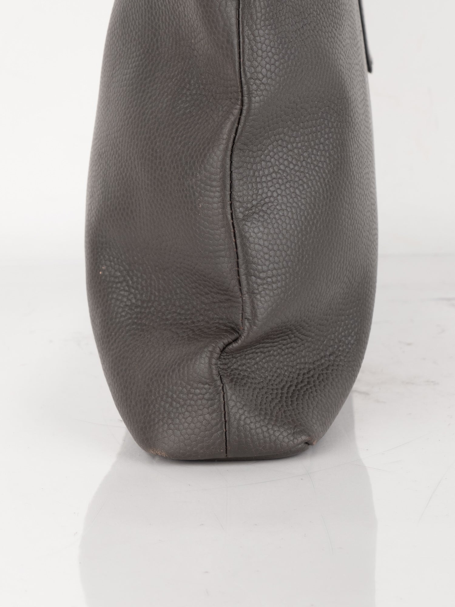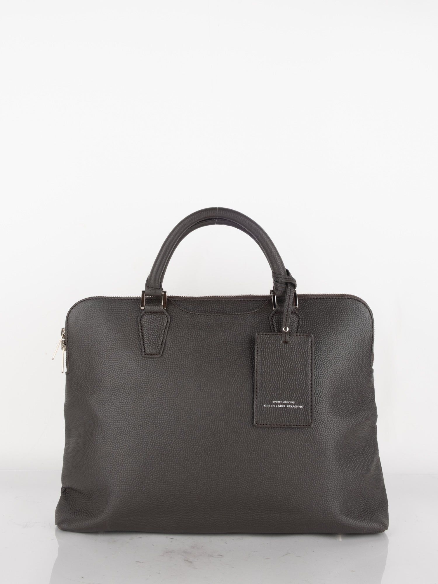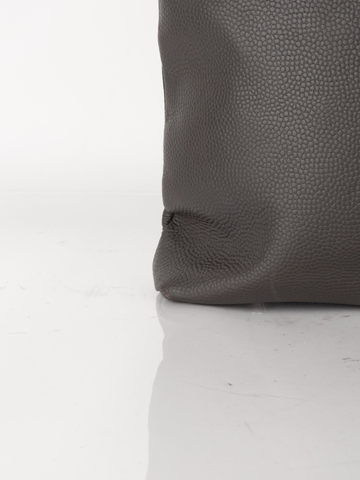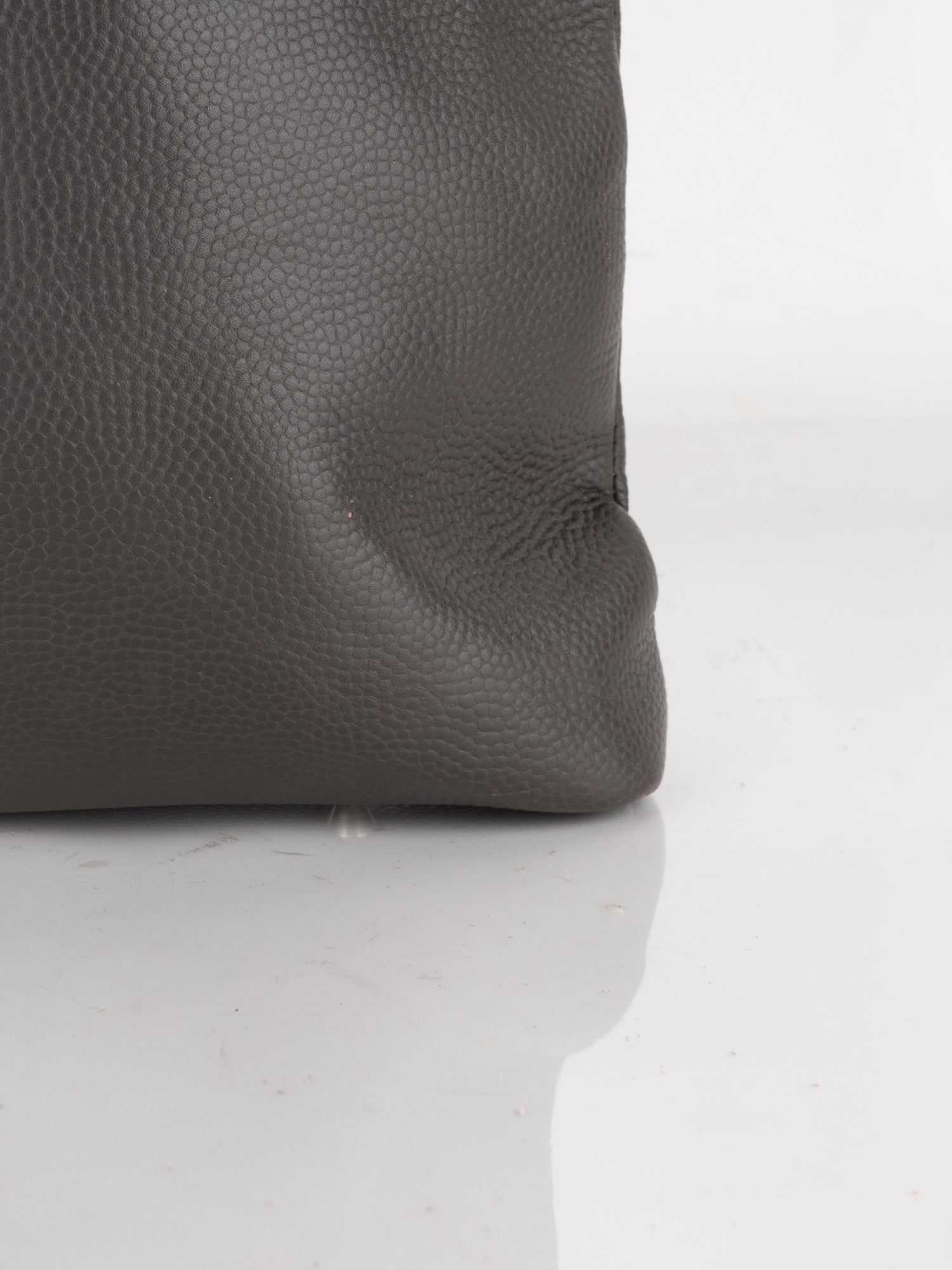 התיק עשוי עור טבעי בגוון אפור כהה עם טקסטורה עדינה. כולל ידיות כפולות לנשיאה נוחה, סגירת רוכסן עליונה ותא מרכזי מרופד עם כיסי אחסון פנימיים. העיצוב מדויק ופונקציונלי, עם תחושת איכות שמורגשת בכל פרט.