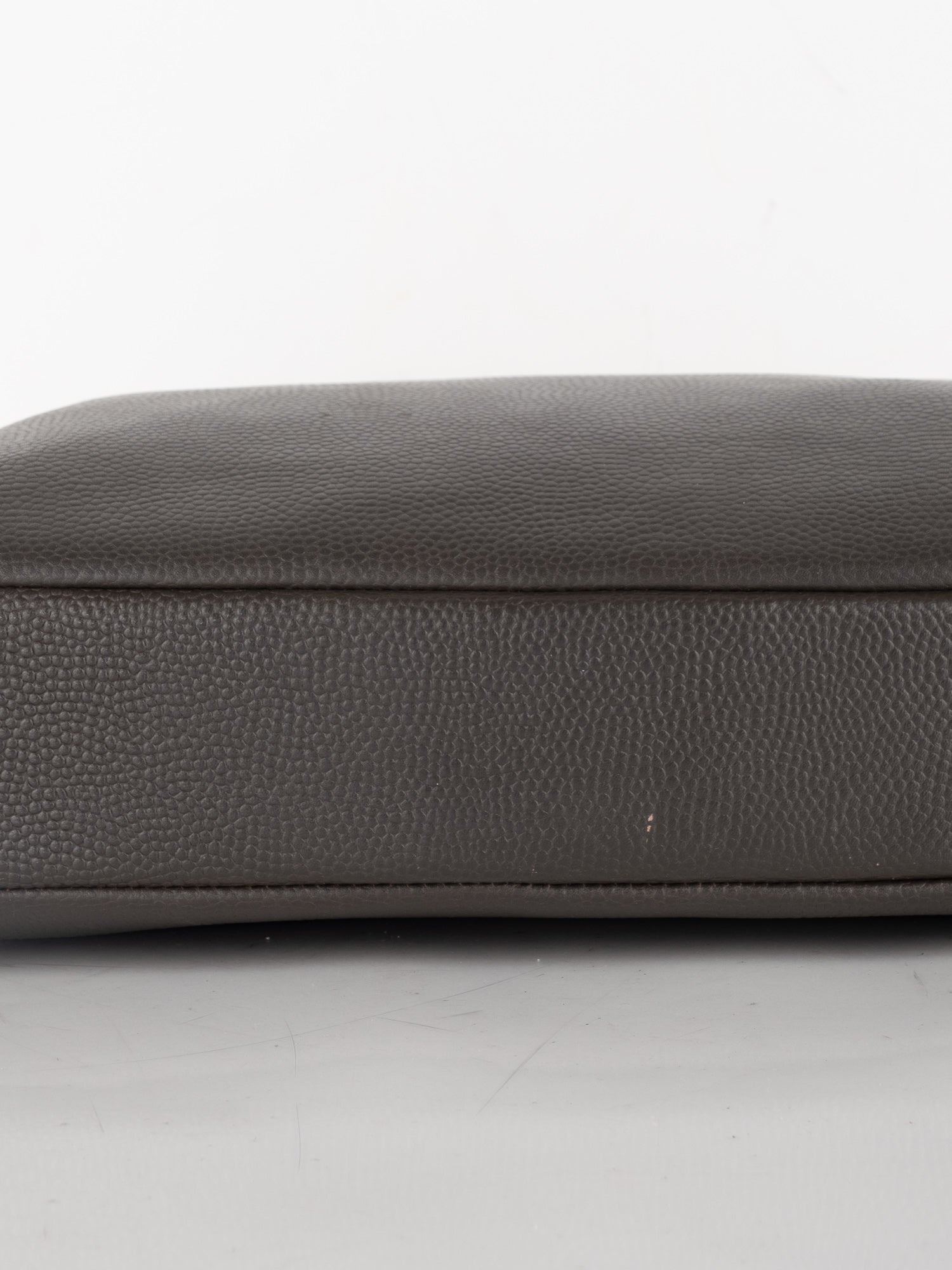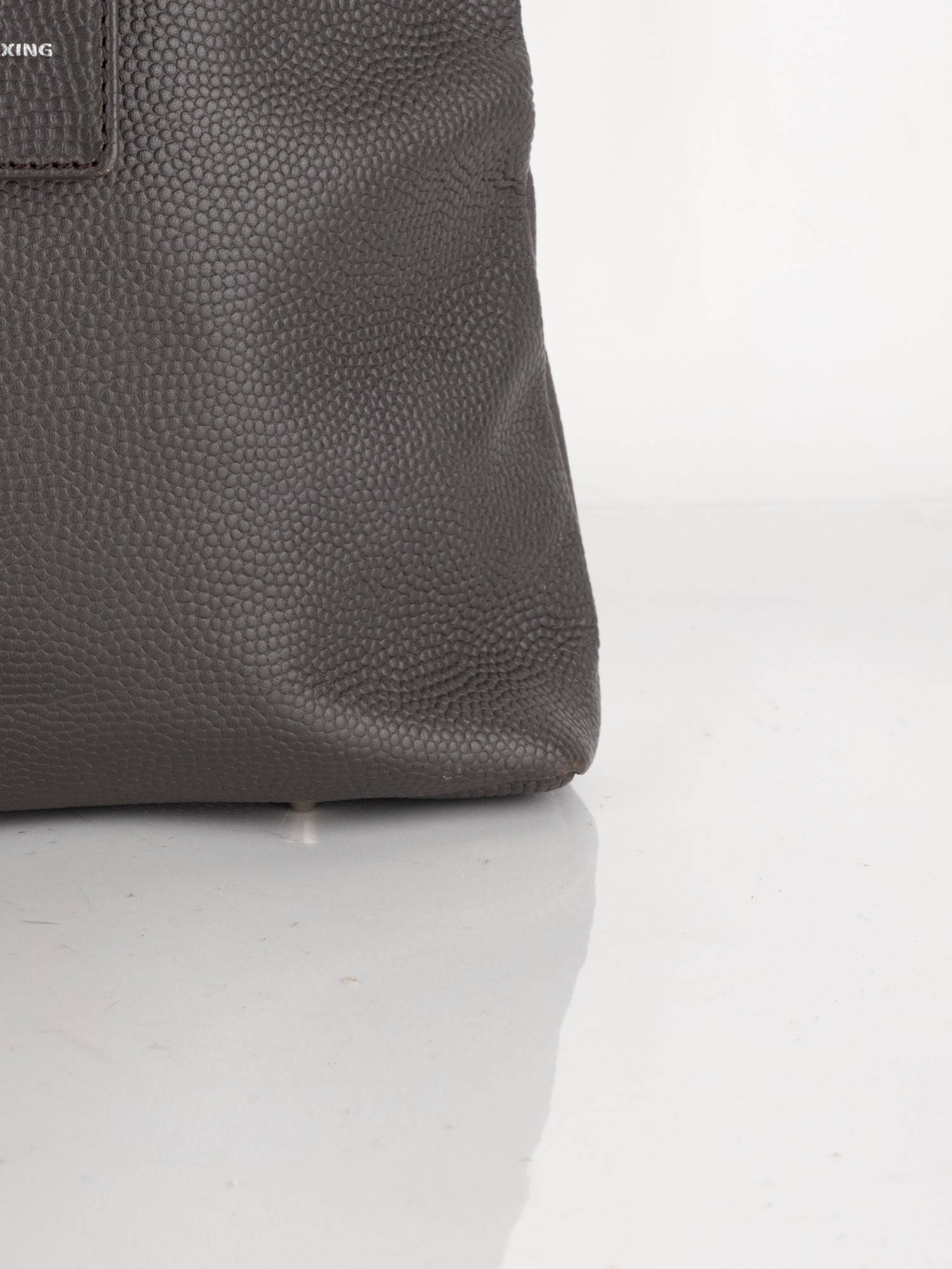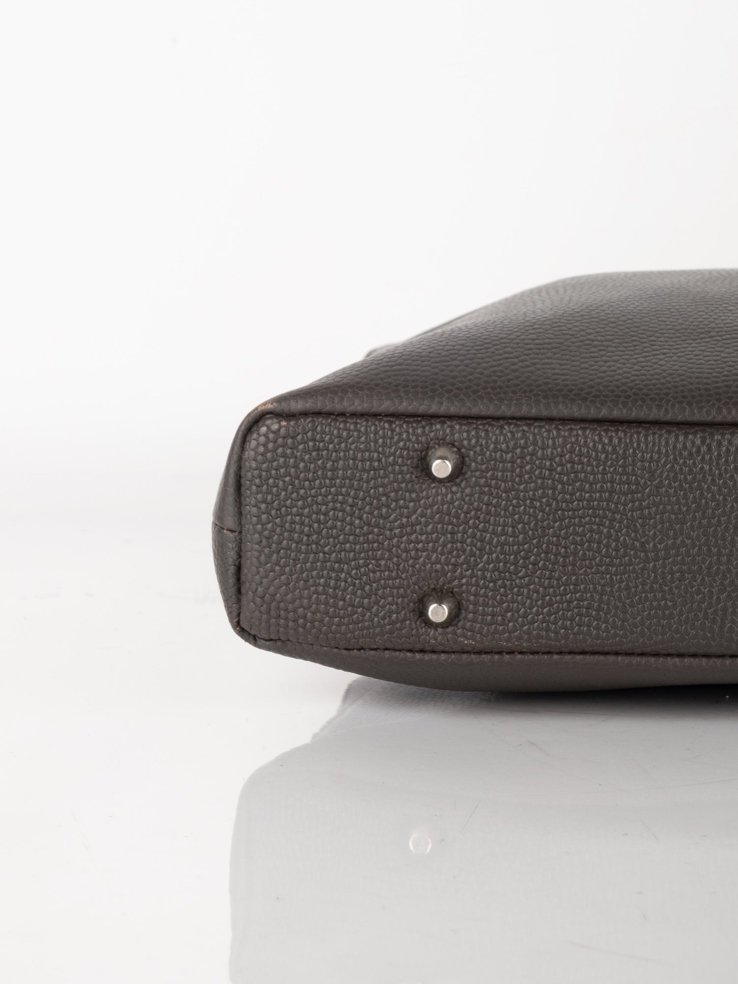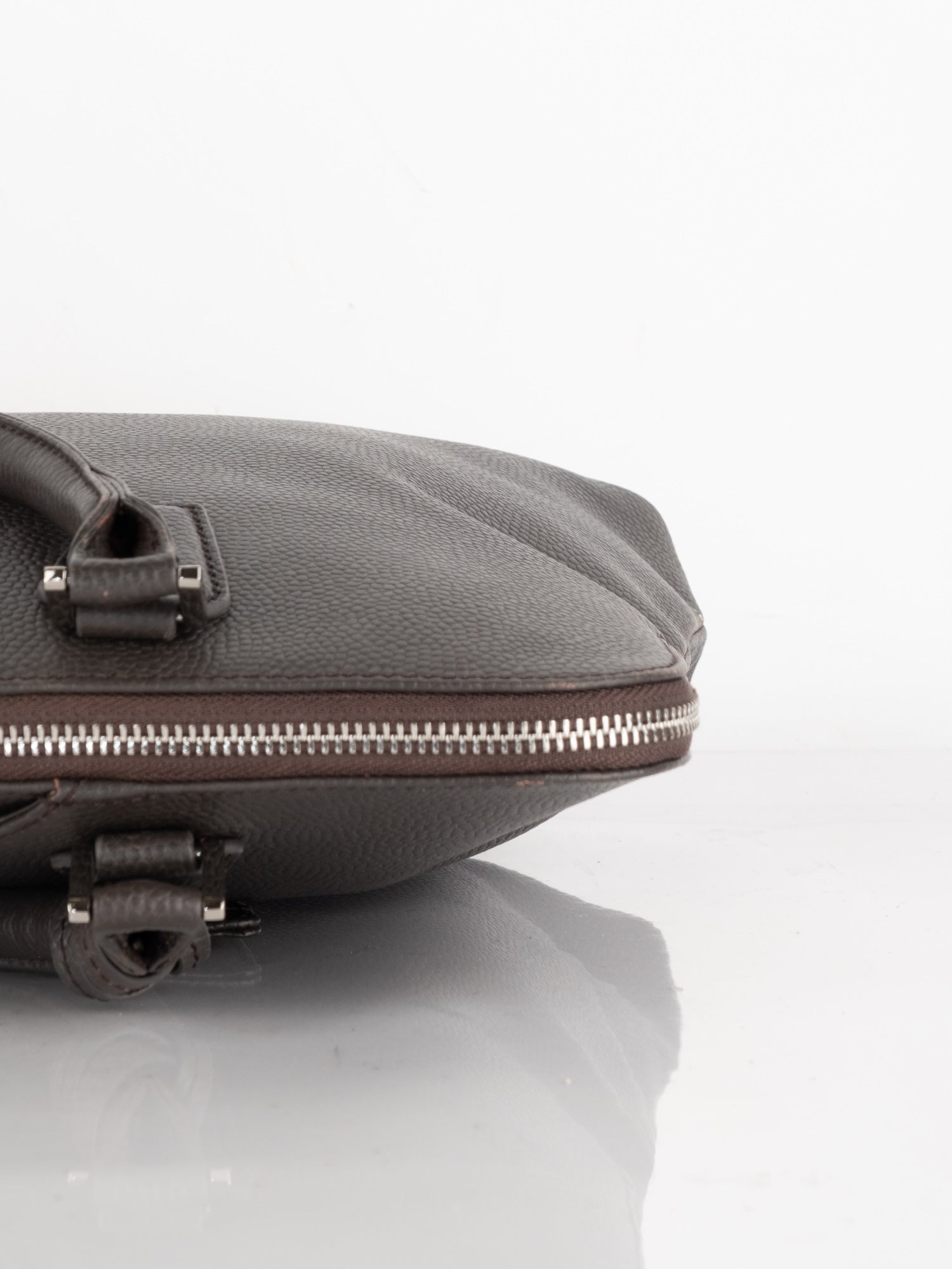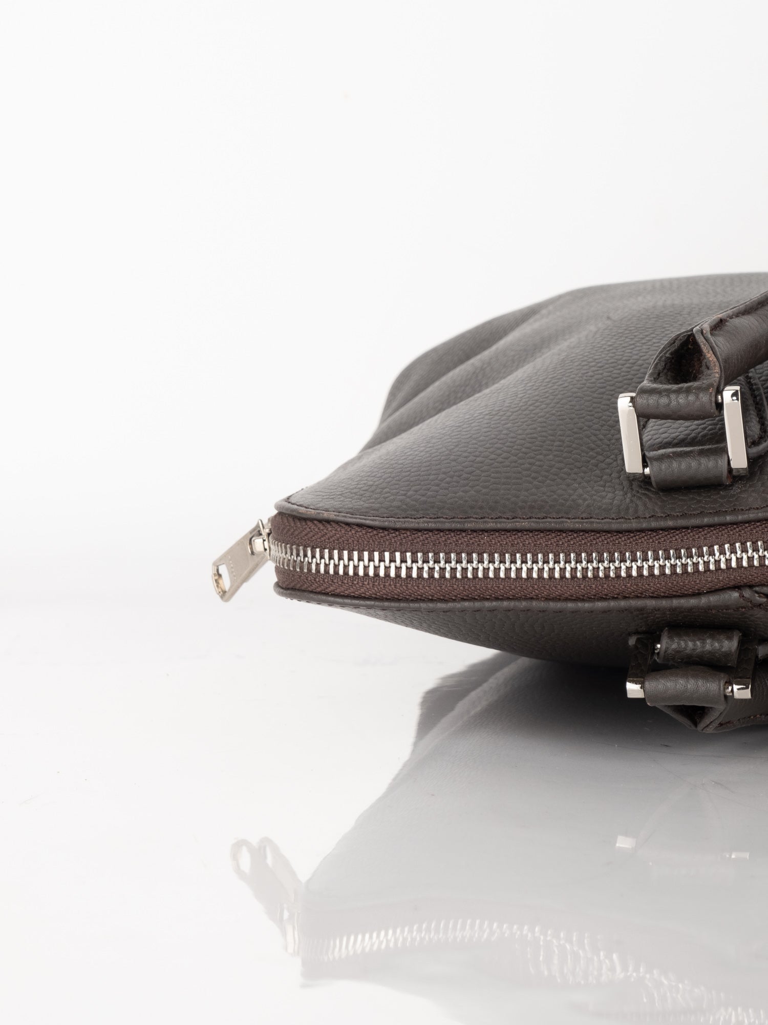 התיק עשוי עור טבעי בגוון אפור כהה עם טקסטורה עדינה. כולל ידיות כפולות לנשיאה נוחה, סגירת רוכסן עליונה ותא מרכזי מרופד עם כיסי אחסון פנימיים. העיצוב מדויק ופונקציונלי, עם תחושת איכות שמורגשת בכל פרט.