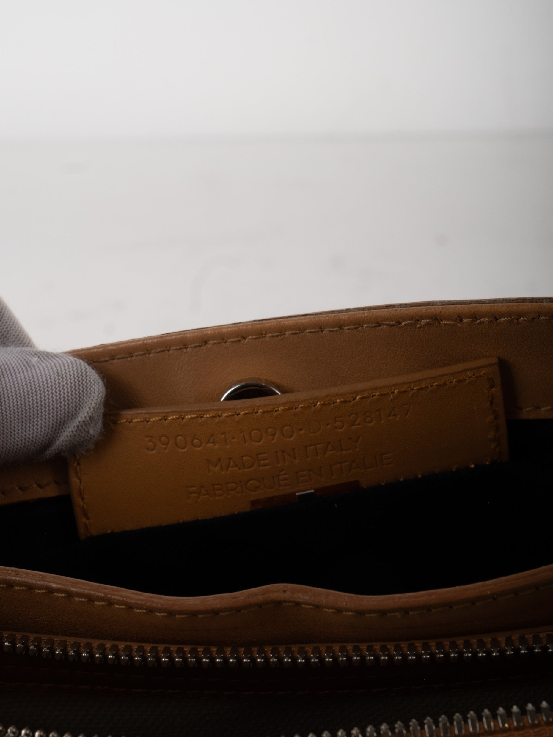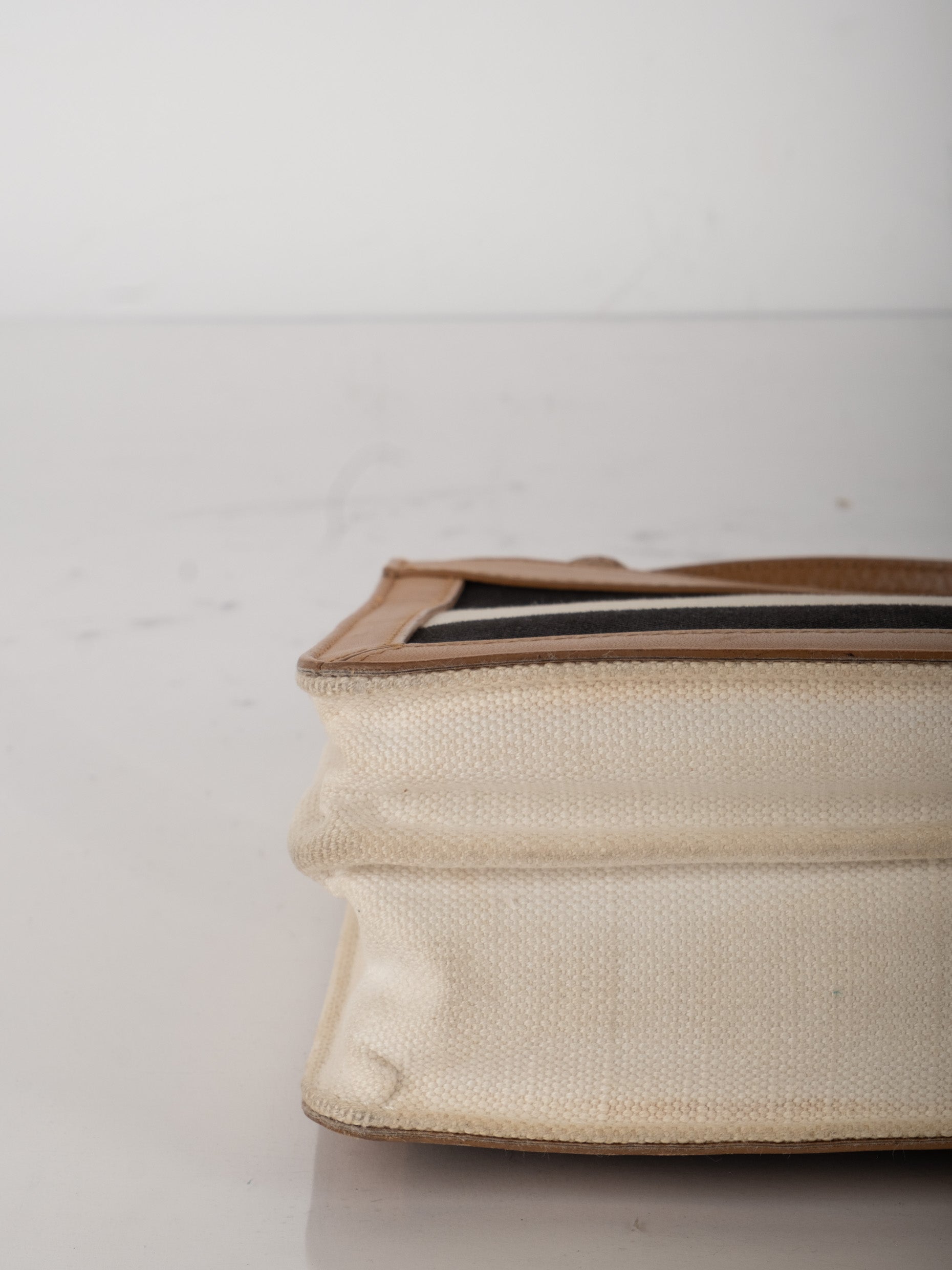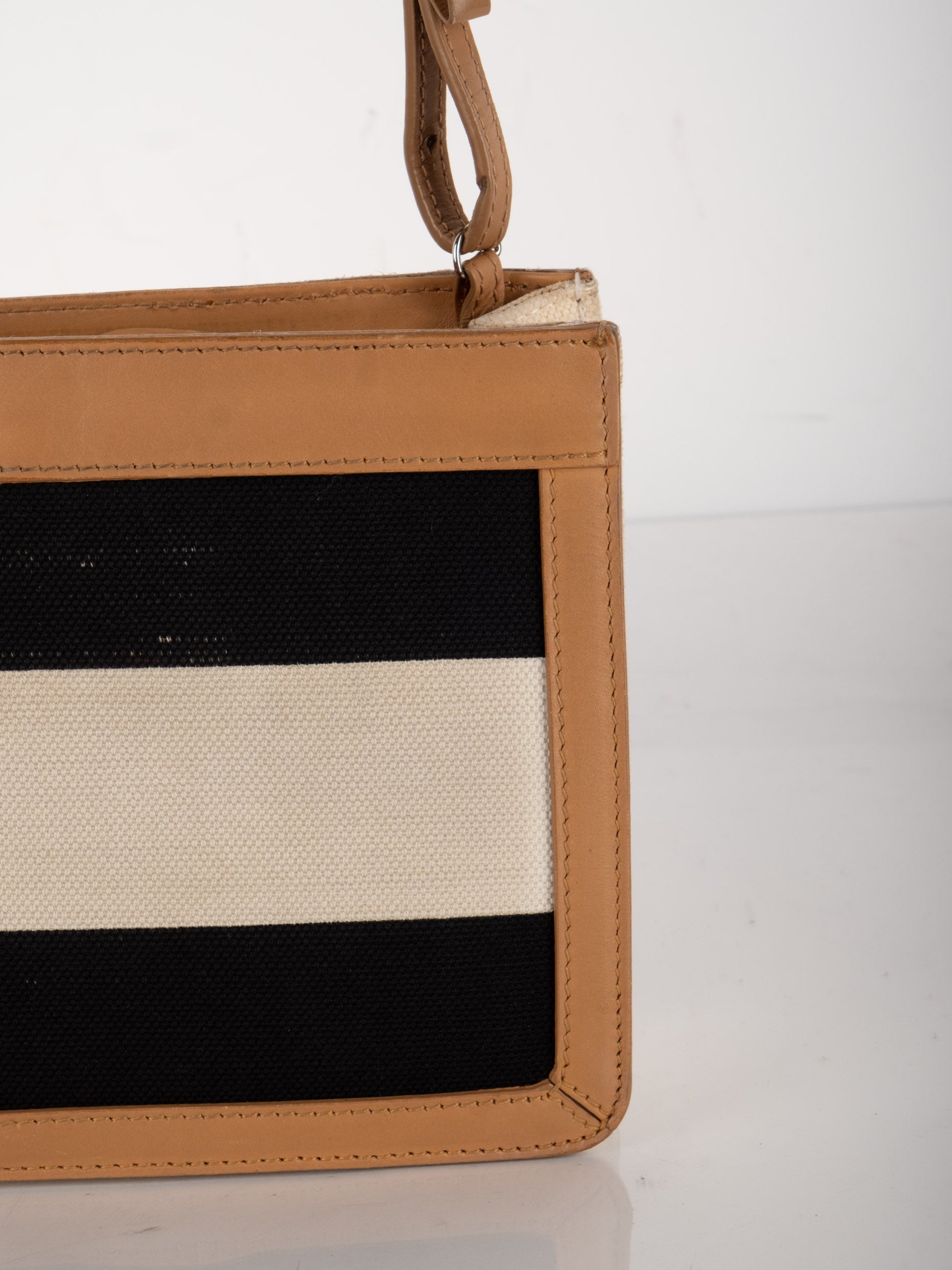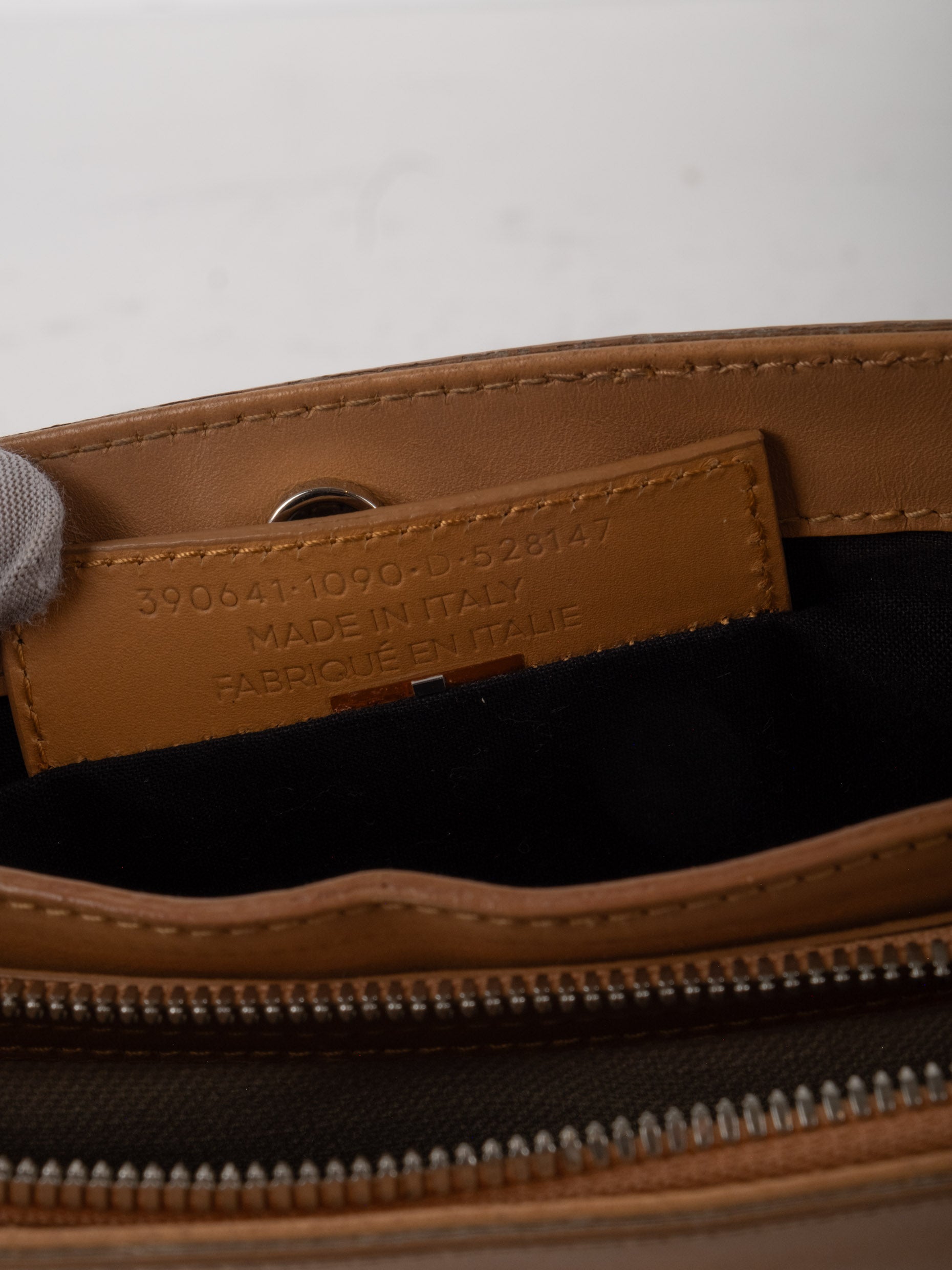 תיק כתף (מתאים לקרוסבודי) העשוי מקנבס בצבע בז׳ בשילוב של עור בצבע קאמל, בעל רצועה ארוכה דקה שניתן לכוון או להוציא באמצעות דיטיילים כסופים במידת הצורך. תיק זה בעל שני תאים מרכזיים כאשר הראשון נסגר באמצעות רוכסן ועוד תא פנימי ללא סגירה בתוכו ותא נוסף נסגר באמצעות כפתור תיק-תק כסוף.