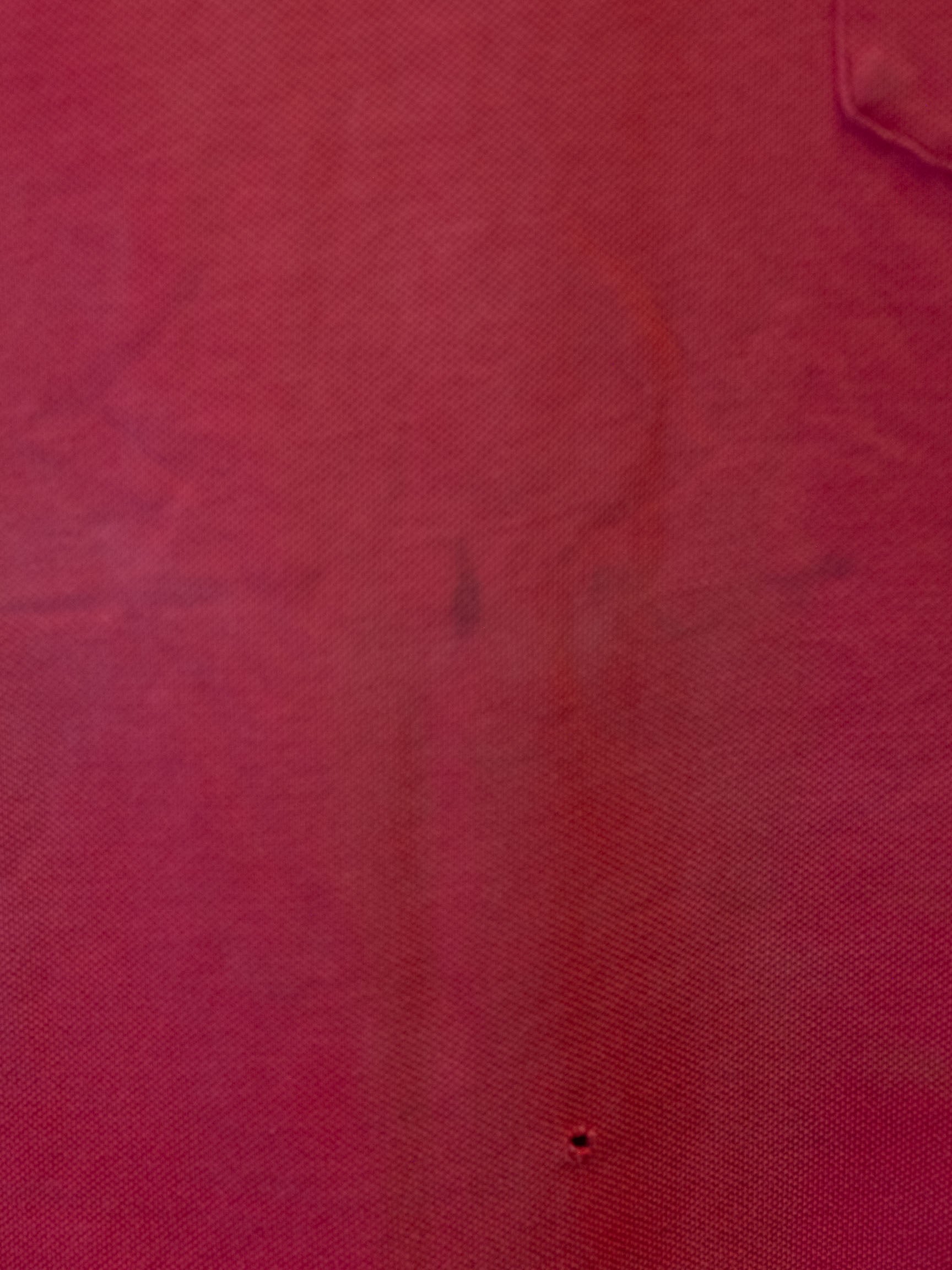 סימני שימוש: החולצה דהויה ומוכתמת.