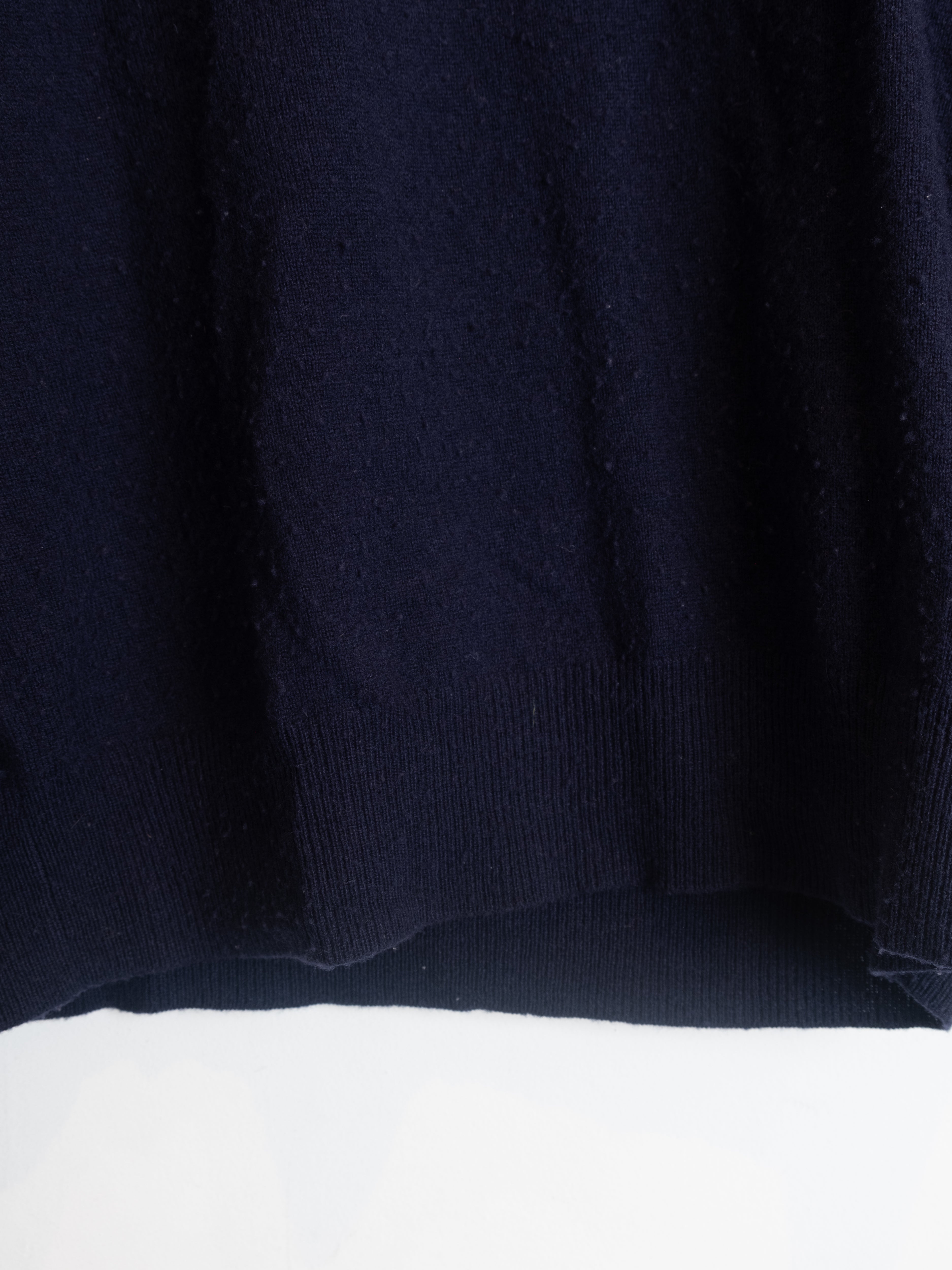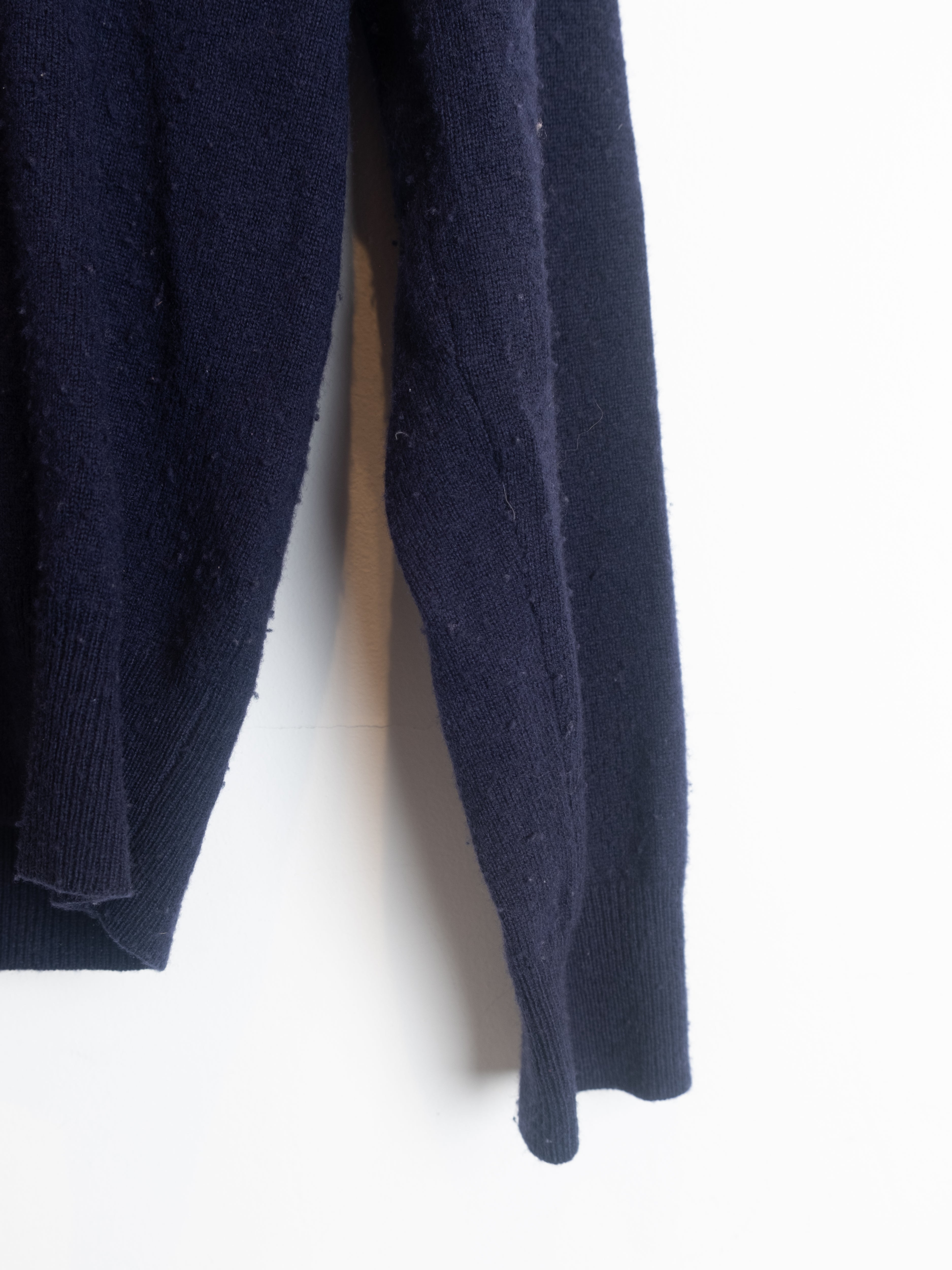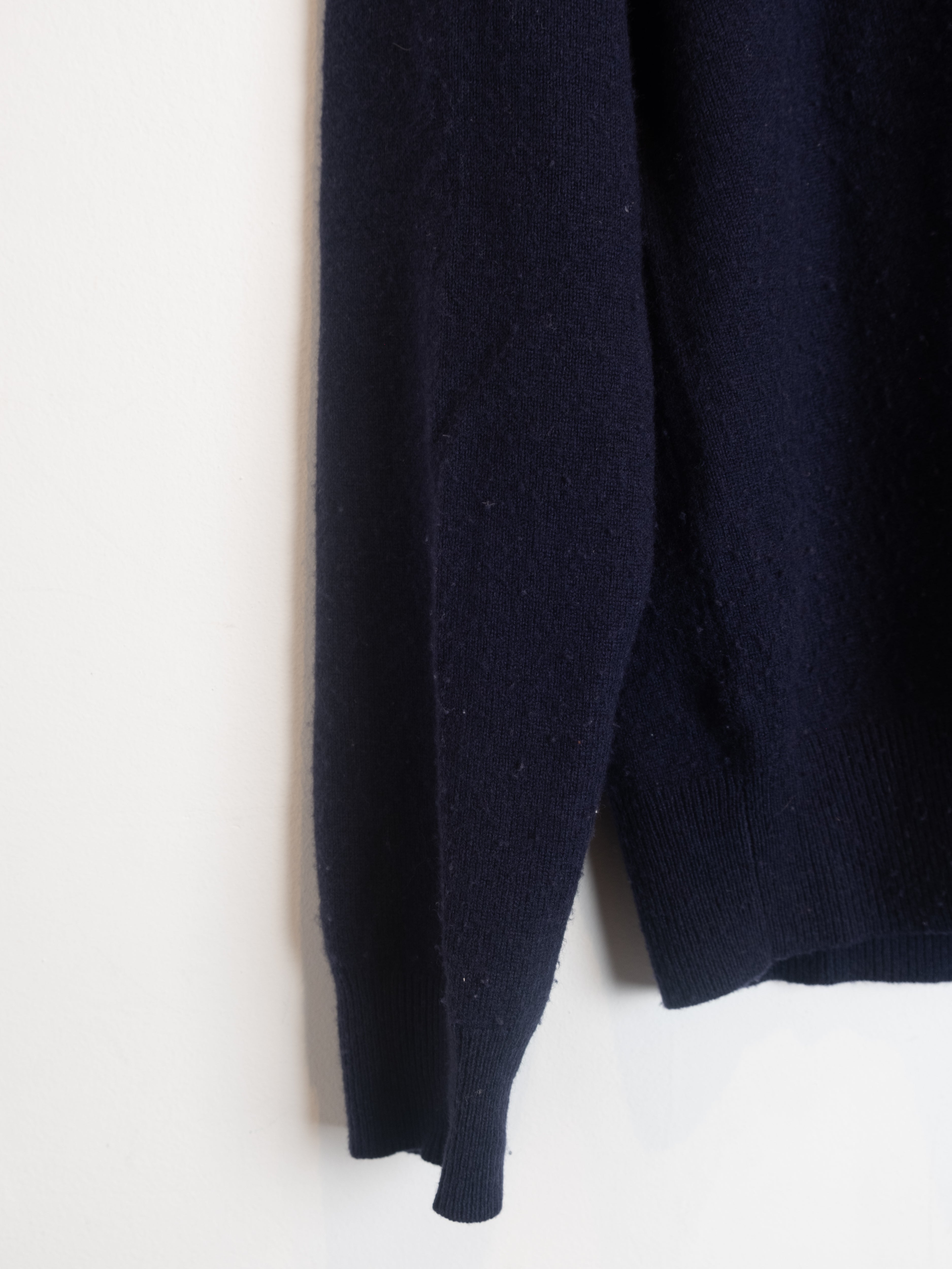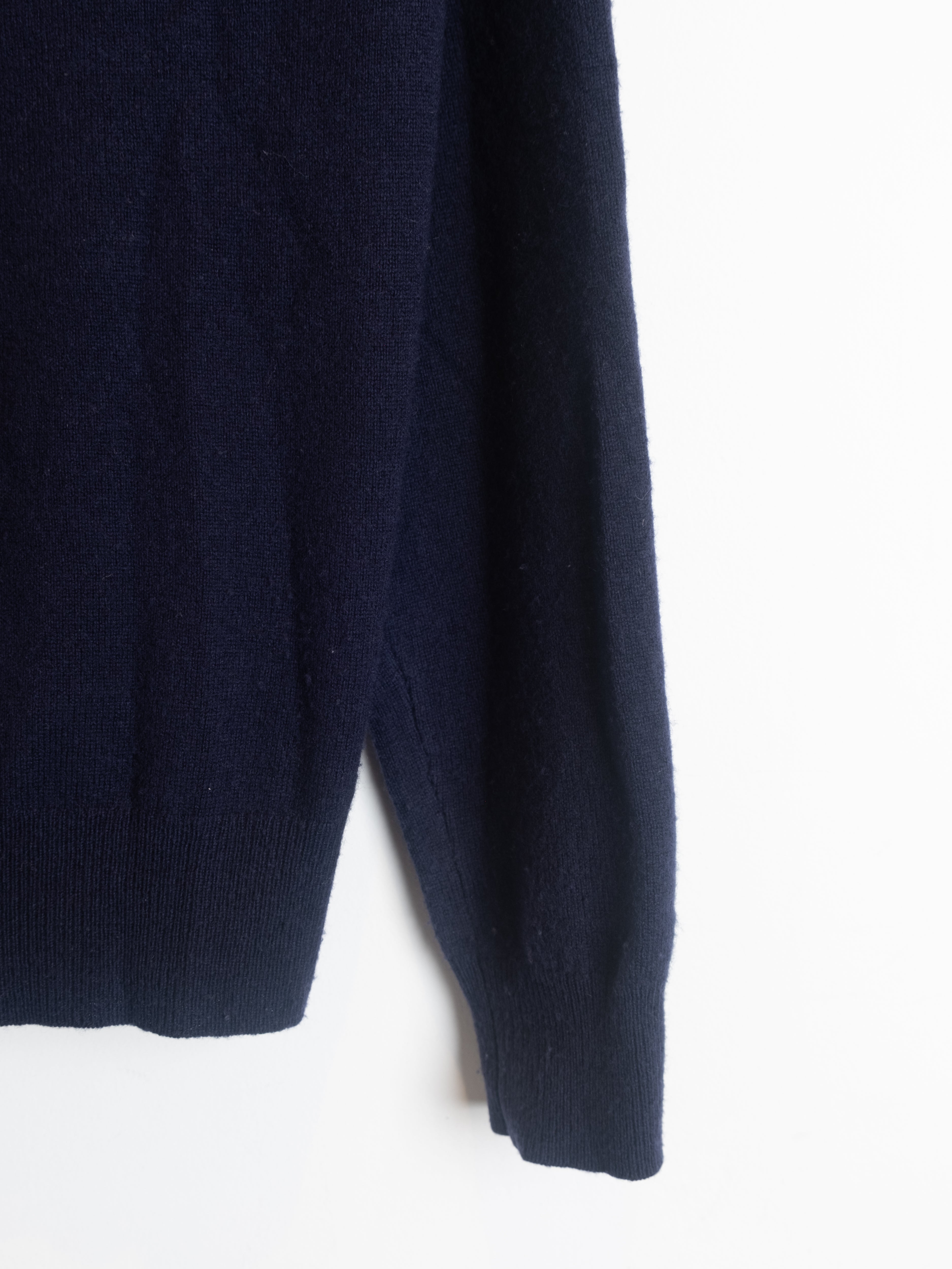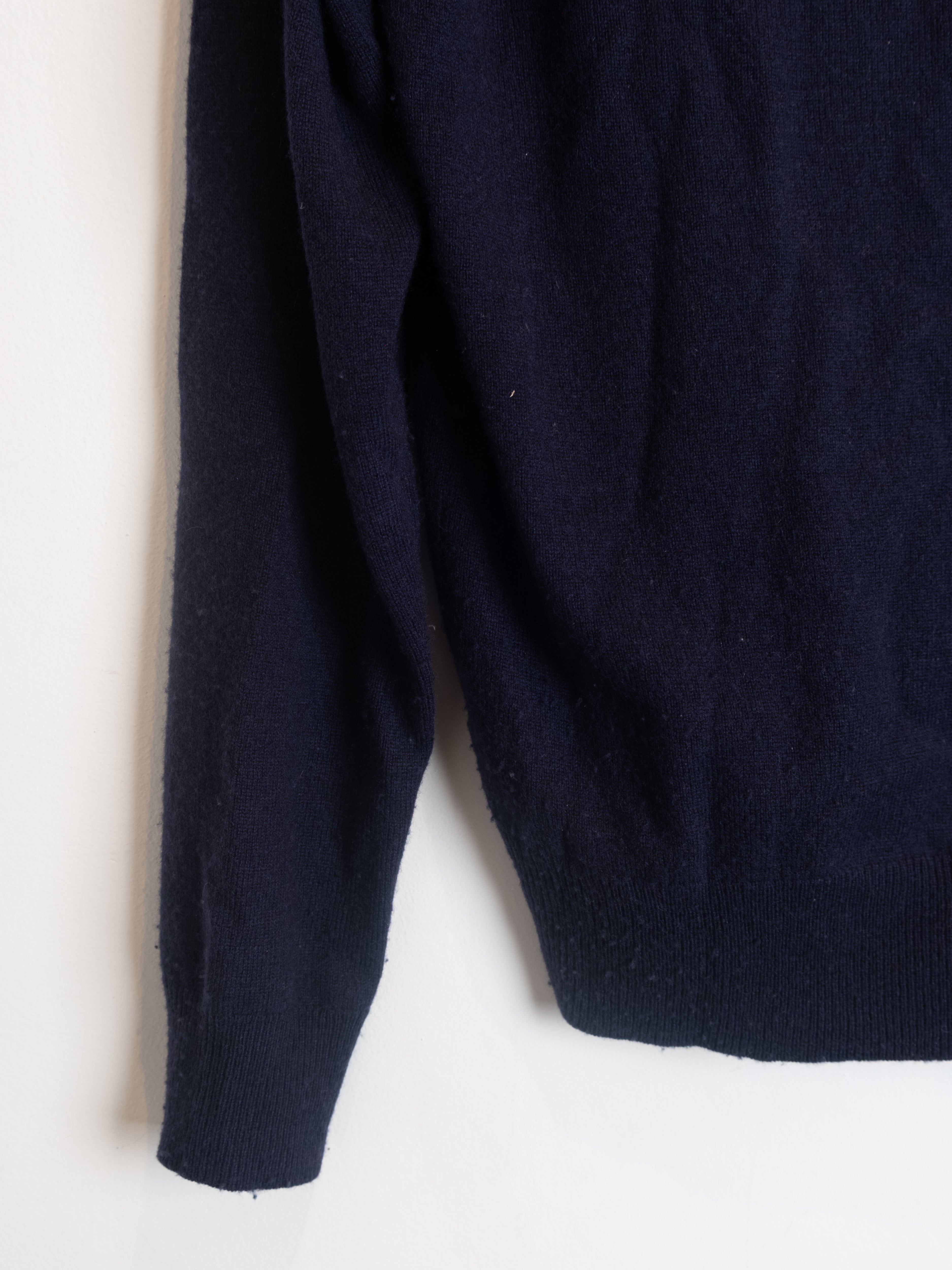 הסוודר עשוי צמר רך בצבע נייבי. גזרת V נקייה, שרוולים ארוכים, סיומי ריב עדינים ולוגו רקום בצד שמאל. בד נעים ומלטף המתאים ליום־יום וללבוש אלגנטי יותר.