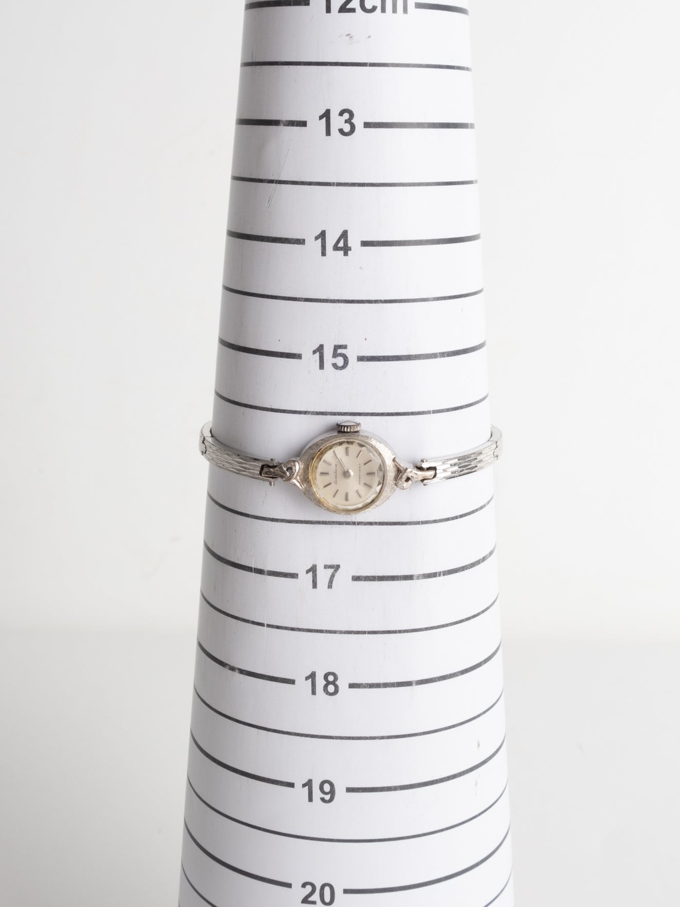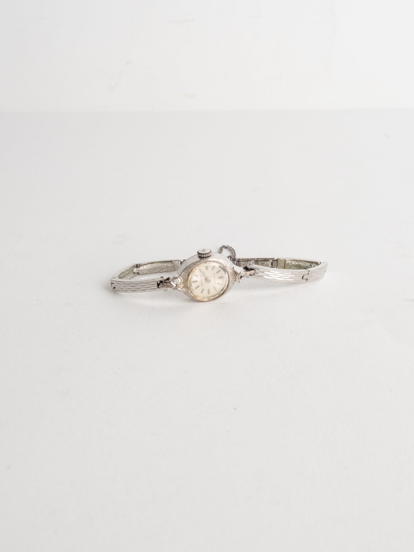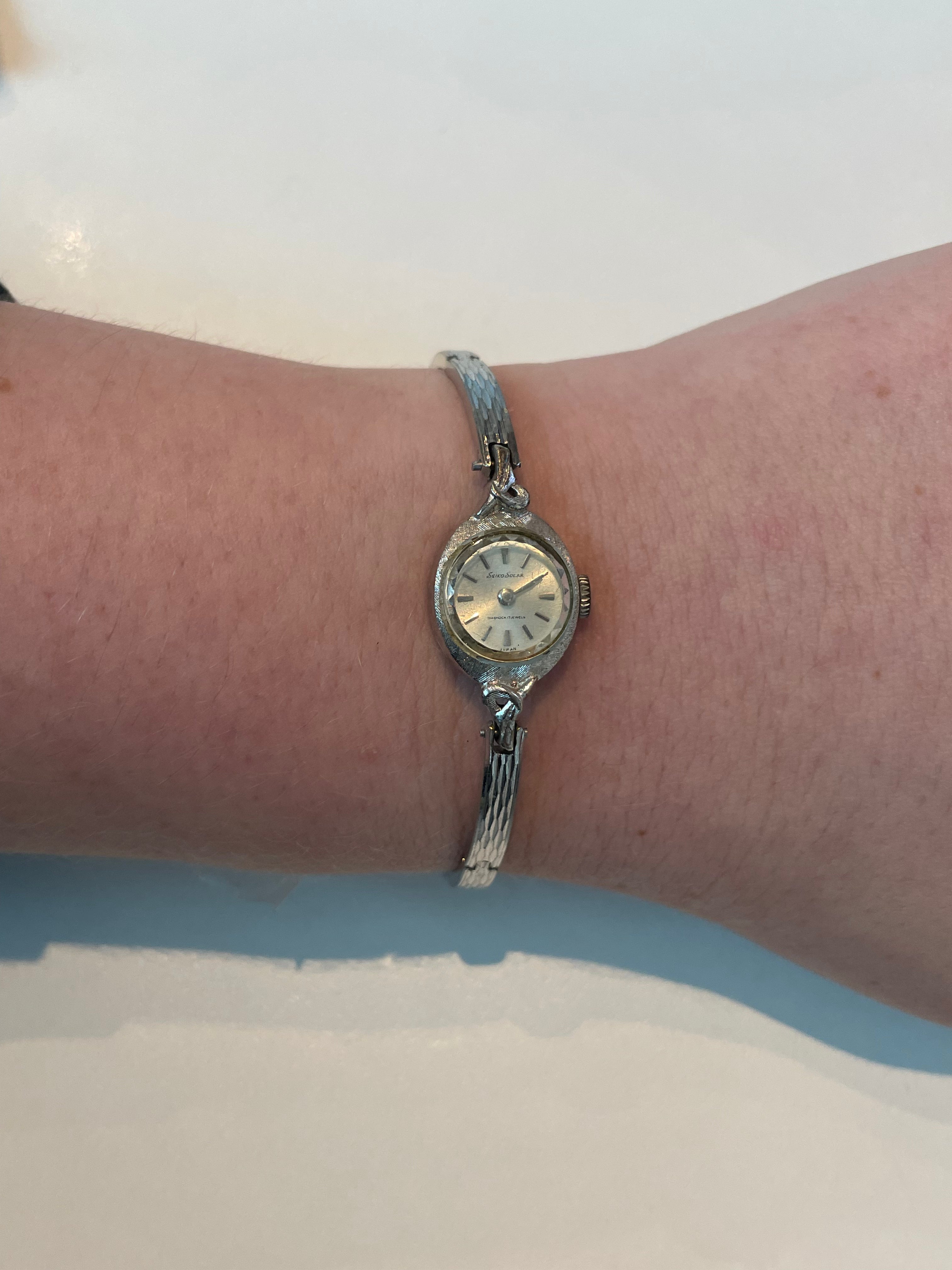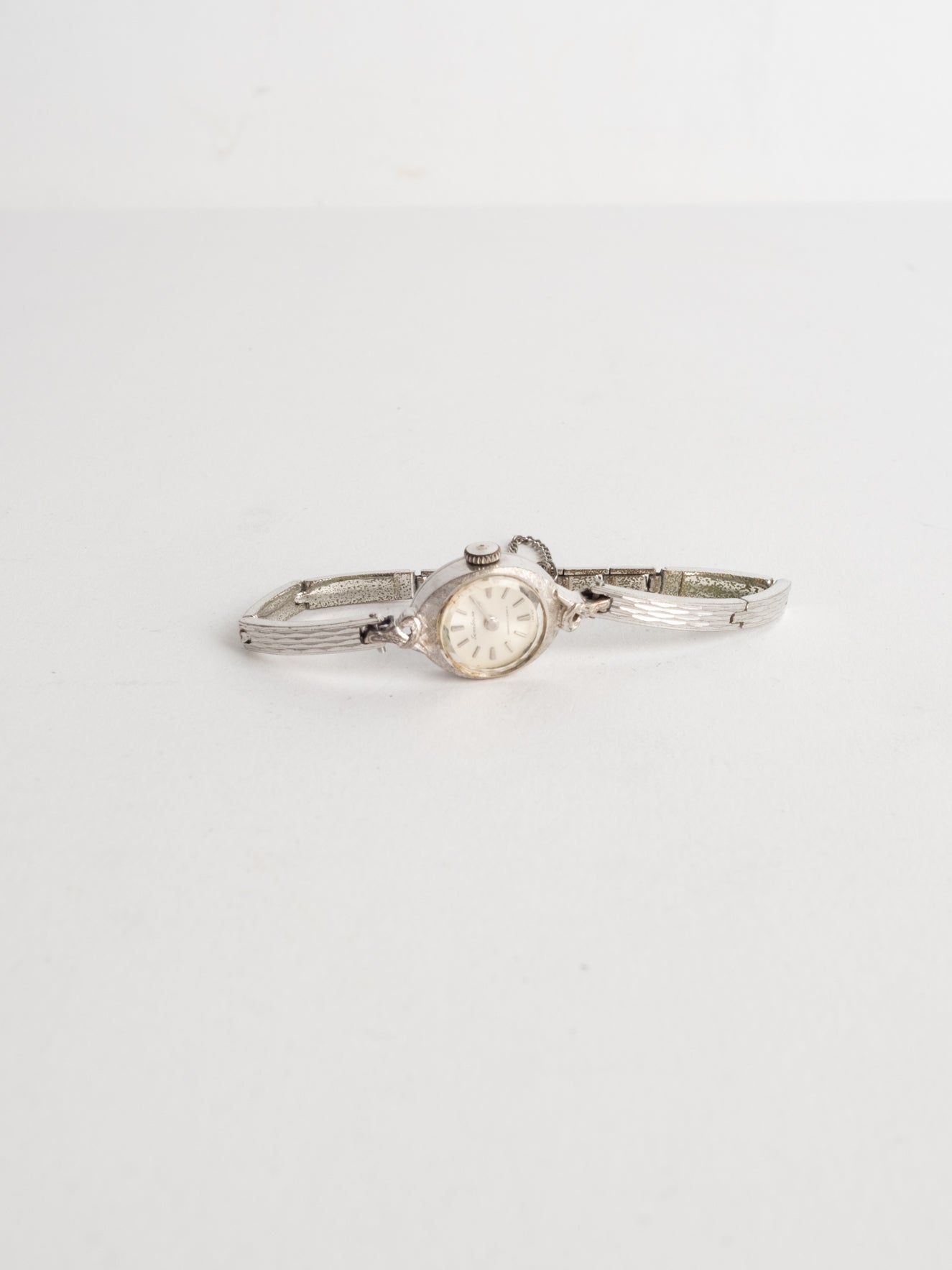 שעון עדין וקטן בצבע כסוף בעל פני שעון בצורה עגולה עם רקע לבן ומחוגים. שעון זה נסגר באמצעות סוגר ממותג. ישנה שרשרת בטיחות השומרת על השעון מנפילה מהיד.
