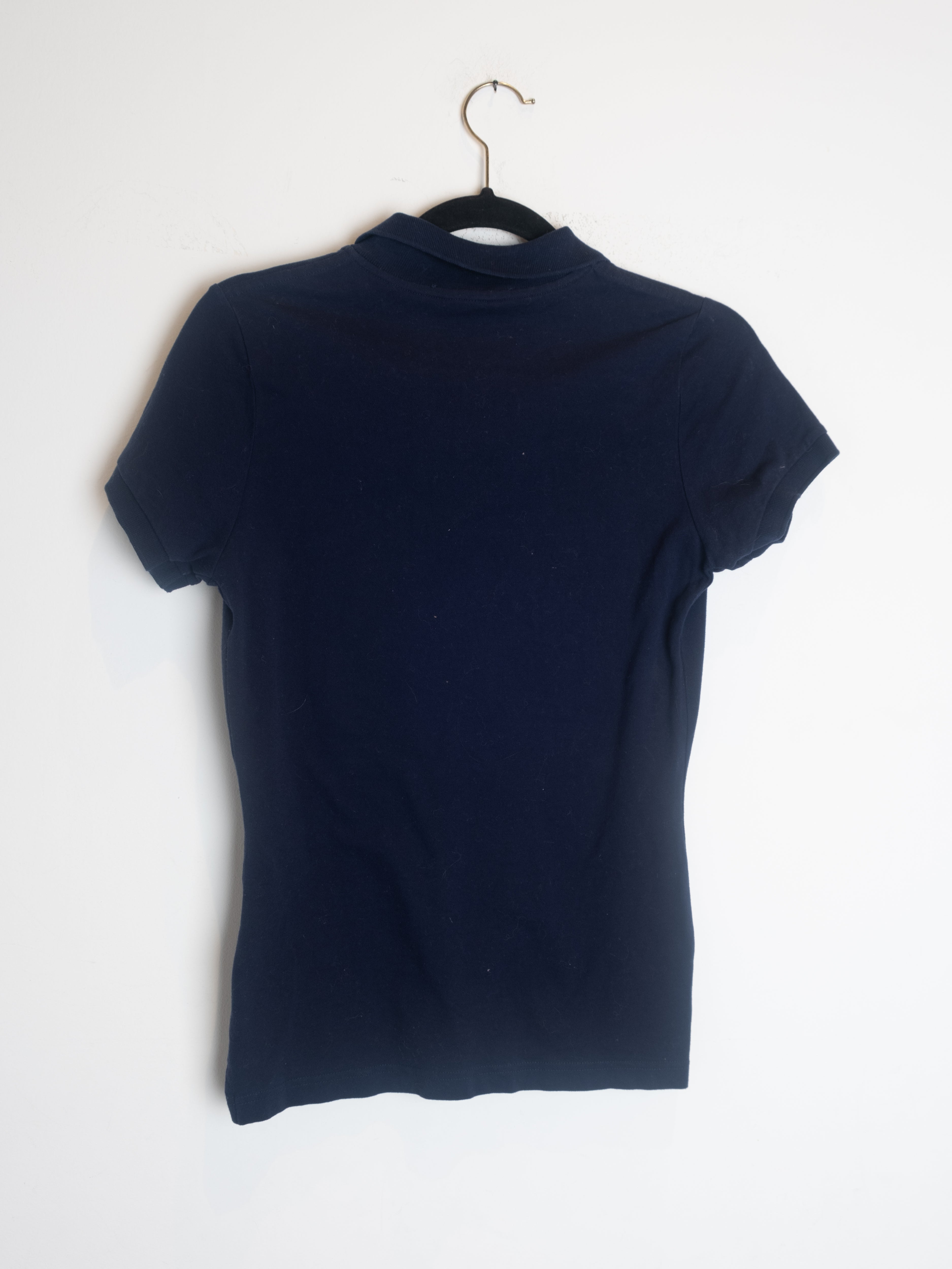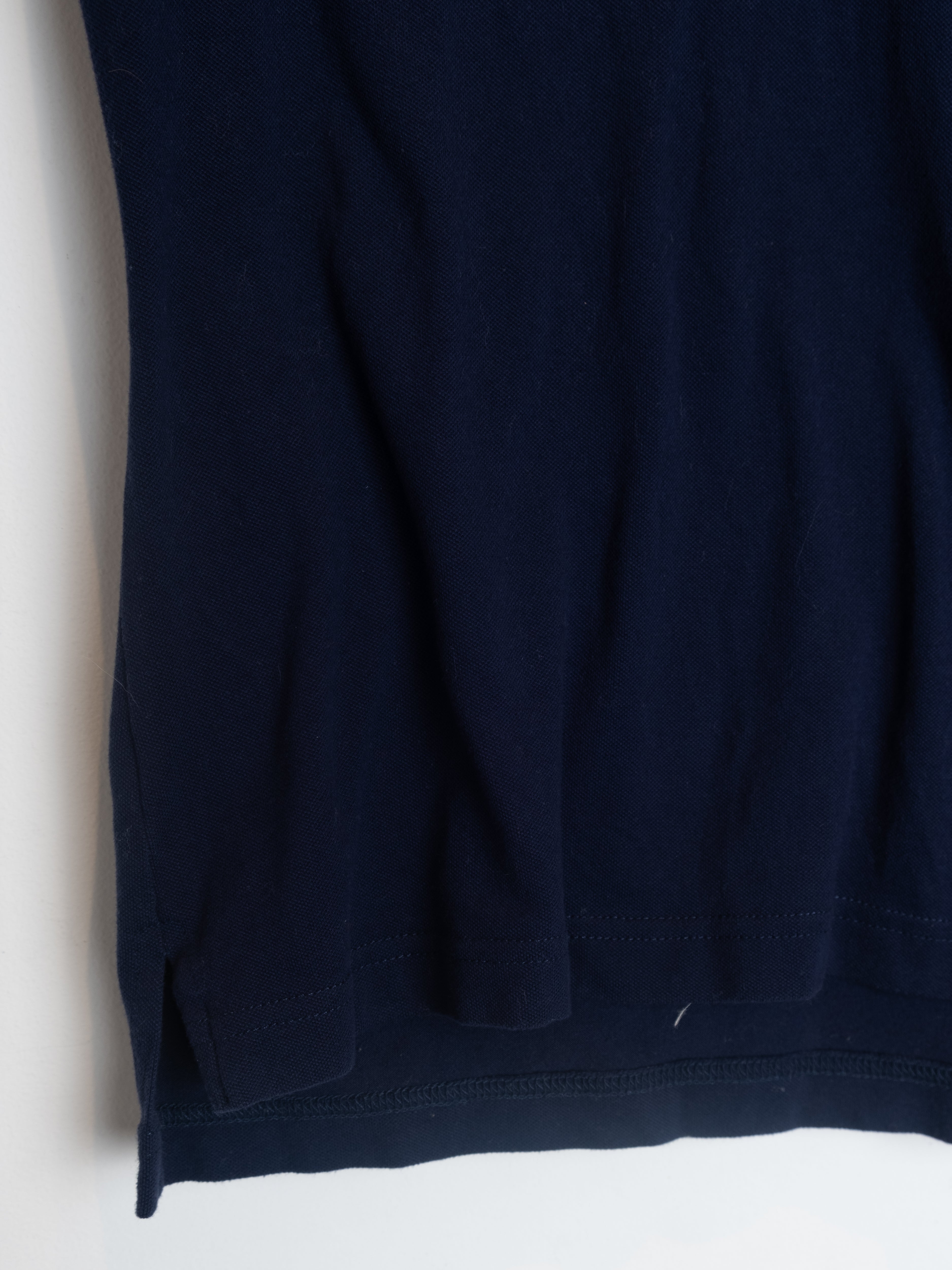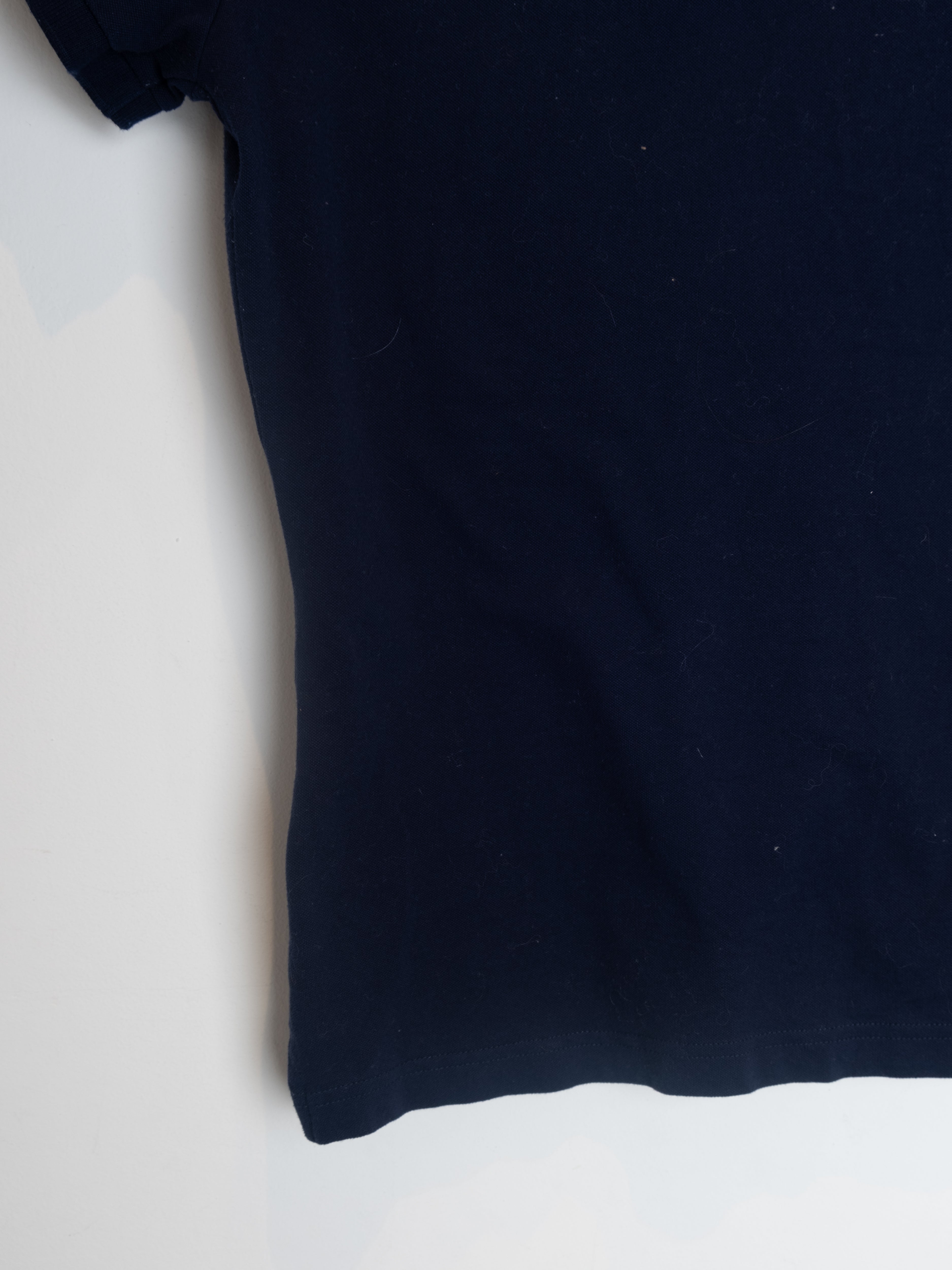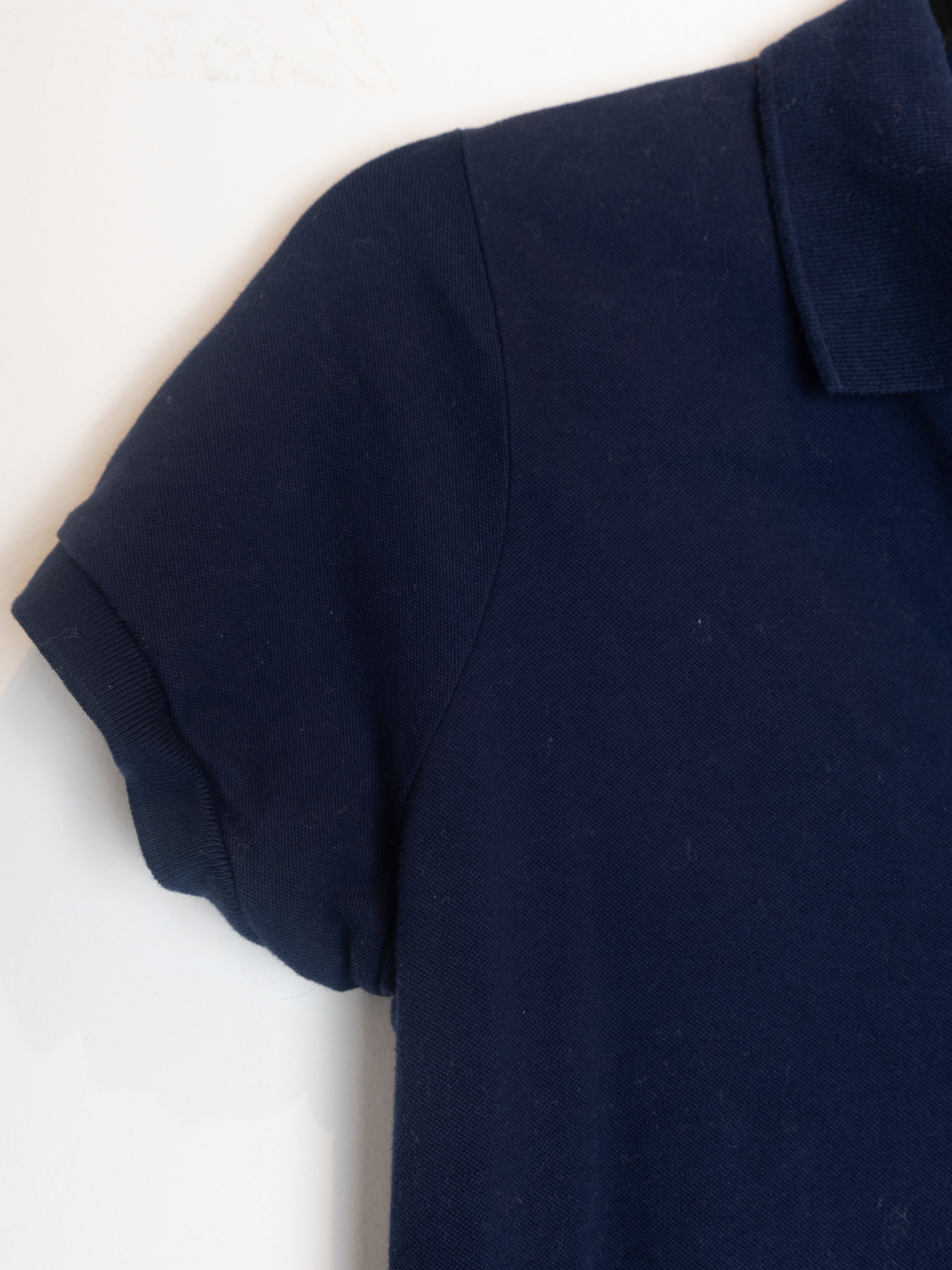 חולצת פולו קלאסית של רלף לורן Ralph Lauren וינטג' יד שנייה, בגוון כחול־נייבי עמוק עם רקמת הפוני האייקונית בצבע לבן. גזרה מחמיאה, בד נעים ורך, ומתאימה למראה קז'ואל אלגנטי לכל עונות השנה.