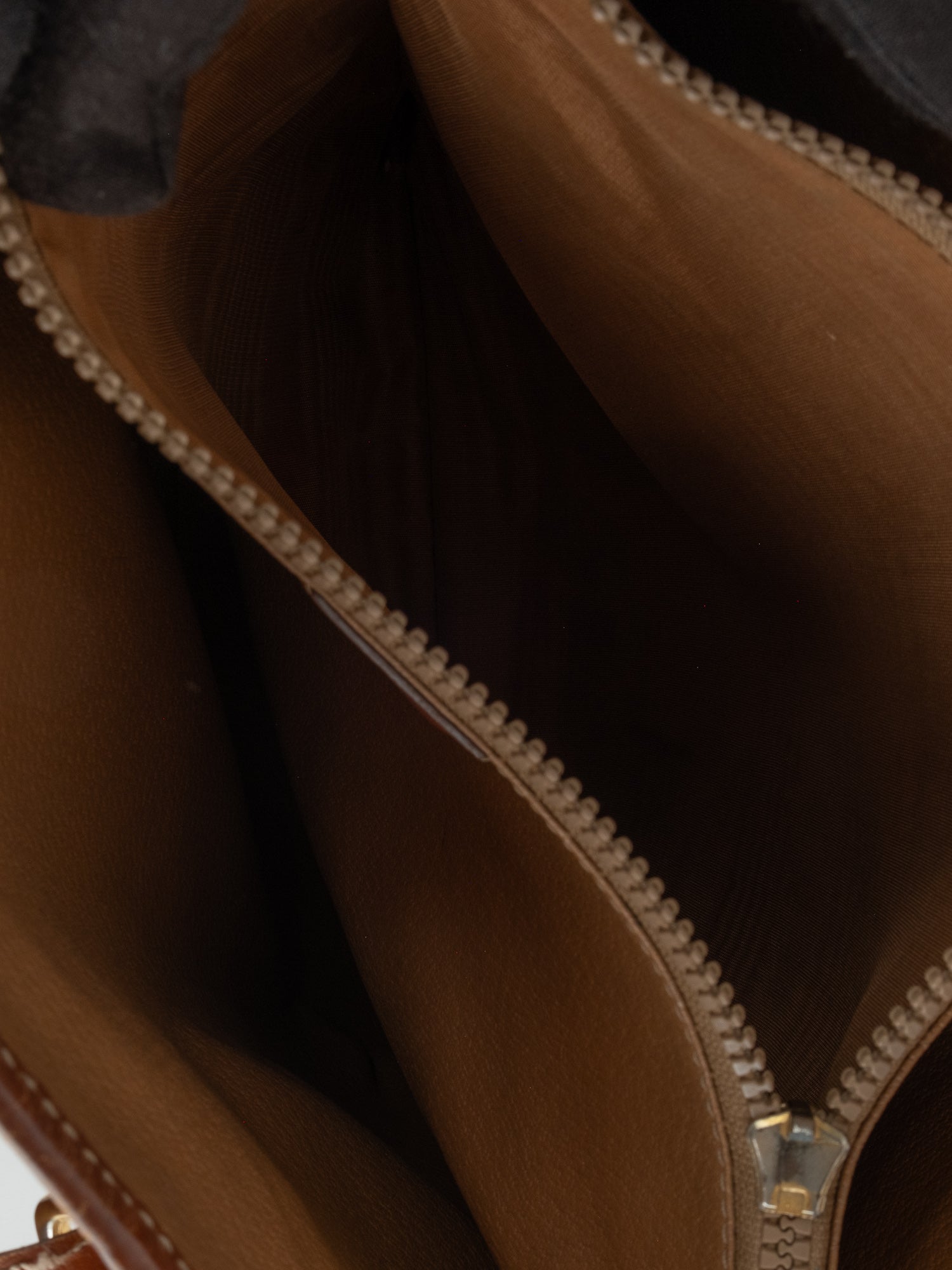 שפשופים עדינים בידיות, התכהות טבעית של העור, שחיקה קלה בקצוות. מצב וינטג’ יפה.