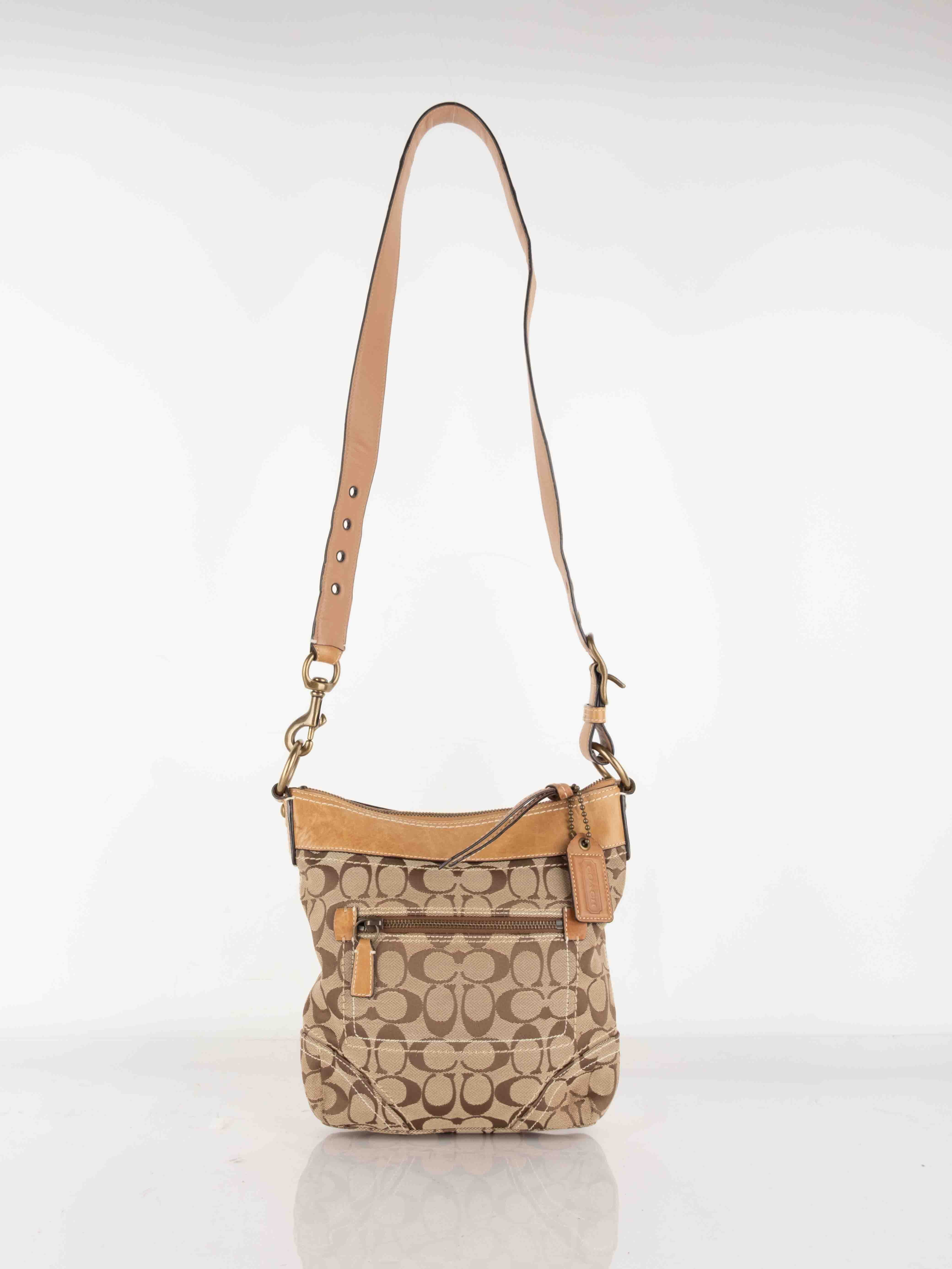 View Similar Productsתיק קרוס של Coach וינטג׳ יד שנייה עם דוגמת ה־Signature הקלאסית בגווני בז' וחום. הסלואט הצר־ארוך נותן מראה נעים, נקי וקליל — מושלם לשימוש יומיומי.