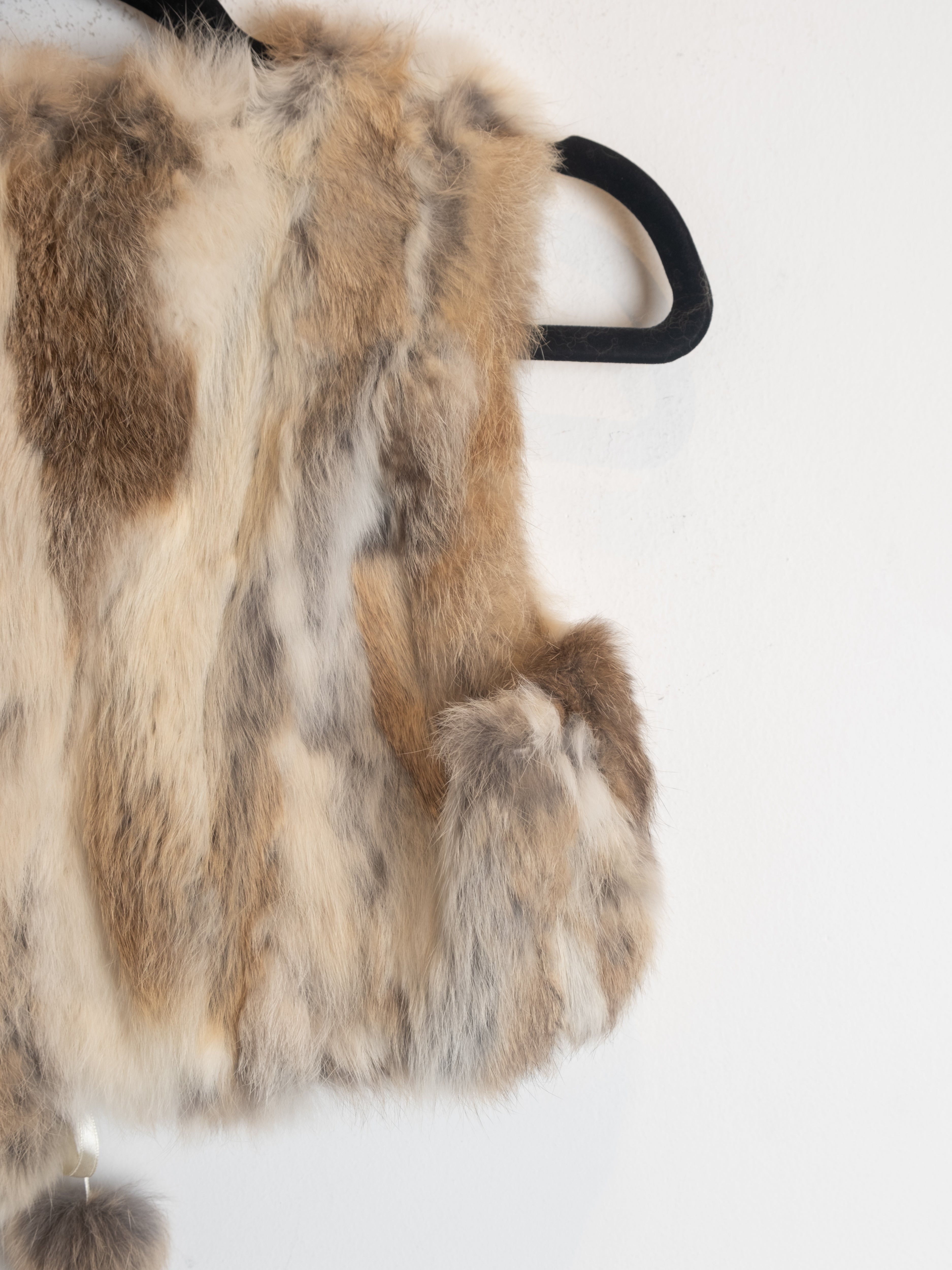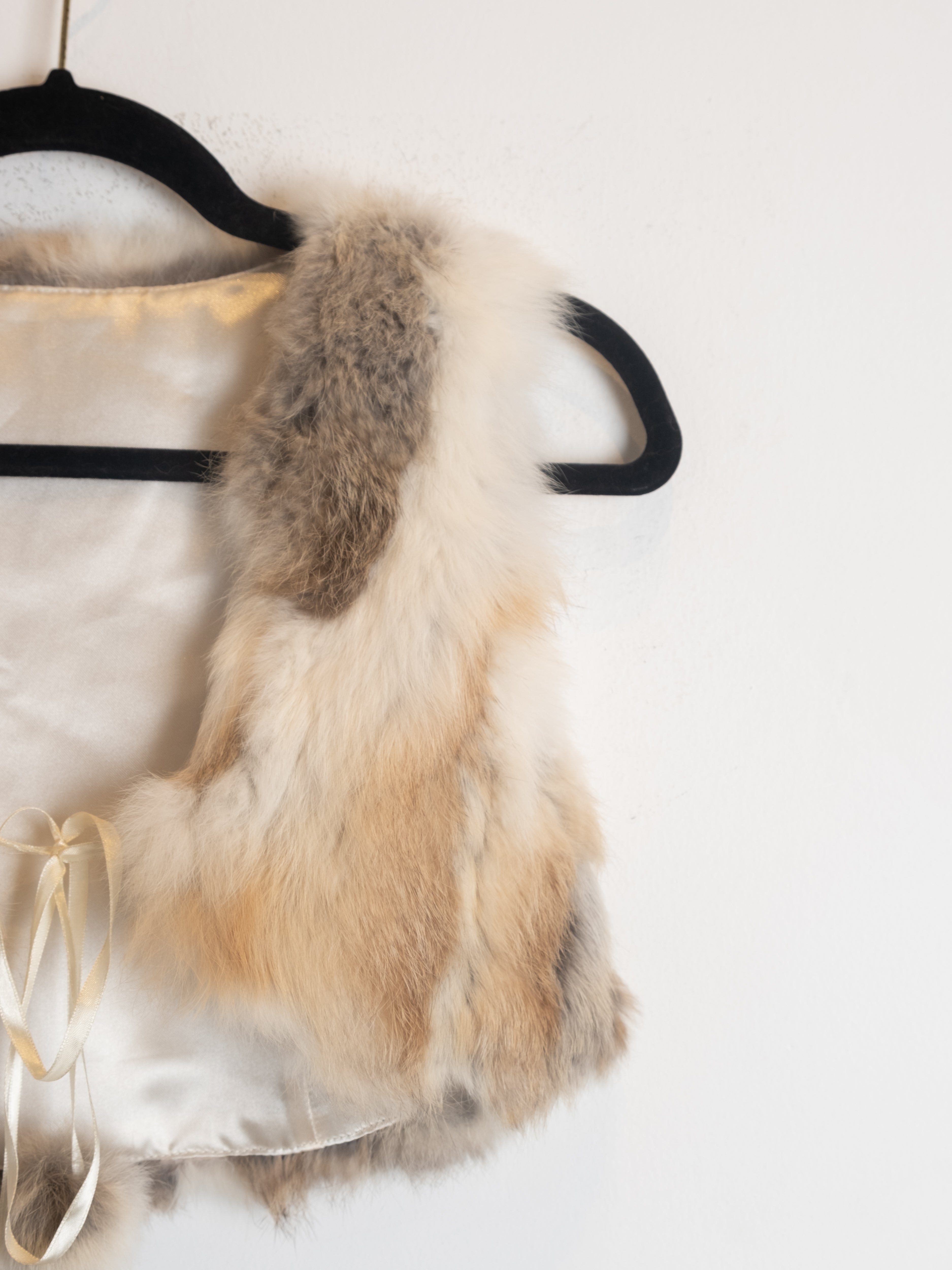 View Similar Productsווסט פרווה וינטג’ יד שנייה בגזרה קצרה, בעל נוכחות רכה ואלגנטית. הפרווה בגוונים טבעיים של בז’ וחום בהיר, עם משחק טקסטורות עדין היוצר מראה חמים אך מעודן. סגירה קדמית עם שרוך דק ואלמנט דקורטיבי קטן מוסיפה טאץ’ נשי ורטרו. פריט מושלם לשילוב מעל שמלה, חולצה דקה או סריג, ליצירת לוק שכבות עשיר ומלא אופי.