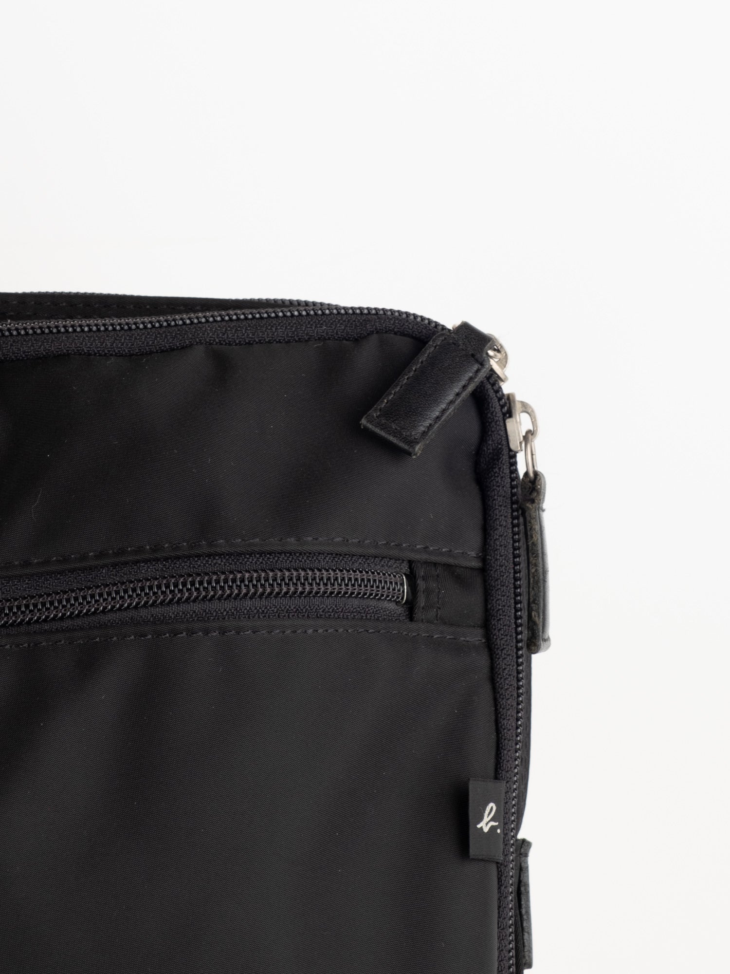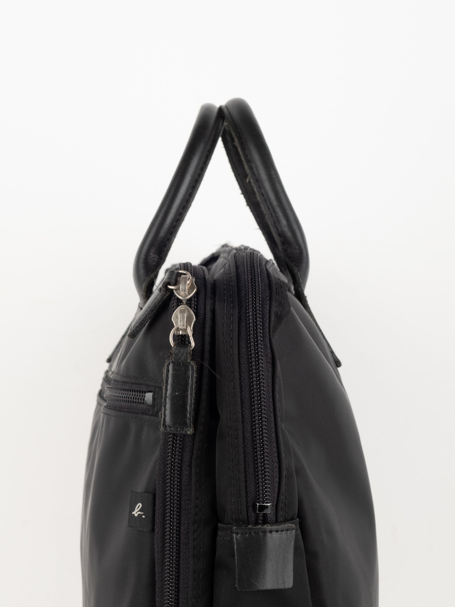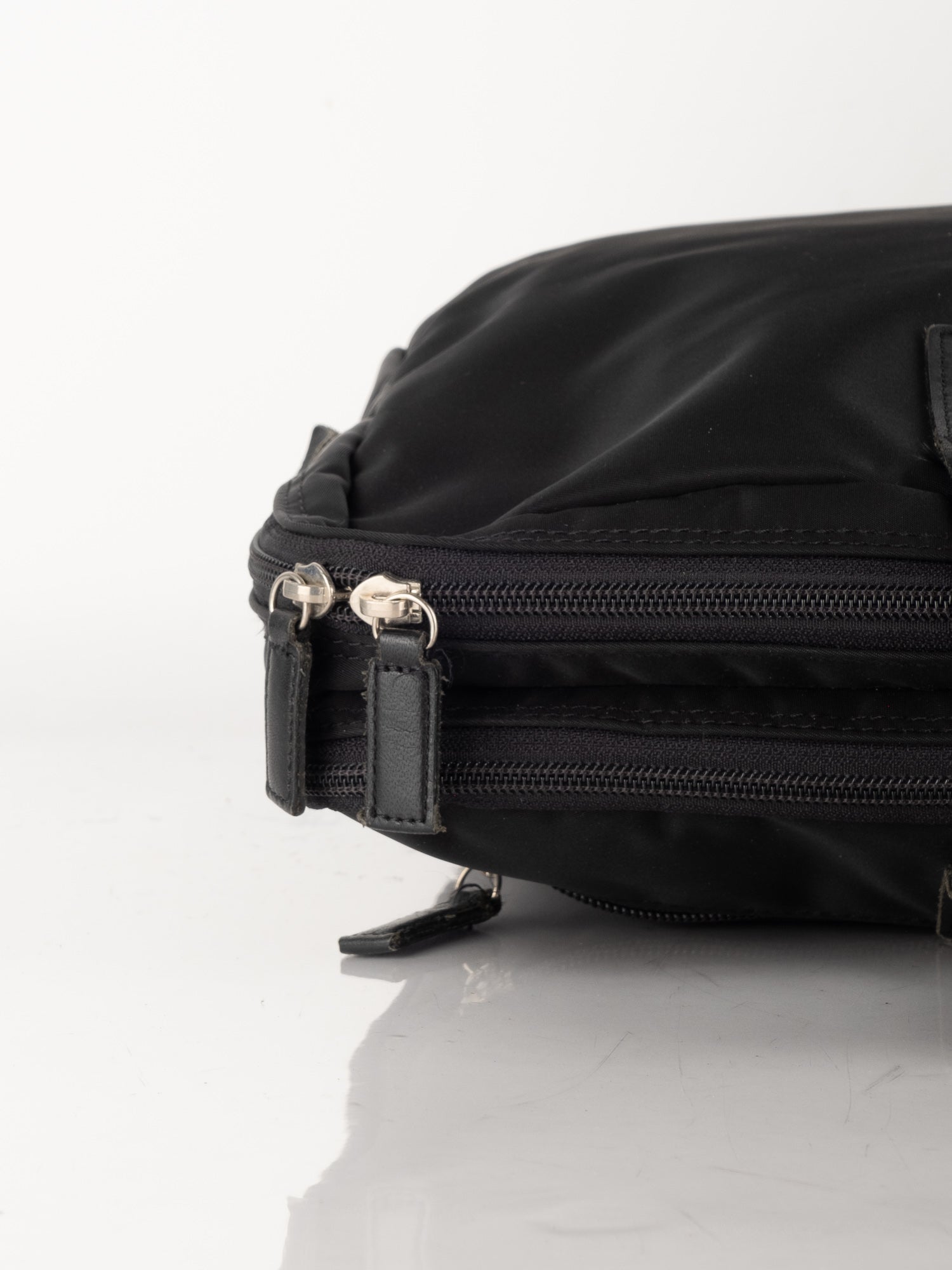 התיק עשוי נאיילון שחור עם ידיות נשיאה עליונות, רוכסנים חיצוניים וחלוקה פנימית נוחה. הסגירה באמצעות רוכסן עליון.